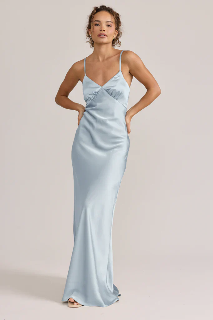 Ellapink Satin Dress | Ready To Ship | Sky Blue