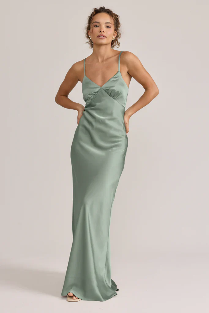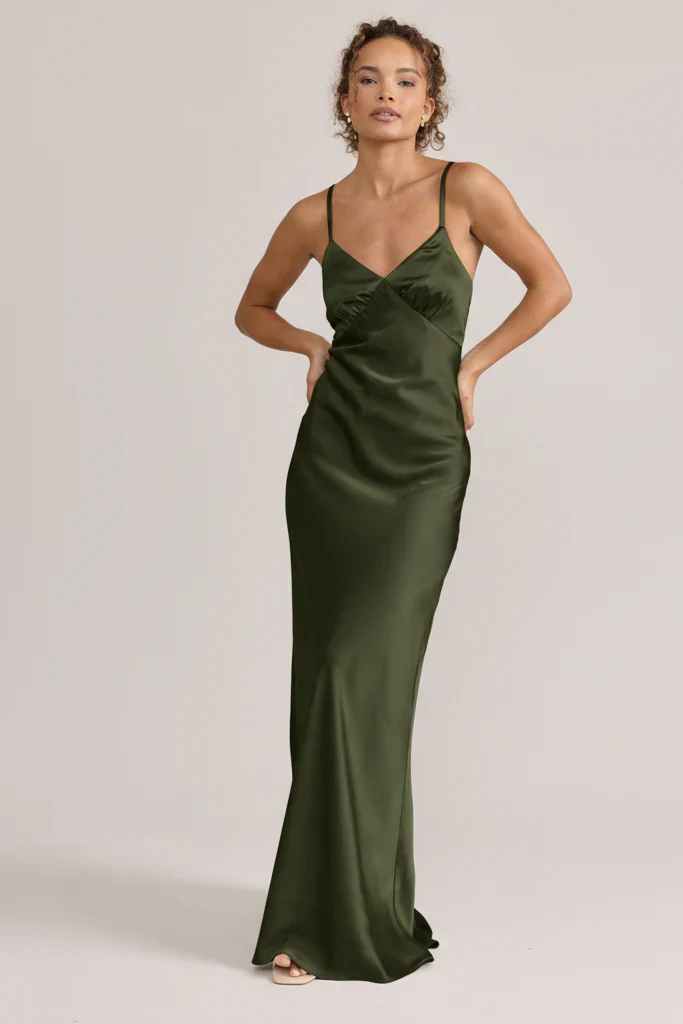 Ellapink Satin Dress | Ready To Ship | Deep Olive