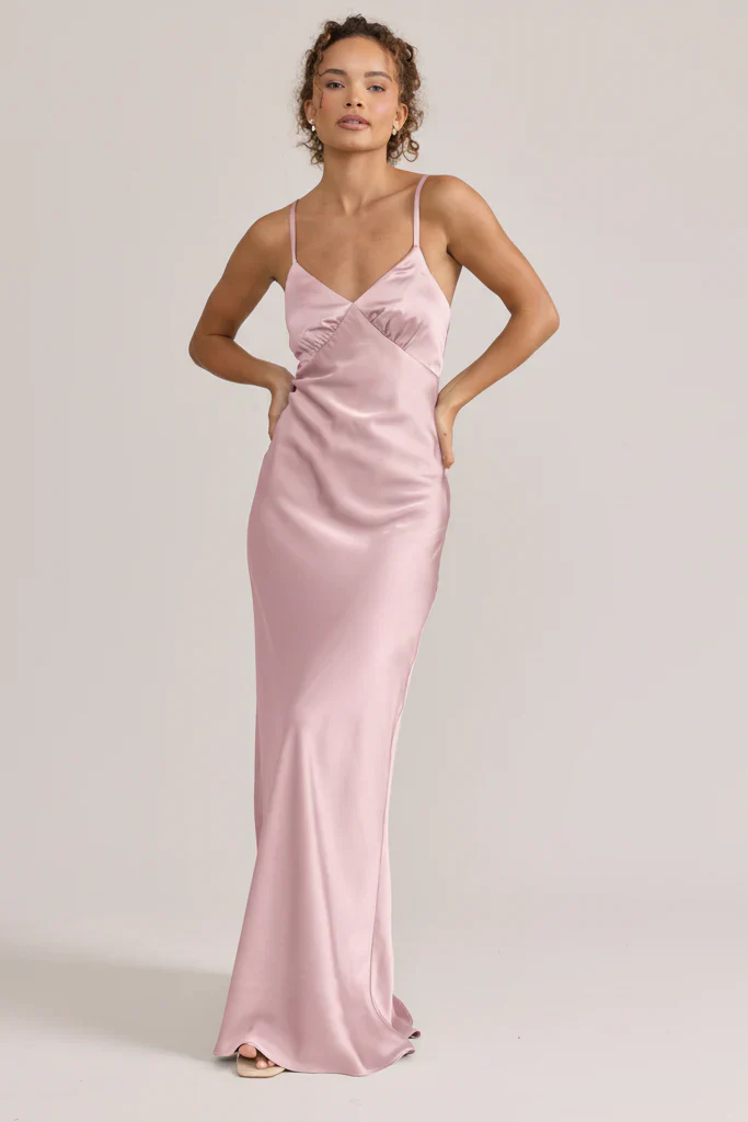 Ellapink Satin Dress | Ready To Ship | Mahogany