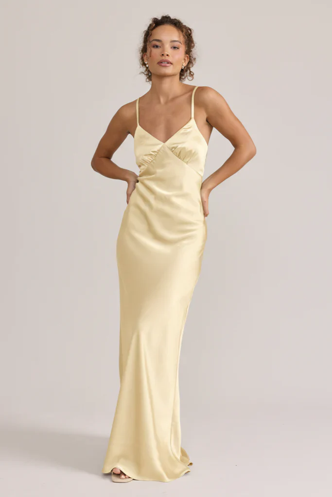 Ellapink Satin Dress | Ready To Ship | Pale Yellow