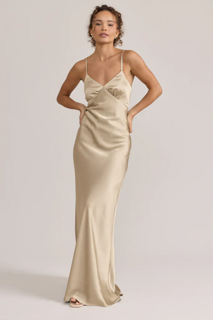 Ellapink Satin Dress | Ready To Ship | Gold Champagne