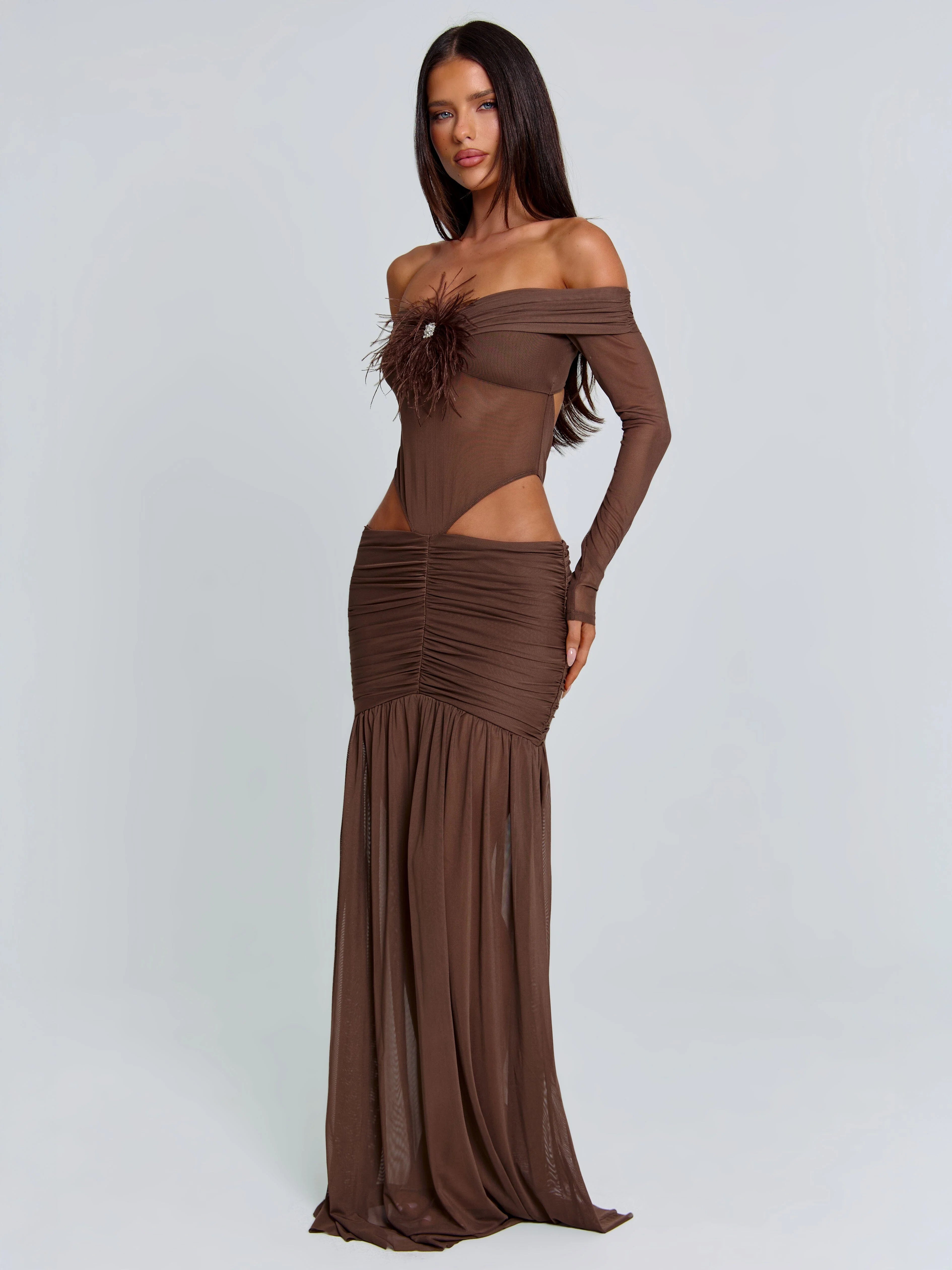 Make an unforgettable entrance in our Angelae Maxi Dress in Chocolate Brown.