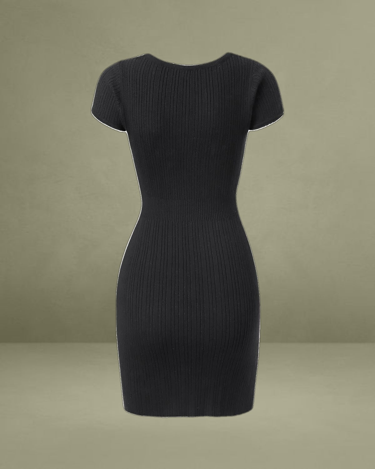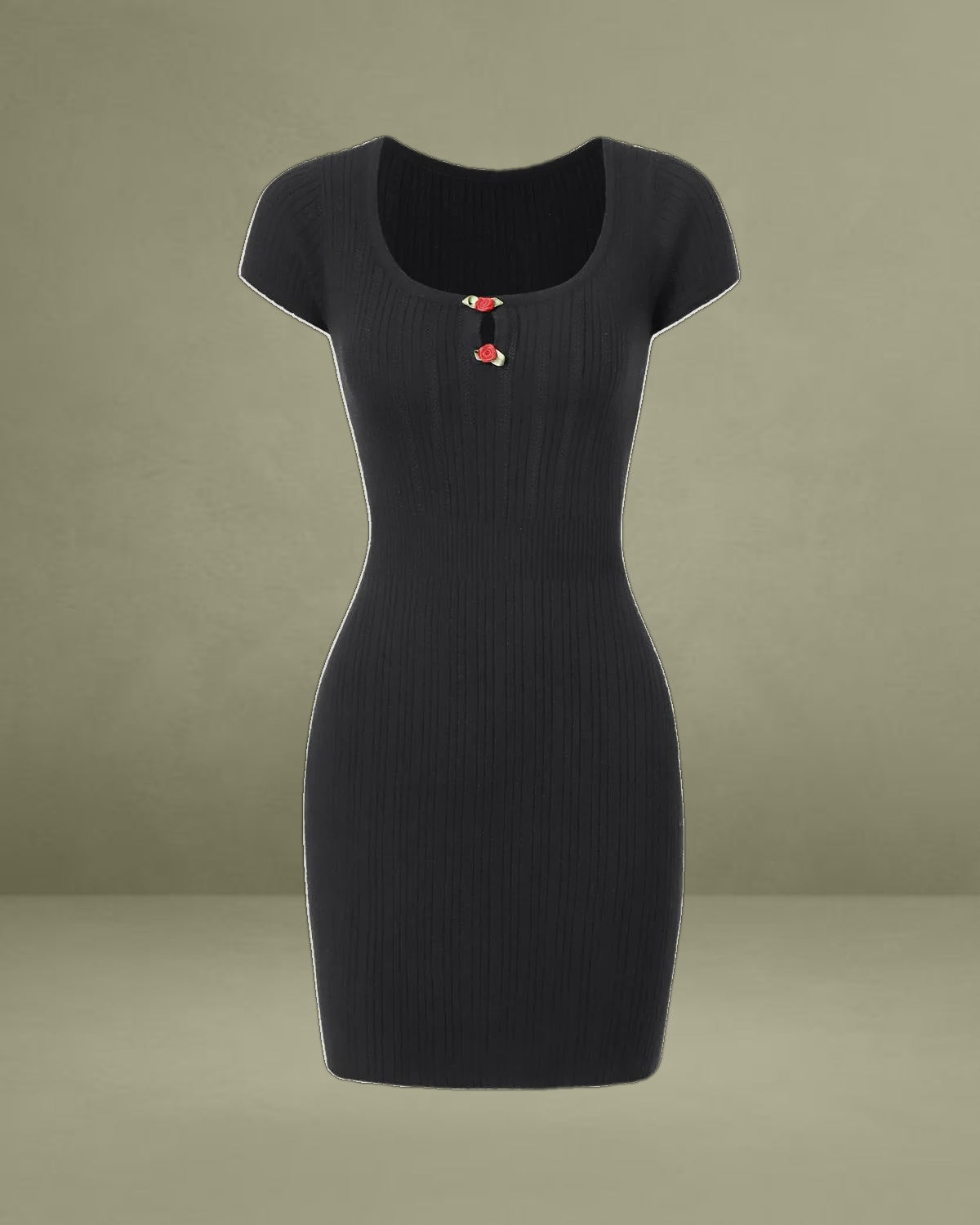 Designed with a classic round neckline and a form-fitting ribbed texture, this dress offers a flattering silhouette that hugs your curves. The mini length adds a playful touch, while the black color makes it versatile and easy to dress up or down.