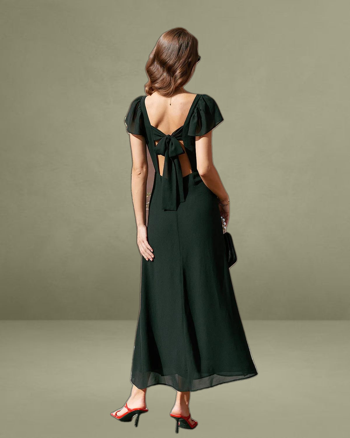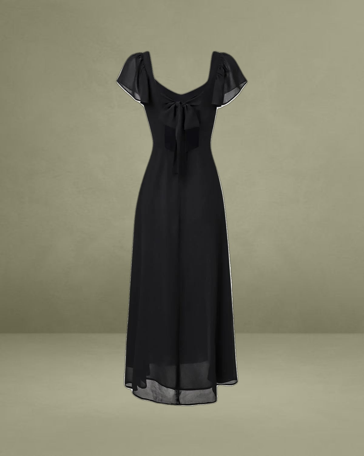 This Chiffon Maxi Dress is made of Polyester. Polyester is an artificial fiber that feels soft, looks lustrous, and dries fast. It's also durable, with good resistance to wrinkles, stains, and sunlight.