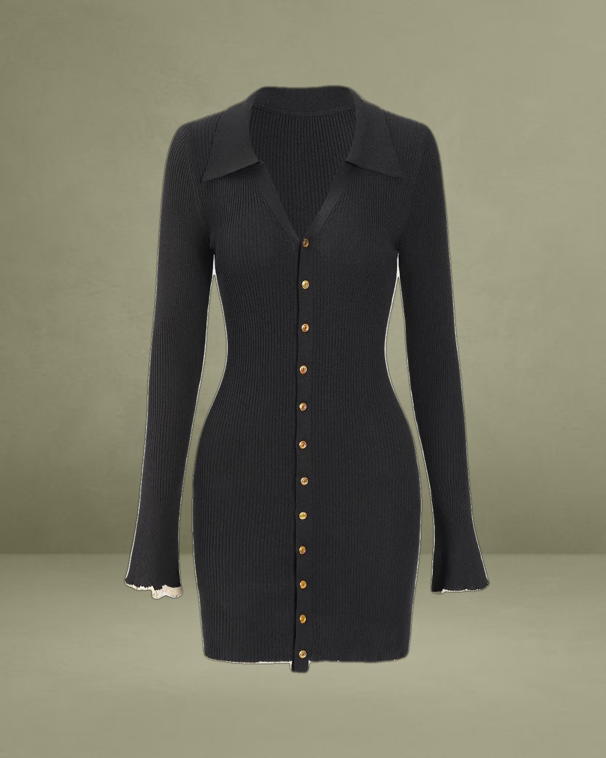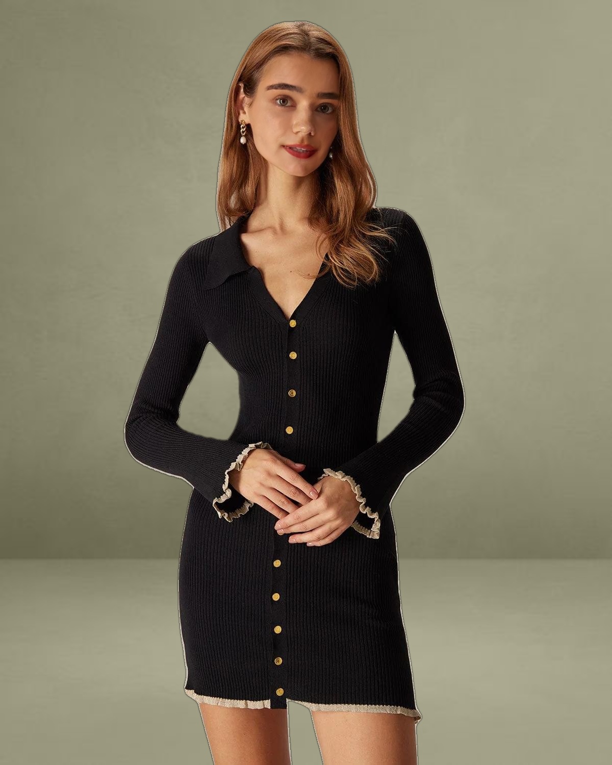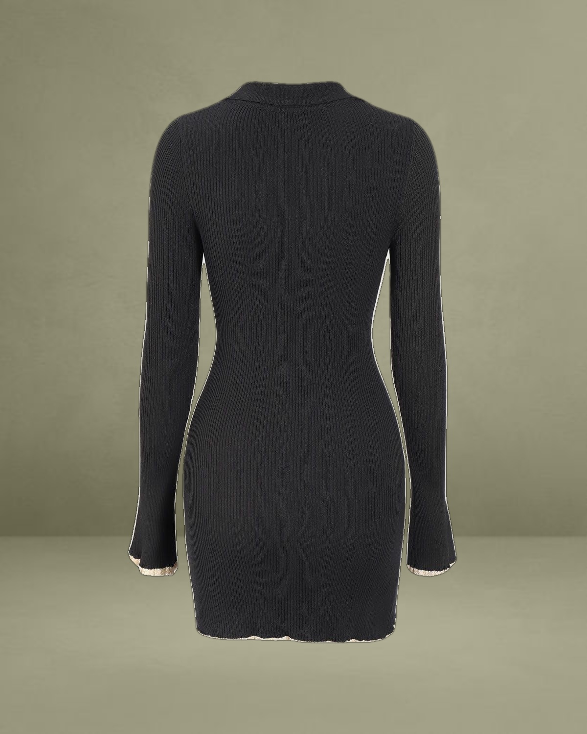 This body - hugging mini dress is a gorgeous and refined choice for any event. The long sleeves, v - neck, and body - hugging design bring a sense of sophistication. The contrasting trim adds a distinct and attention - grabbing feature. With a natural waistline, medium stretch, and a slim fit, it's both comfortable to wear and creates an attractive silhouette that enhances the body shape.