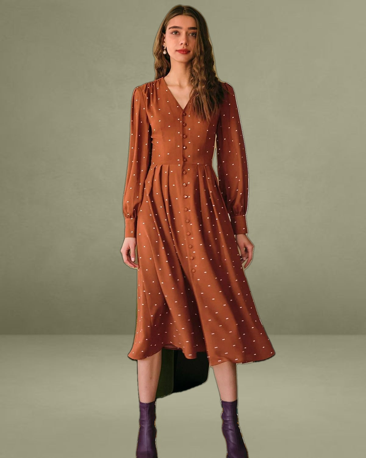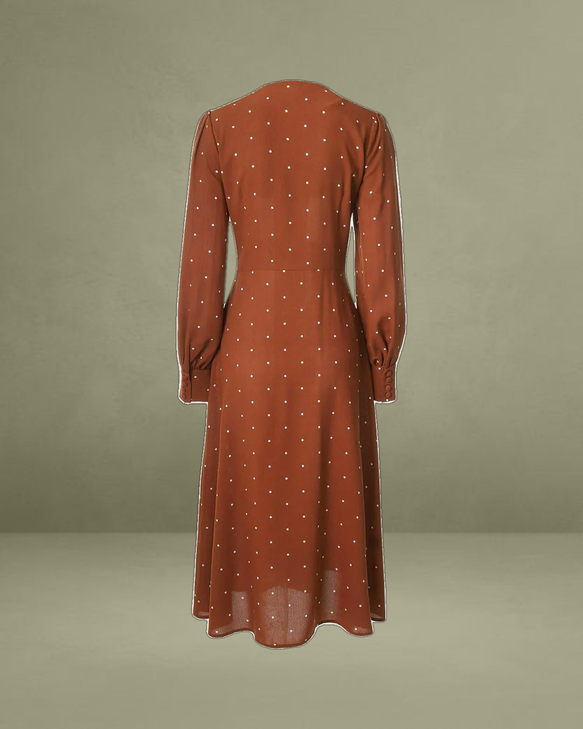 Polka dot elements are popular among females because of their vintage style. Designed in a v-neck and lantern sleeve, females' grace is fully shown. Plus, this Pleated Midi Dress offers a good visual effect, while the slim-fitting and high-waisted gives a full display of females' perfect body shapes.