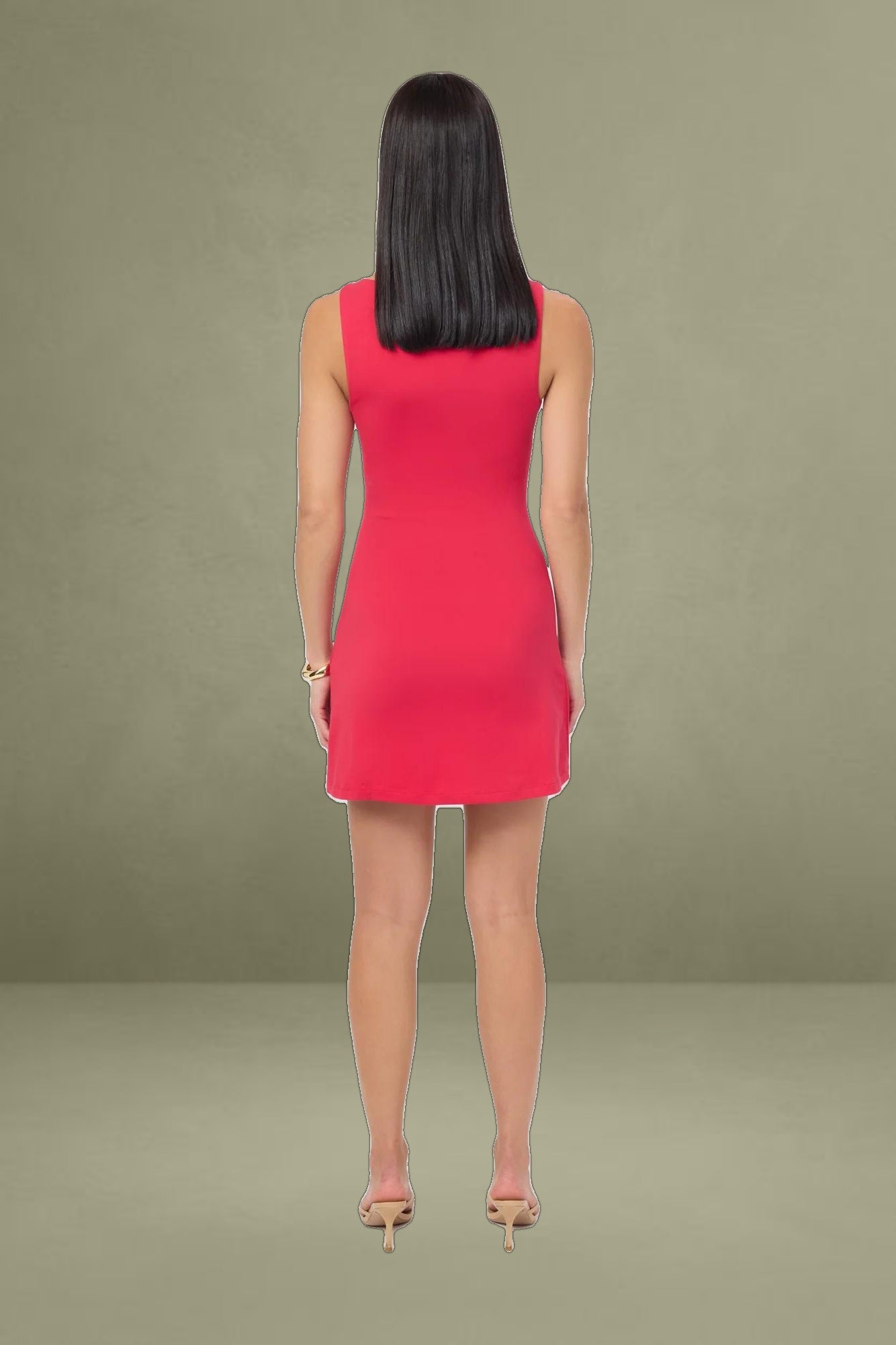Inspired by the 90's, the Carrie Mini Dress is a classic and casual addition to your dress edit. The sleeveless silhouette is an A-line shape creating a subtle fit and flare style. Featuring a wide crew neckline and finishing at mid upper thigh the style pairs perfectly with a cropped jacket.
