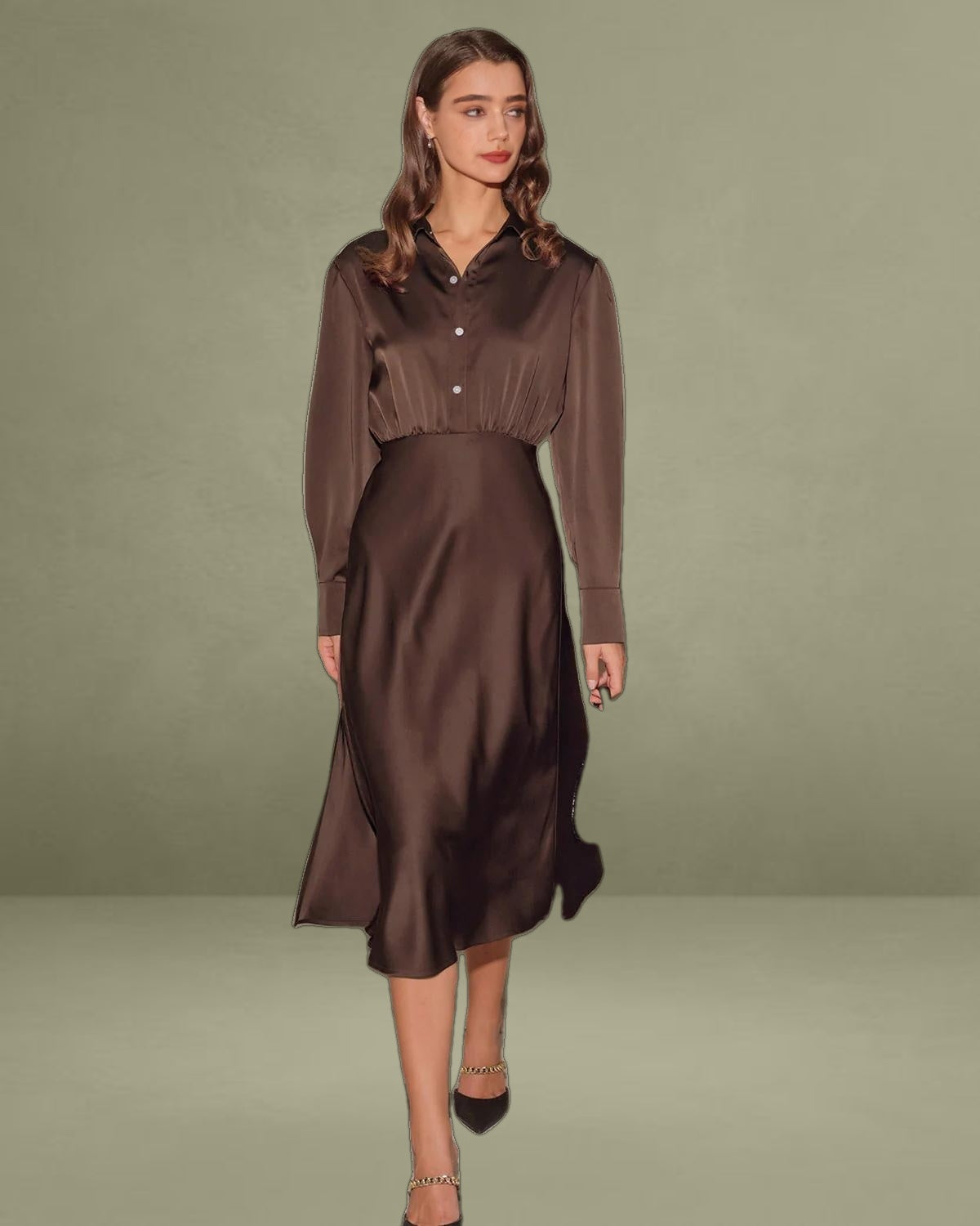 - Decorations: Ruched details and buttons