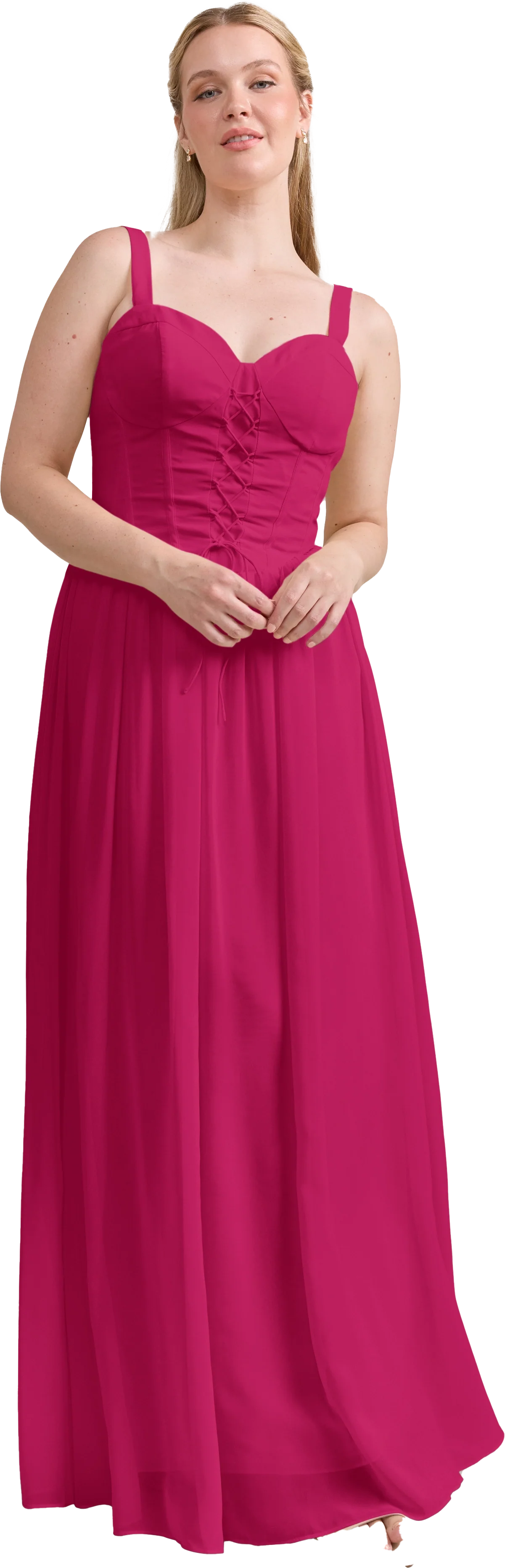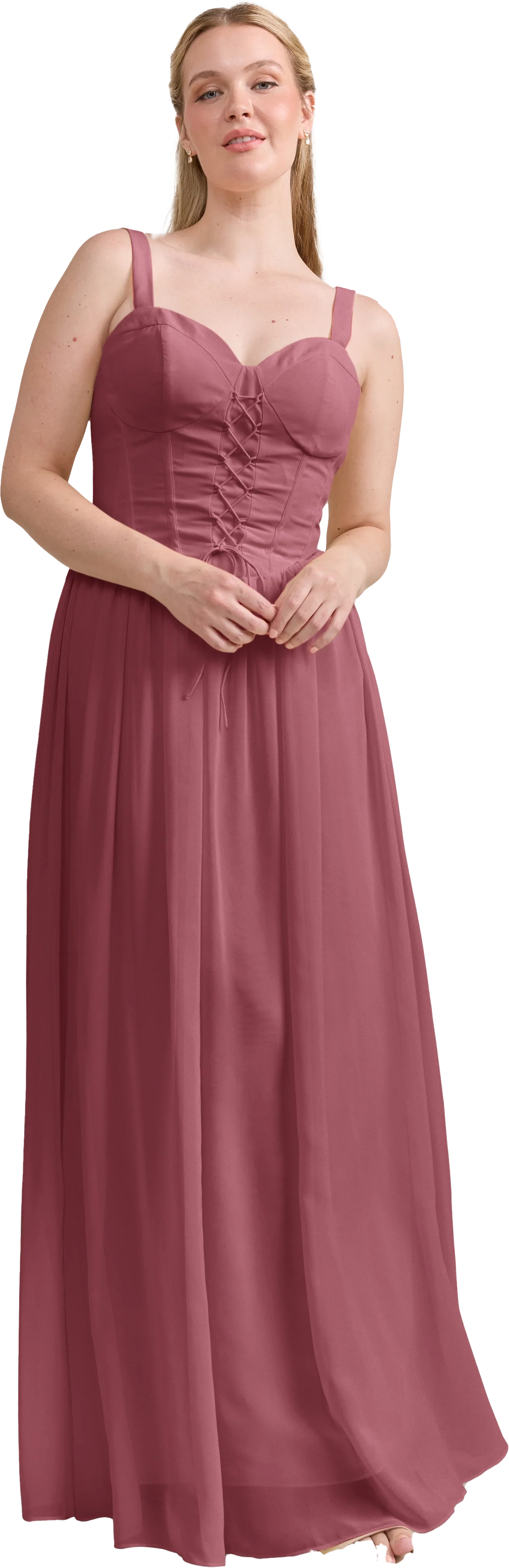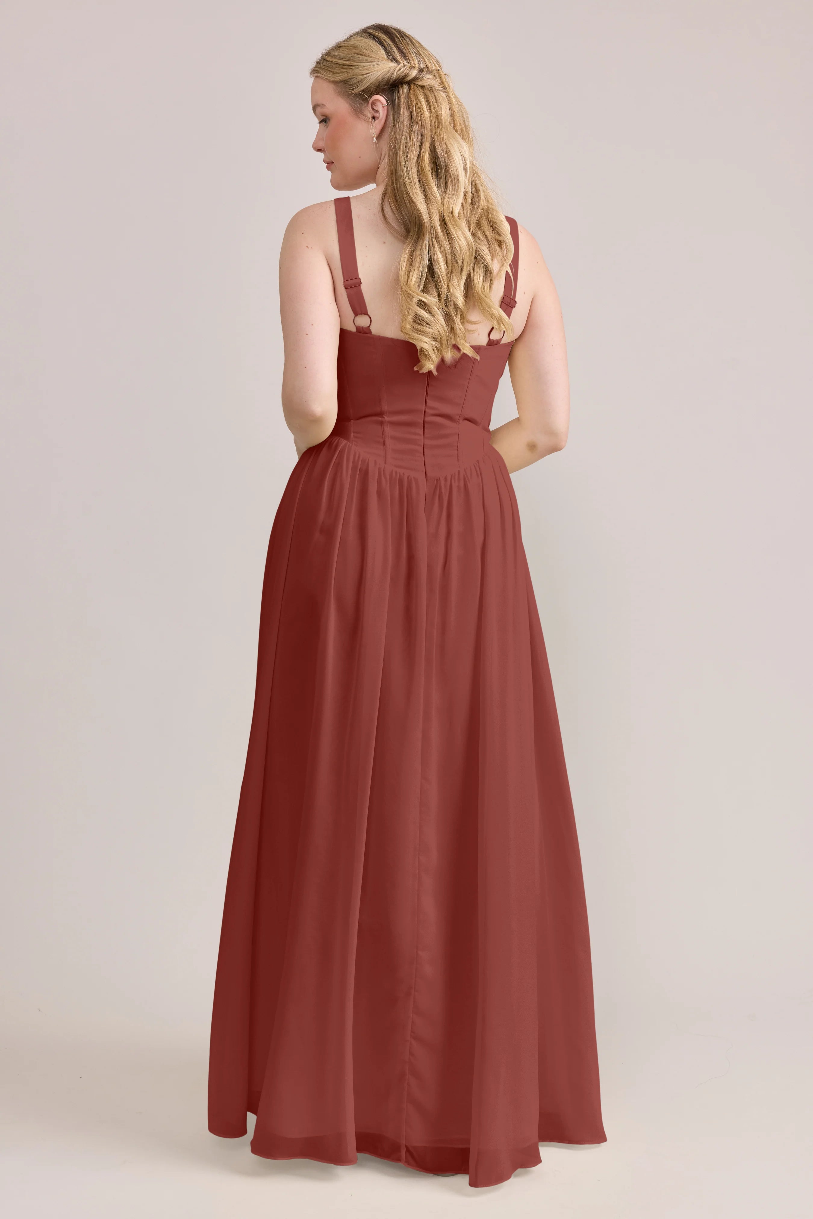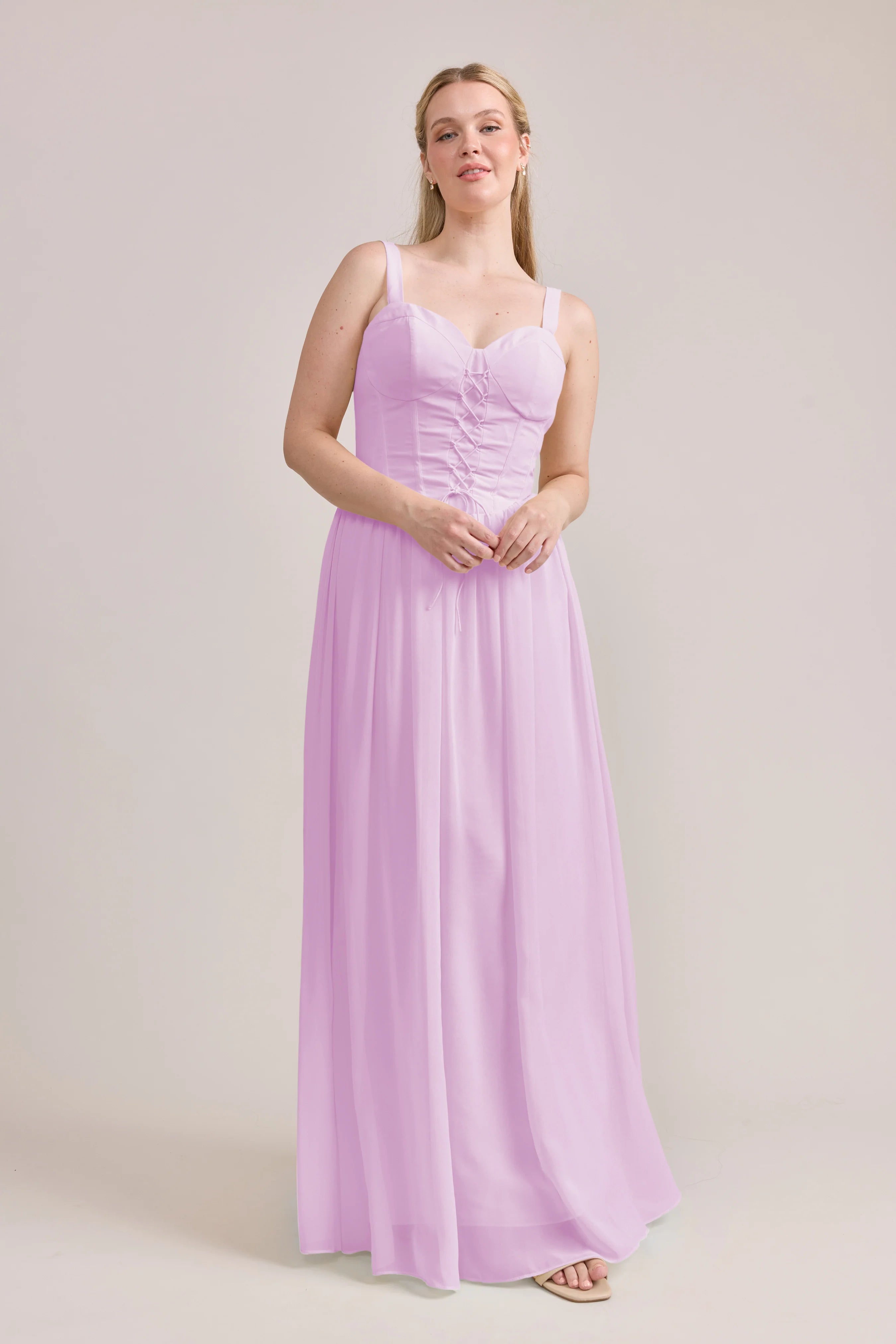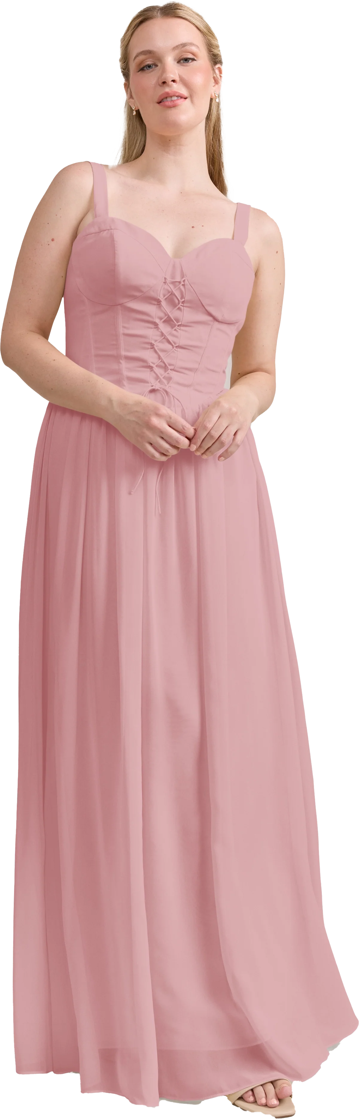 Straight out of a fairytale, the Ellapink Chiffon Dress is a perfect choice for any modern princess. Guaranteed to complement every bridesmaid, she features a flattering basque waistline, dainty corset details throughout, and super supportive adjustable shoulder straps. The best part? She has pockets too.