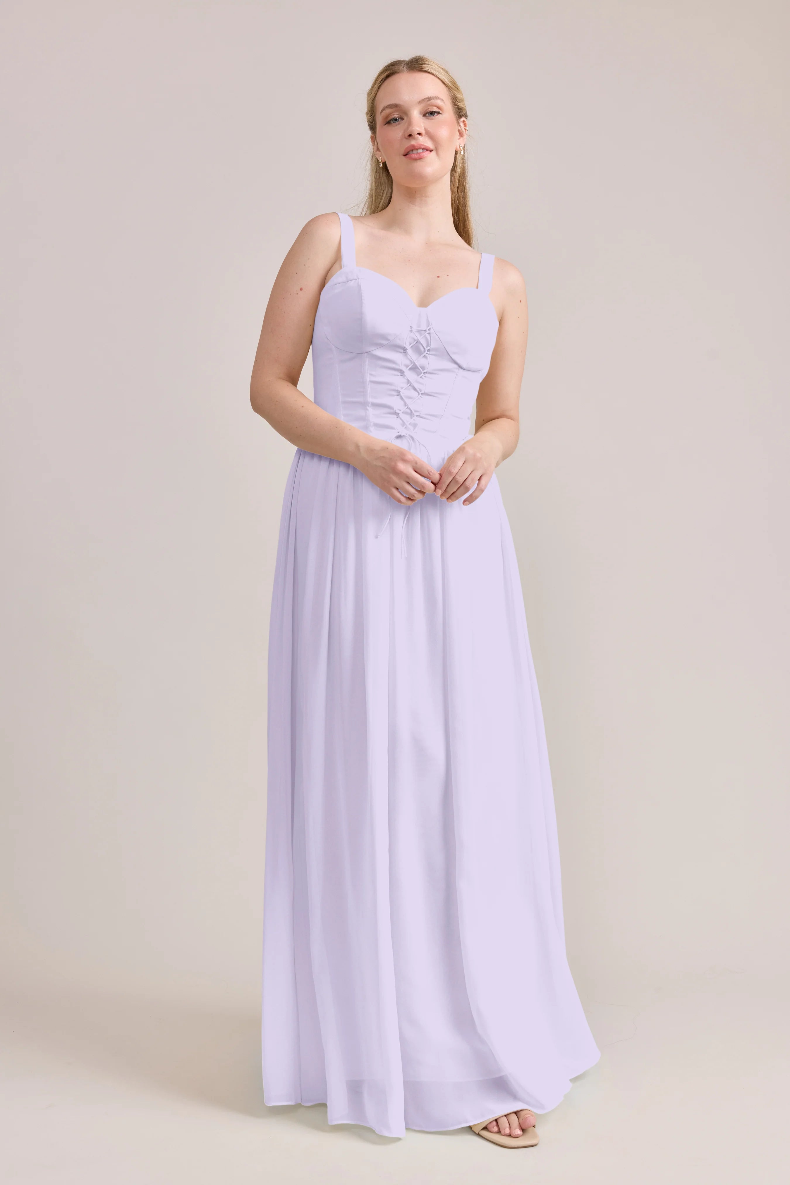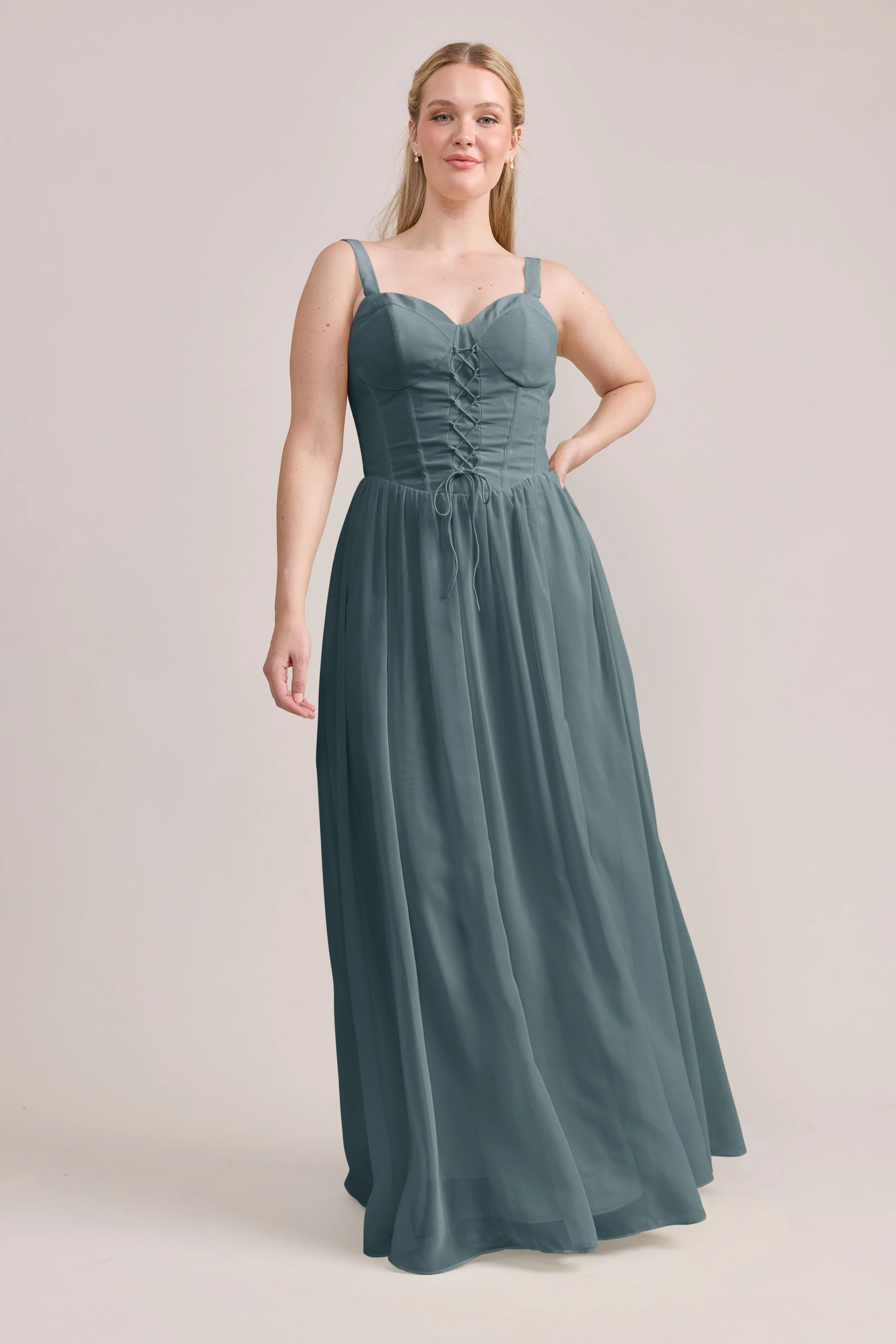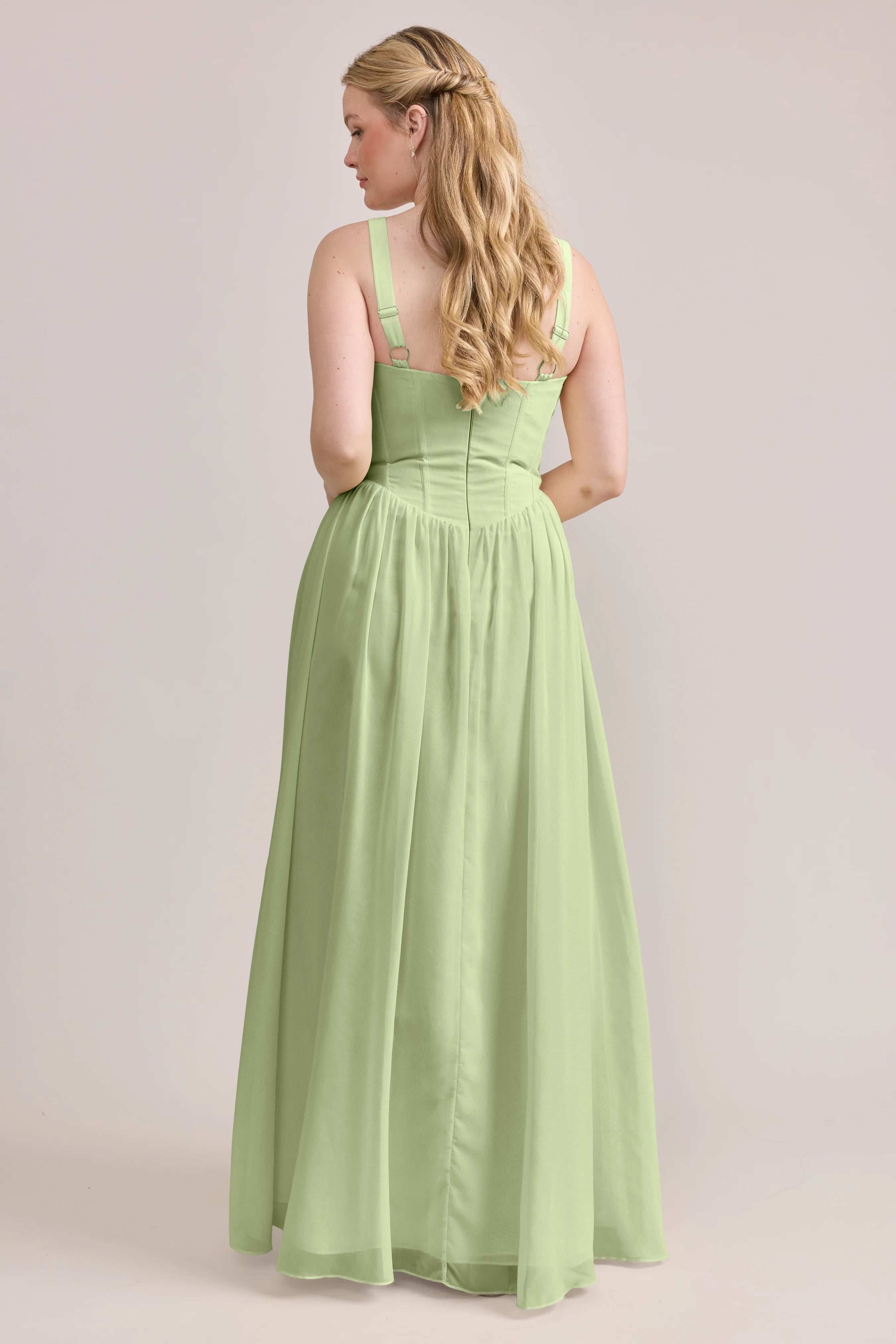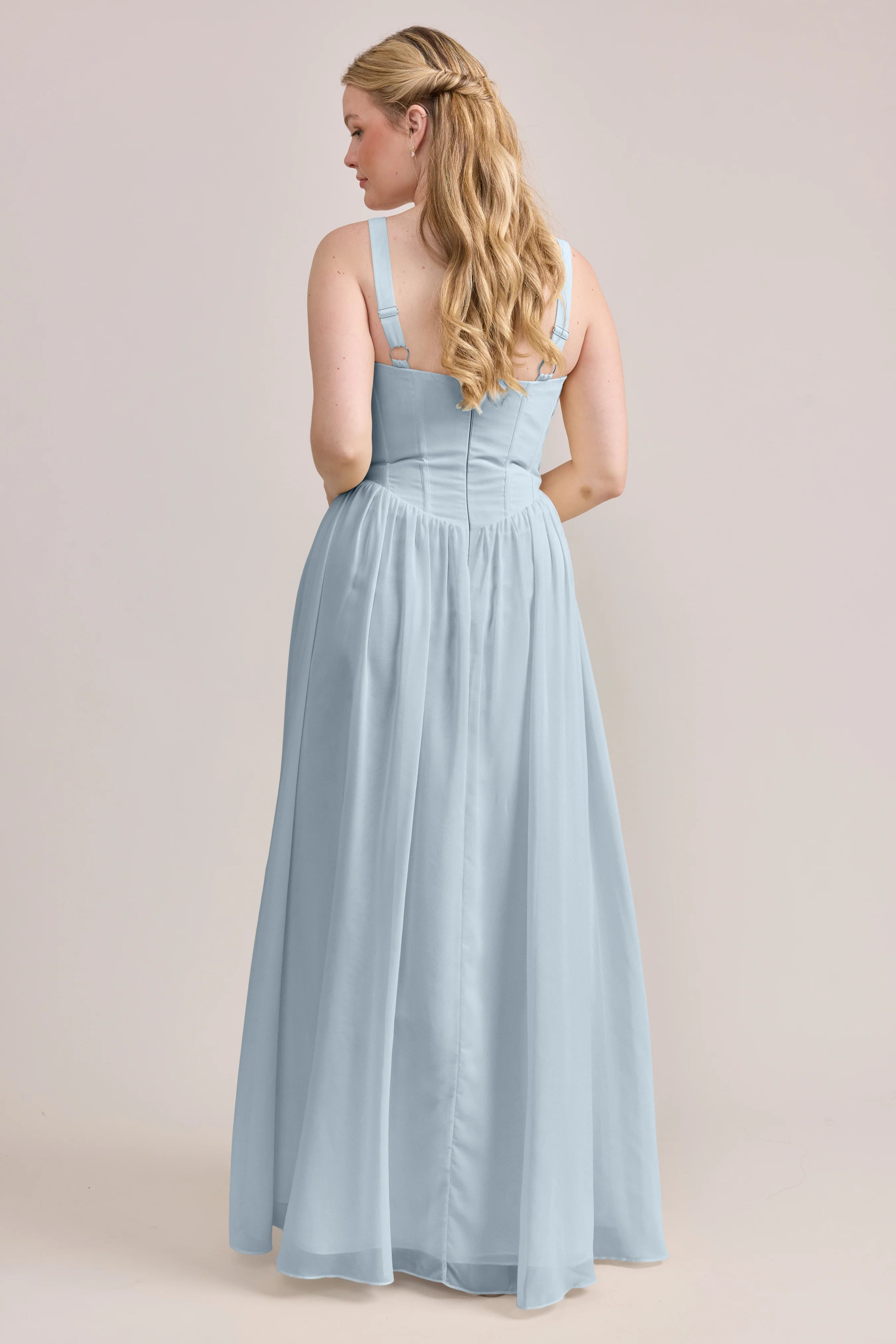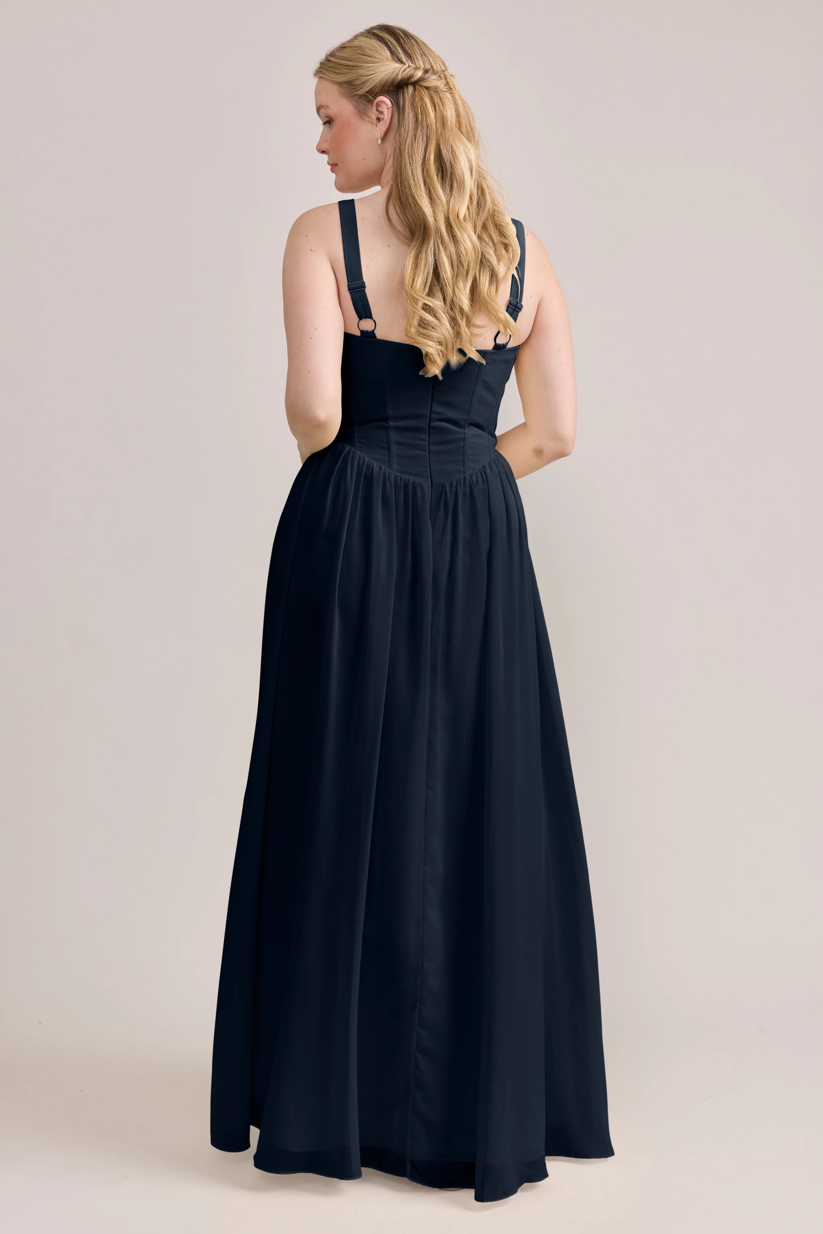 Straight out of a fairytale, the Ellapink Chiffon Dress is a perfect choice for any modern princess. Guaranteed to complement every bridesmaid, she features a flattering basque waistline, dainty corset details throughout, and super supportive adjustable shoulder straps. The best part? She has pockets too.