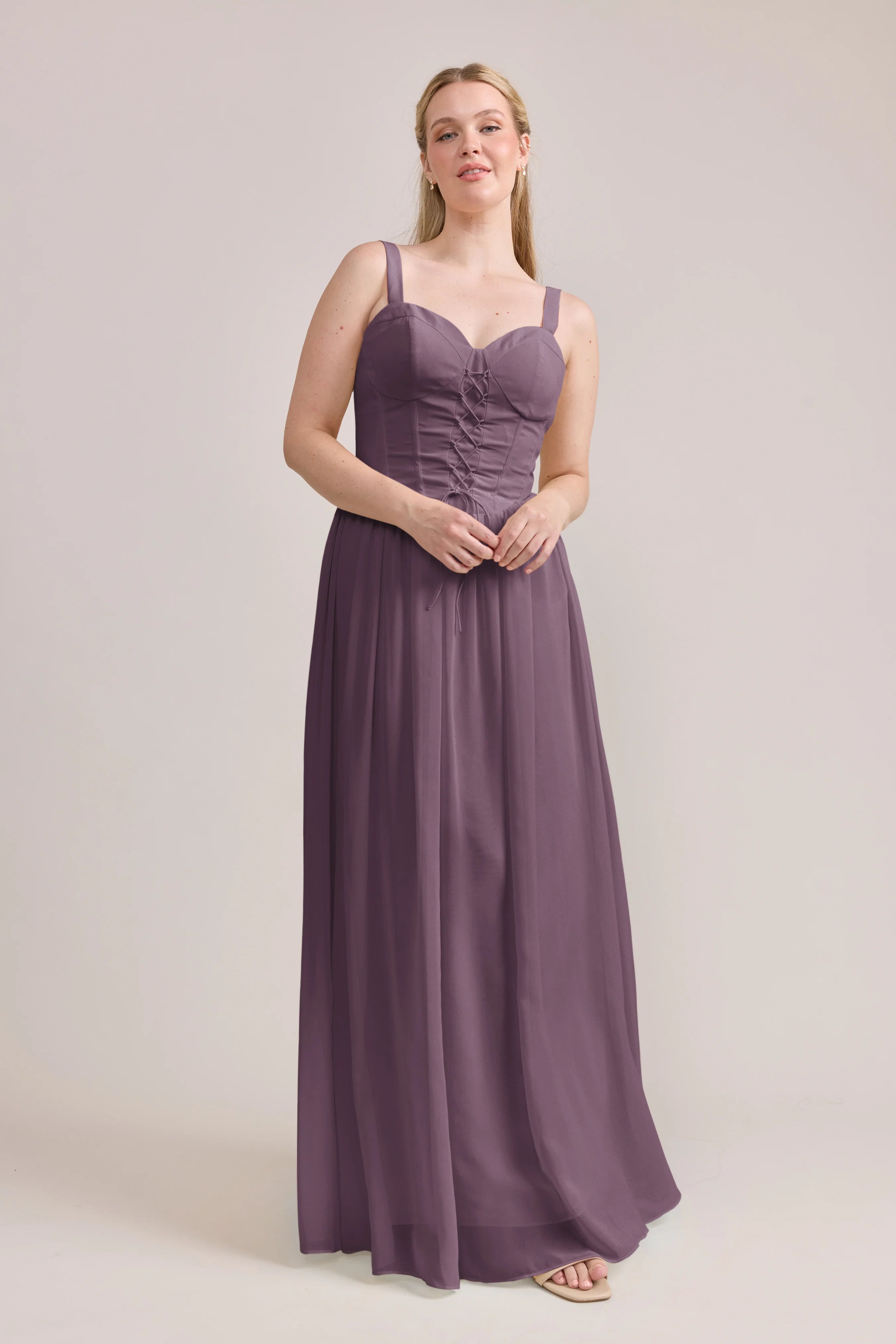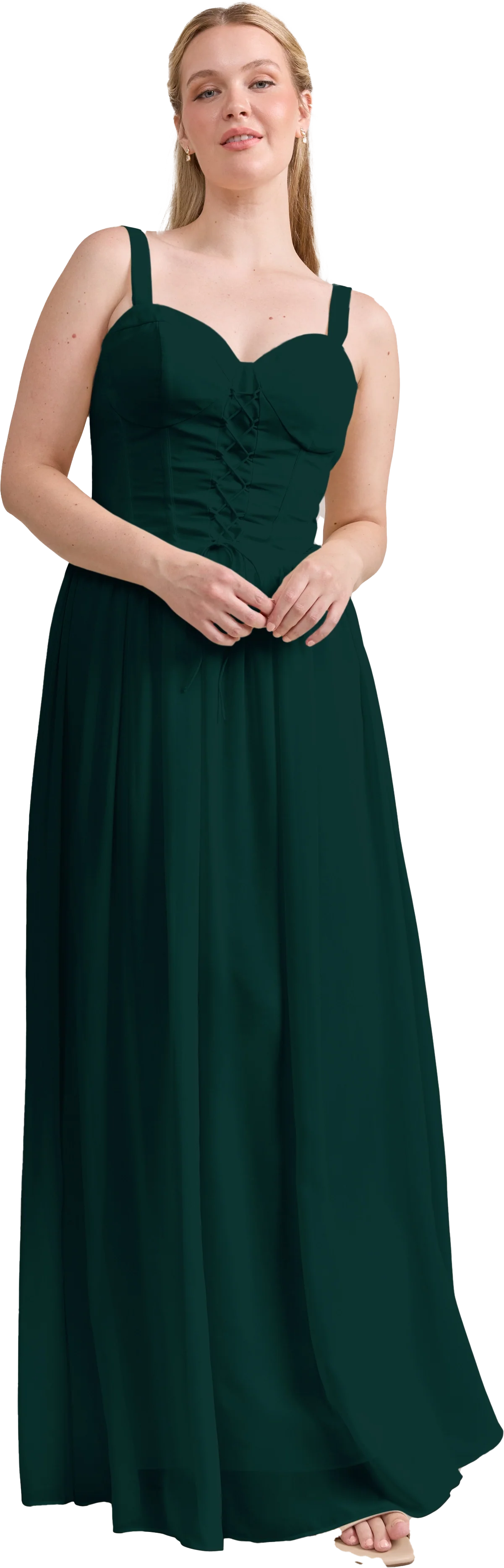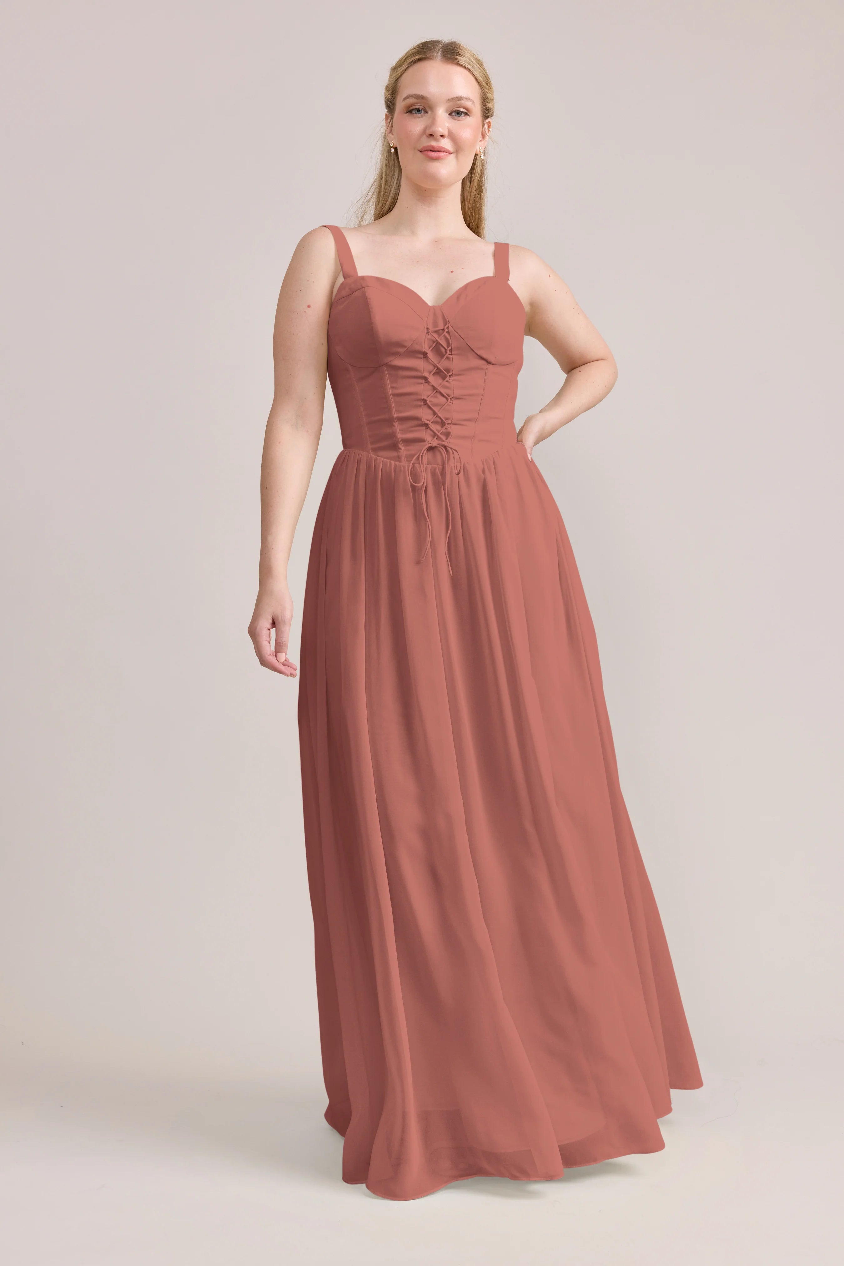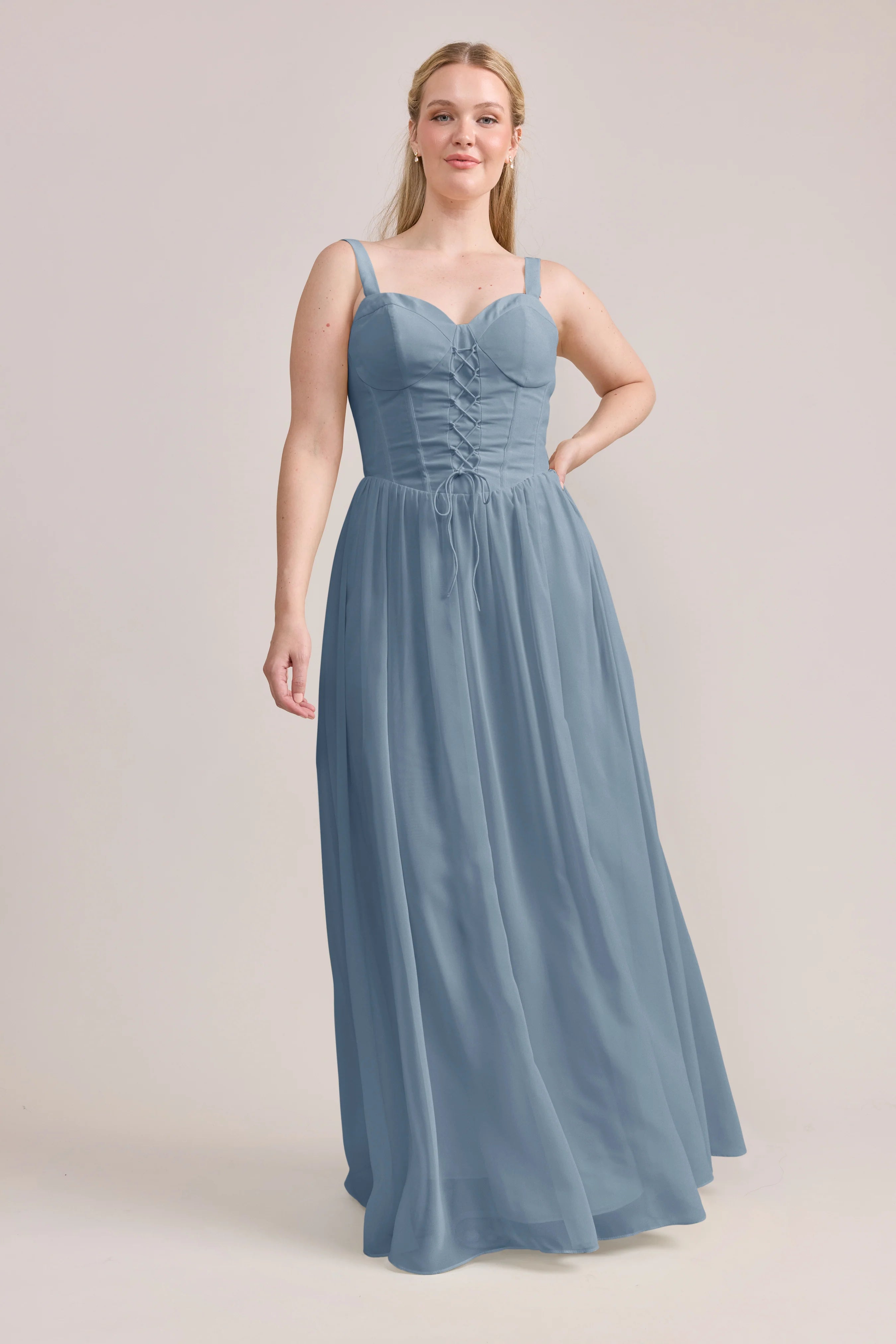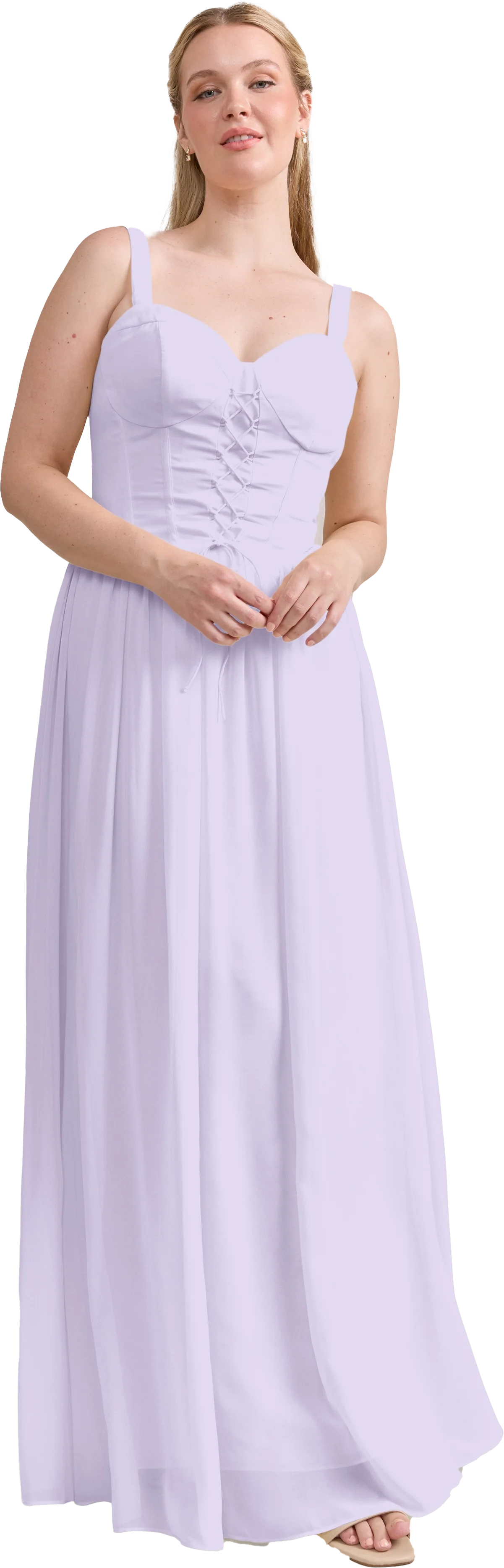 Straight out of a fairytale, the Ellapink Chiffon Dress is a perfect choice for any modern princess. Guaranteed to complement every bridesmaid, she features a flattering basque waistline, dainty corset details throughout, and super supportive adjustable shoulder straps. The best part? She has pockets too.