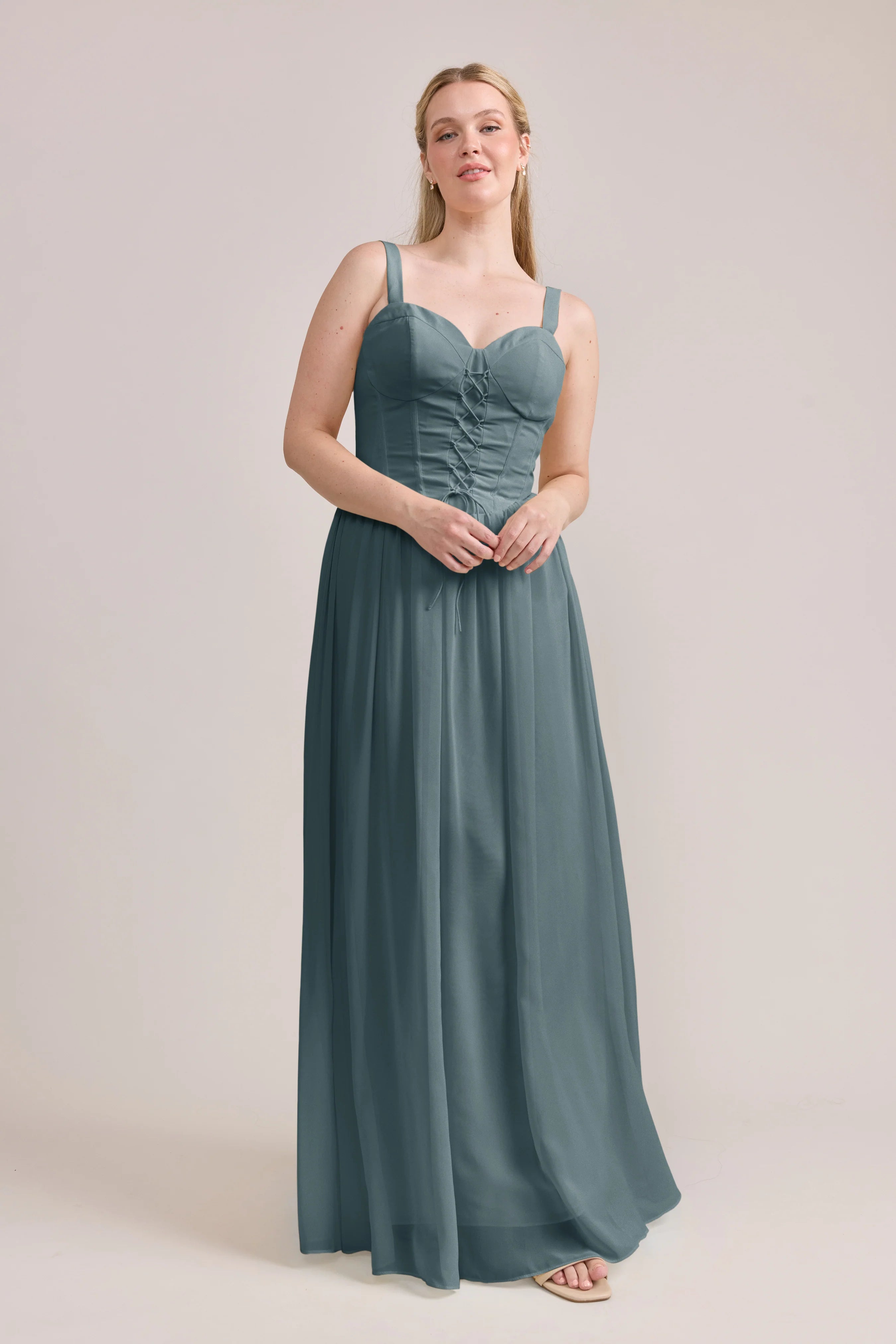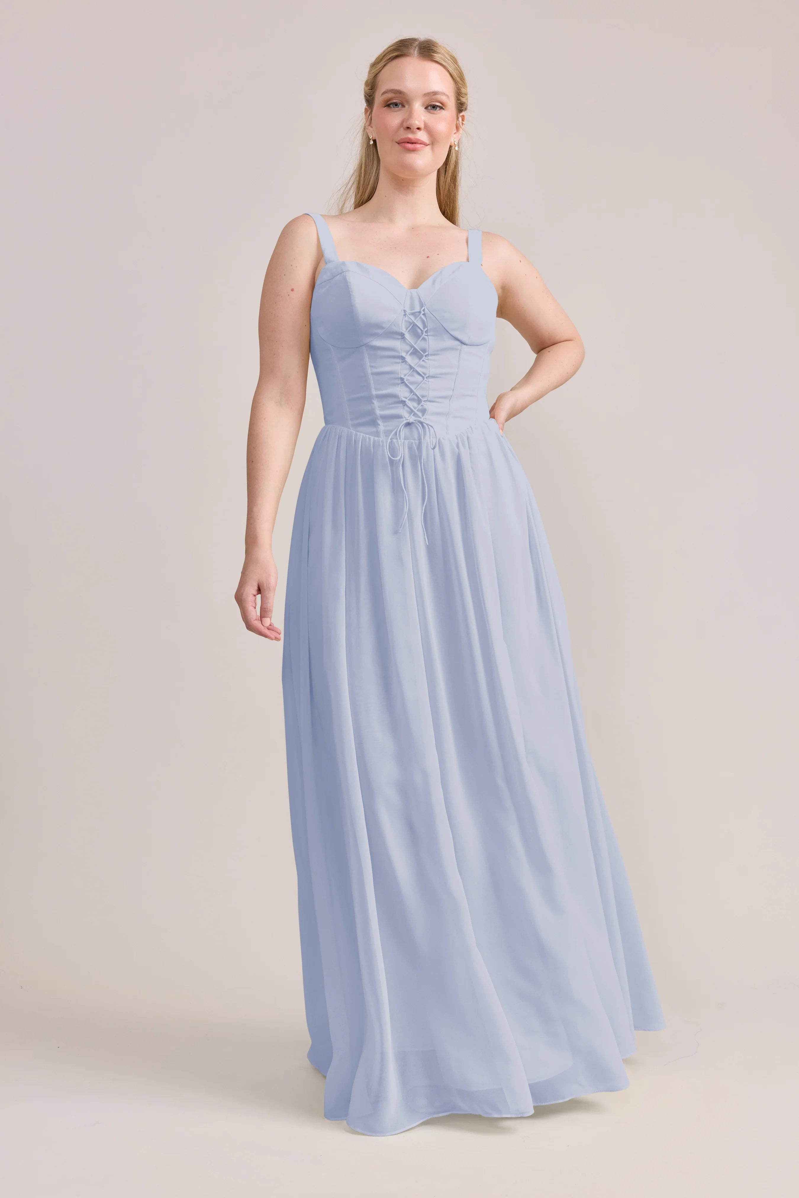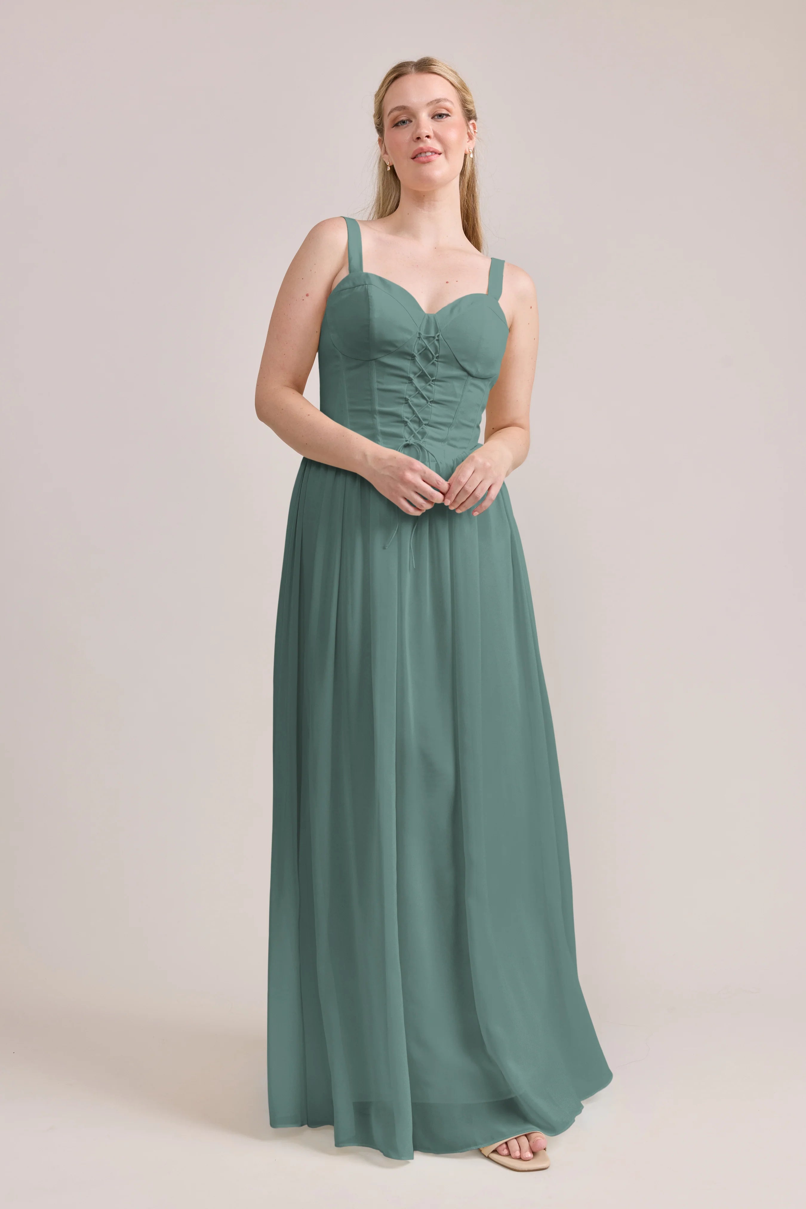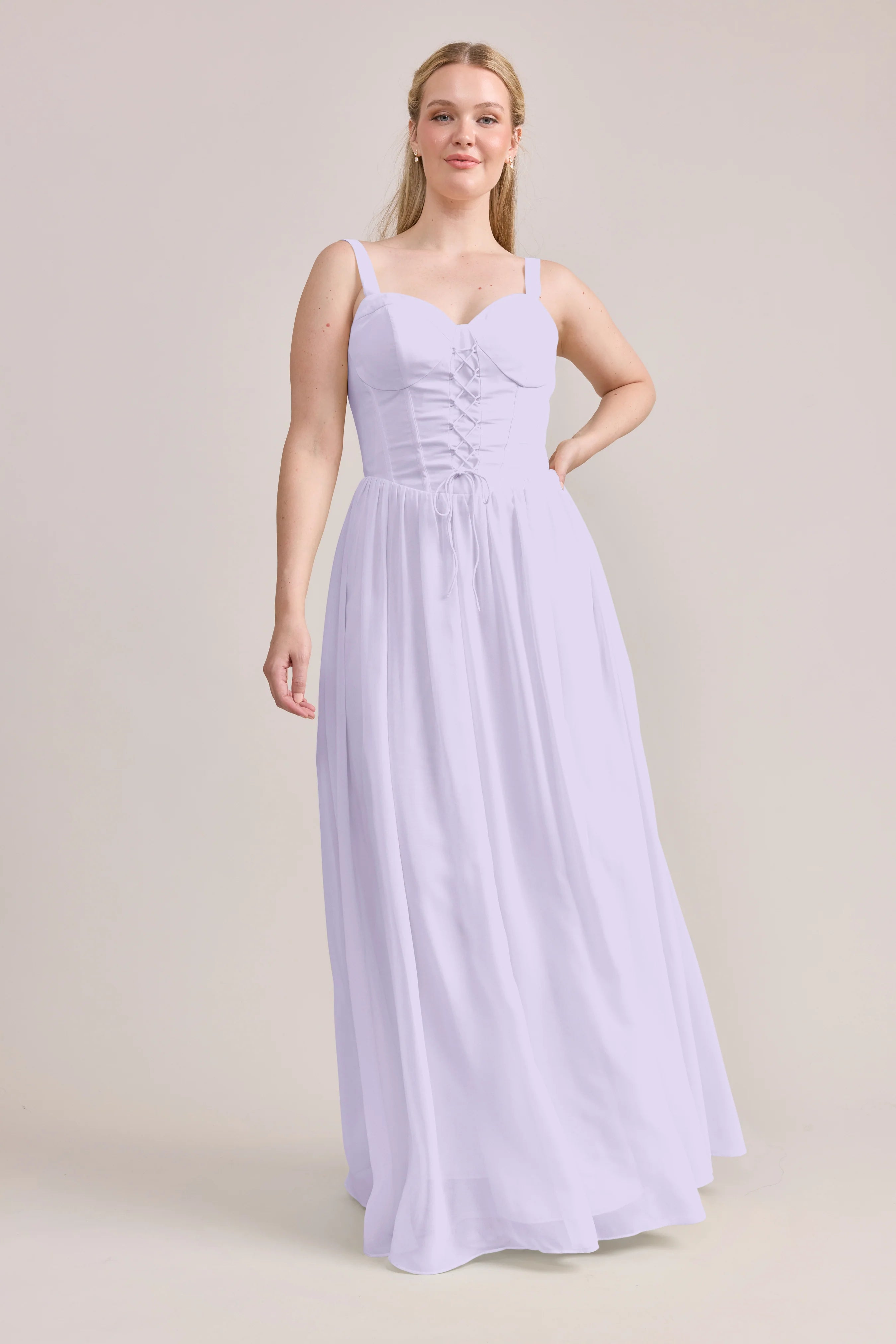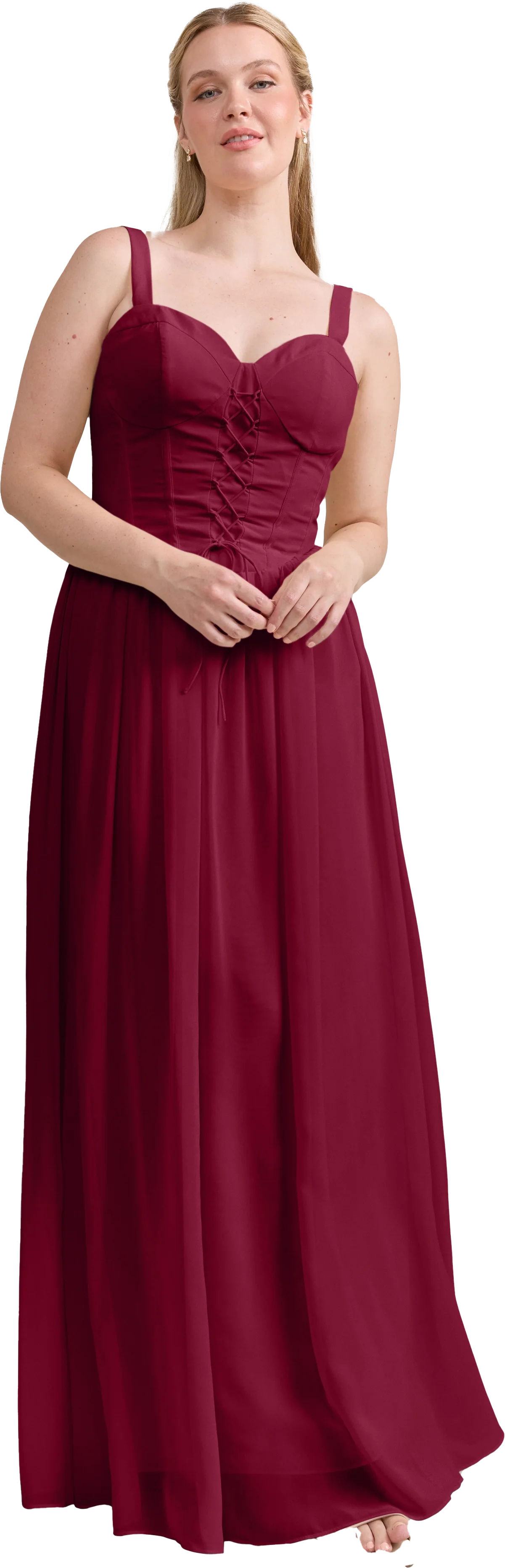 Straight out of a fairytale, the Ellapink Chiffon Dress is a perfect choice for any modern princess. Guaranteed to complement every bridesmaid, she features a flattering basque waistline, dainty corset details throughout, and super supportive adjustable shoulder straps. The best part? She has pockets too.