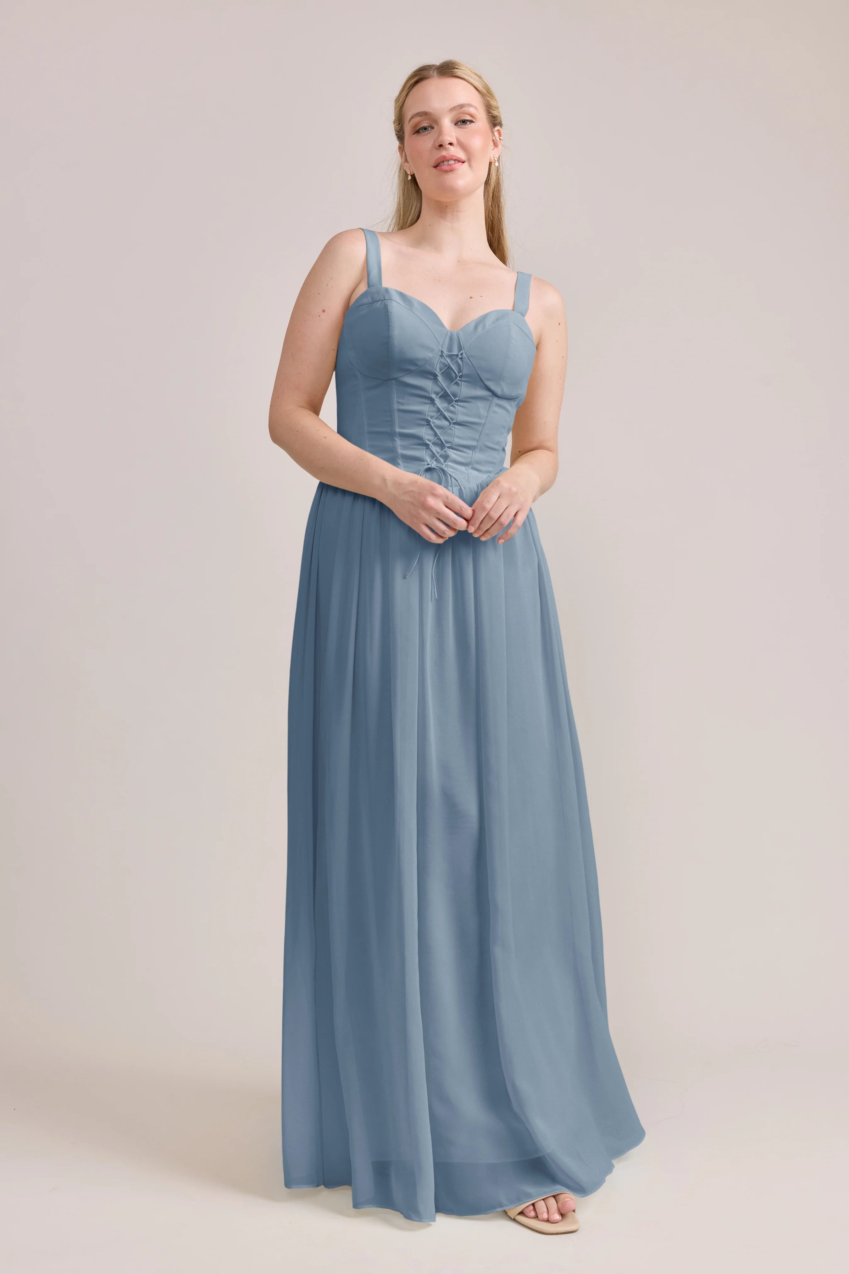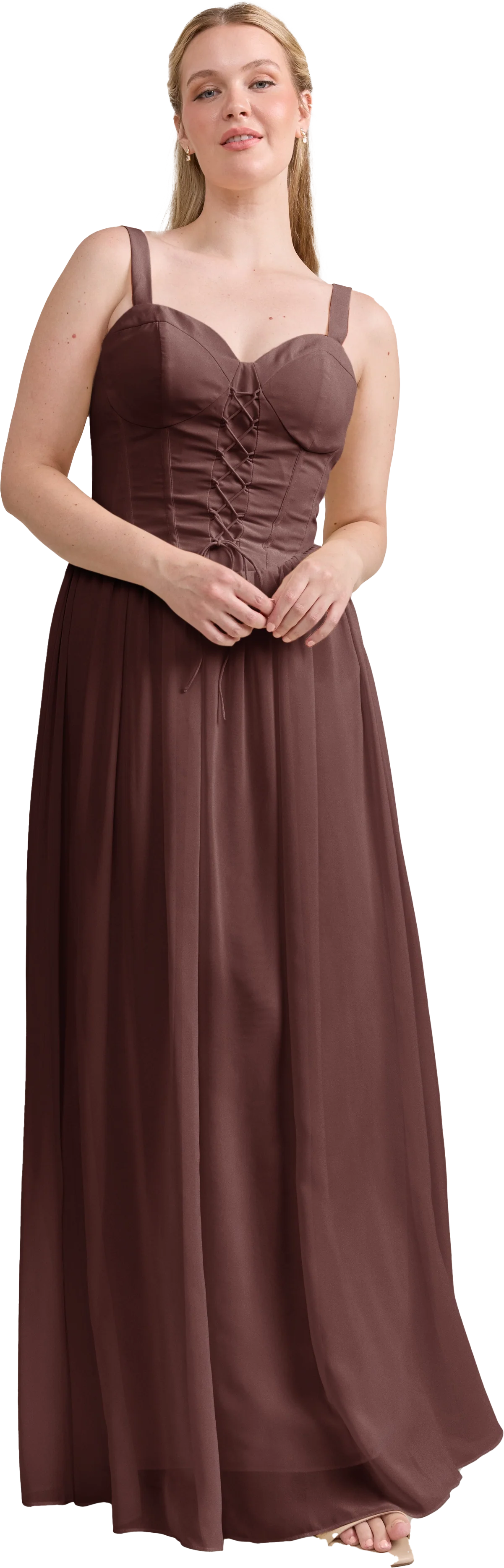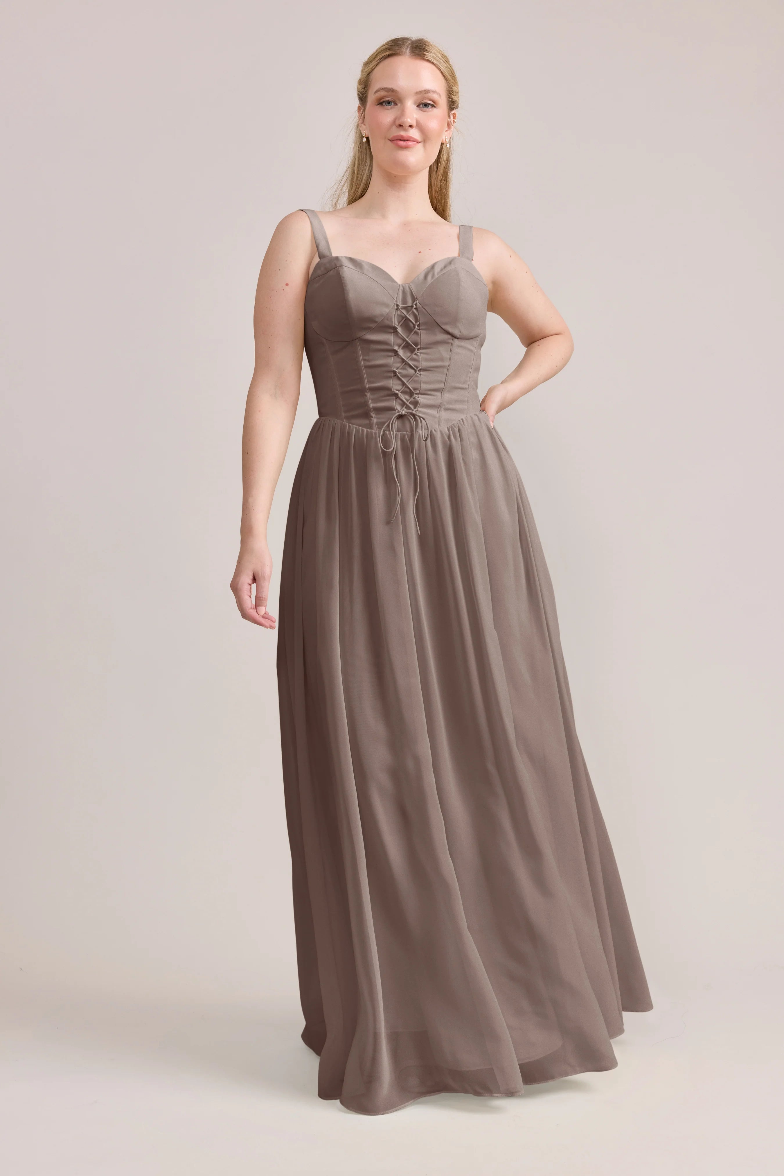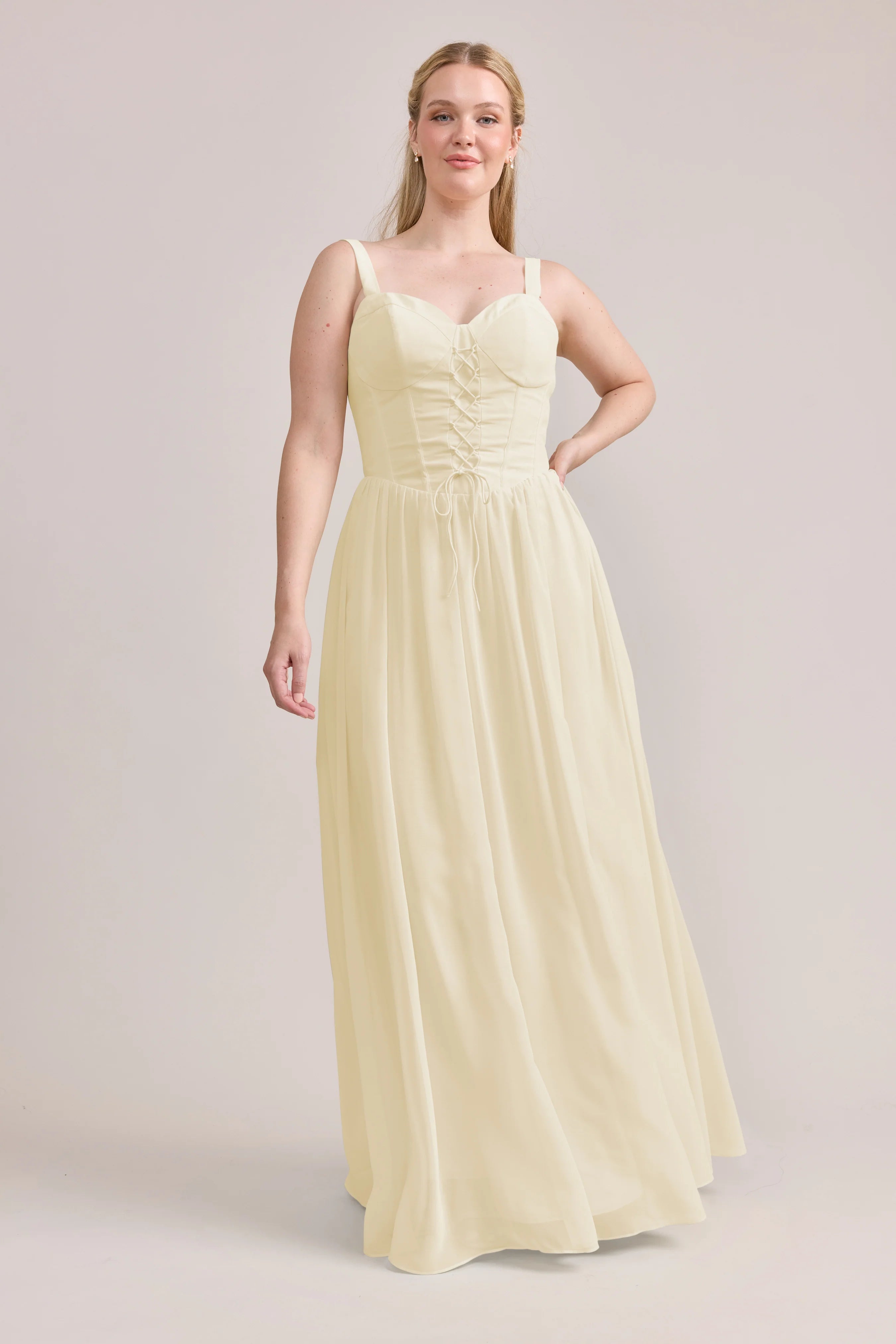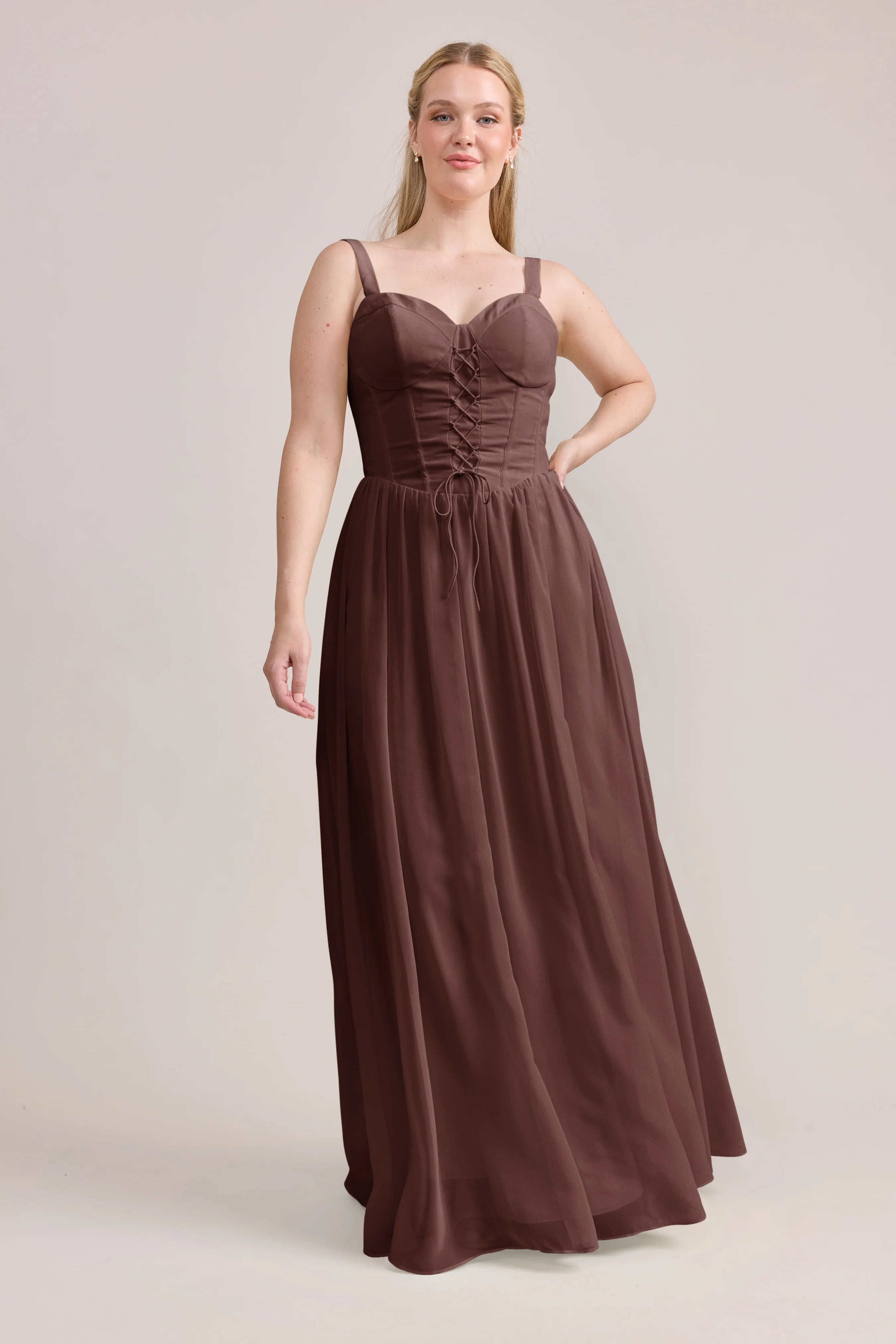 Straight out of a fairytale, the Ellapink Chiffon Dress is a perfect choice for any modern princess. Guaranteed to complement every bridesmaid, she features a flattering basque waistline, dainty corset details throughout, and super supportive adjustable shoulder straps. The best part? She has pockets too.