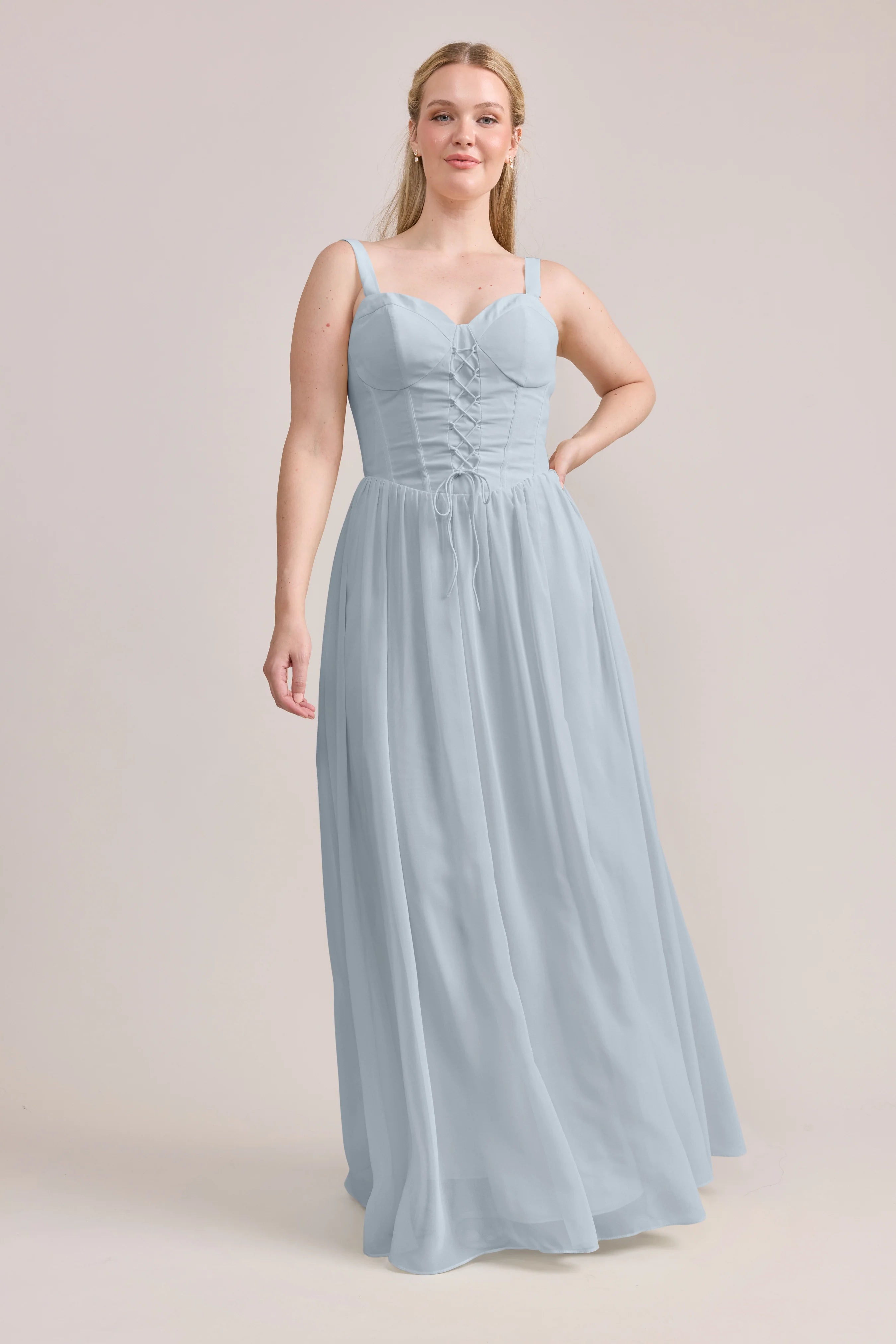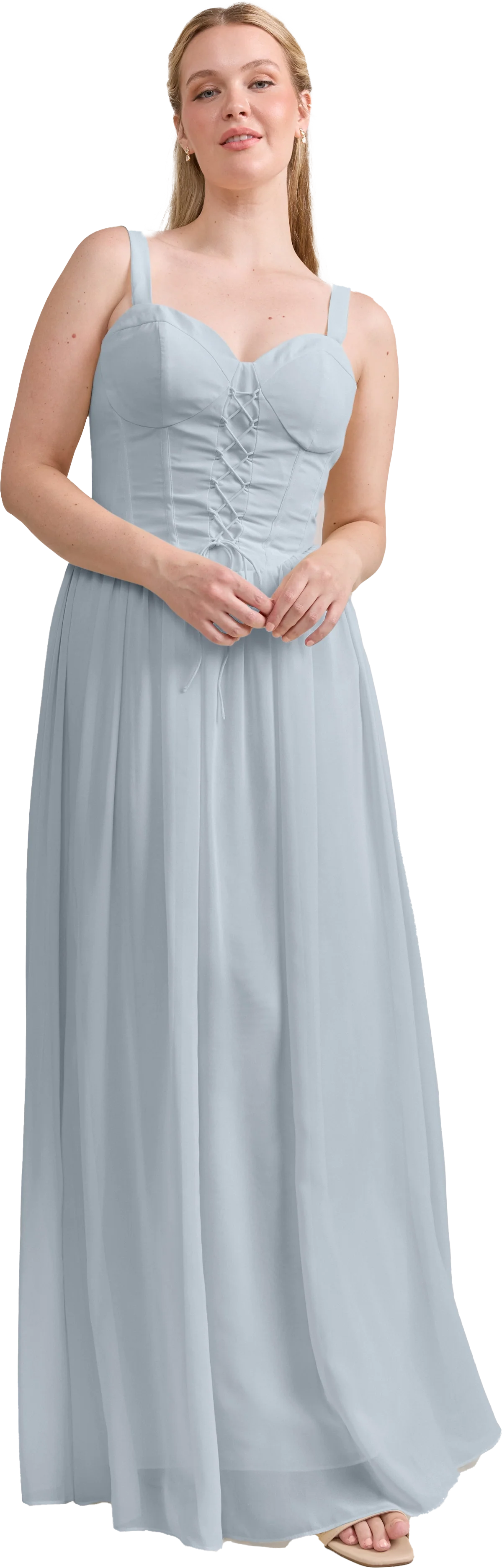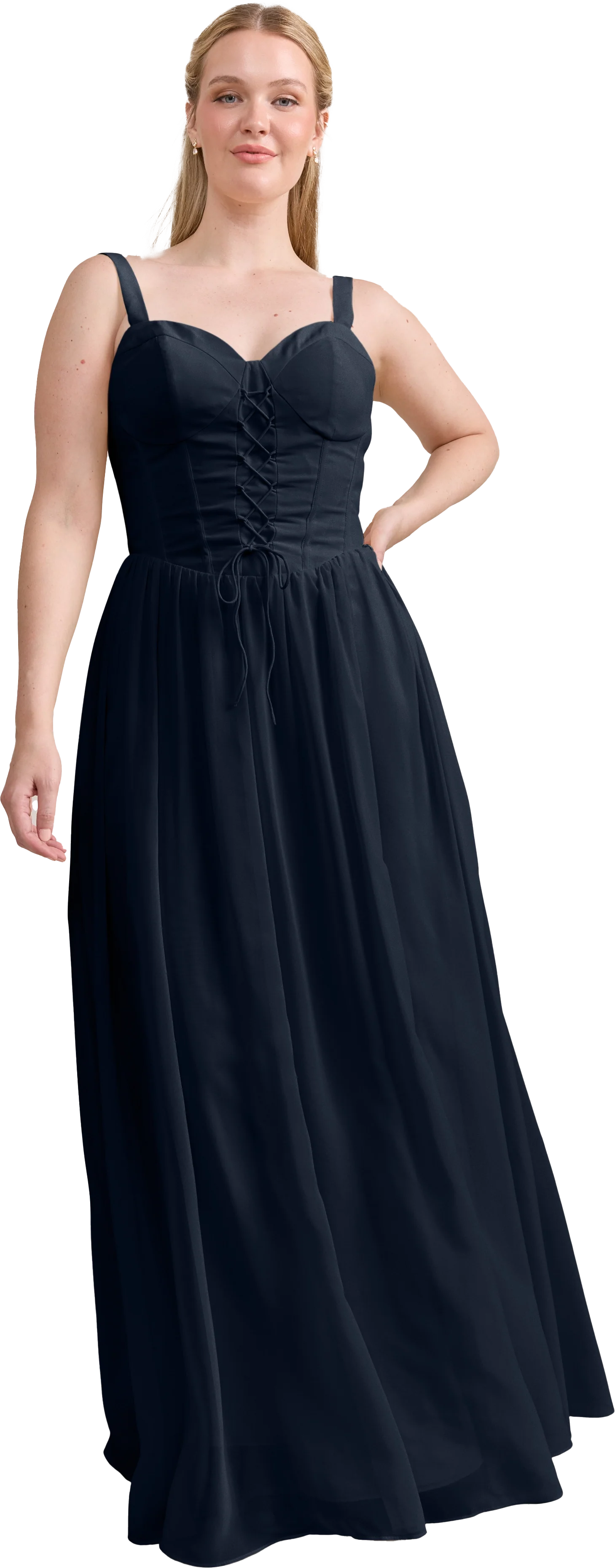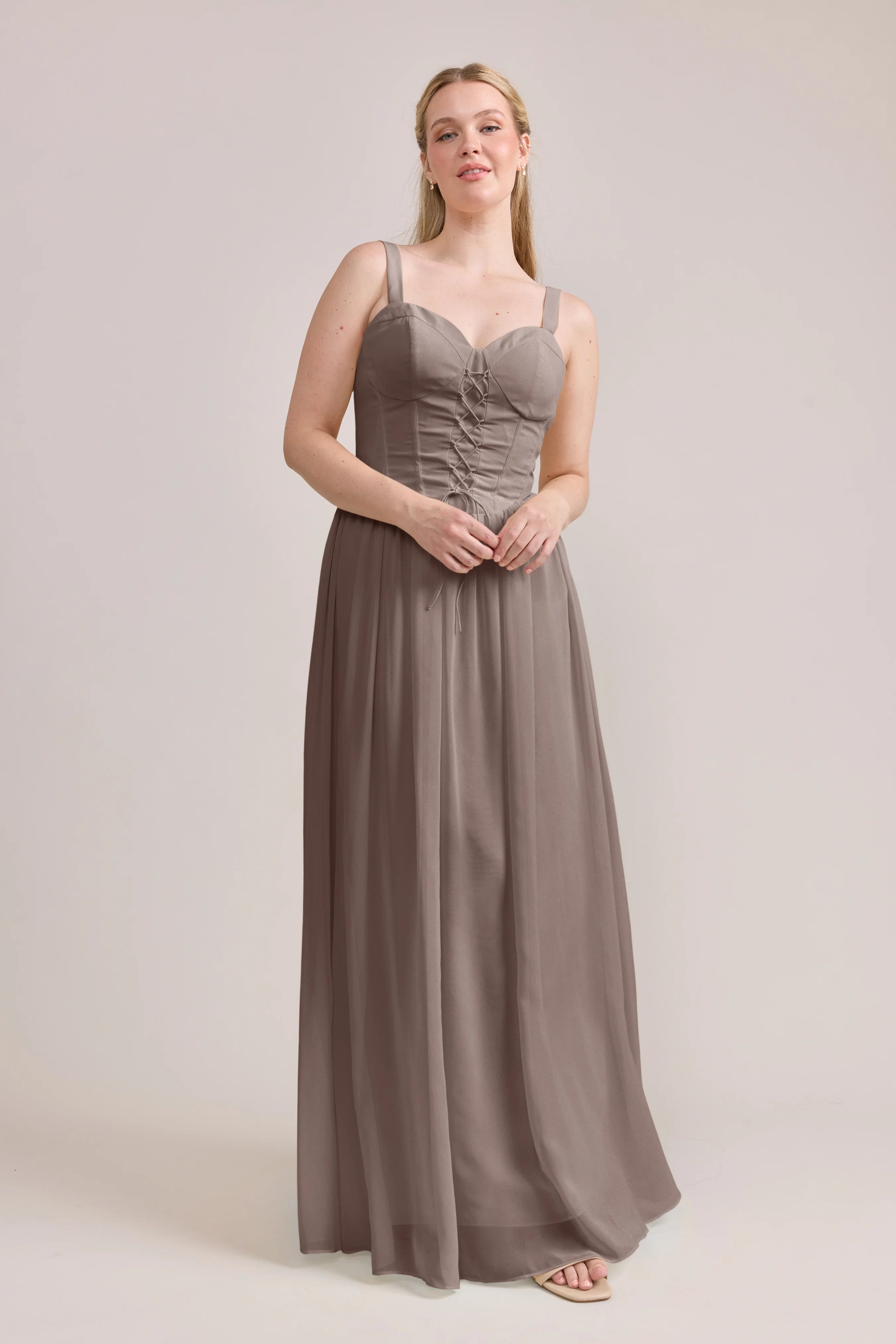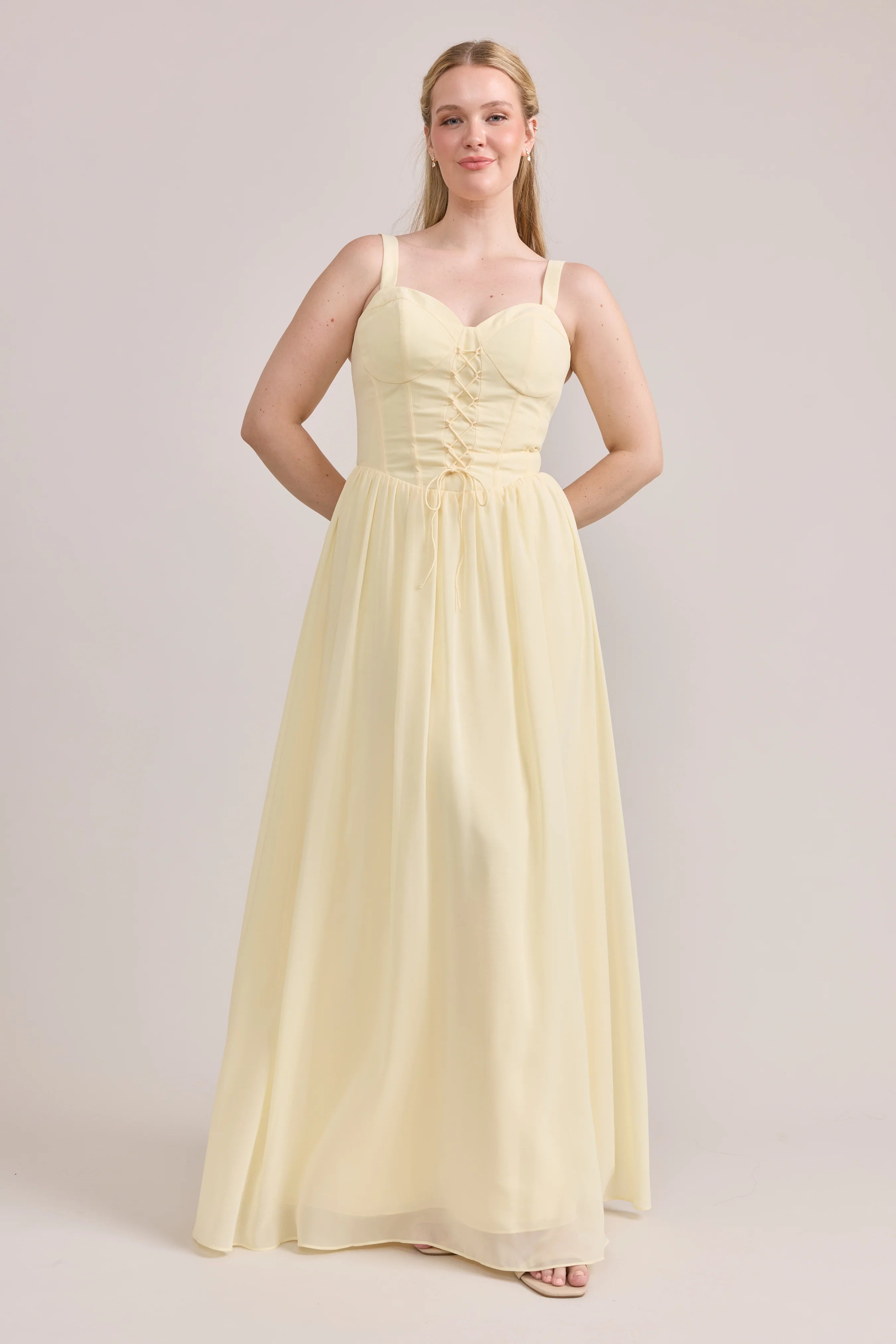 Straight out of a fairytale, the Ellapink Chiffon Dress is a perfect choice for any modern princess. Guaranteed to complement every bridesmaid, she features a flattering basque waistline, dainty corset details throughout, and super supportive adjustable shoulder straps. The best part? She has pockets too.