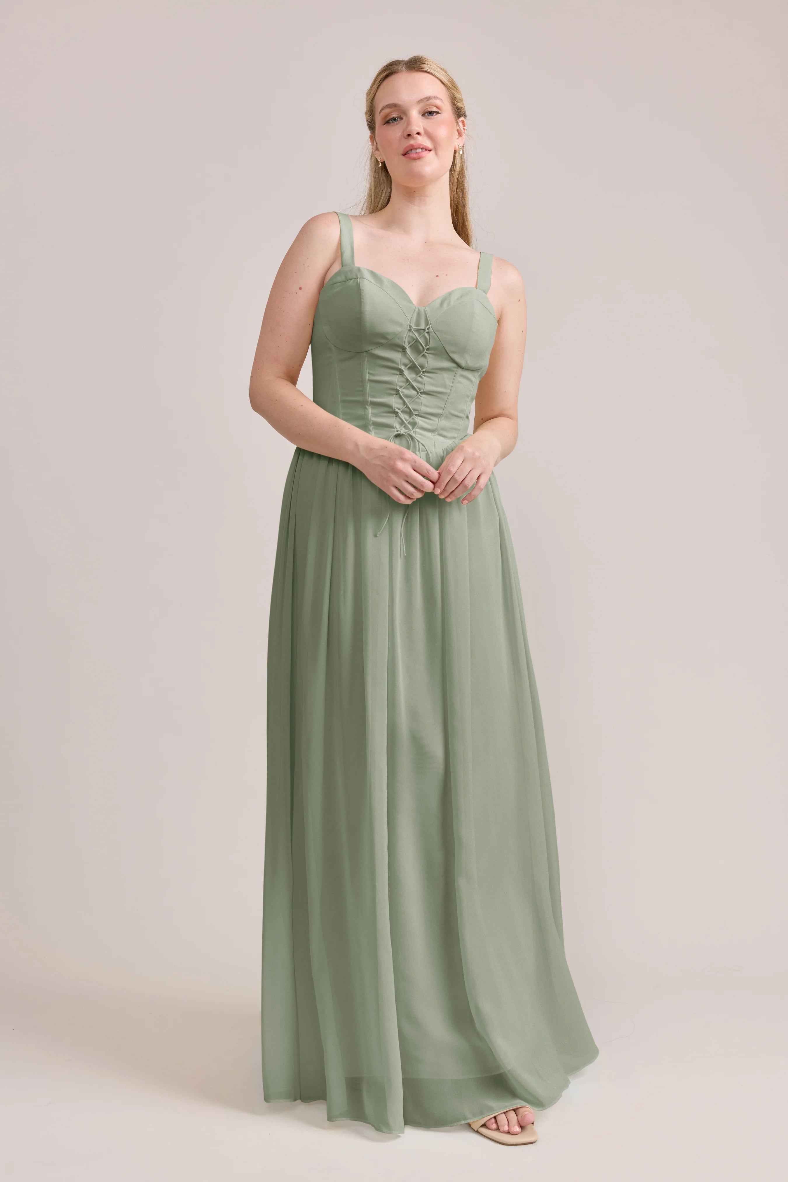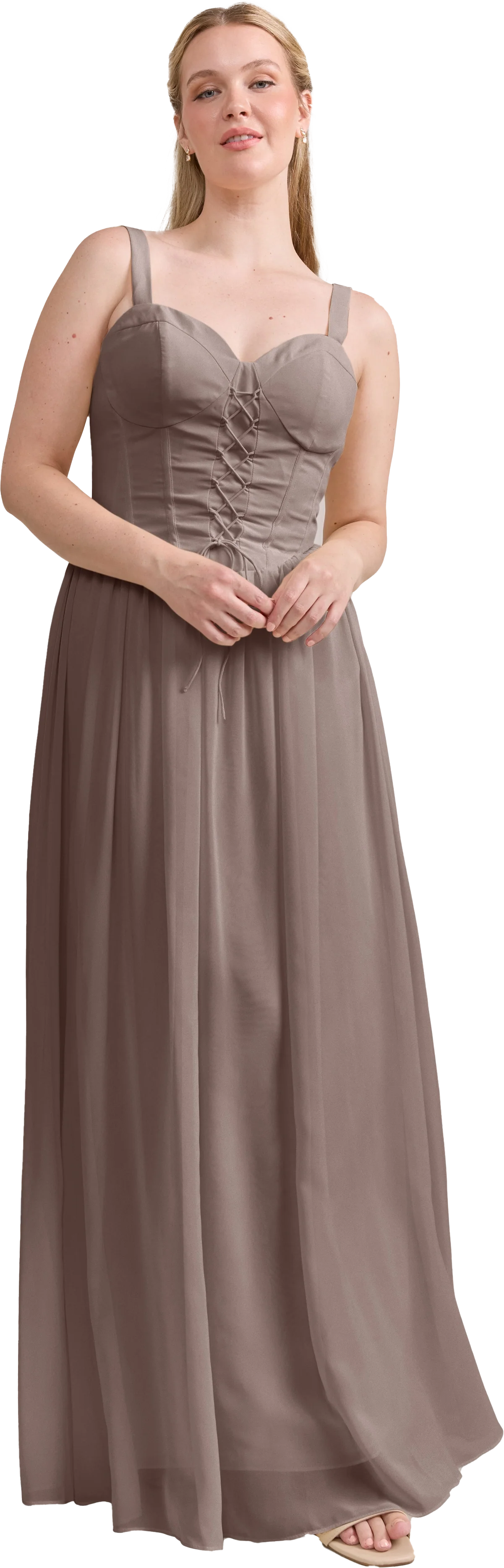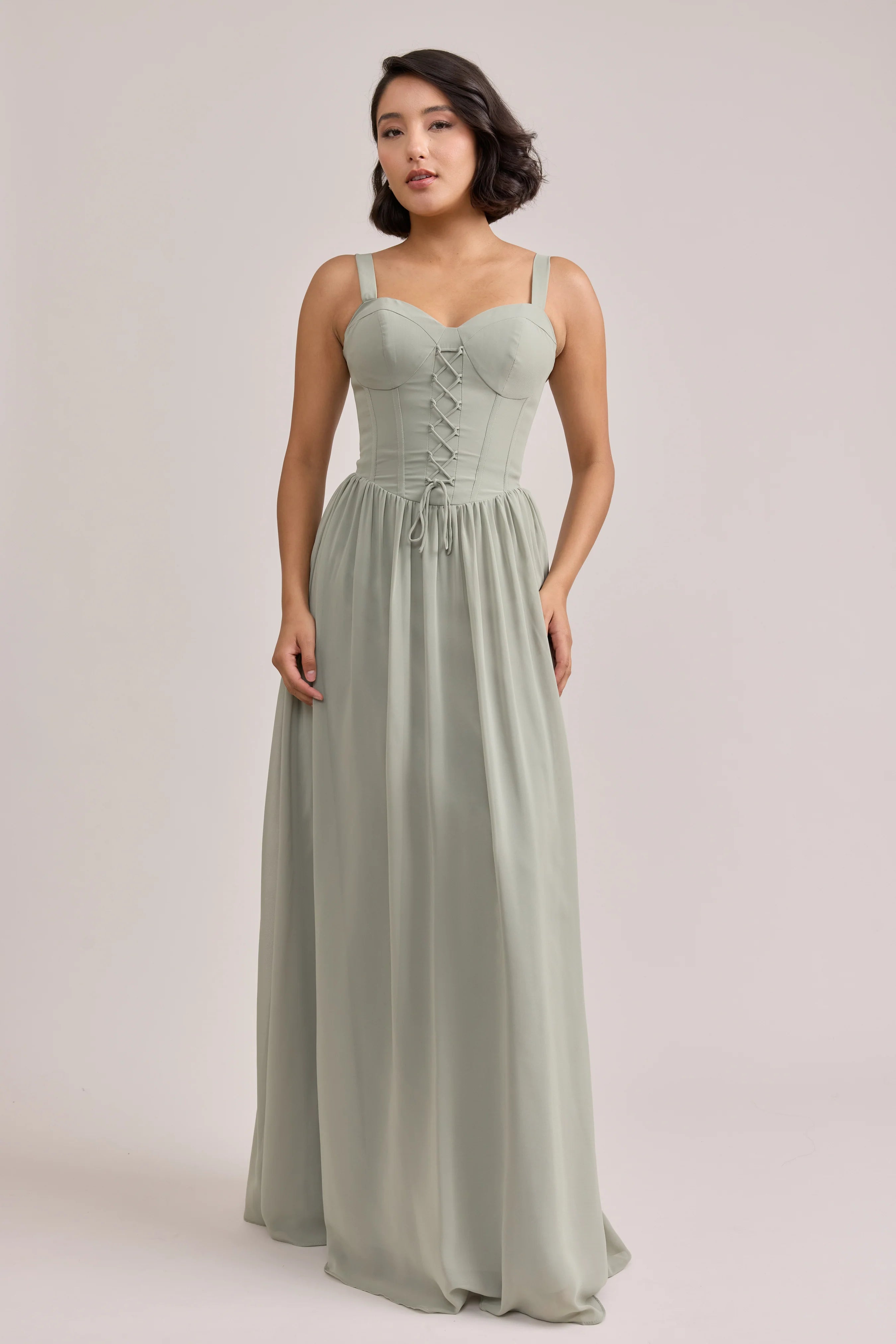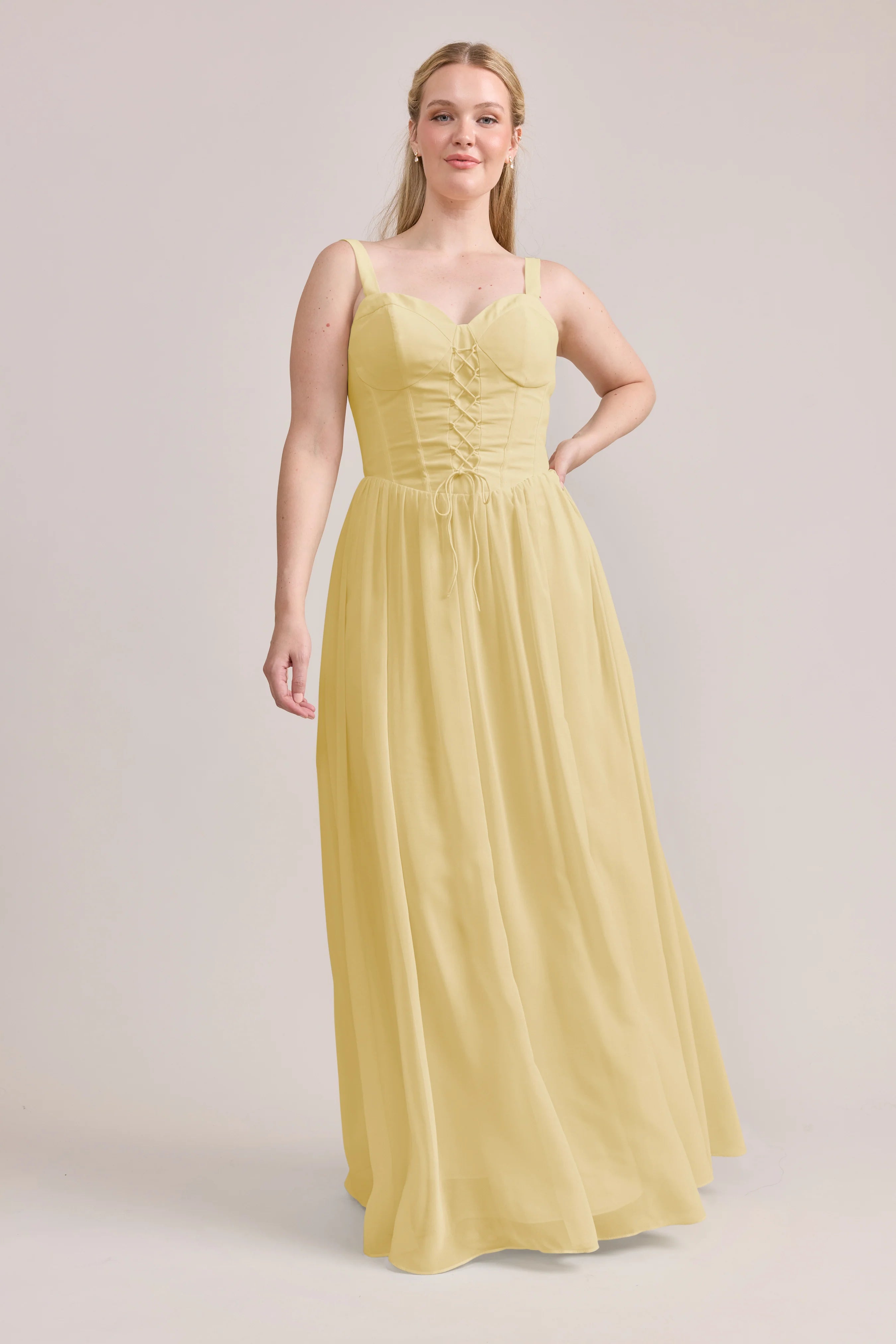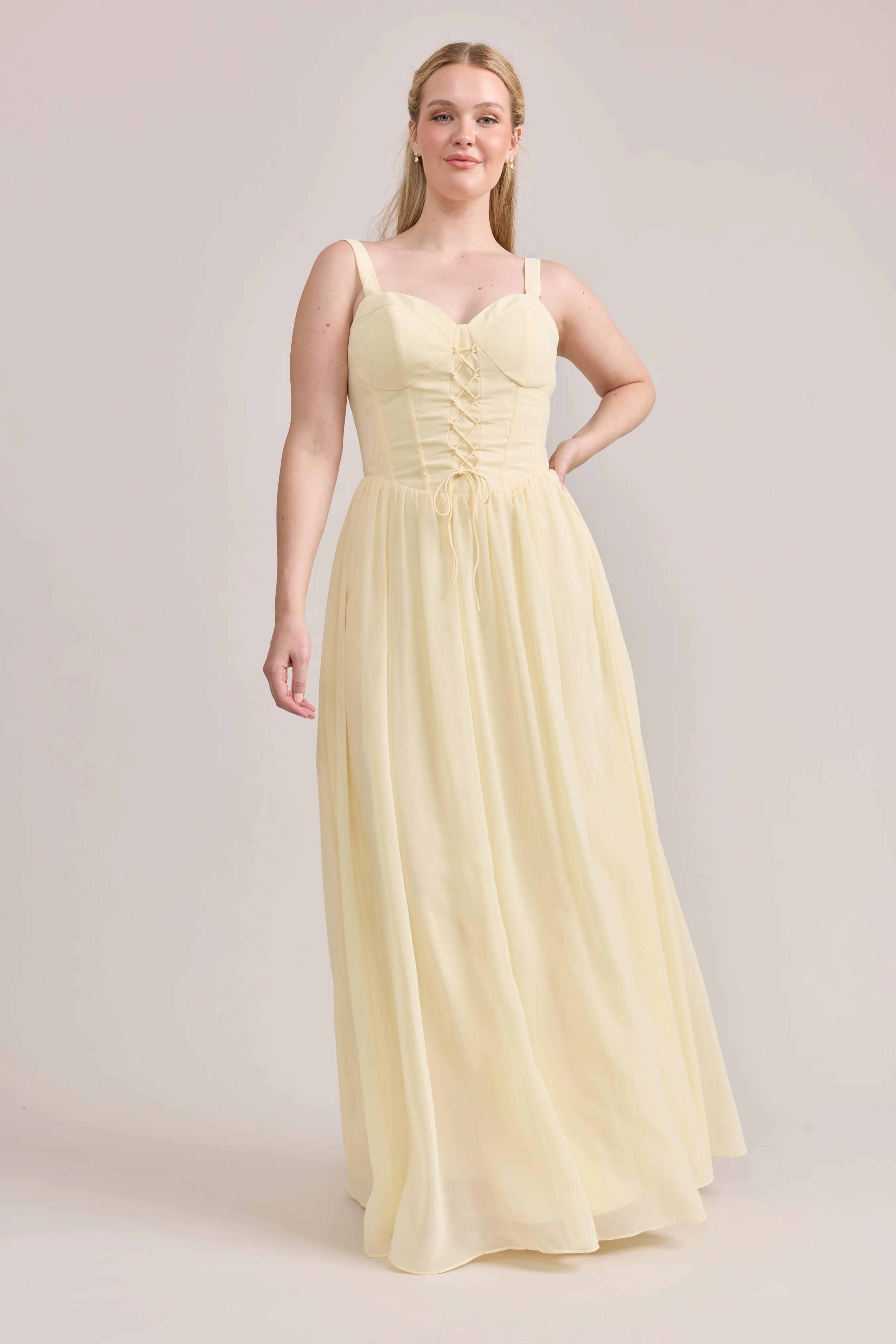 Straight out of a fairytale, the Ellapink Chiffon Dress is a perfect choice for any modern princess. Guaranteed to complement every bridesmaid, she features a flattering basque waistline, dainty corset details throughout, and super supportive adjustable shoulder straps. The best part? She has pockets too.