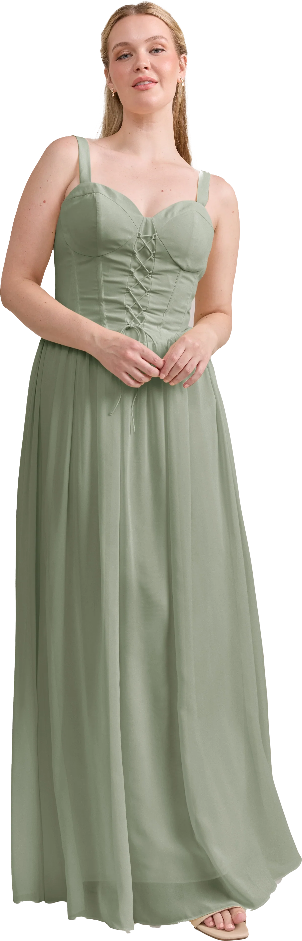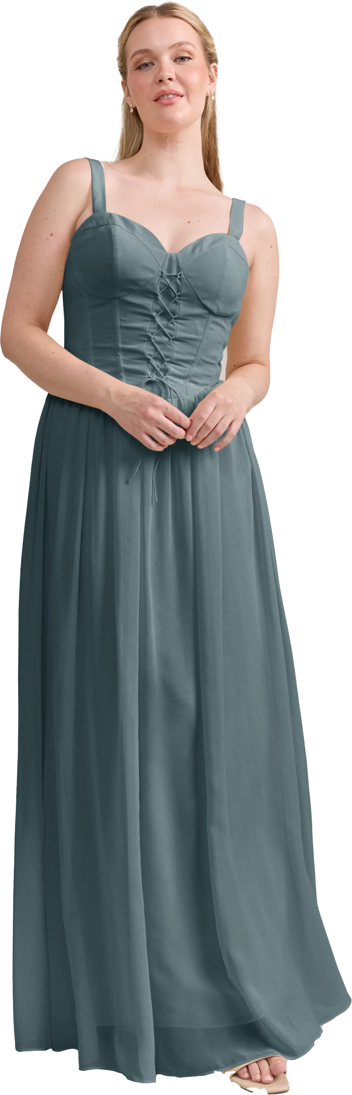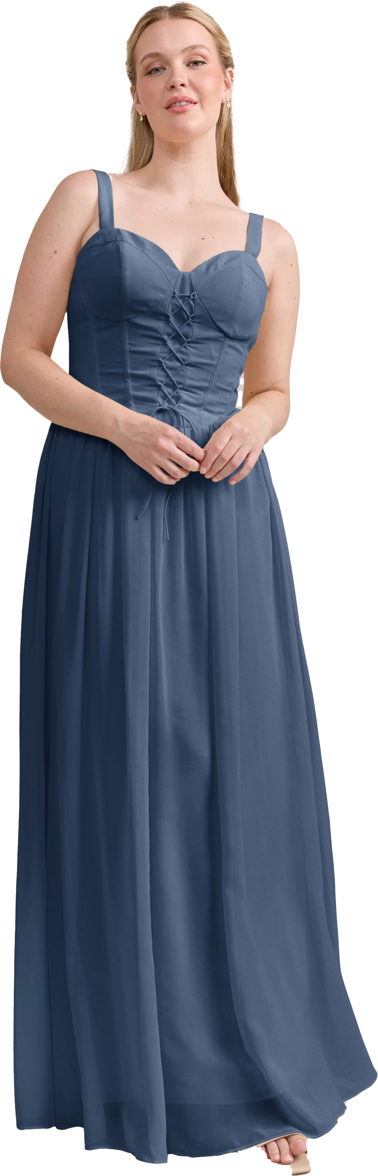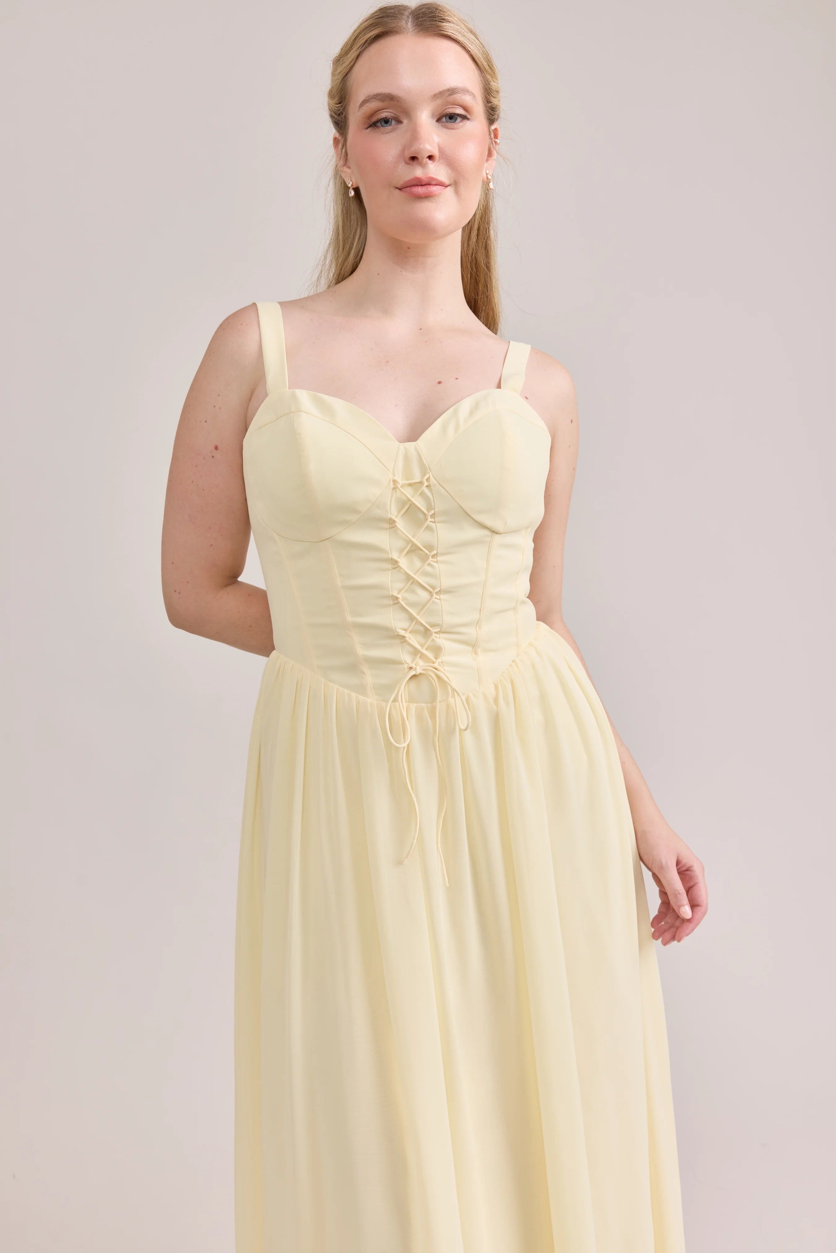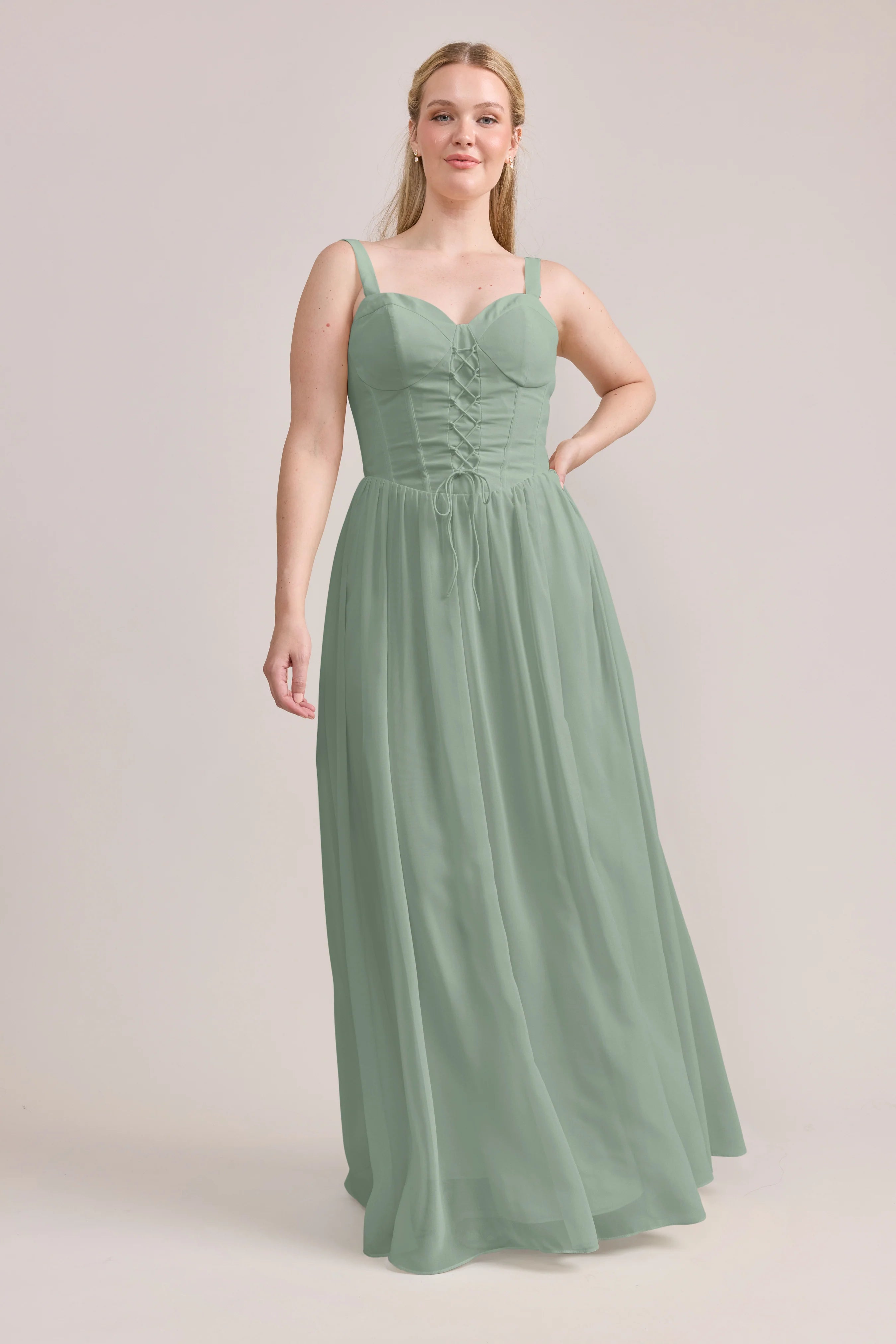 Straight out of a fairytale, the Ellapink Chiffon Dress is a perfect choice for any modern princess. Guaranteed to complement every bridesmaid, she features a flattering basque waistline, dainty corset details throughout, and super supportive adjustable shoulder straps. The best part? She has pockets too.