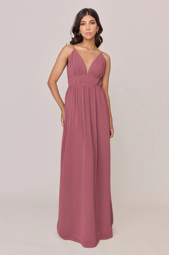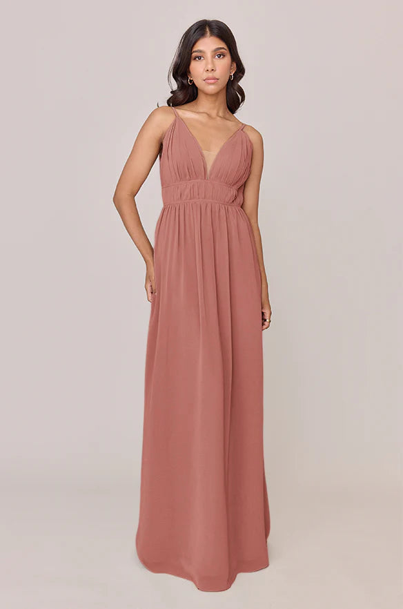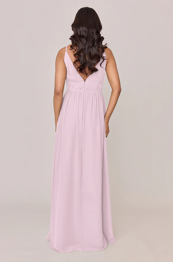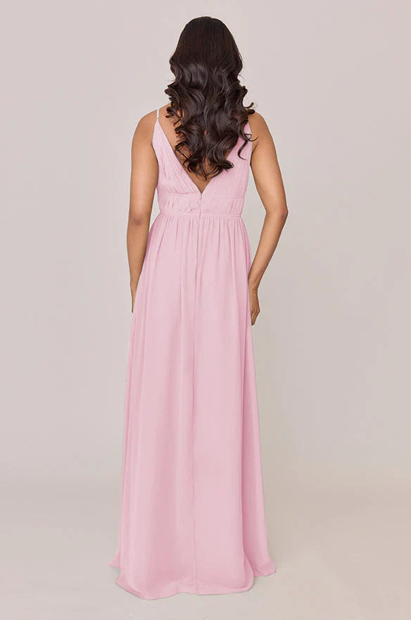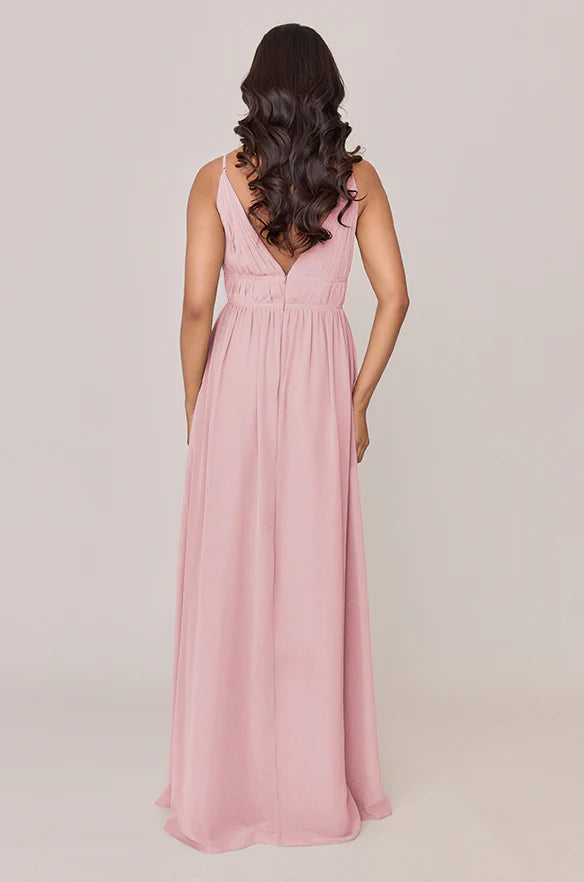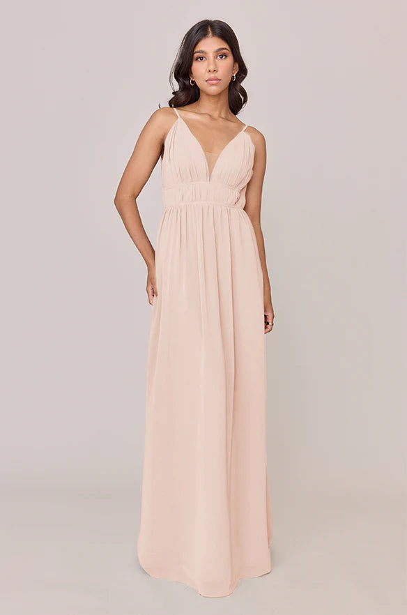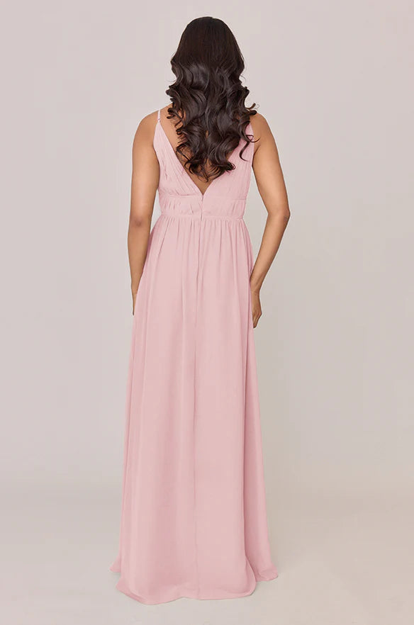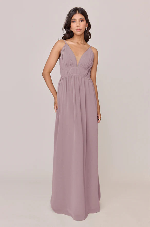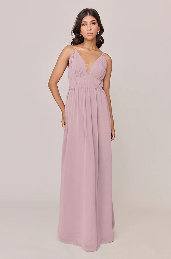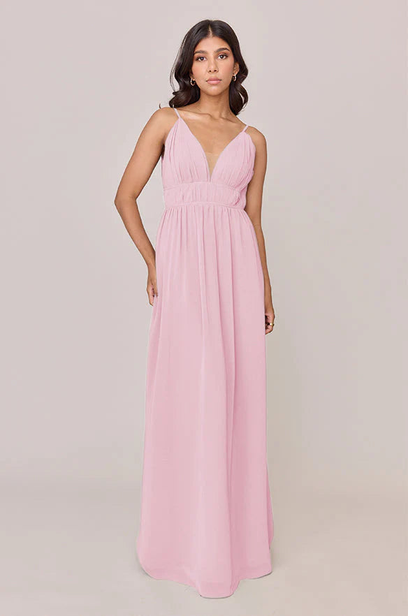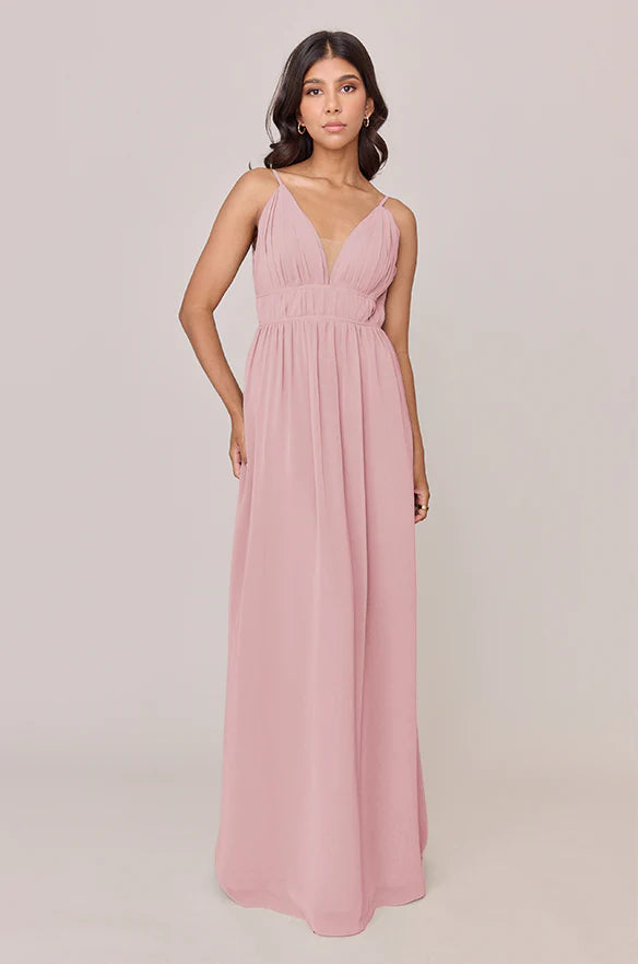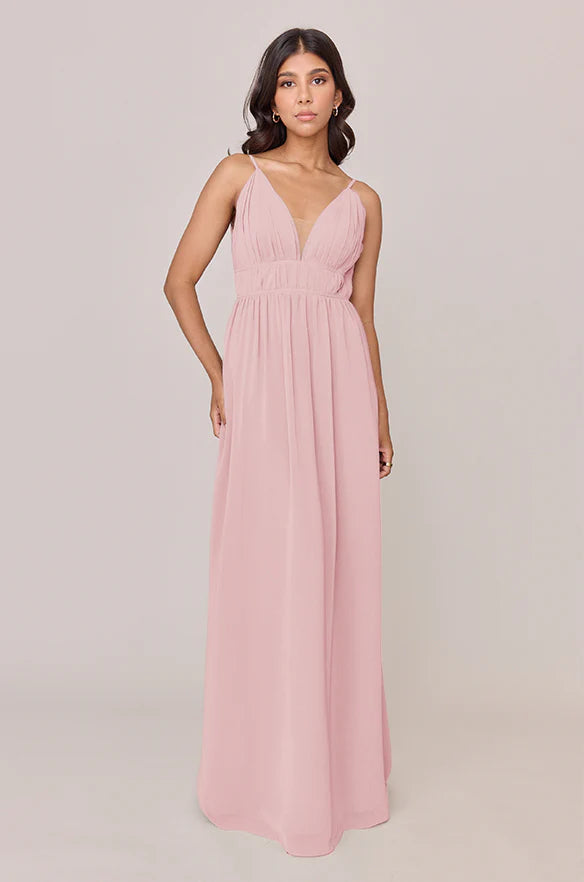 Our Ellapink dress is both a modern and romantic chiffon style that features a cute double waistline detail making it the dream dress for your big day! Alma is a modest style in her fit and has more coverage at the bust from the skin-tone illusion mesh design allowing her to flatter every body type.