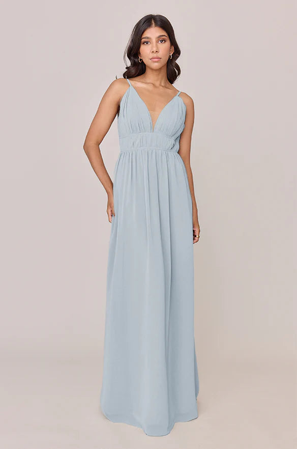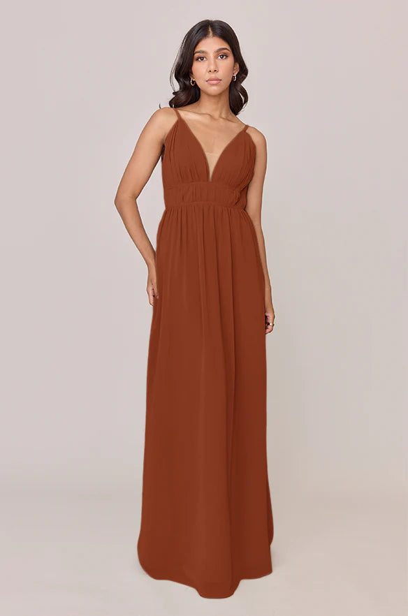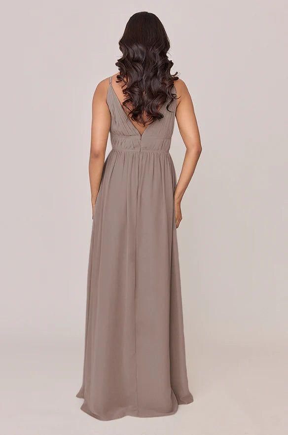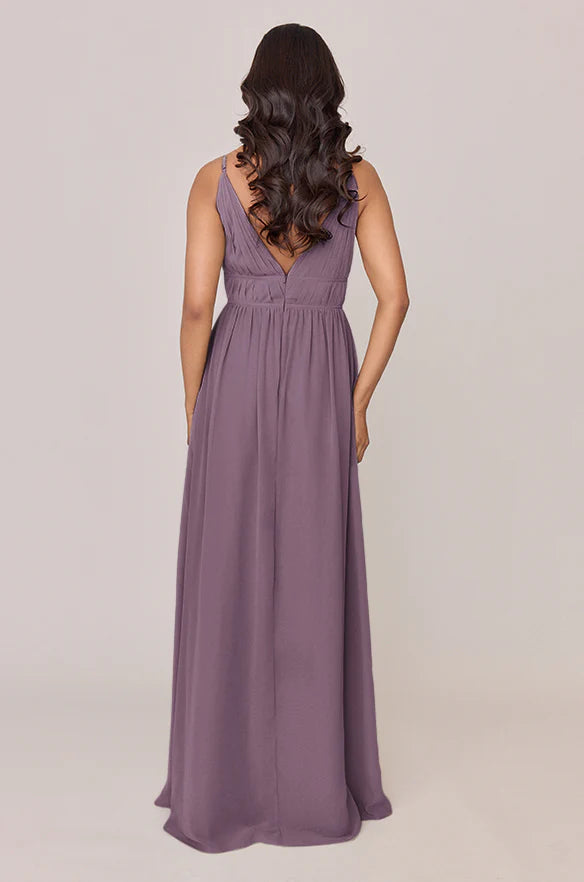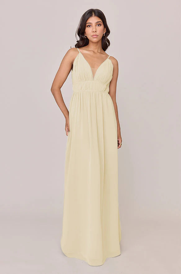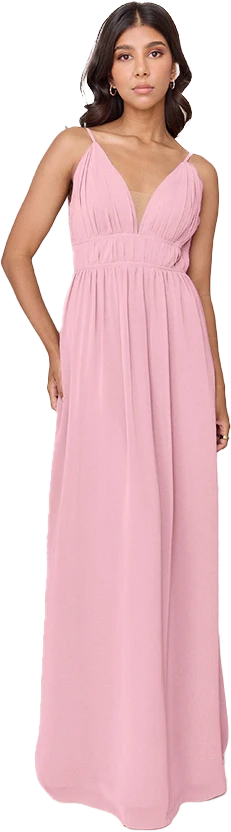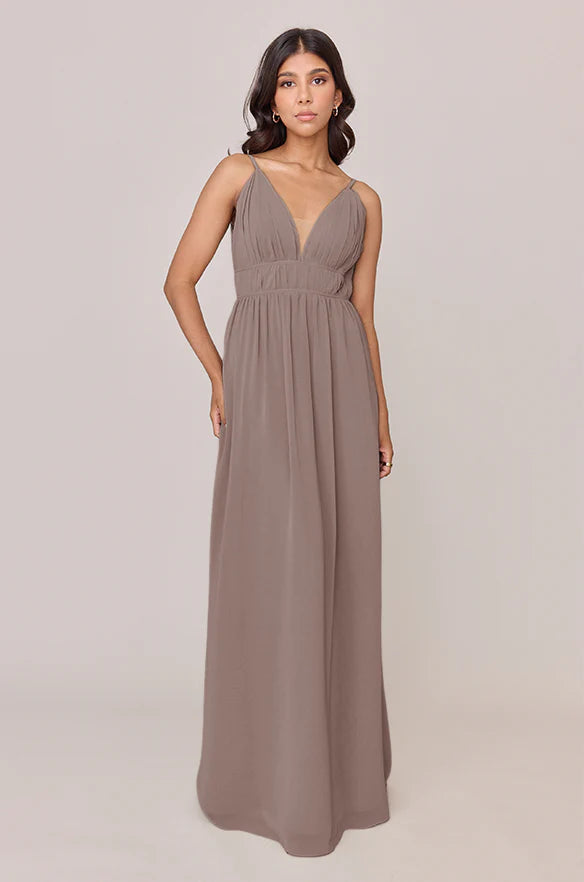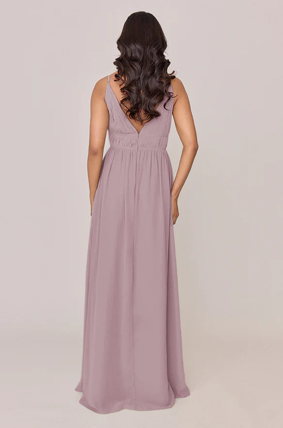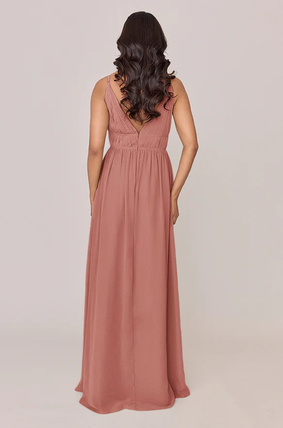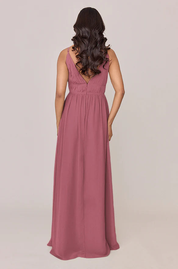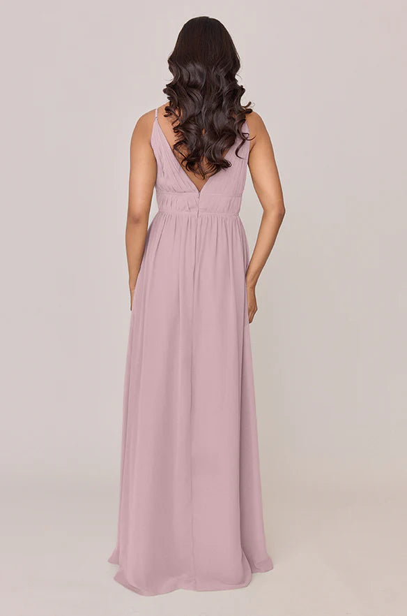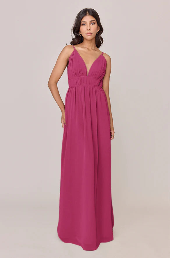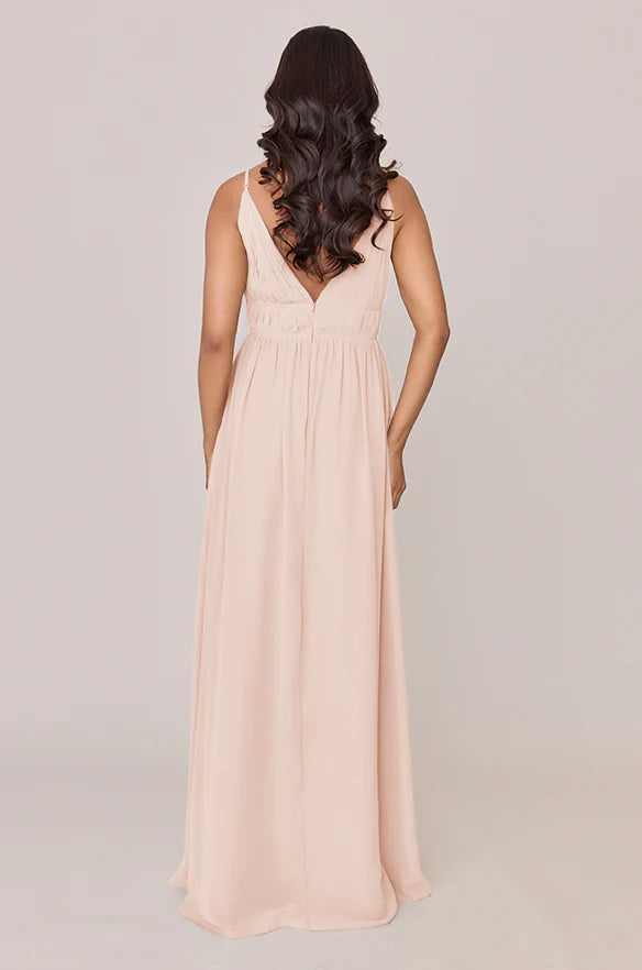 Our Ellapink dress is both a modern and romantic chiffon style that features a cute double waistline detail making it the dream dress for your big day! Alma is a modest style in her fit and has more coverage at the bust from the skin-tone illusion mesh design allowing her to flatter every body type.