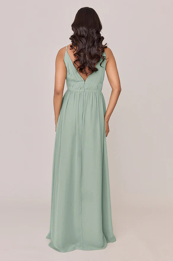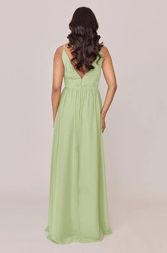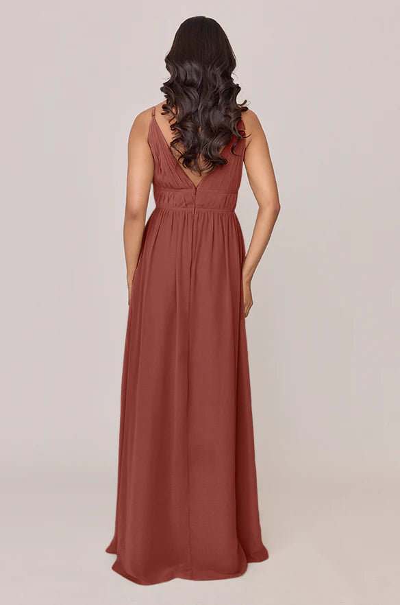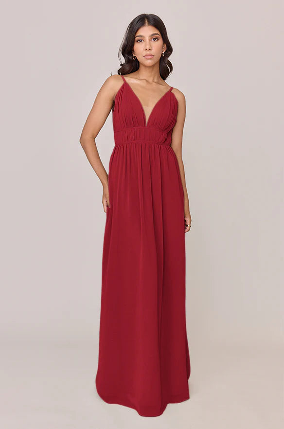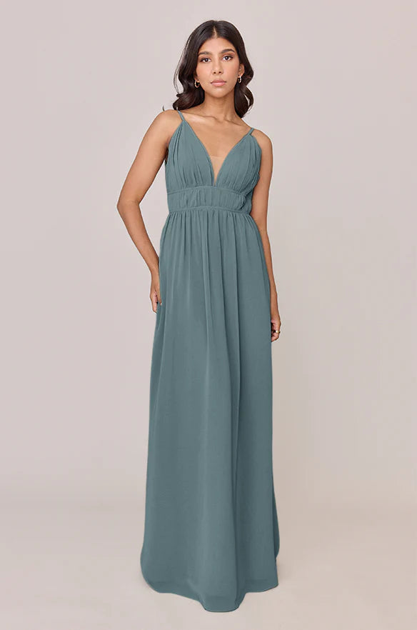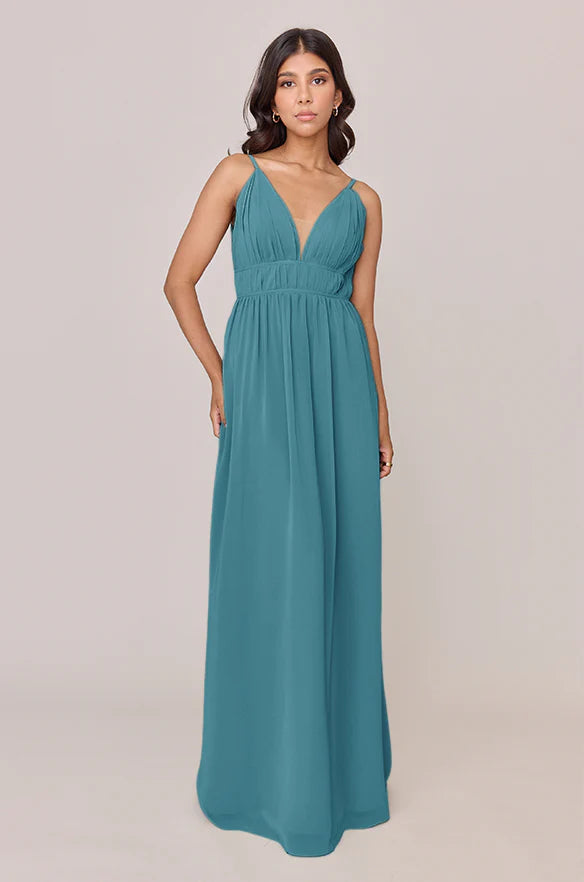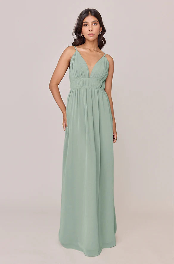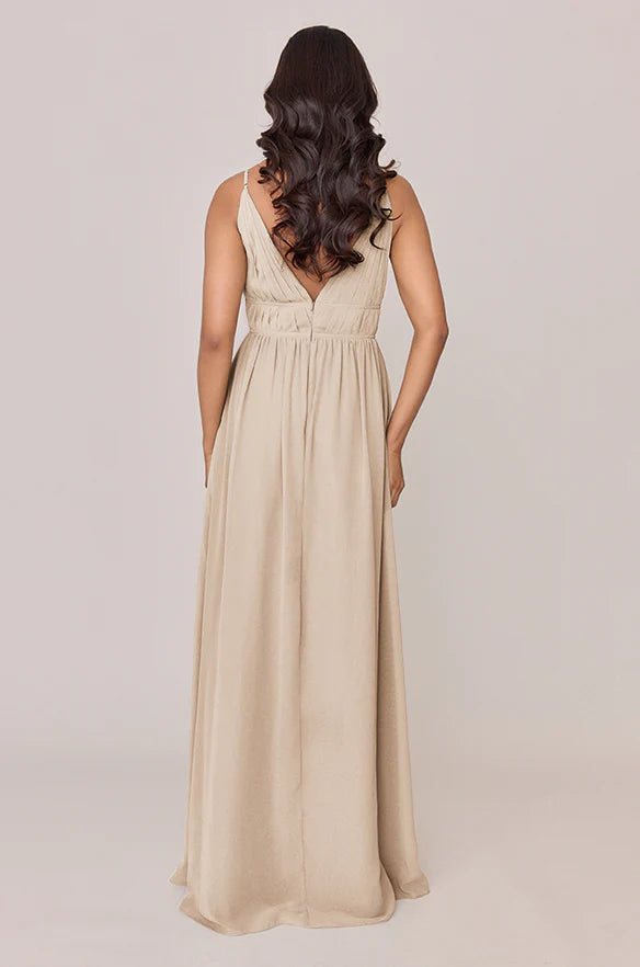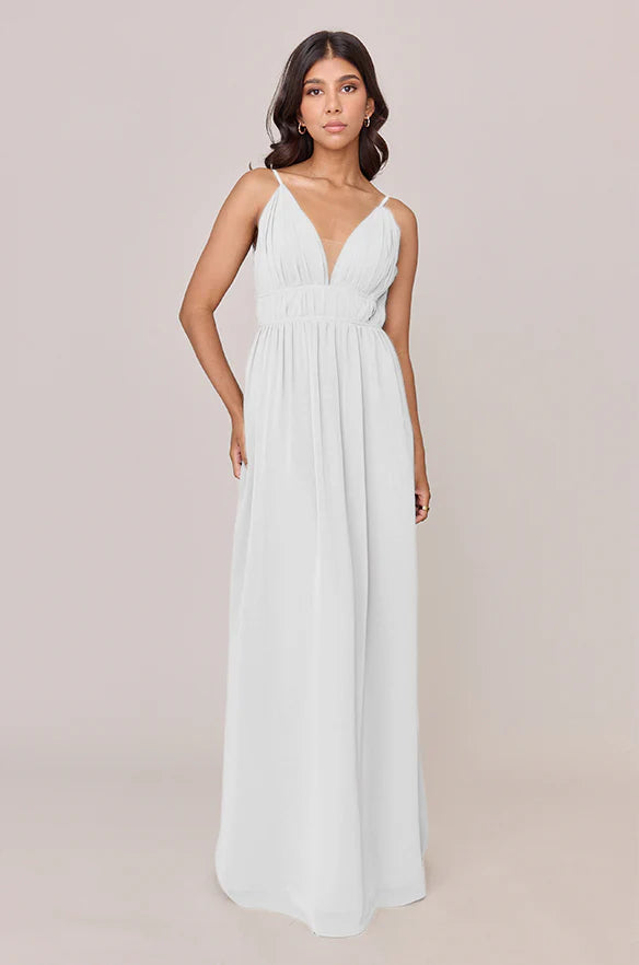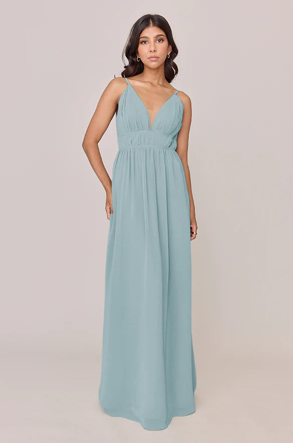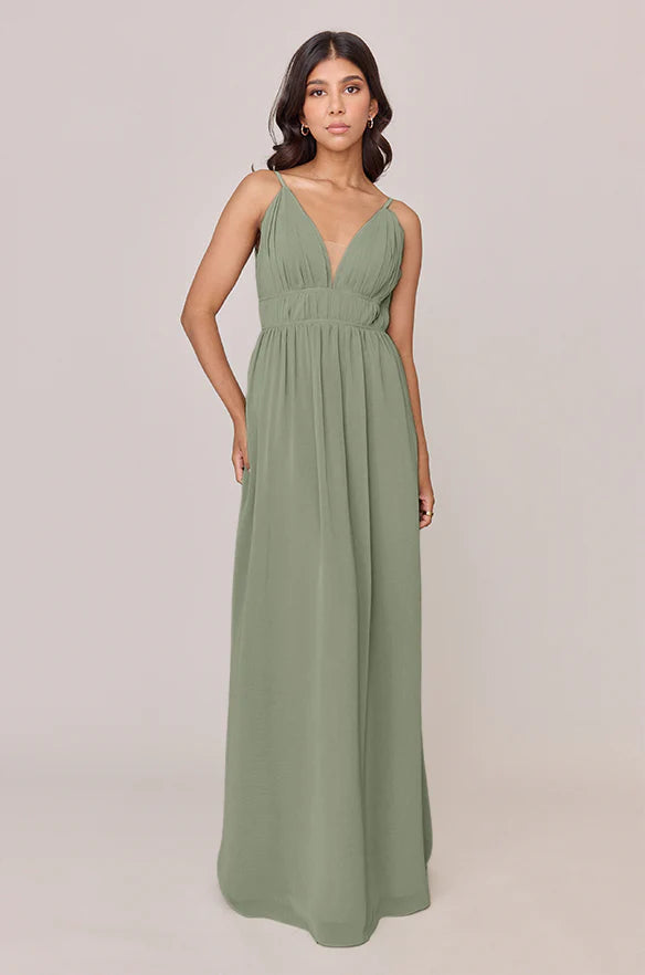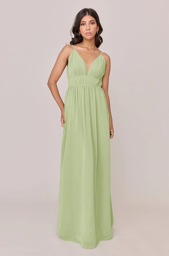 Our Ellapink dress is both a modern and romantic chiffon style that features a cute double waistline detail making it the dream dress for your big day! Alma is a modest style in her fit and has more coverage at the bust from the skin-tone illusion mesh design allowing her to flatter every body type.