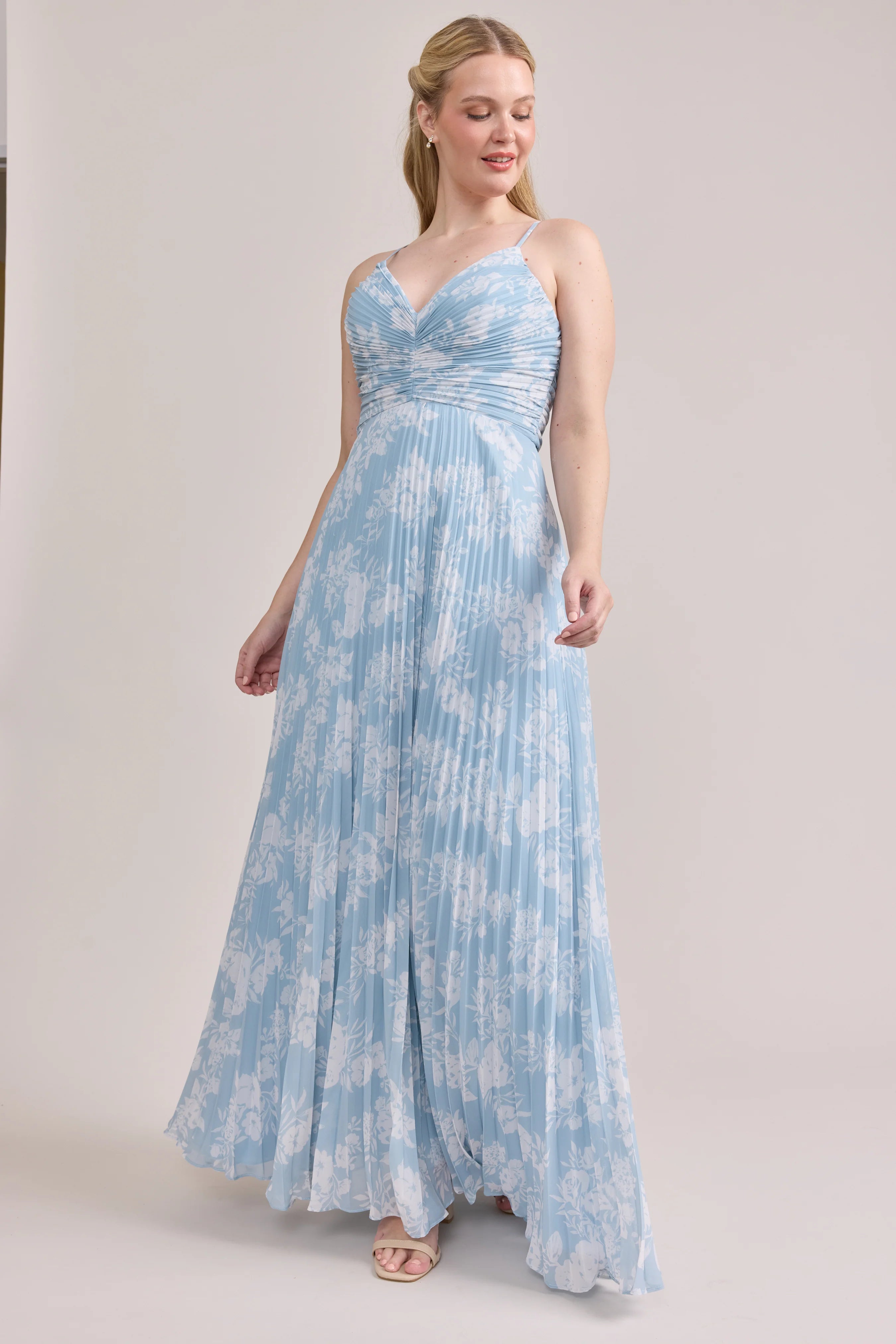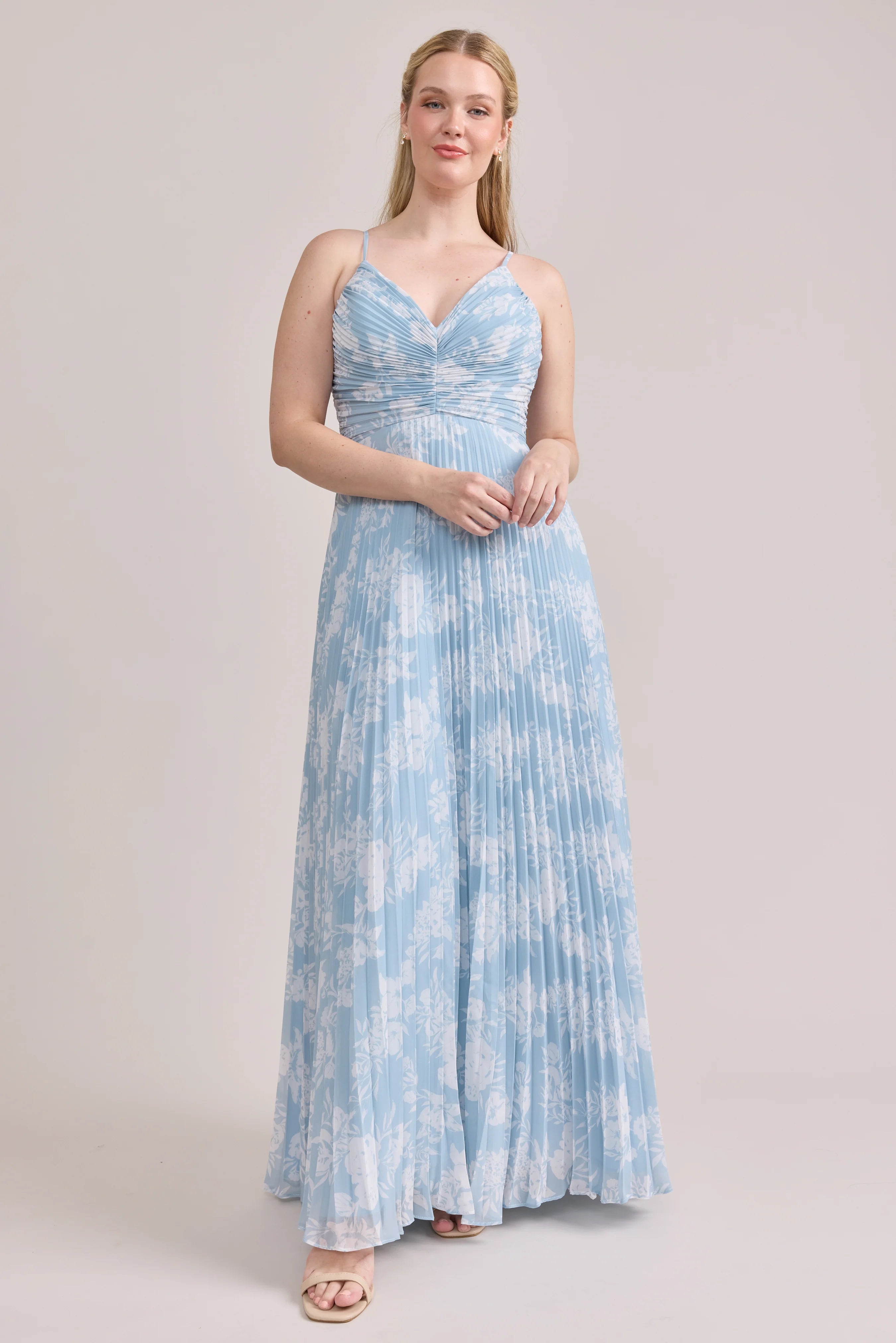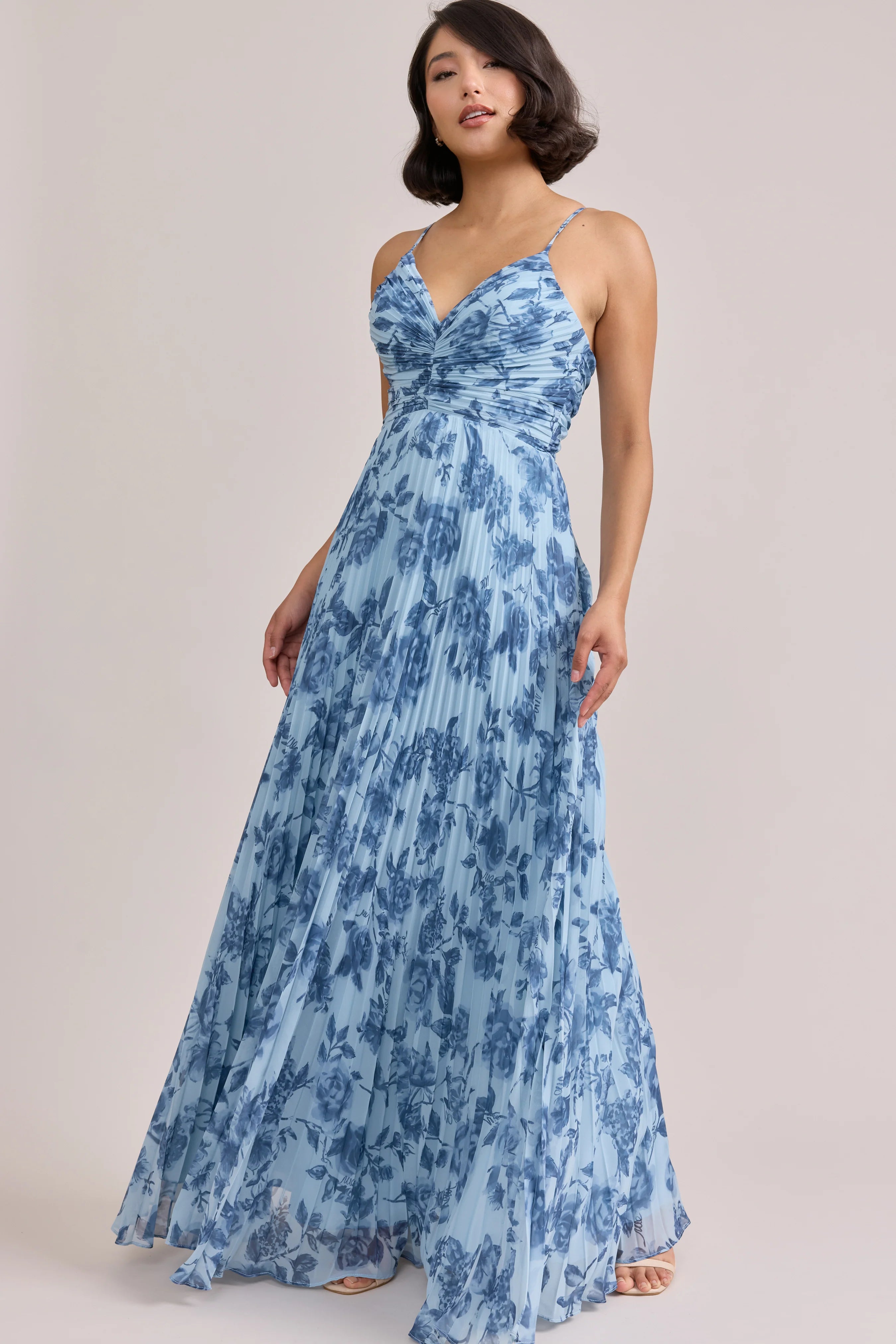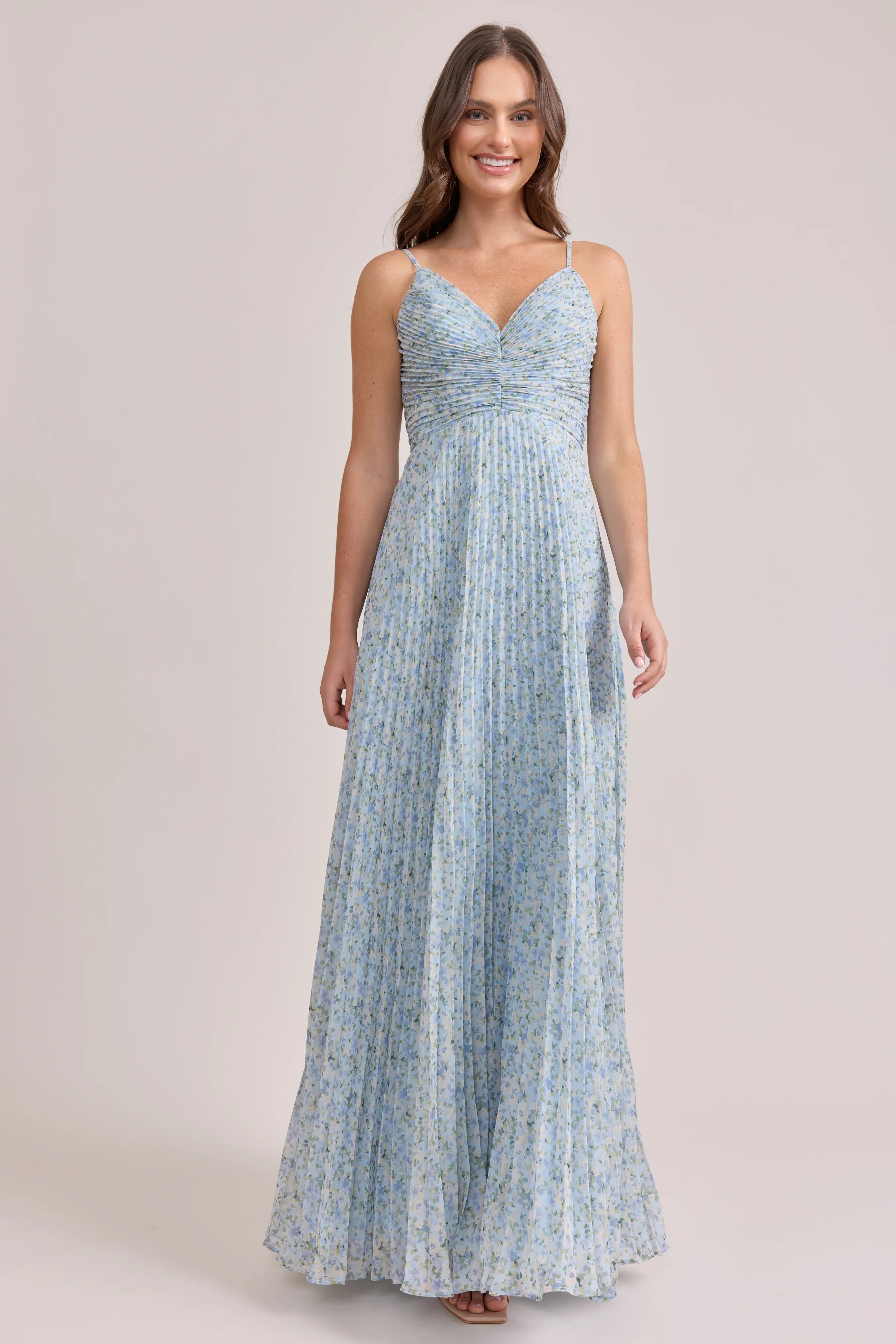 Our bestselling Ellapink Satin Dress, reimagined in Chiffon! Her pleated butterfly-esc bodice offers both great support and nostalgic vibes, sitting at an empire waistline, her vertical chiffon pleats flow down for a flowy and comfortable fit. Interior boning, dainty adjustable straps and a lace-up back allow for added support and flexibility.
