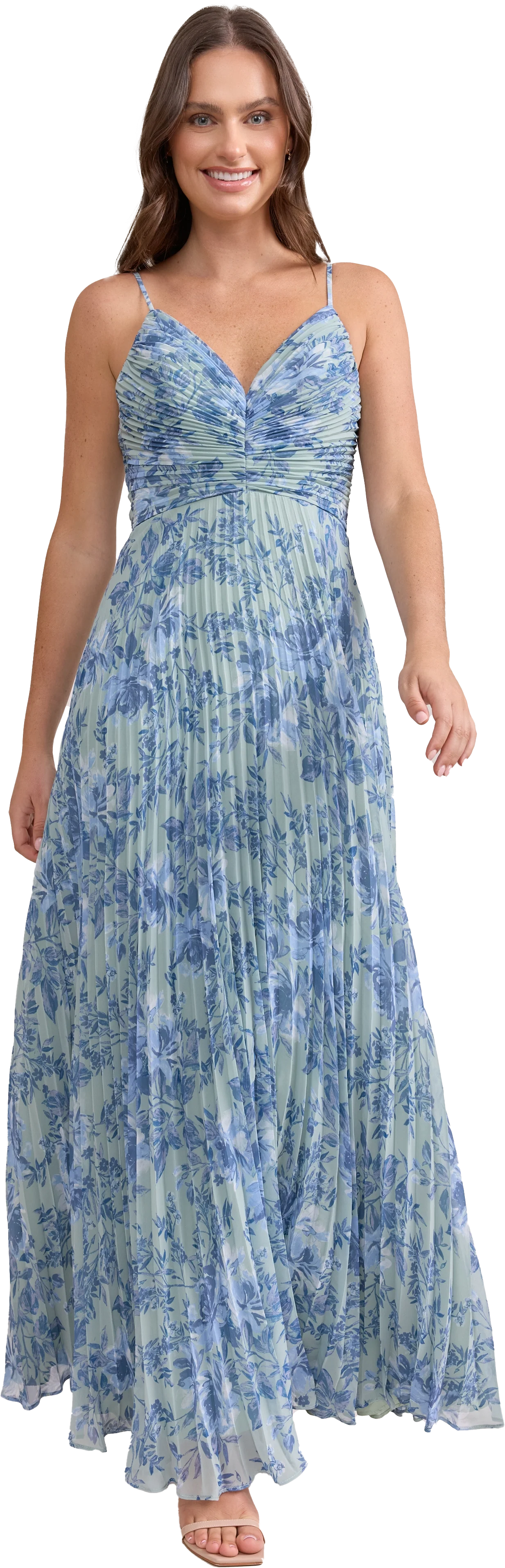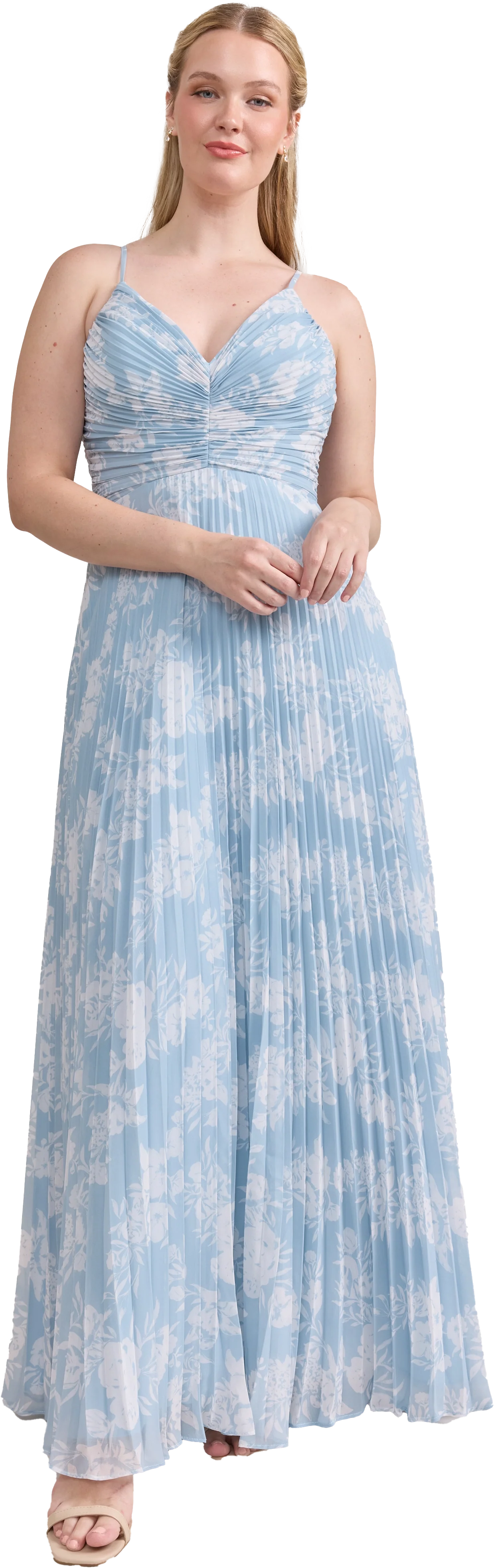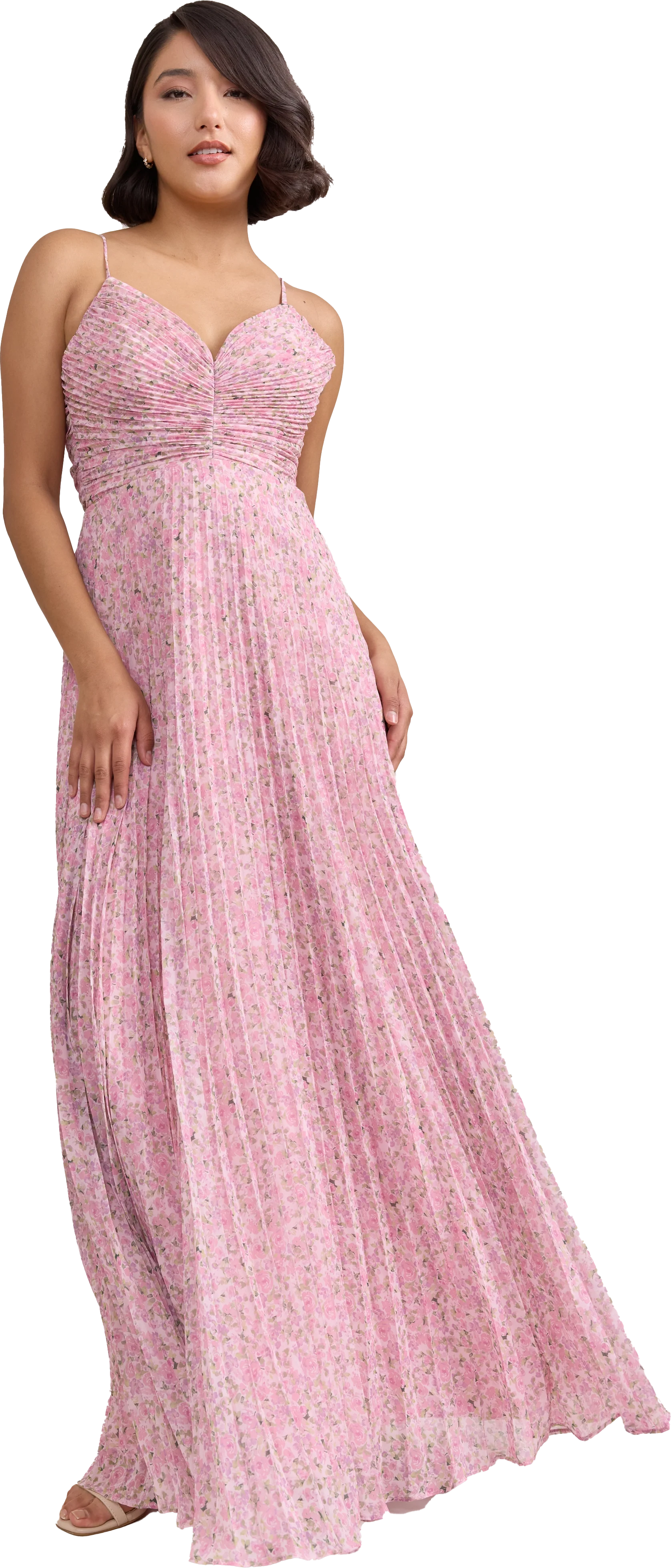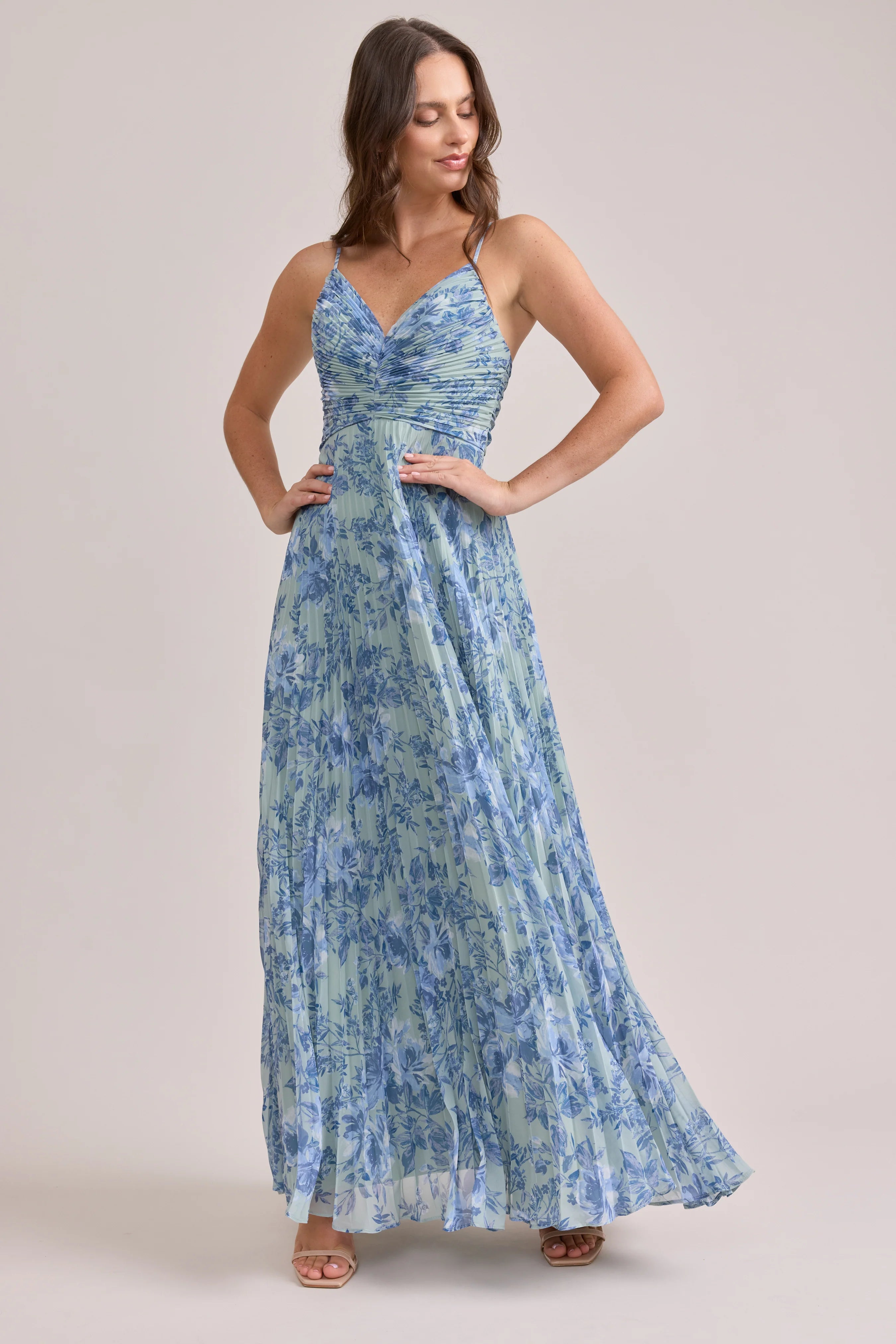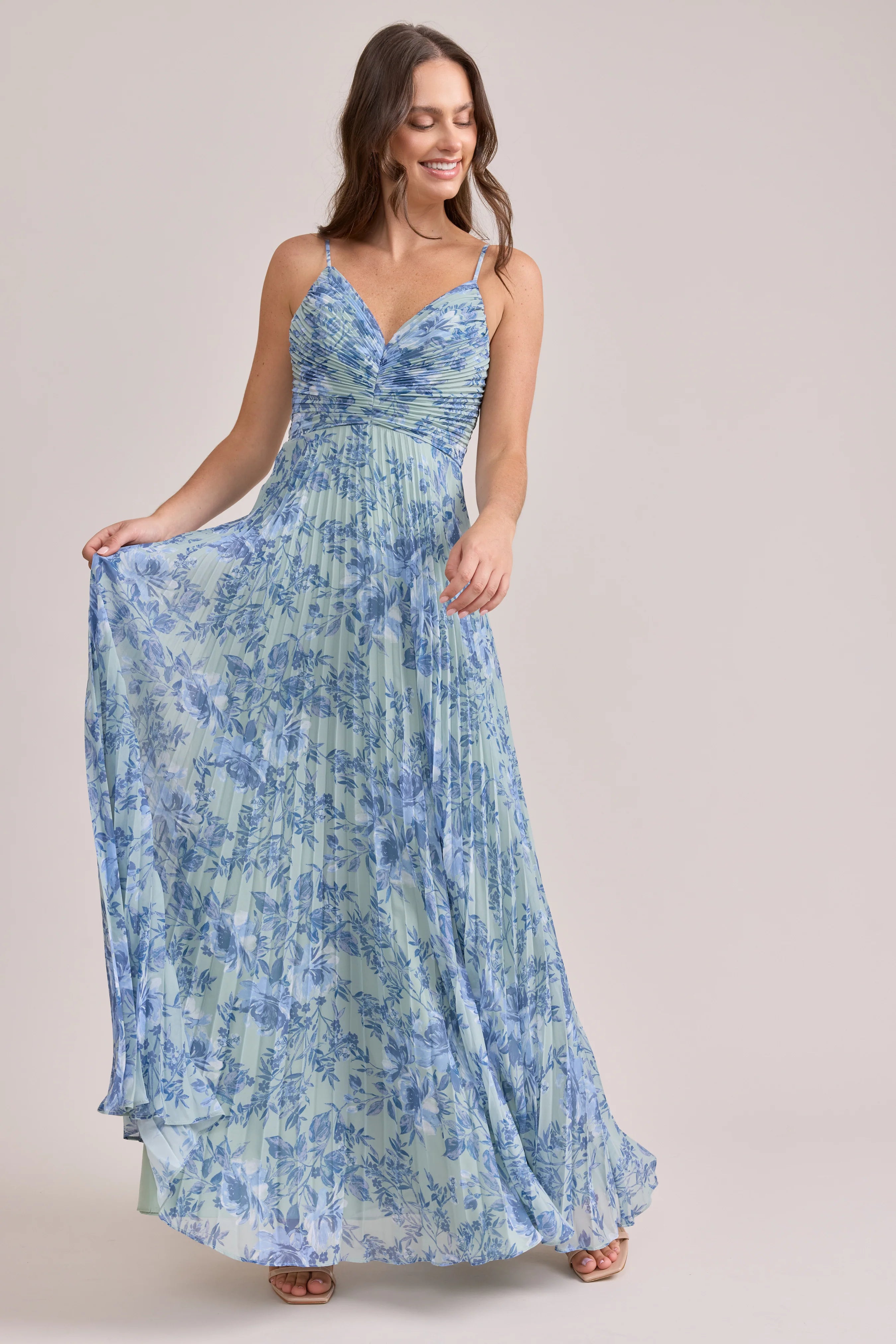Our bestselling Ellapink Satin Dress, reimagined in Chiffon! Her pleated butterfly-esc bodice offers both great support and nostalgic vibes, sitting at an empire waistline, her vertical chiffon pleats flow down for a flowy and comfortable fit. Interior boning, dainty adjustable straps and a lace-up back allow for added support and flexibility.