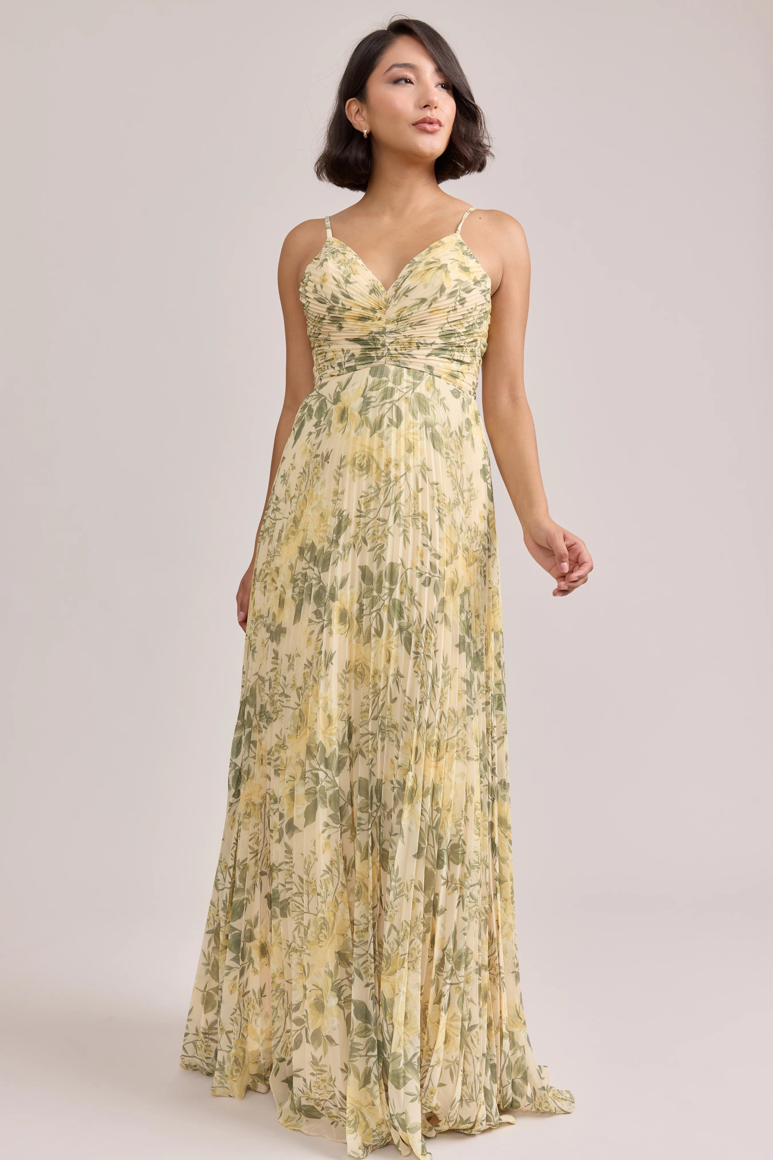 Each print is custom and unique, so while dresses may not be identical due to the cut and pattern of the dress, they will still all be cohesive. Pair these tonal floral prints with their corresponding Revelry colors to achieve an elevated mix-and-match wedding line-up!