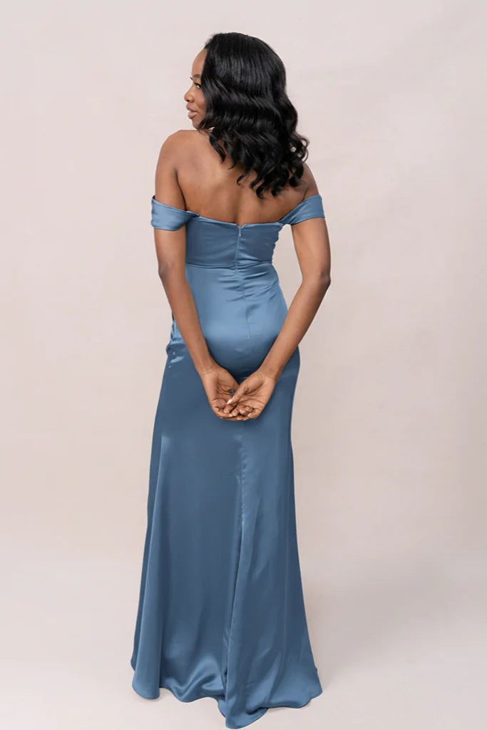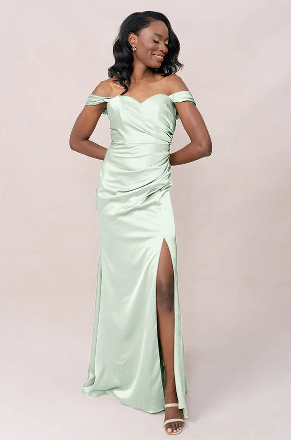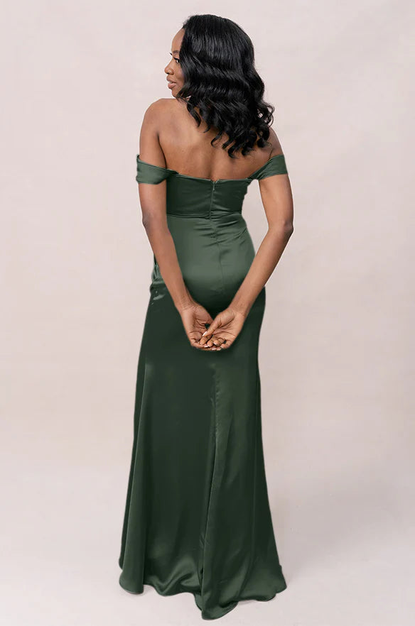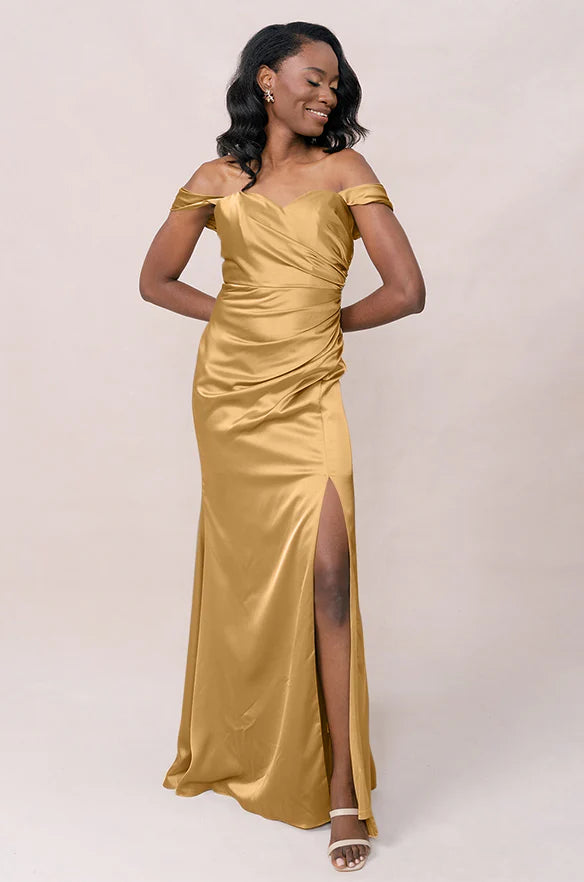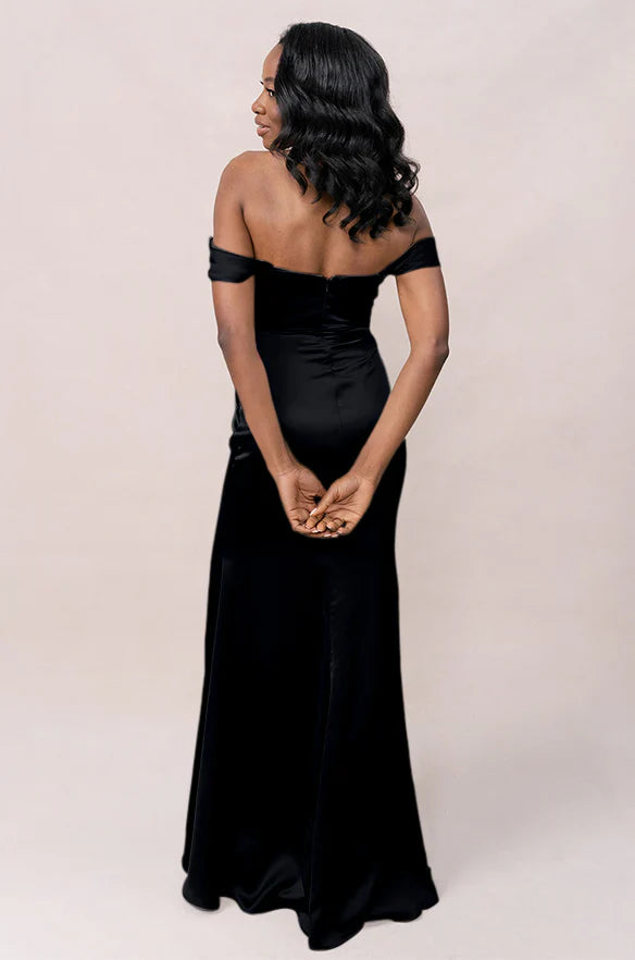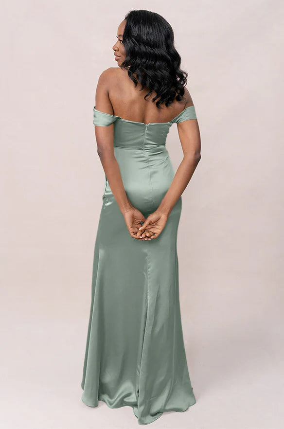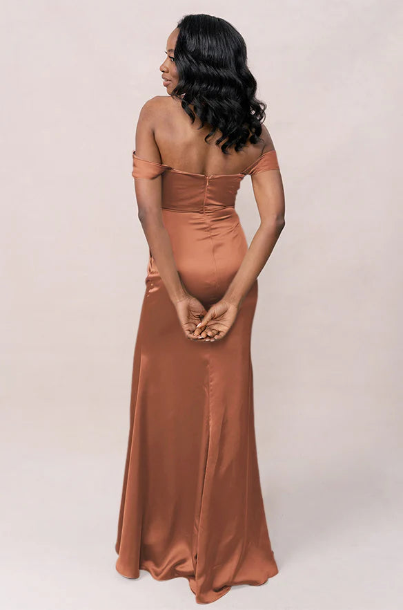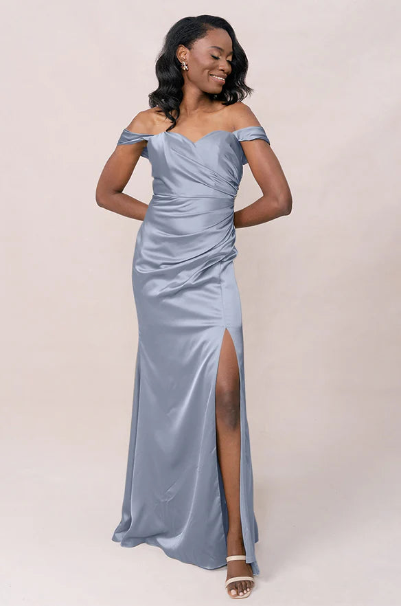 Our Ellapink Convertible Satin dress is a polished style for any bridesmaid that wants to transform their look from day to night! This dress features detachable off-the-shoulder sleeves that snap on and off with small buttons on the inside bust of the dress letting the bridal party go from an elegant day look to dancing the night away in a strapless and flirty gown.