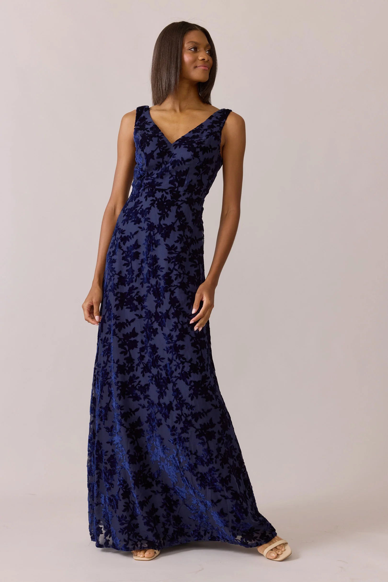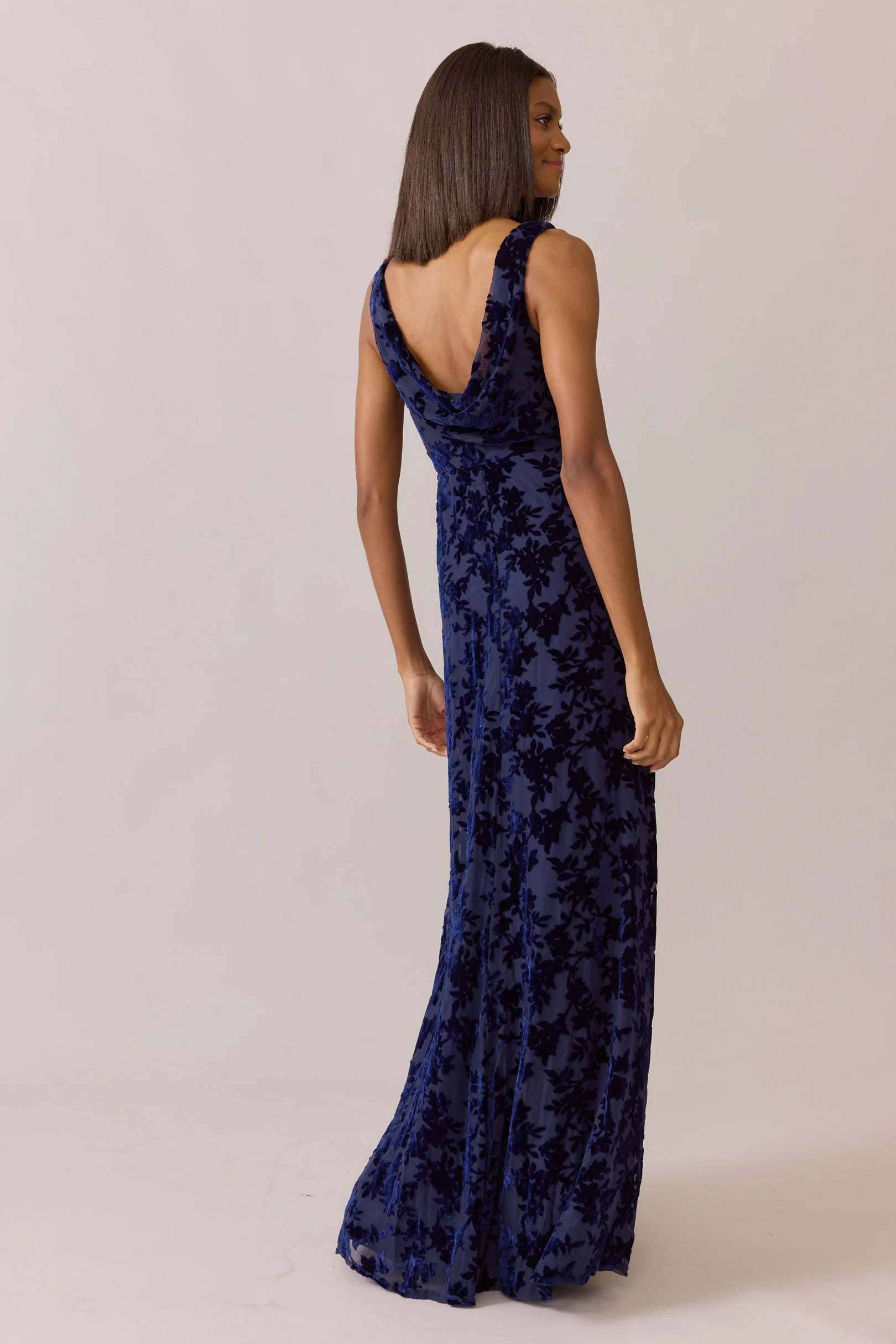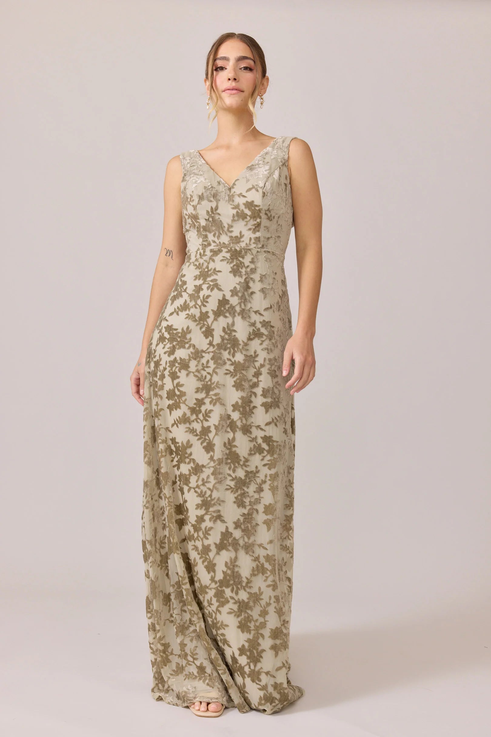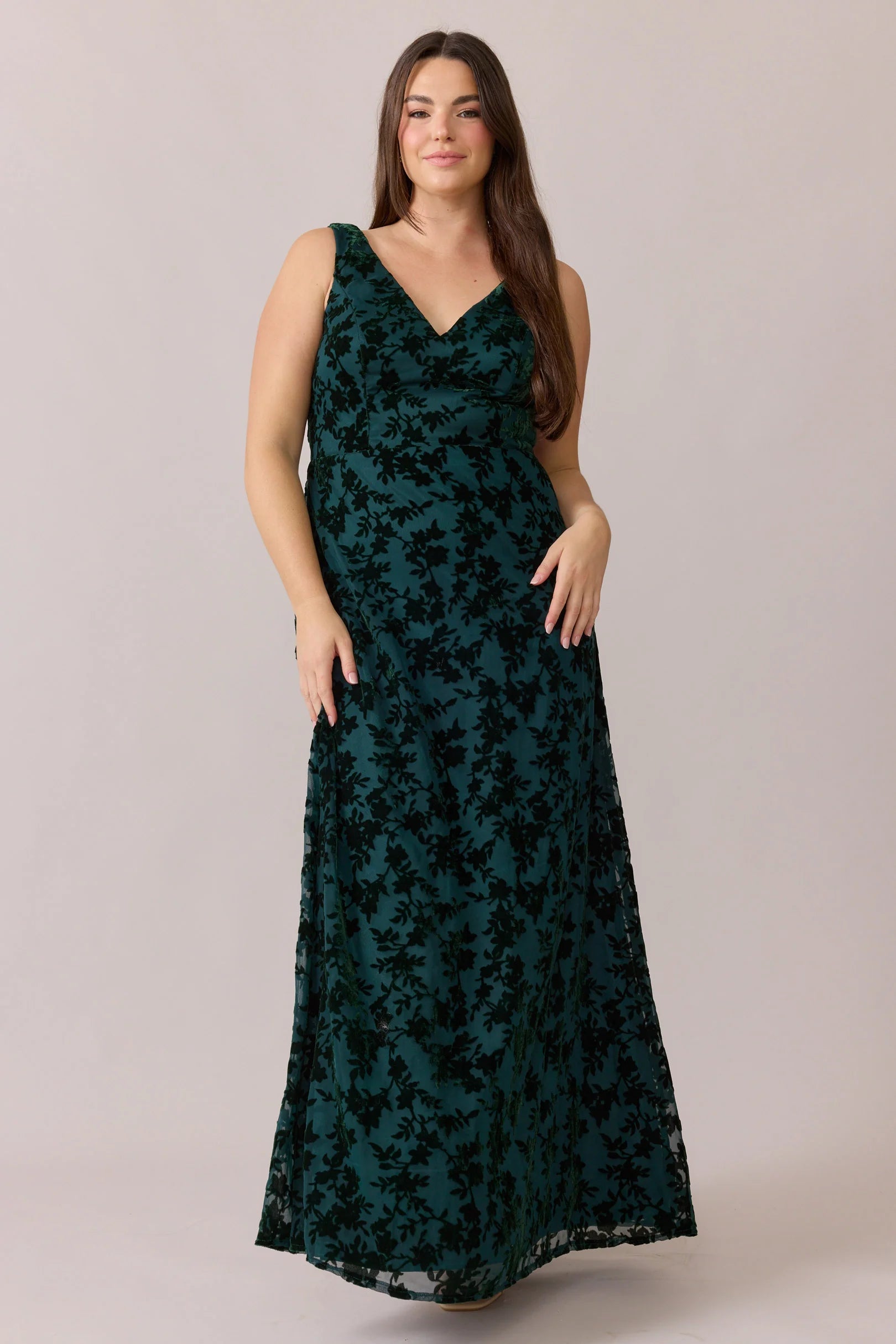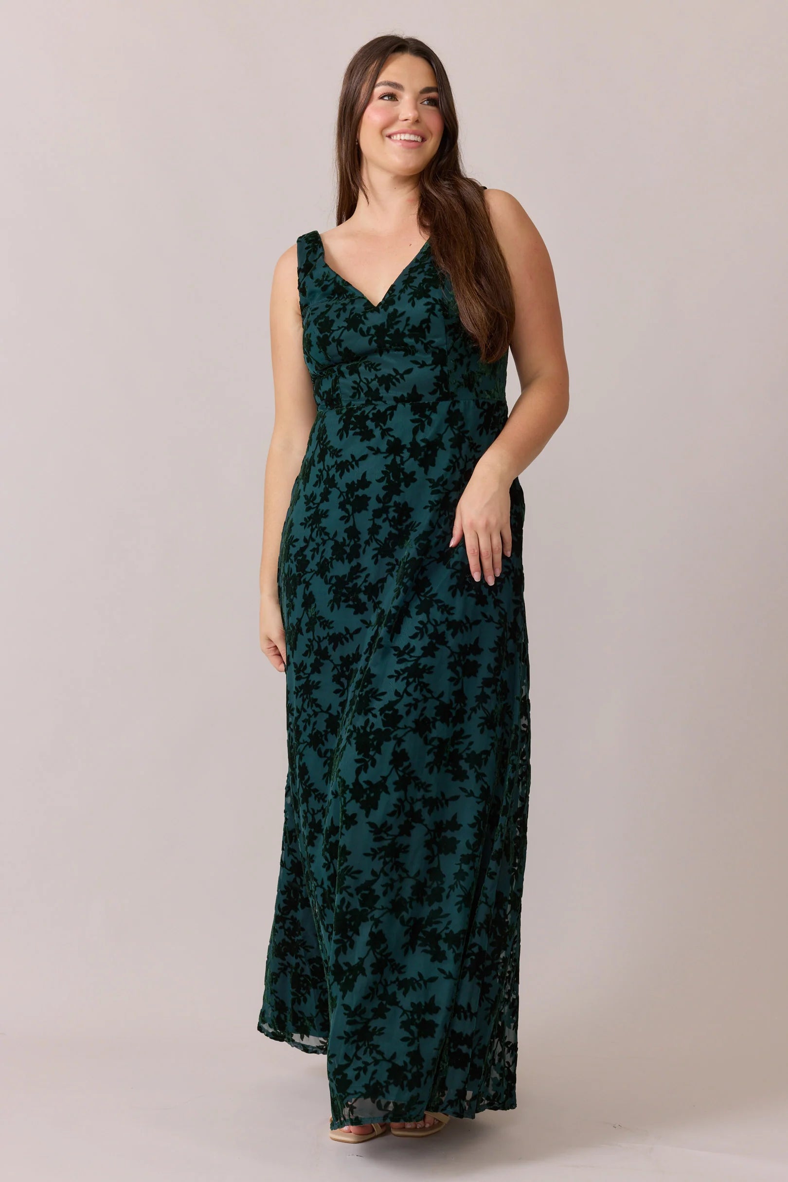 Elegant and curve-skimming, the Ellapink Burnout Velvet Dress is a timeless silhouette with subtle glam. Featuring a flattering V-neckline and thick shoulder straps, this A-line style glides over the body and highlights every shape. The draped cowl scoop back adds a striking open-back moment, while built-in cups and boning offer structure and support. Fully lined for comfort and coverage, Dakota is effortlessly graceful—perfect for every member of your bridal party.
