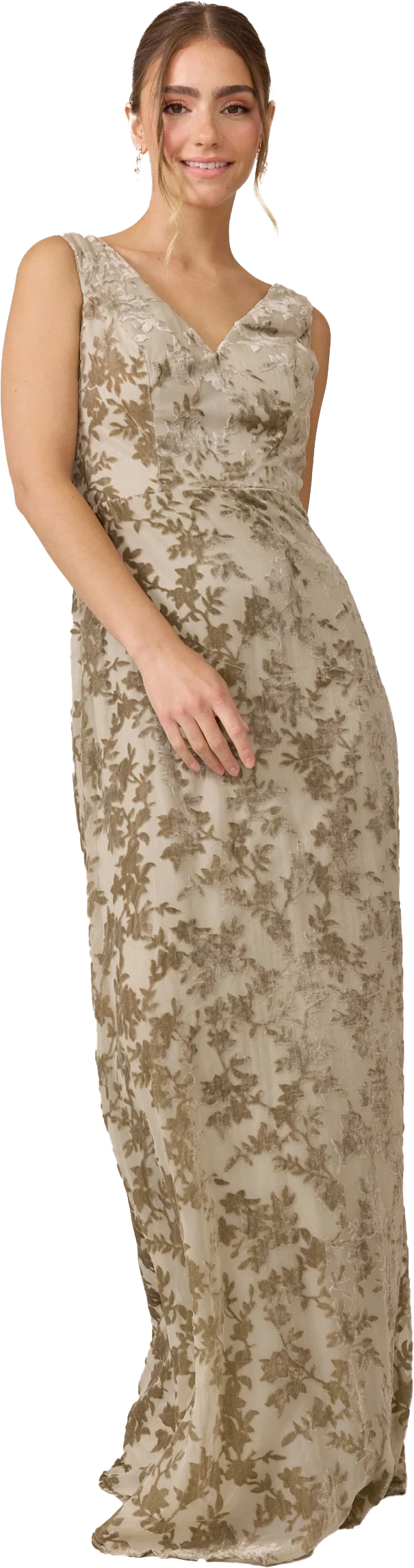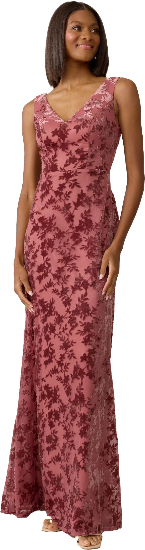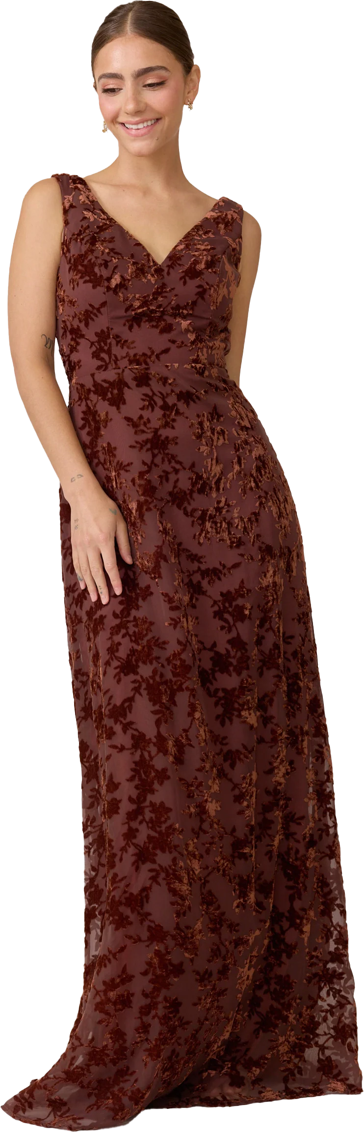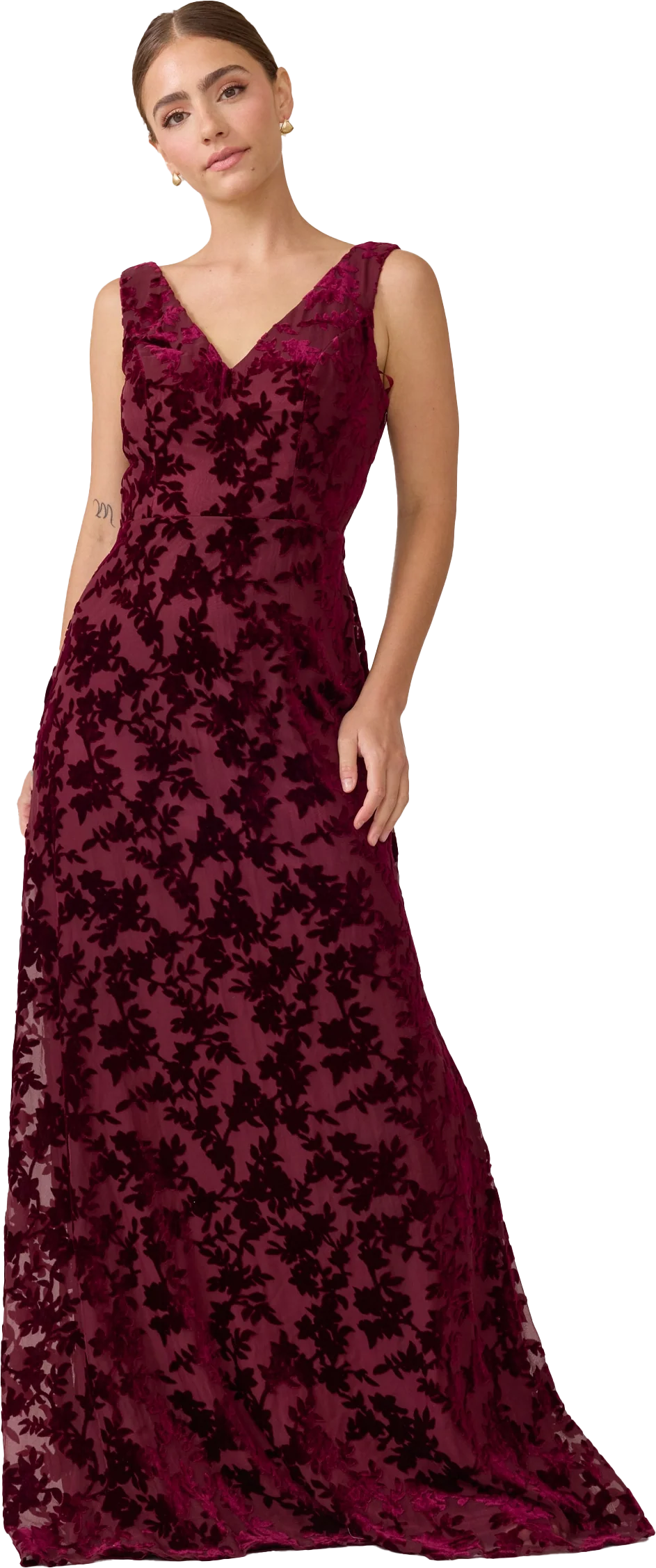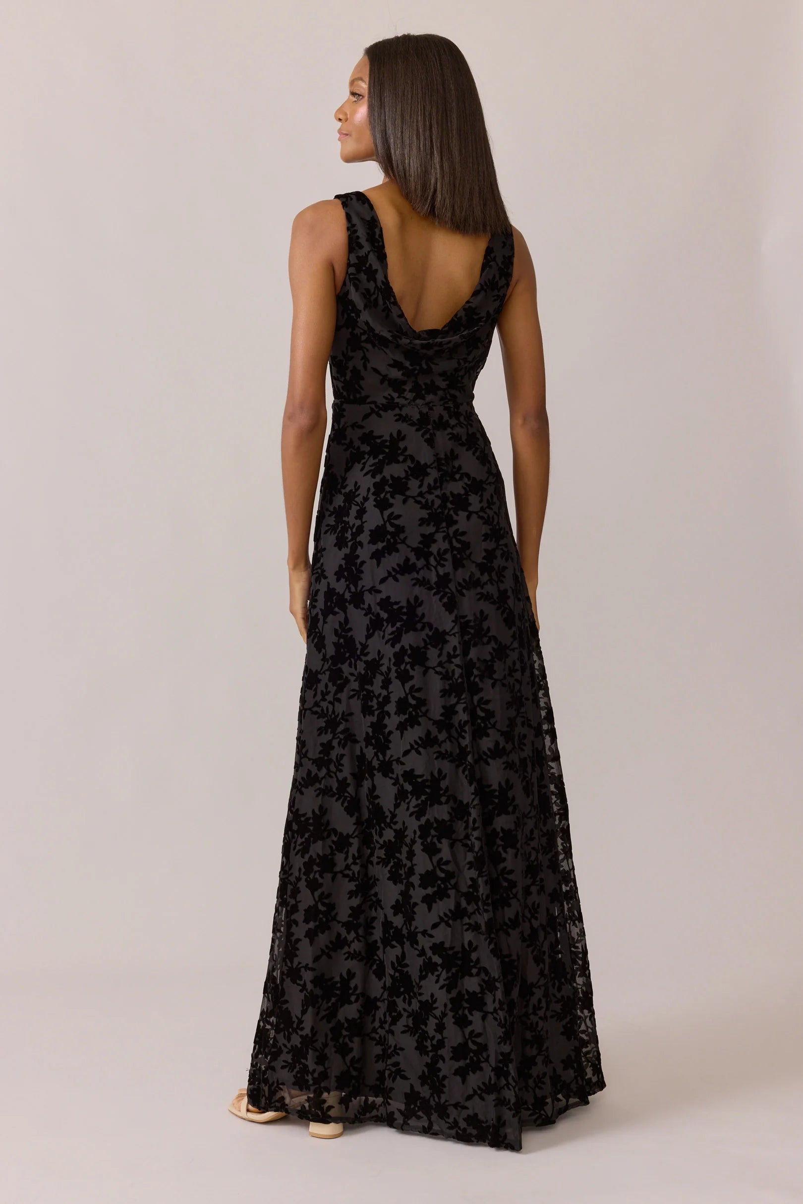 Elegant and curve-skimming, the Ellapink Burnout Velvet Dress is a timeless silhouette with subtle glam. Featuring a flattering V-neckline and thick shoulder straps, this A-line style glides over the body and highlights every shape. The draped cowl scoop back adds a striking open-back moment, while built-in cups and boning offer structure and support. Fully lined for comfort and coverage, Dakota is effortlessly graceful—perfect for every member of your bridal party.