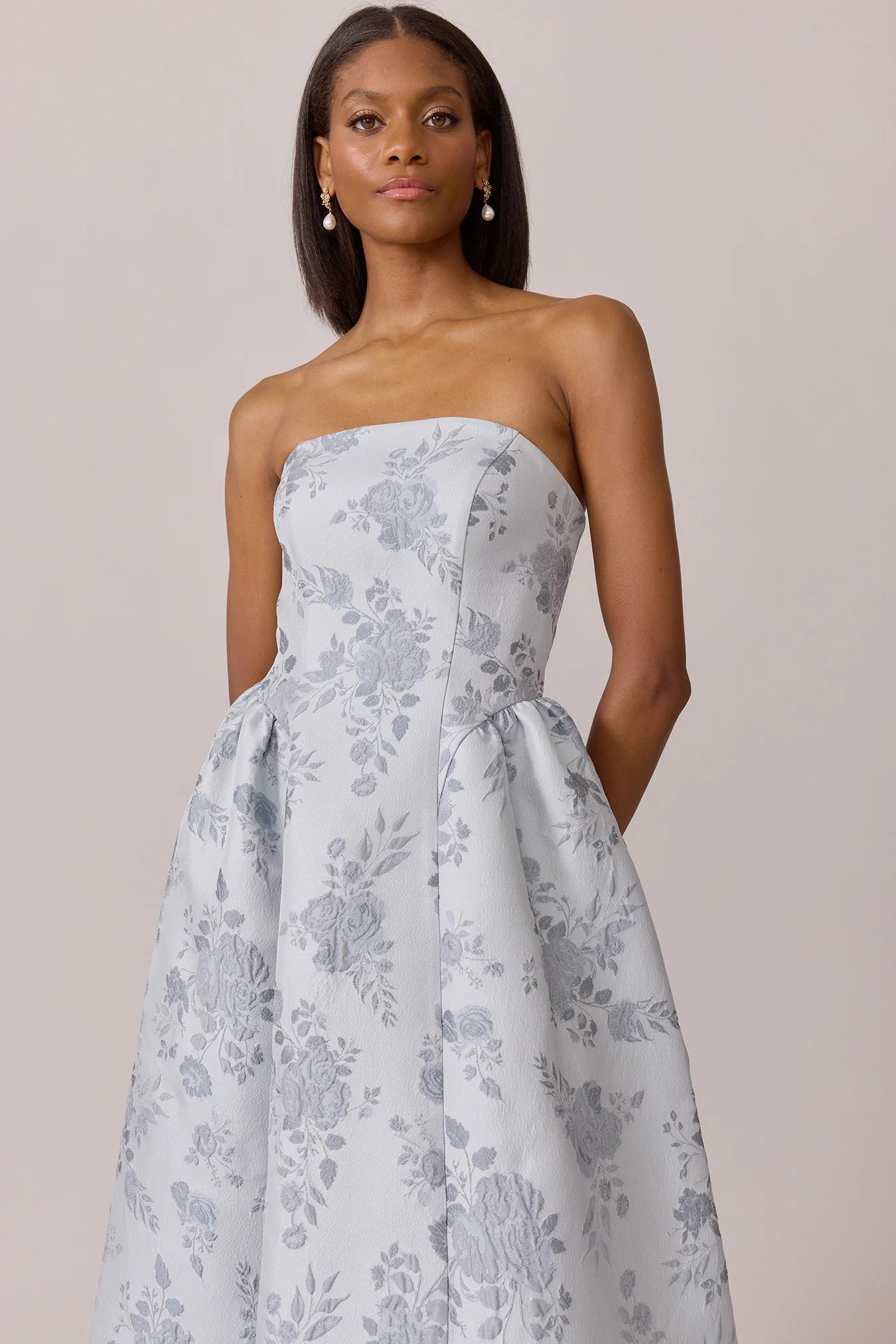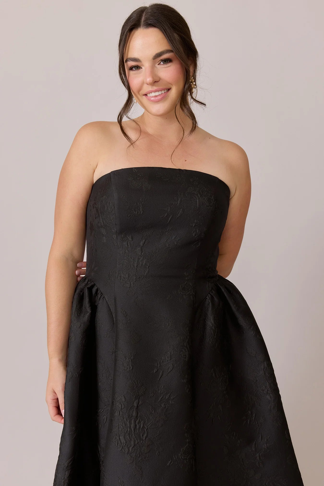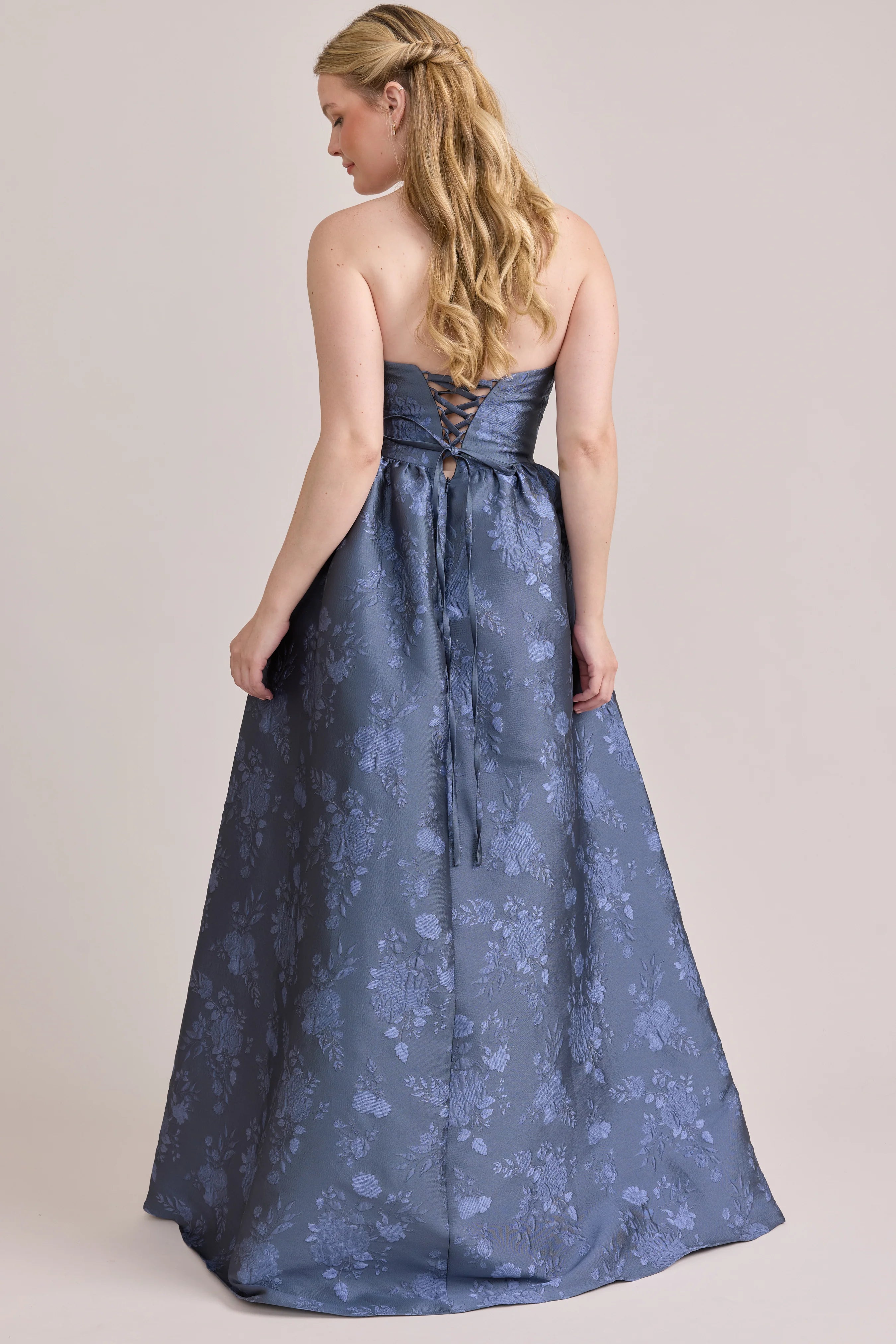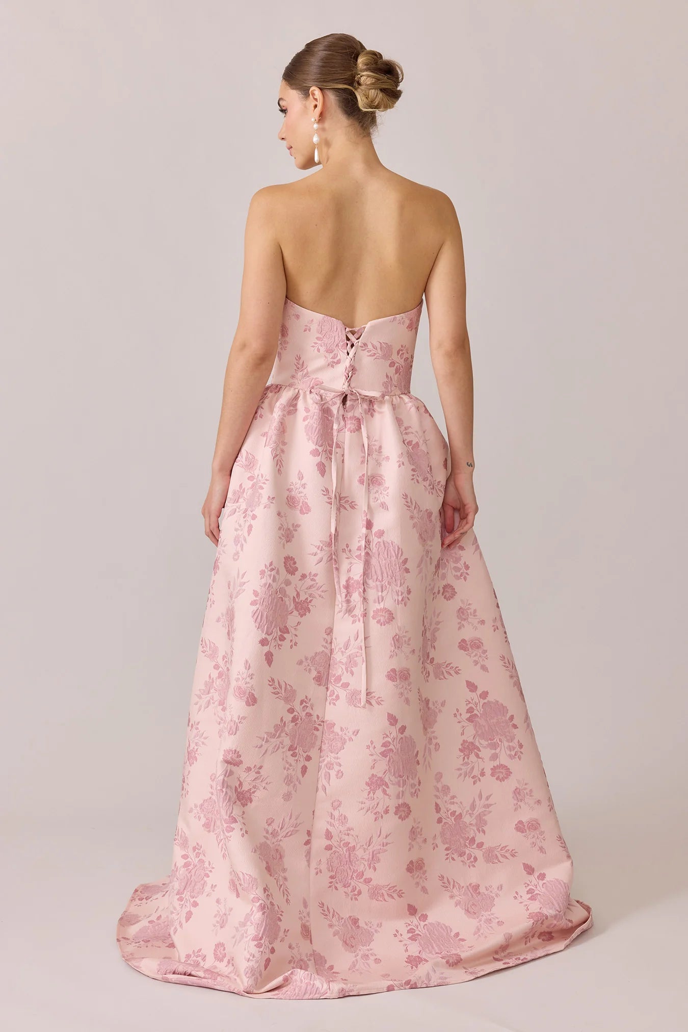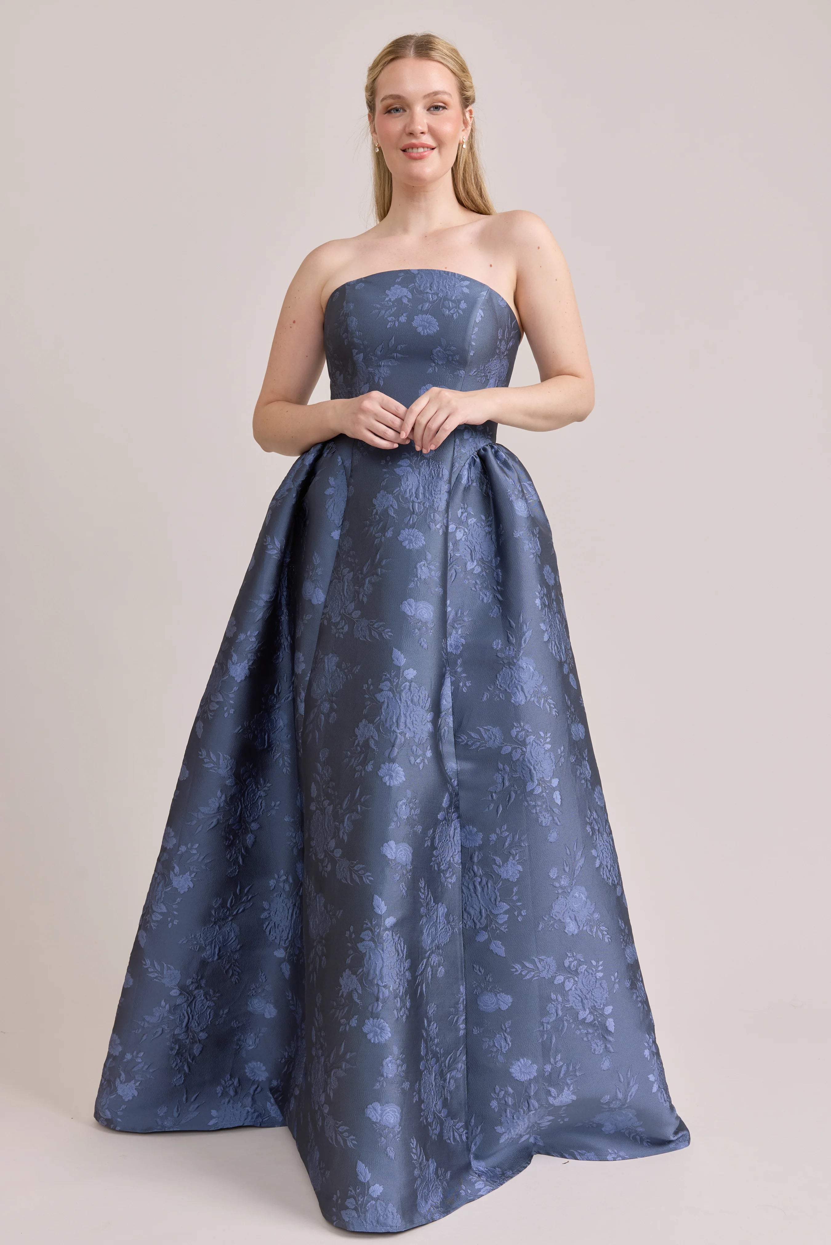 Our Ellapink Jacquard Dress is a showstopping, basque-waist style. With a rounded neckline and pleats on the side of the skirt, Sofia has all the on-trend details to stand out.