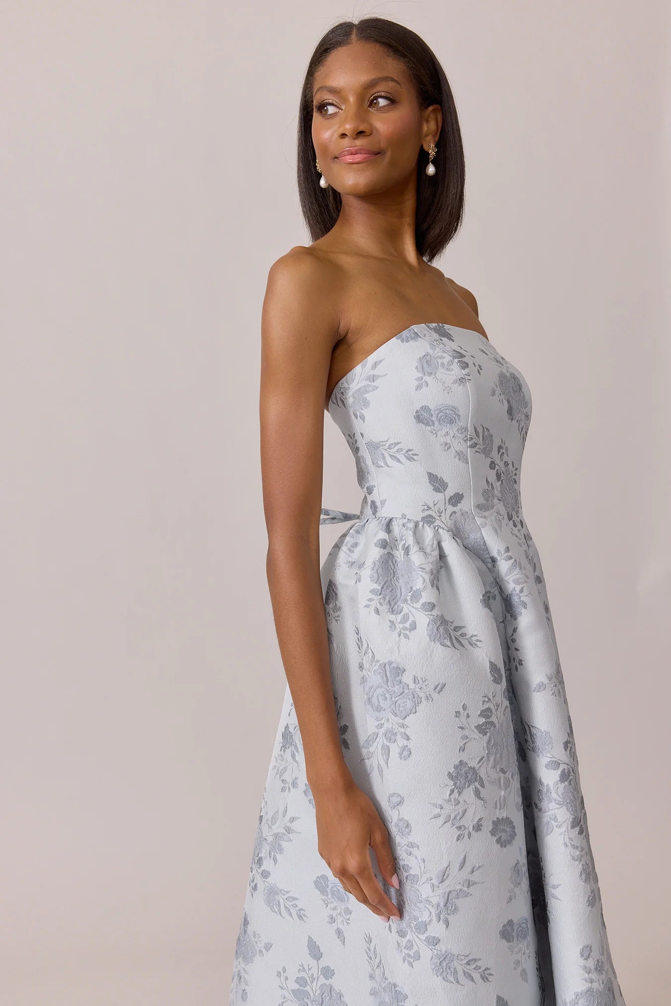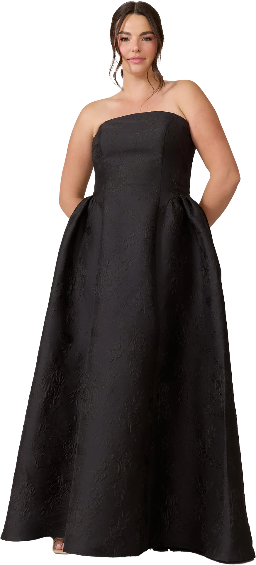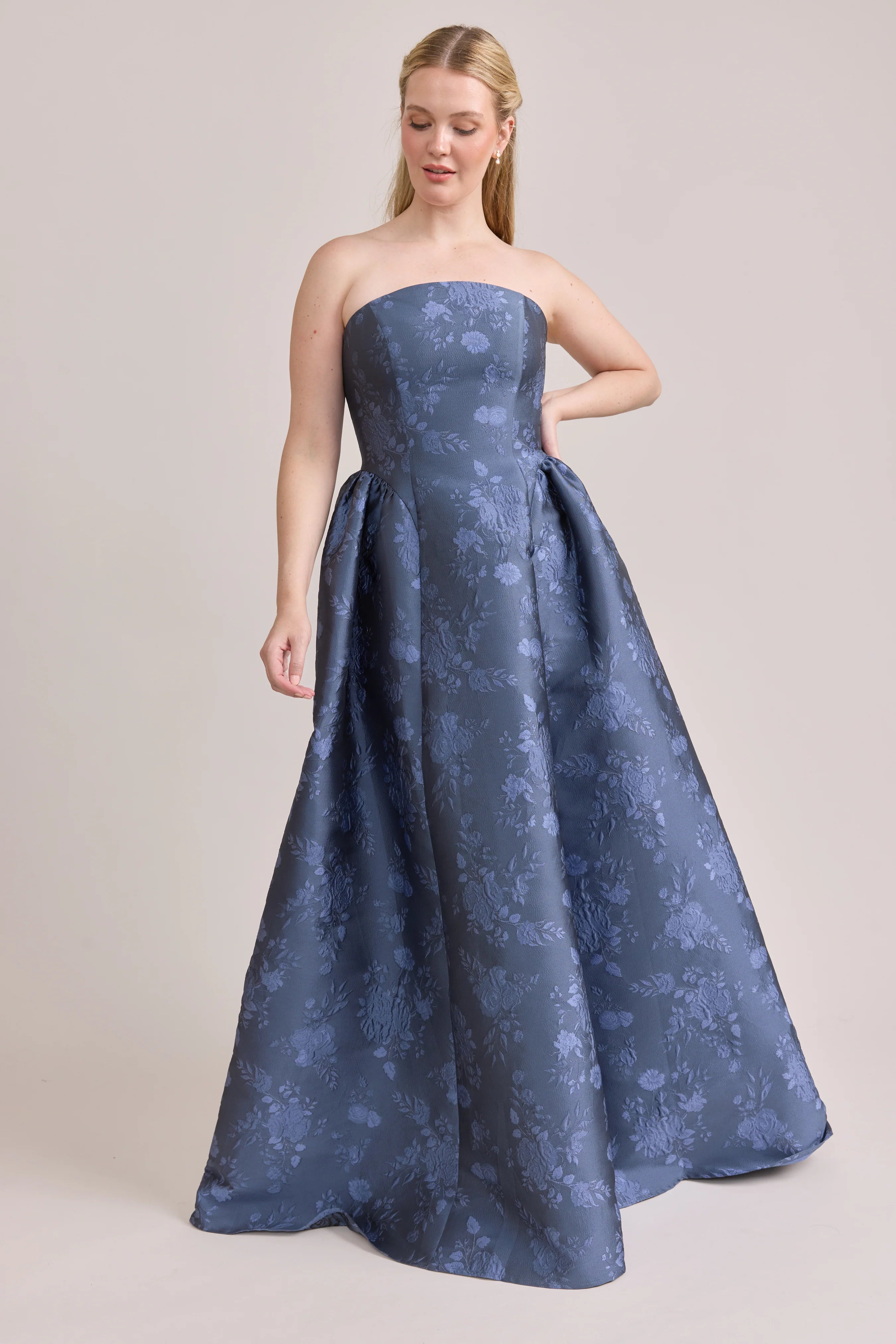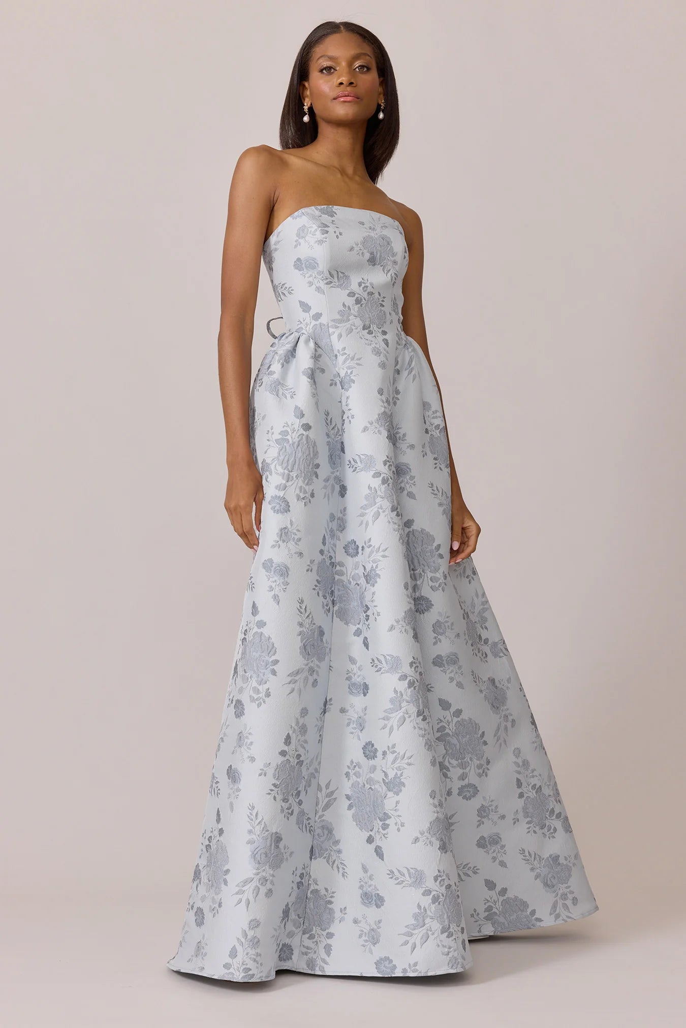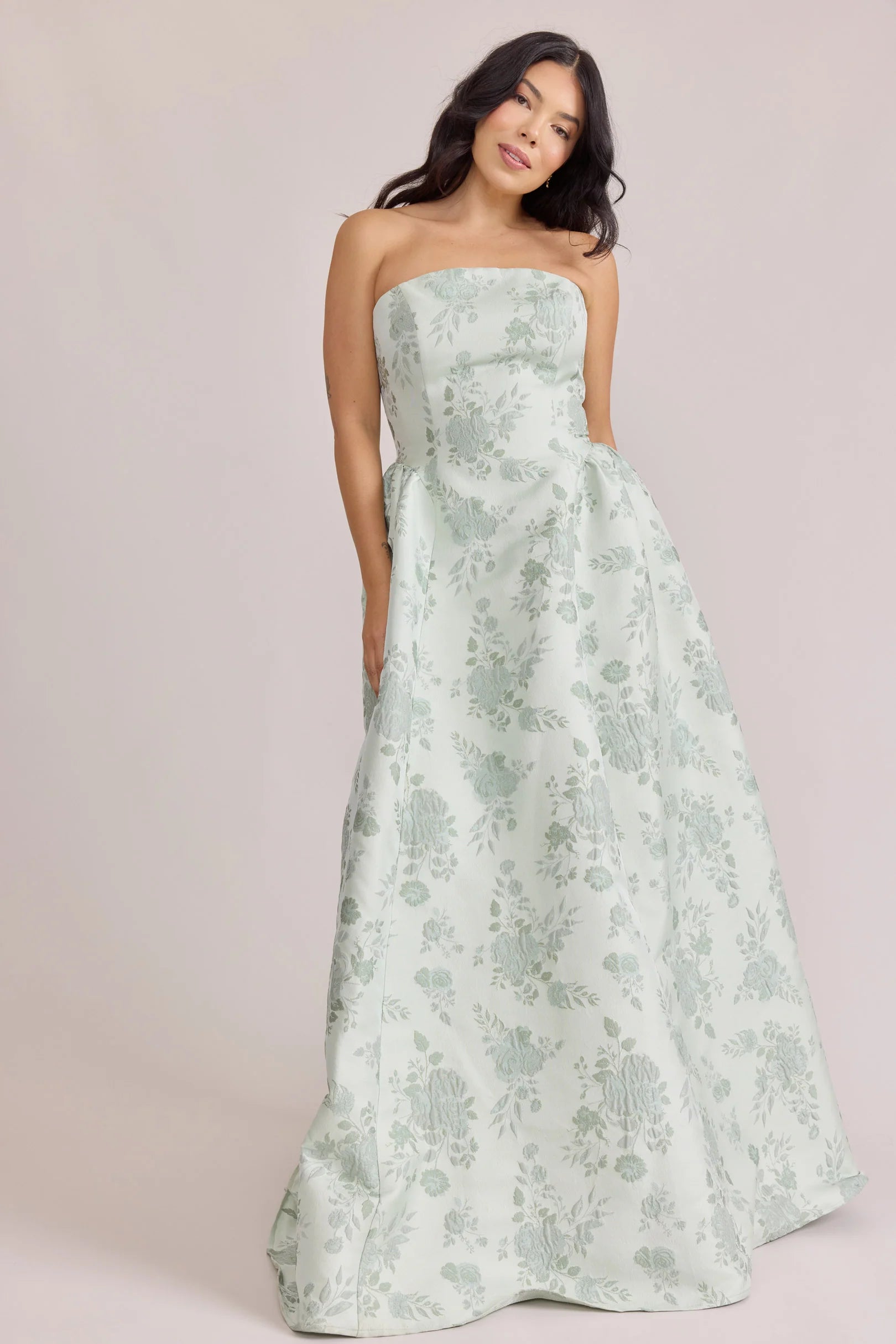 Our Ellapink Jacquard Dress is a showstopping, basque-waist style. With a rounded neckline and pleats on the side of the skirt, Sofia has all the on-trend details to stand out.
