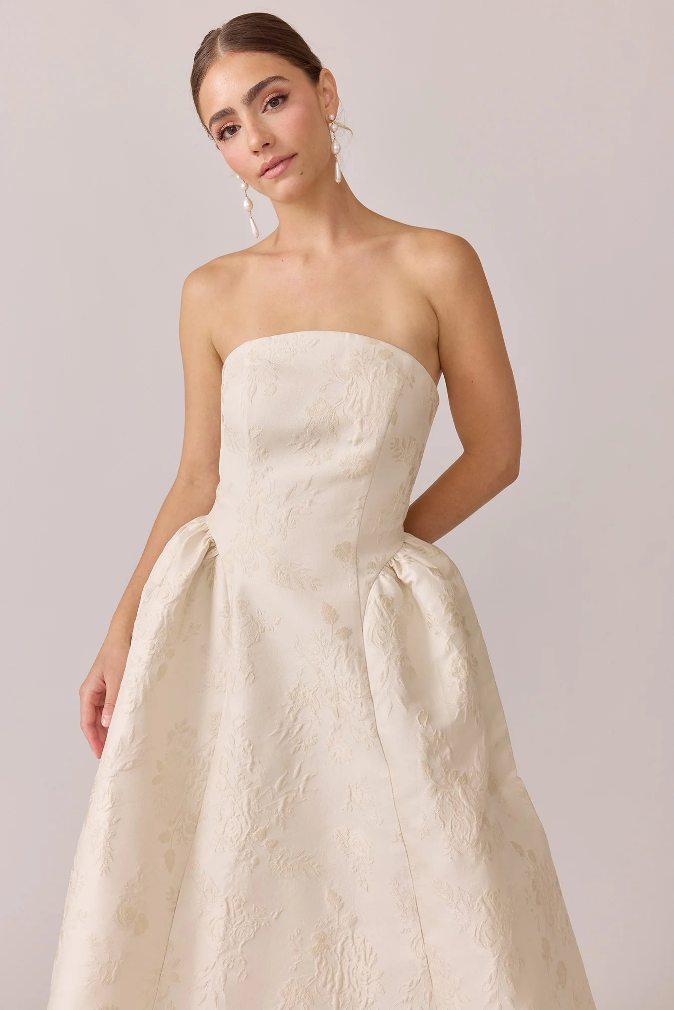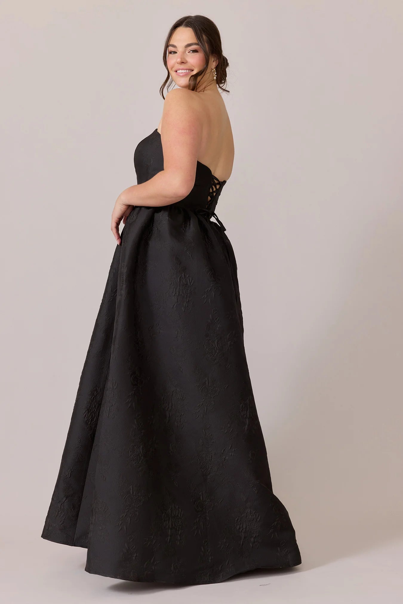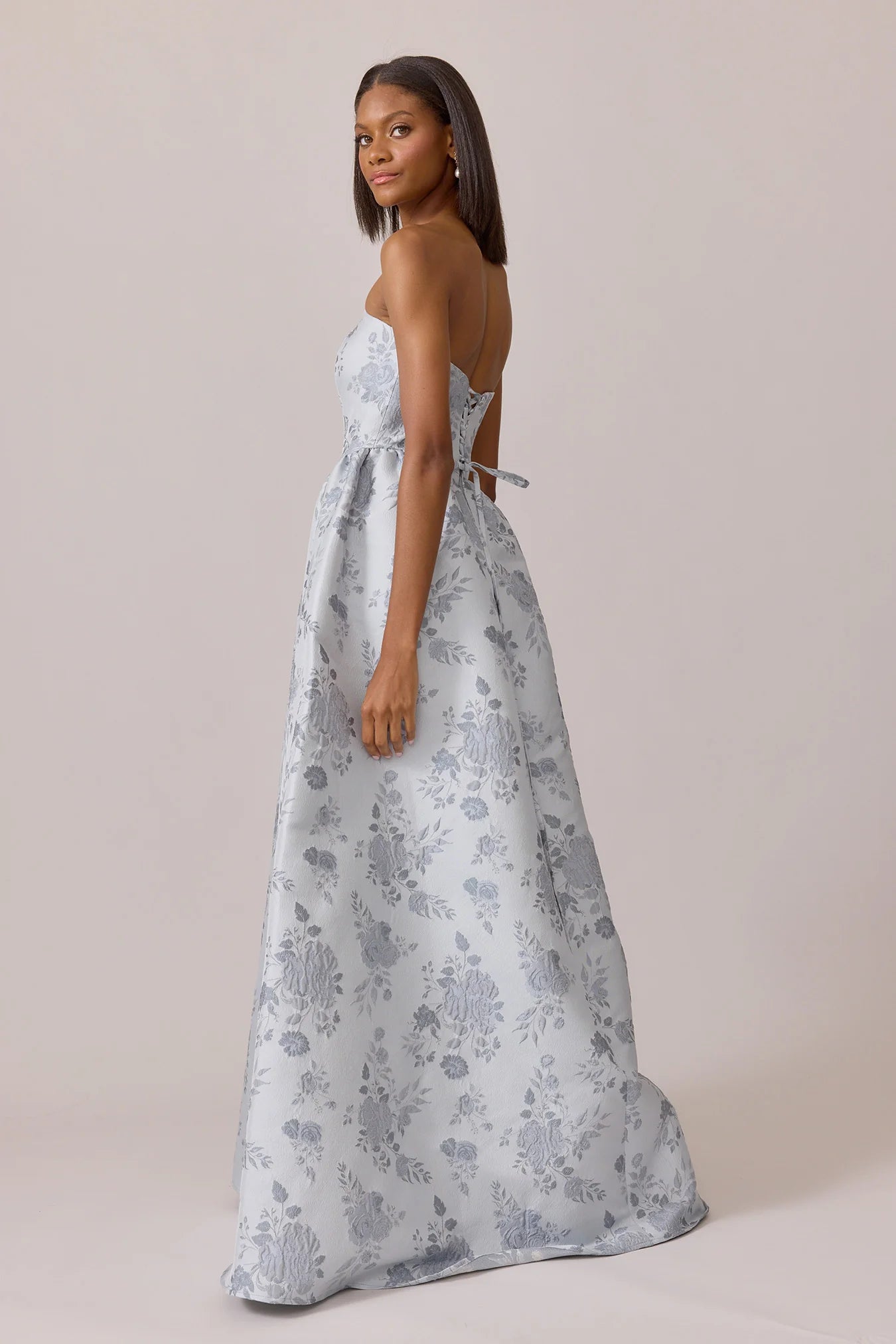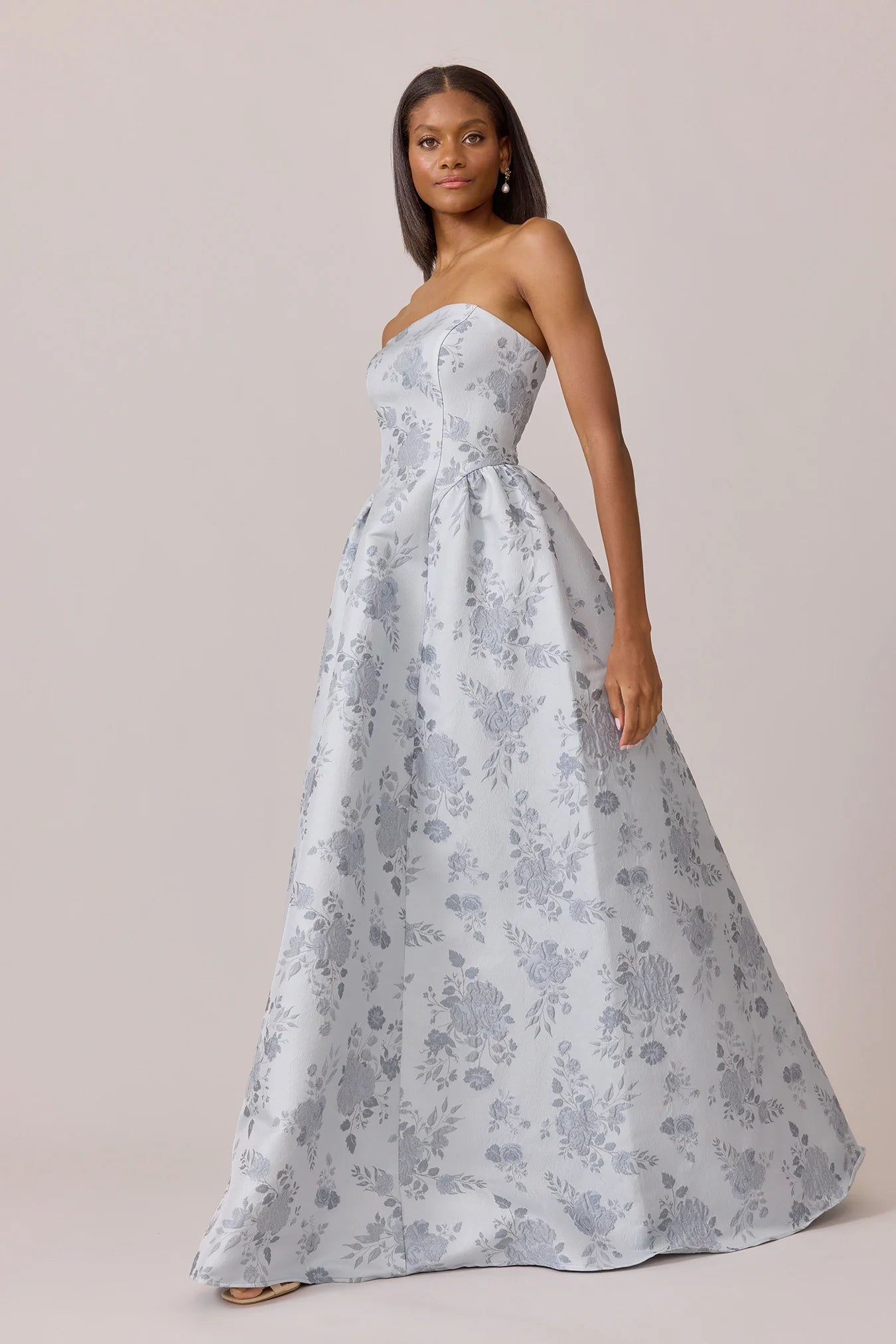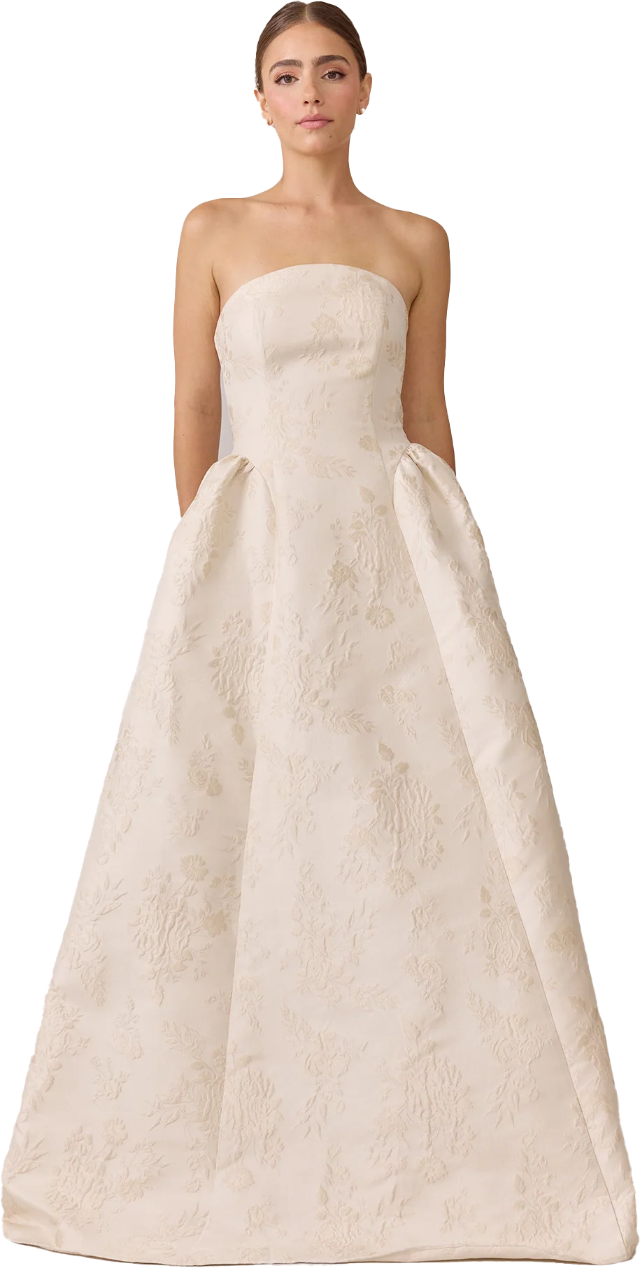 Our Ellapink Jacquard Dress is a showstopping, basque-waist style. With a rounded neckline and pleats on the side of the skirt, Sofia has all the on-trend details to stand out.