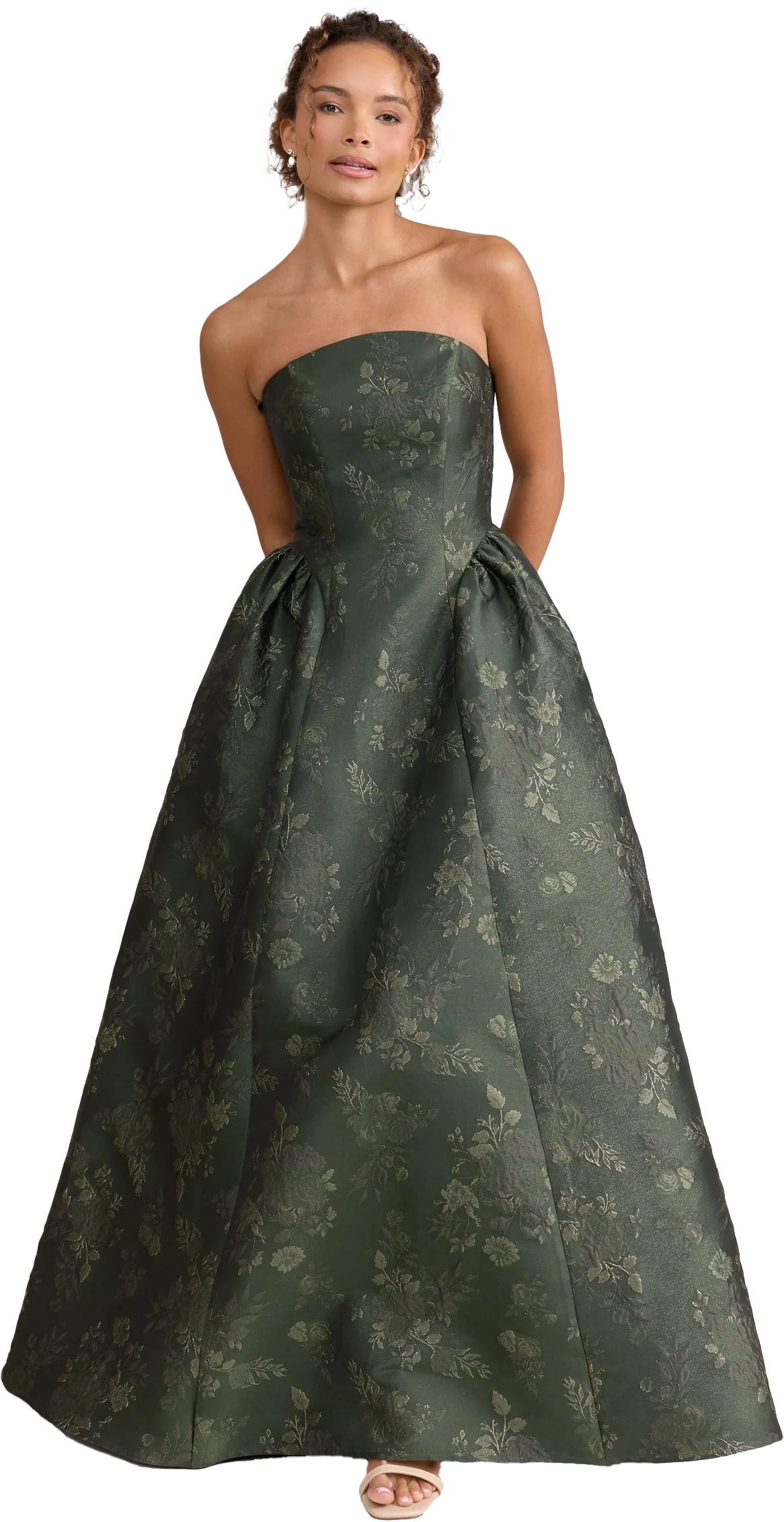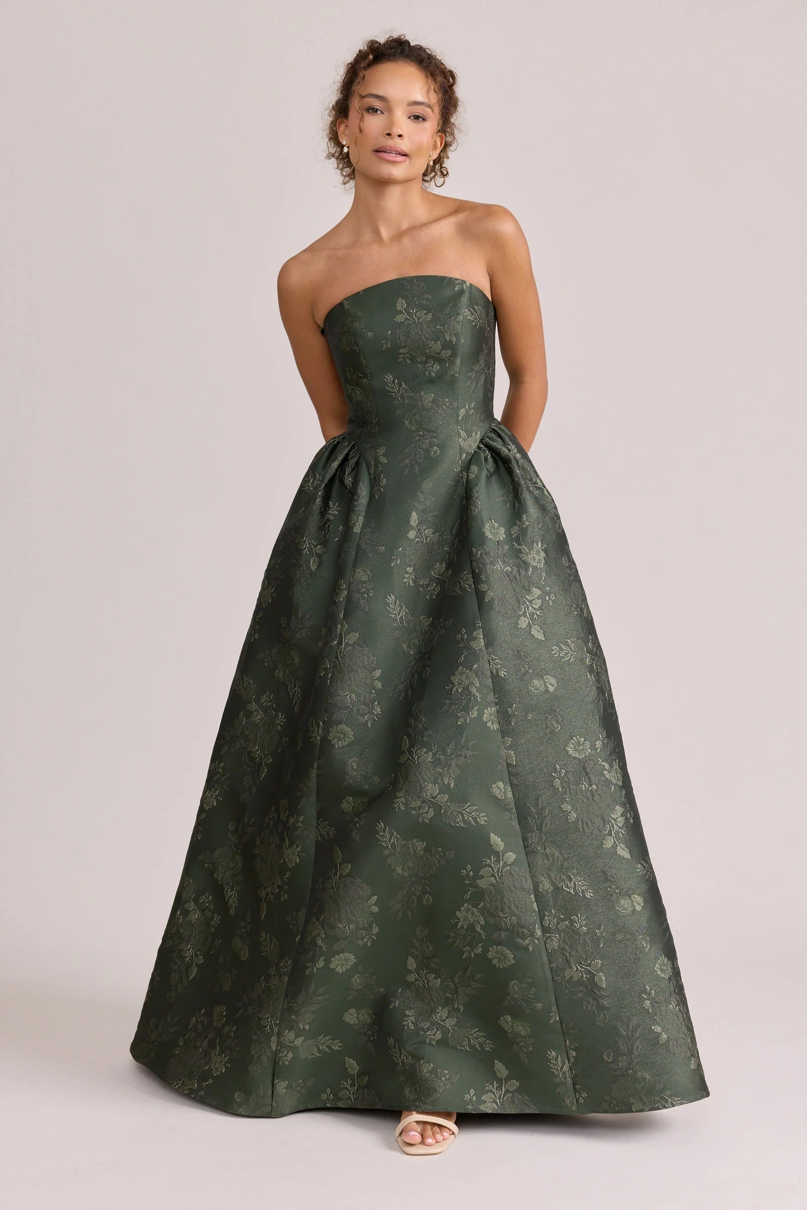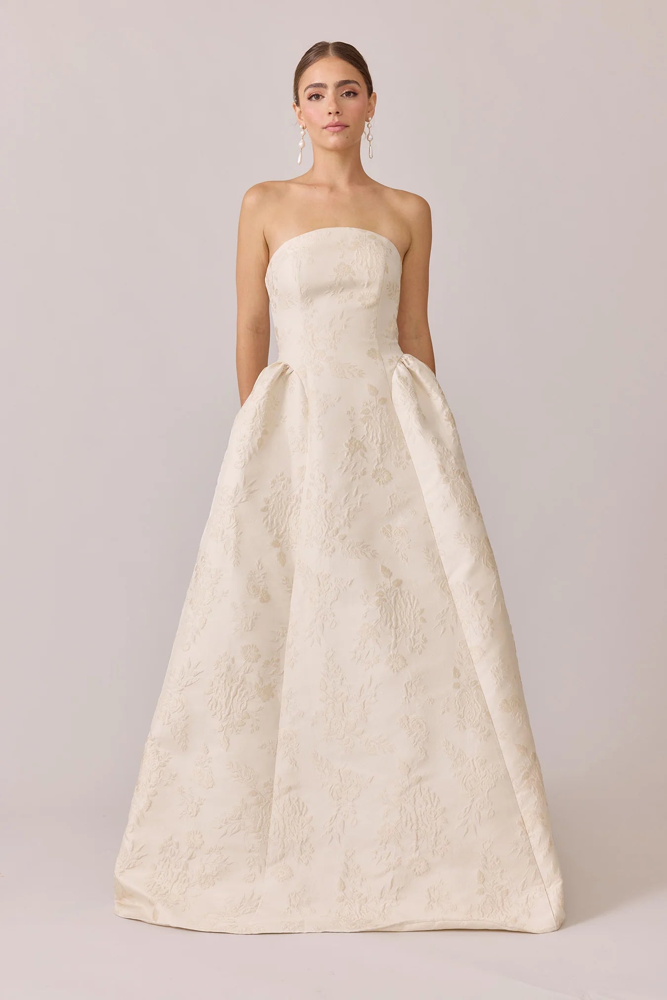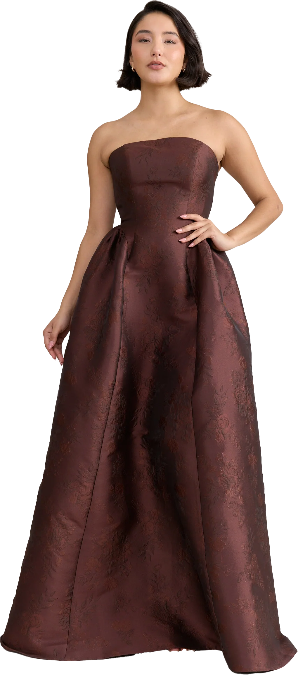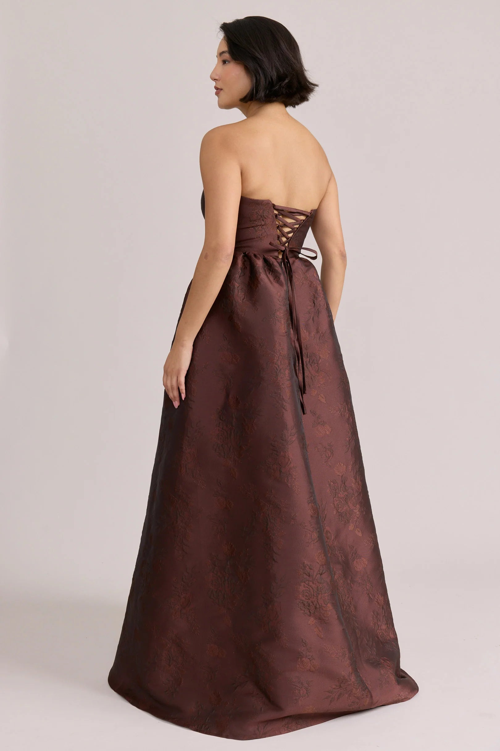 Our Ellapink Jacquard Dress is a showstopping, basque-waist style. With a rounded neckline and pleats on the side of the skirt, Sofia has all the on-trend details to stand out.