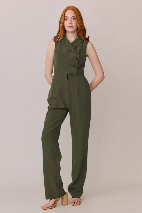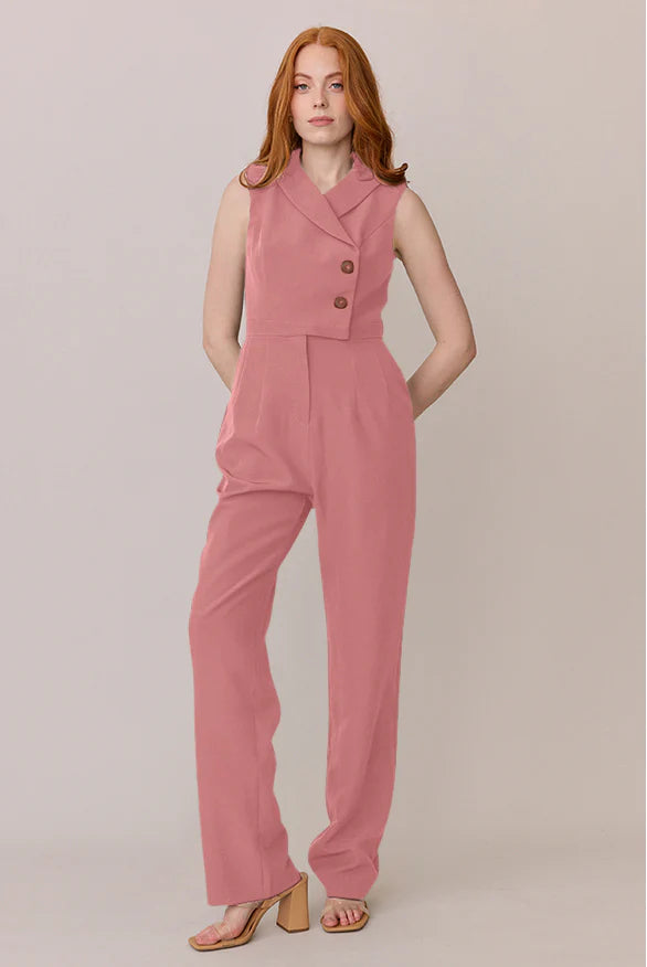 Our Ellapink JumpSuit is the perfect option for the bridesmaid who desires a unique and edgy alternative to a dress! Blake is androgynous in its design, featuring elegant lapels on a criss-cross bodice and tapered straight-leg pants, creating a feeling of sophisticated beauty.