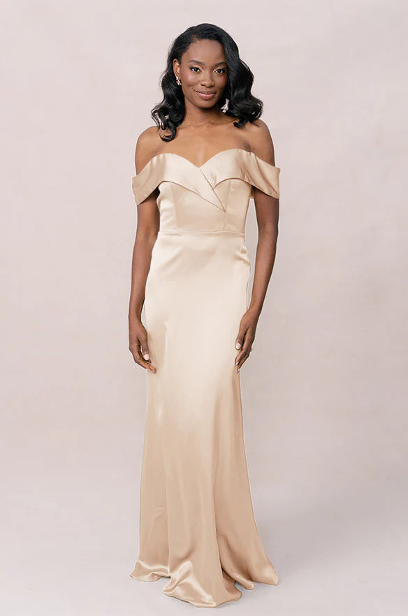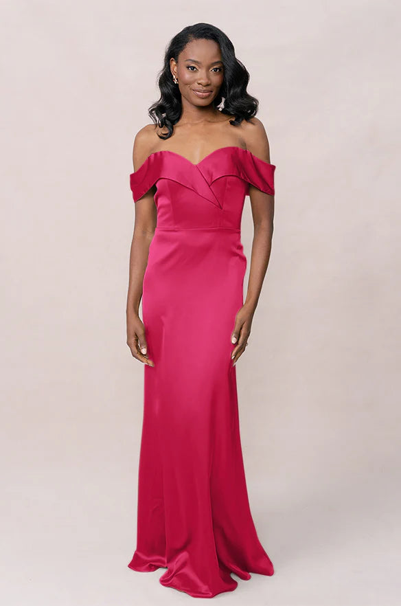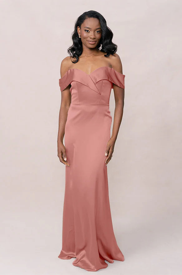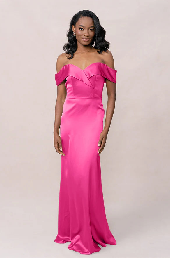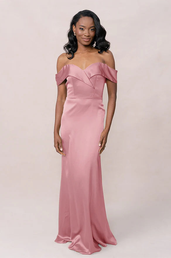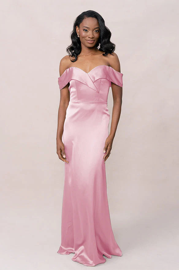 Our dazzling Ellapink Satin dress is a timeless fit-and-flare style that is perfect for the bride looking to add some elegance to her big day!