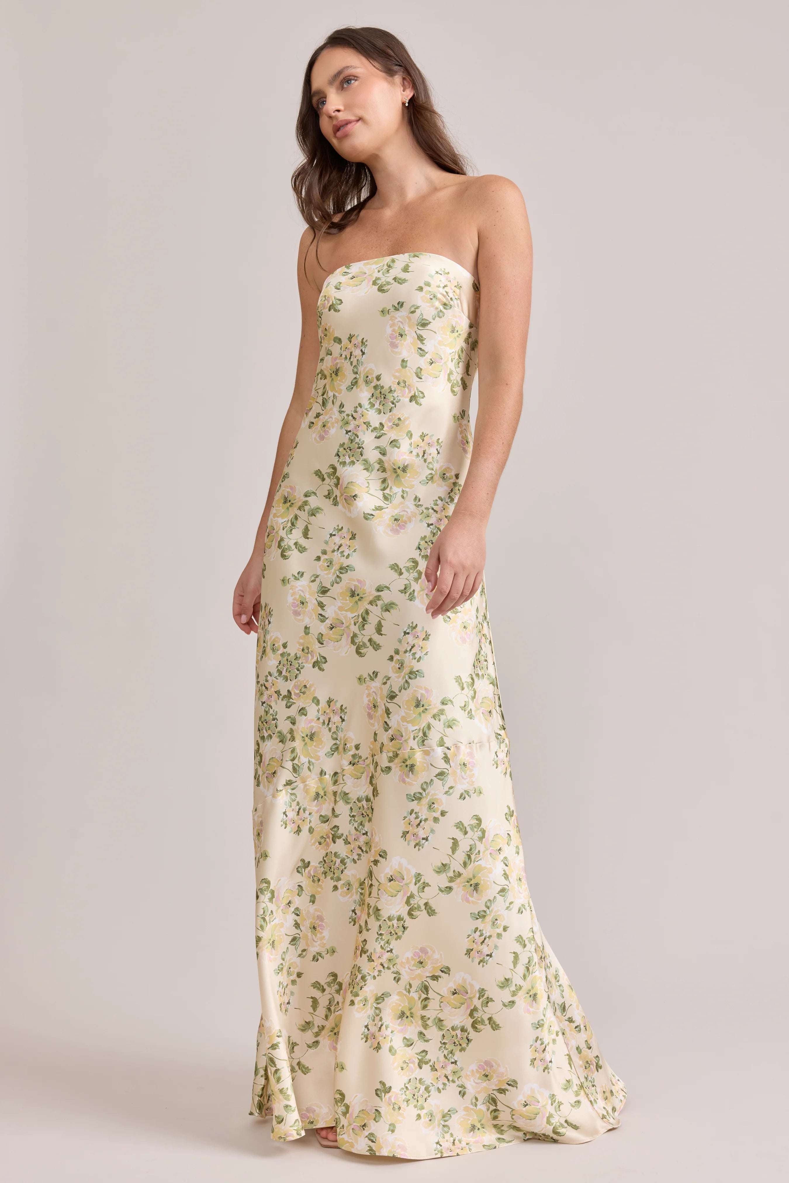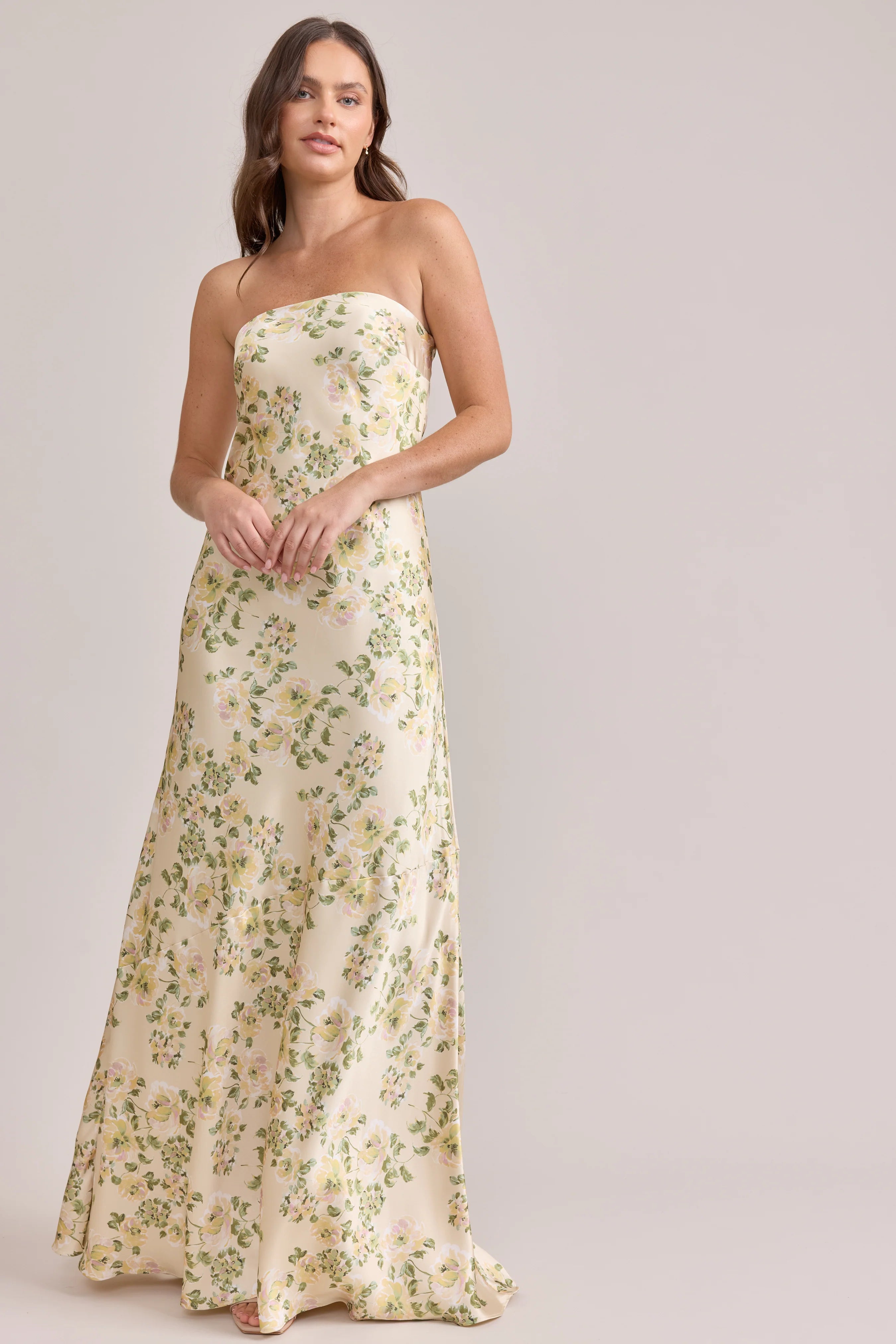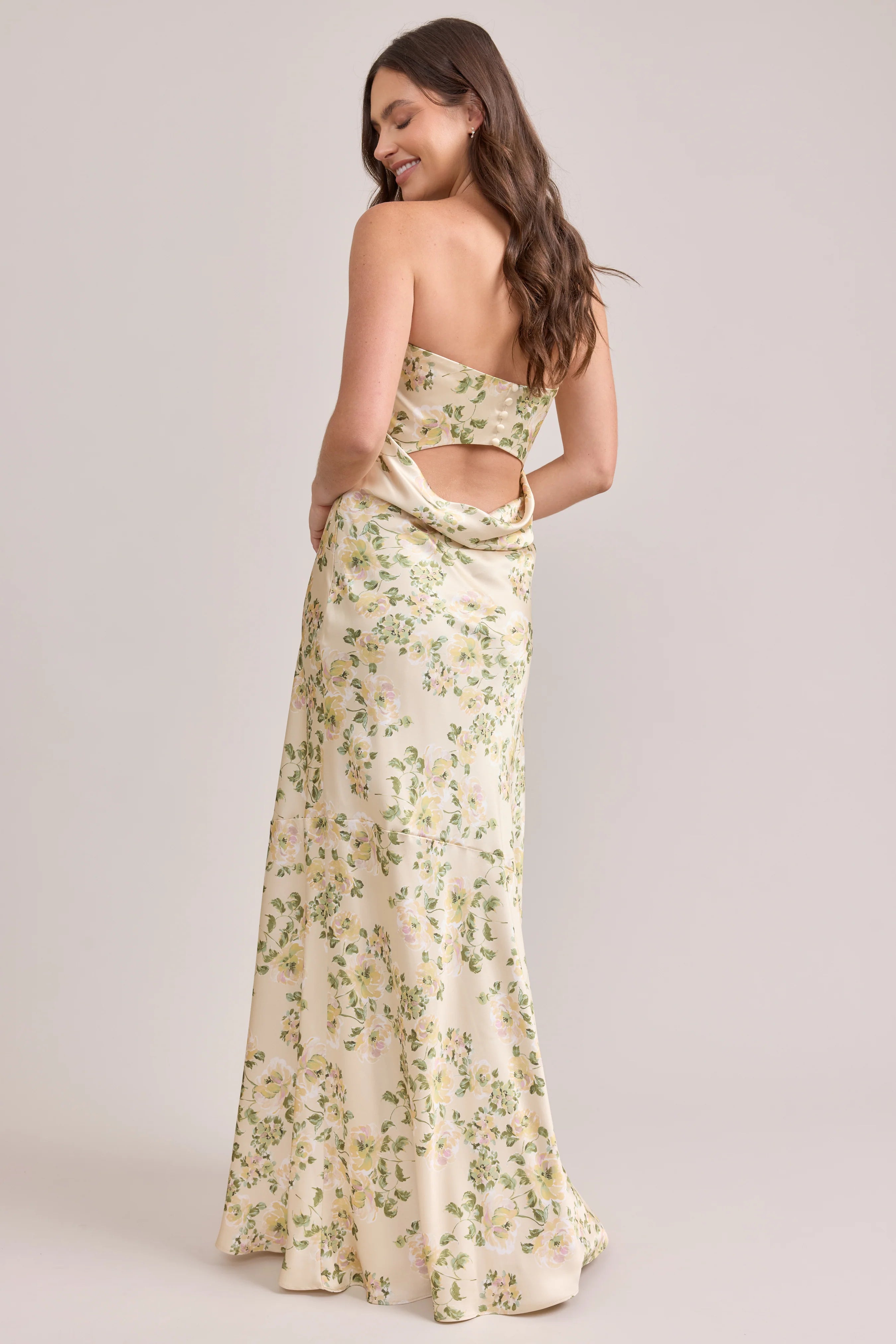 Each print is custom and unique, so while dresses may not be identical due to the cut and pattern of the dress, they will still all be cohesive. Pair these tonal floral prints with their corresponding Revelry colors to achieve an elevated mix-and-match wedding line-up!