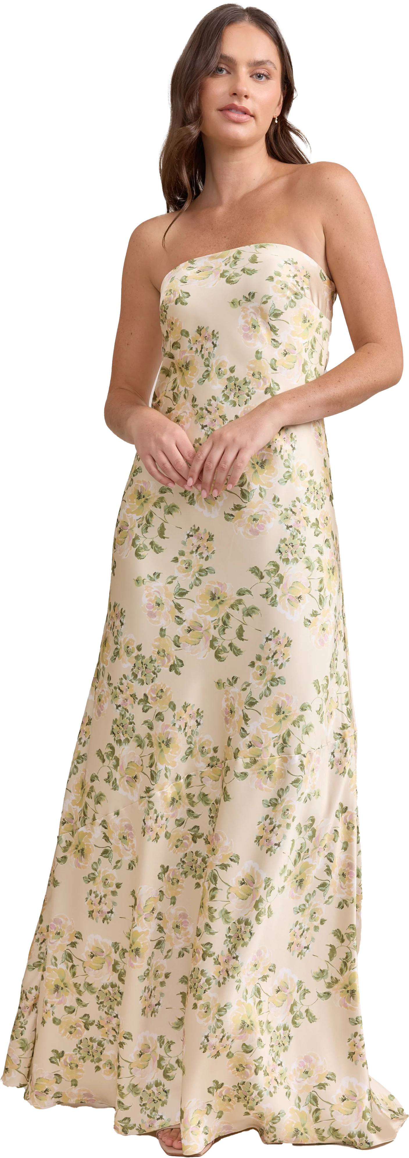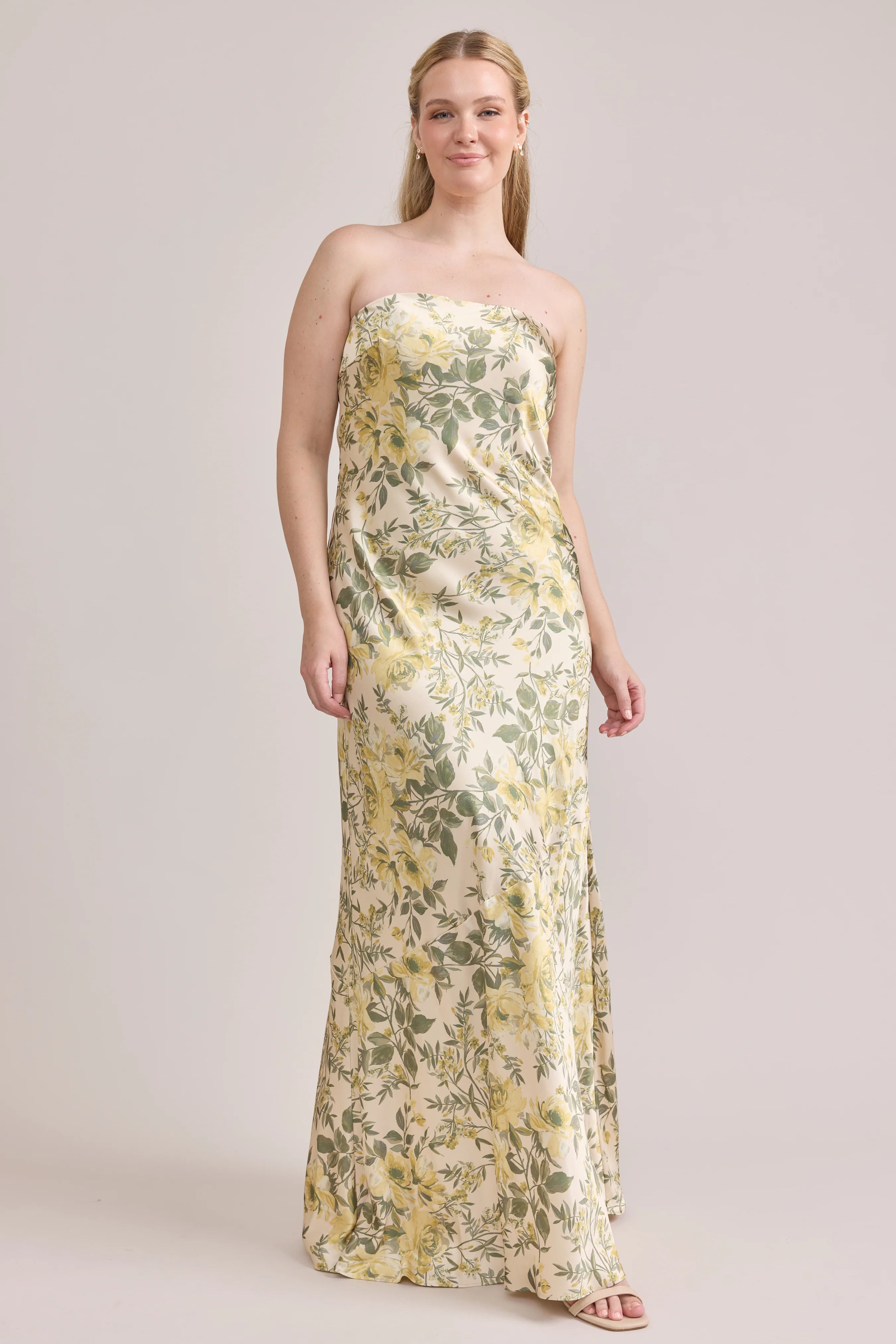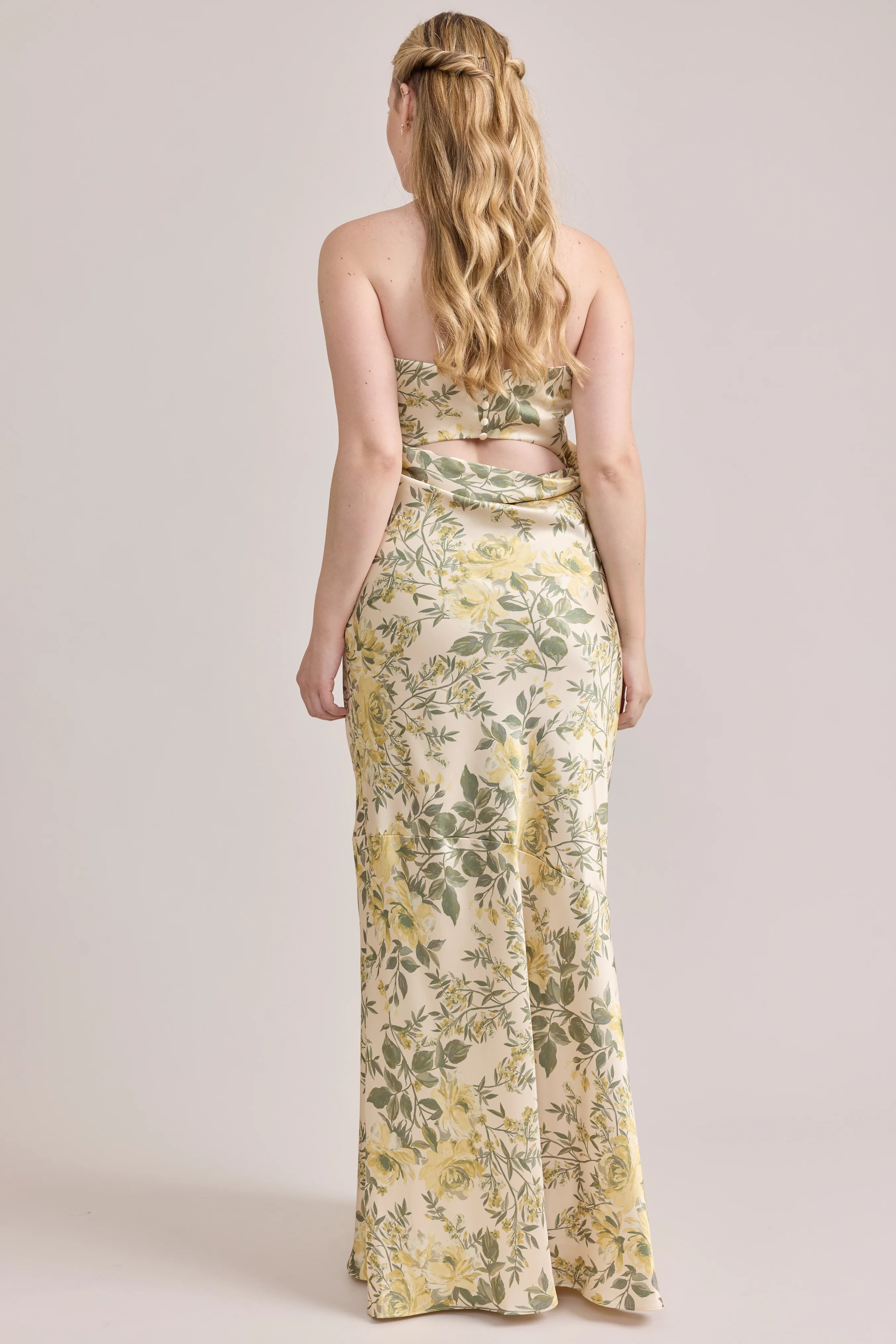 Each print is custom and unique, so while dresses may not be identical due to the cut and pattern of the dress, they will still all be cohesive. Pair these tonal floral prints with their corresponding Revelry colors to achieve an elevated mix-and-match wedding line-up!
