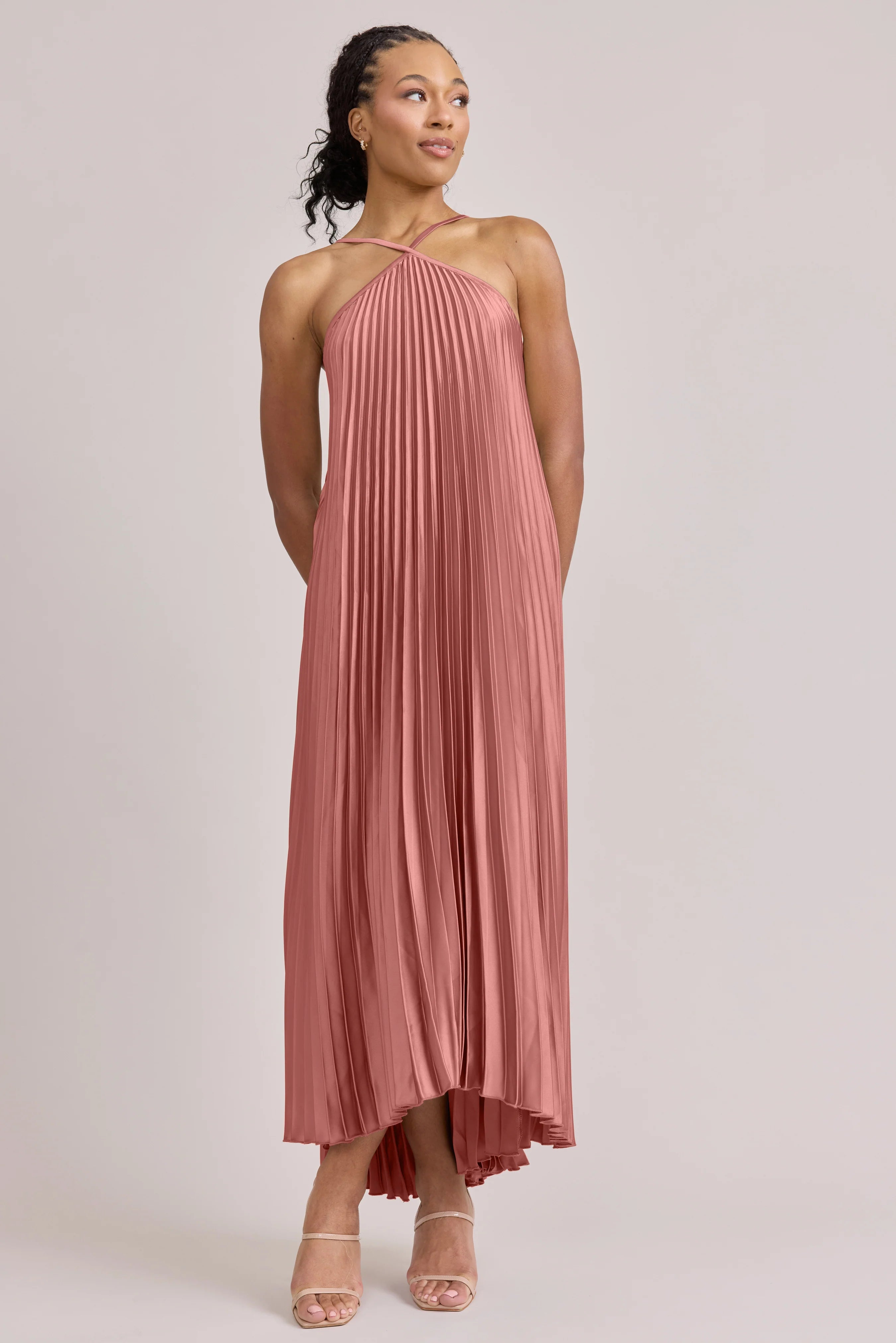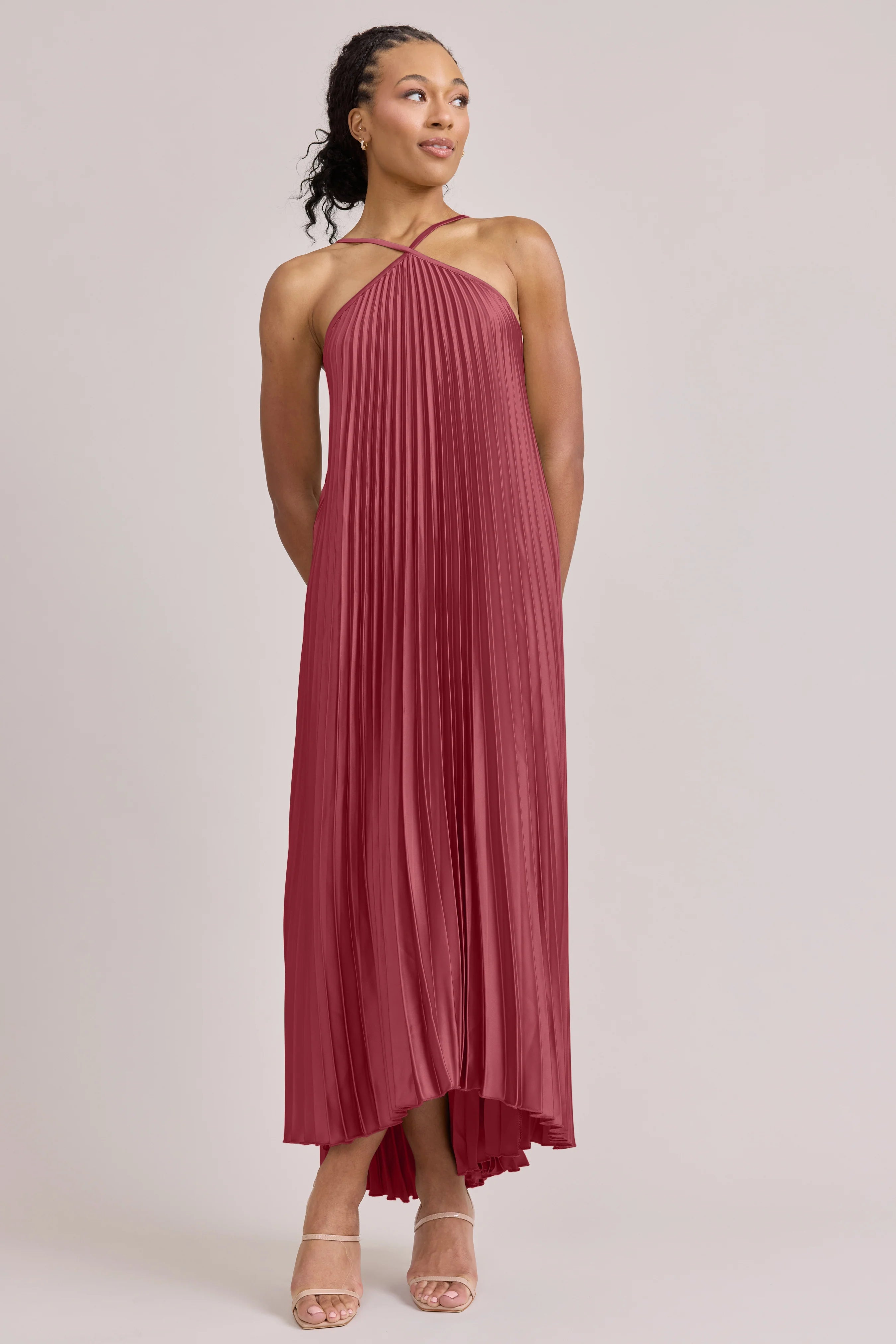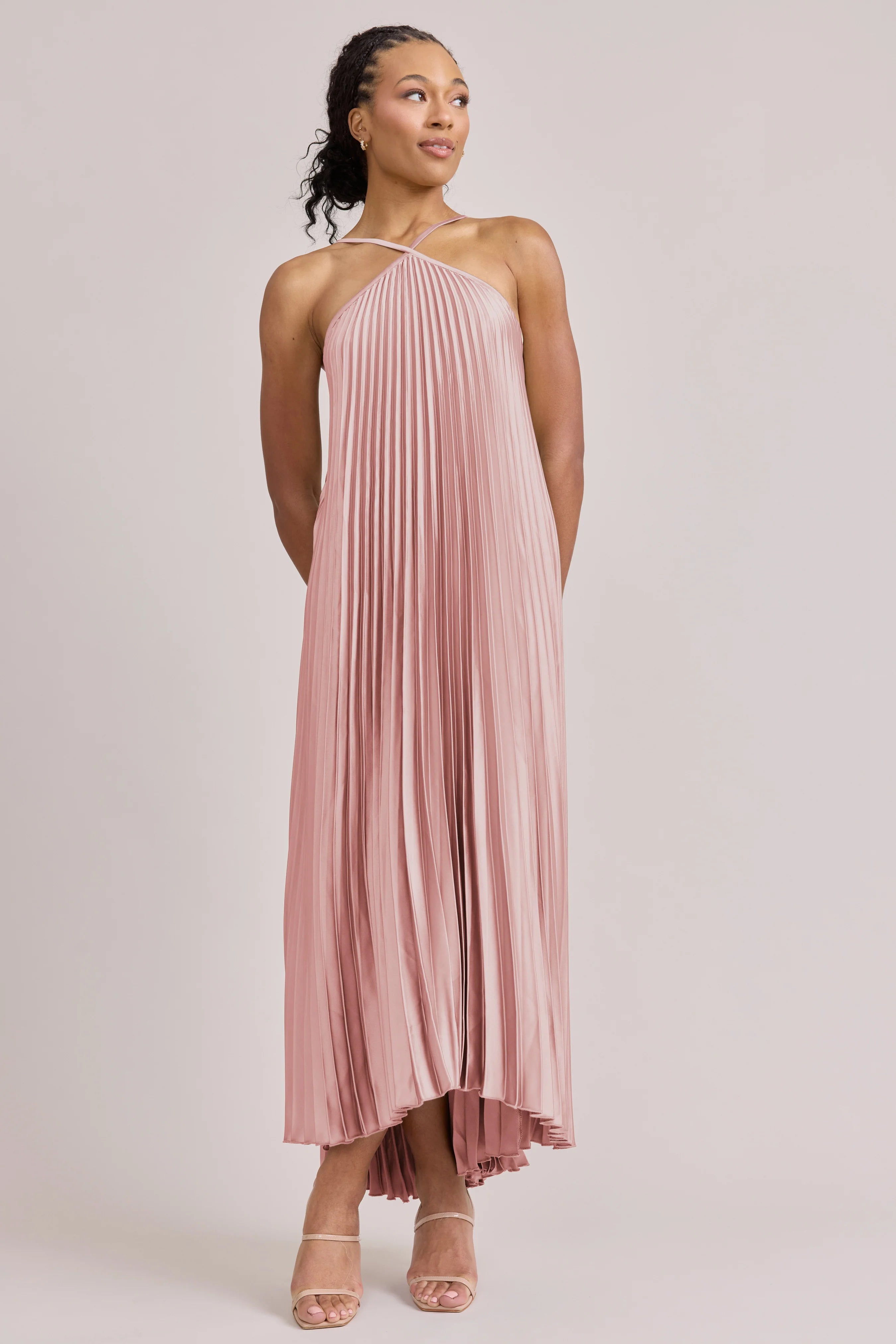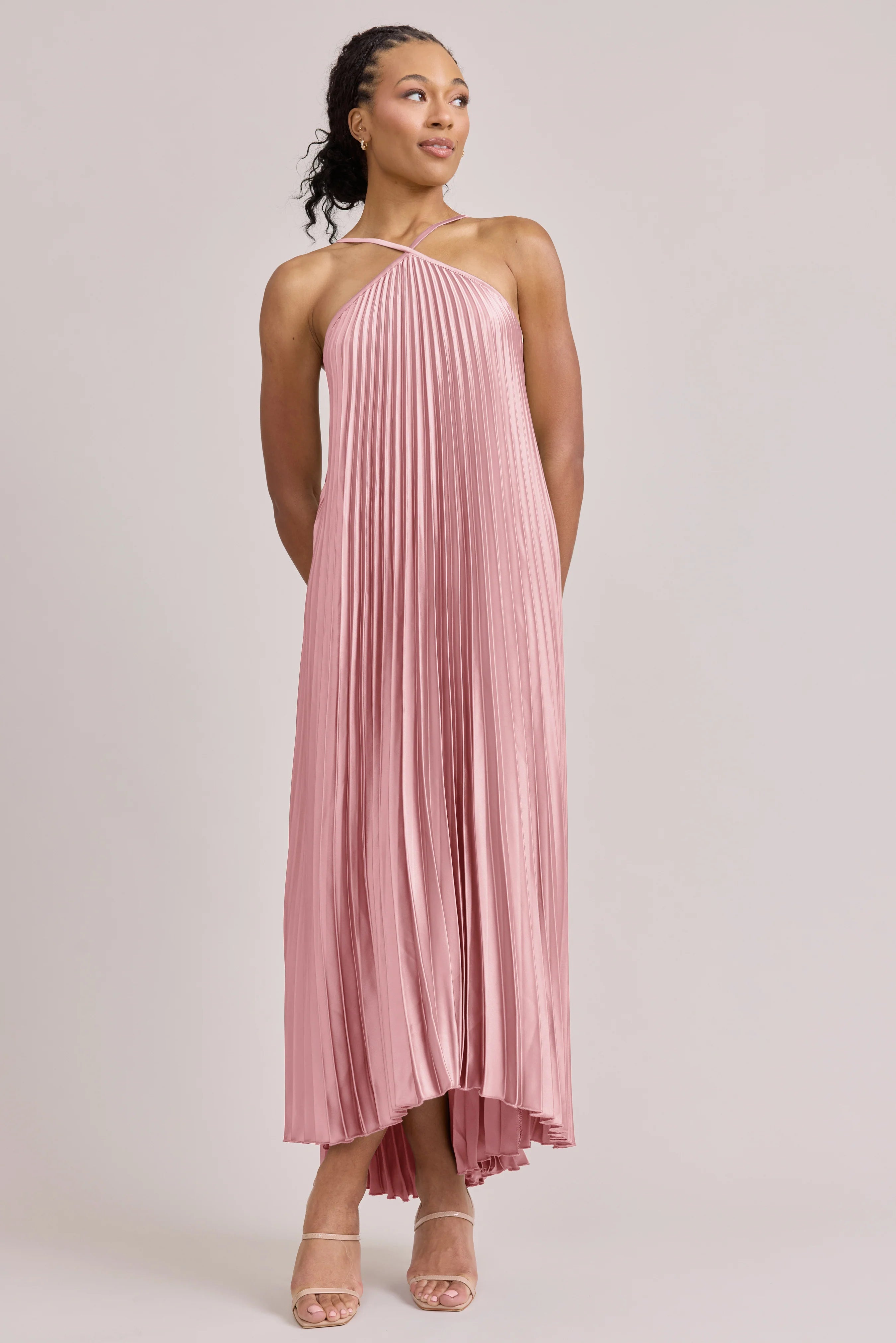 Relaxed and roomy, our Ellapink Pleated Satin Dress is the perfect option for the low maintenance bridesmaid! Her flowy silhouette and trending pleats will have you feeling comfortable and chic all night. This is also a bump-friendly pleated style.