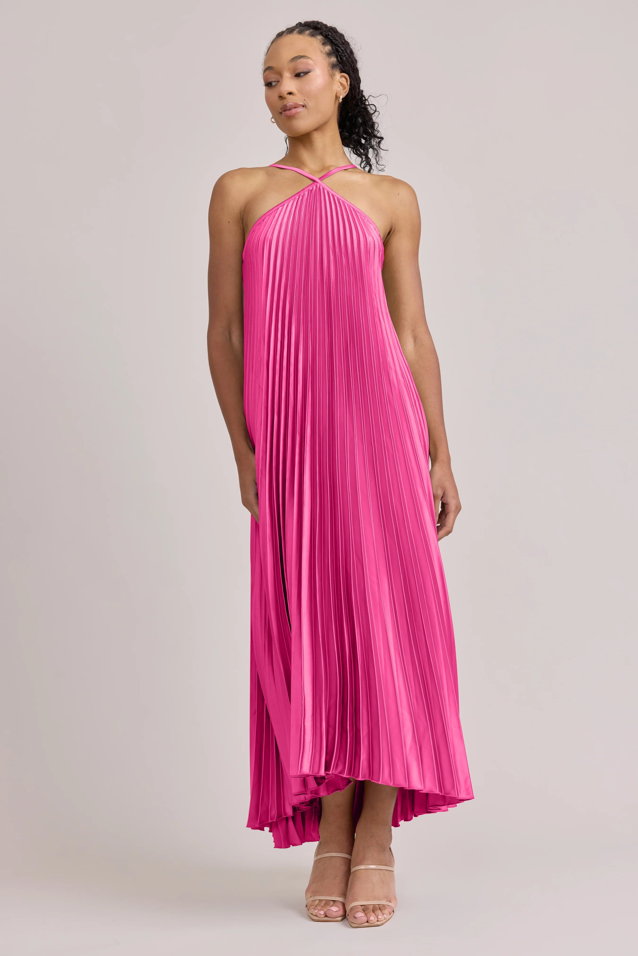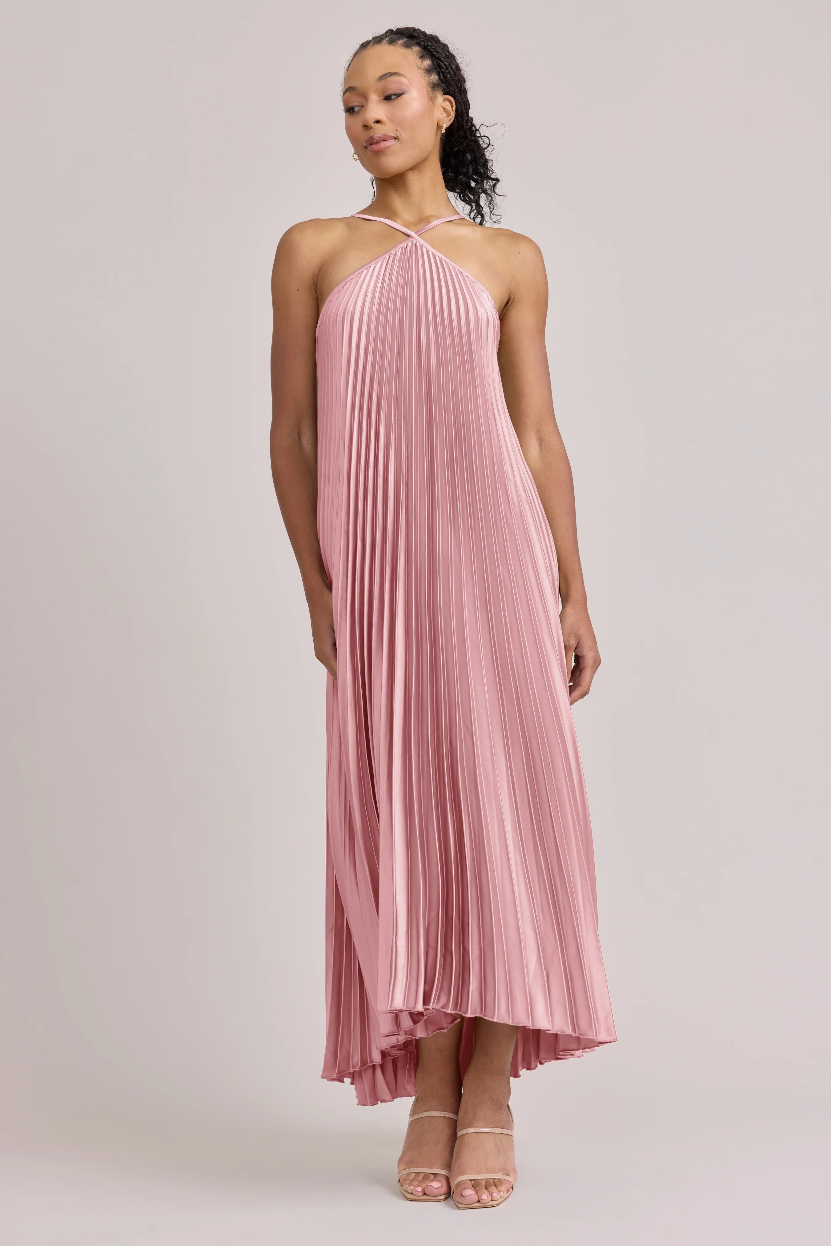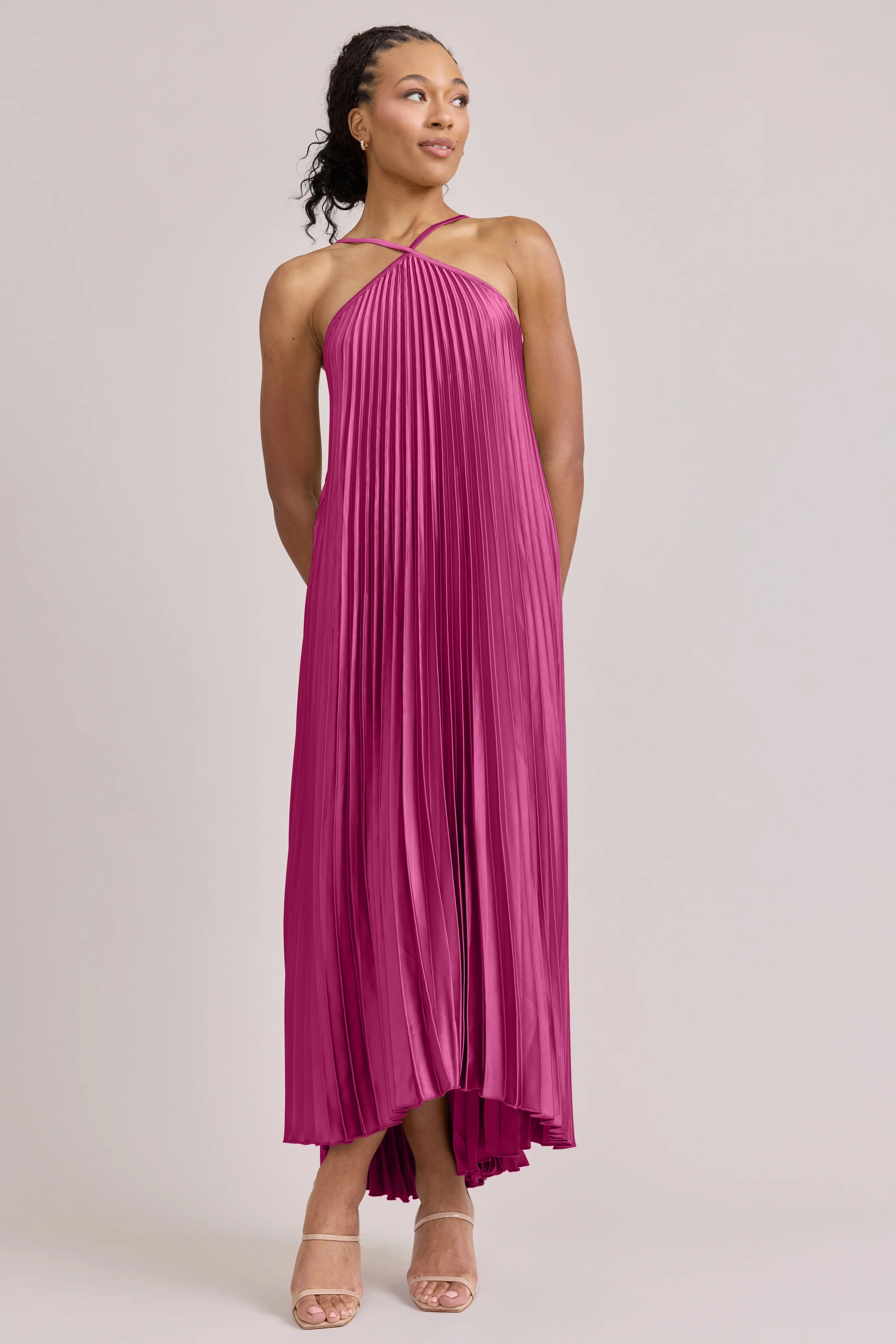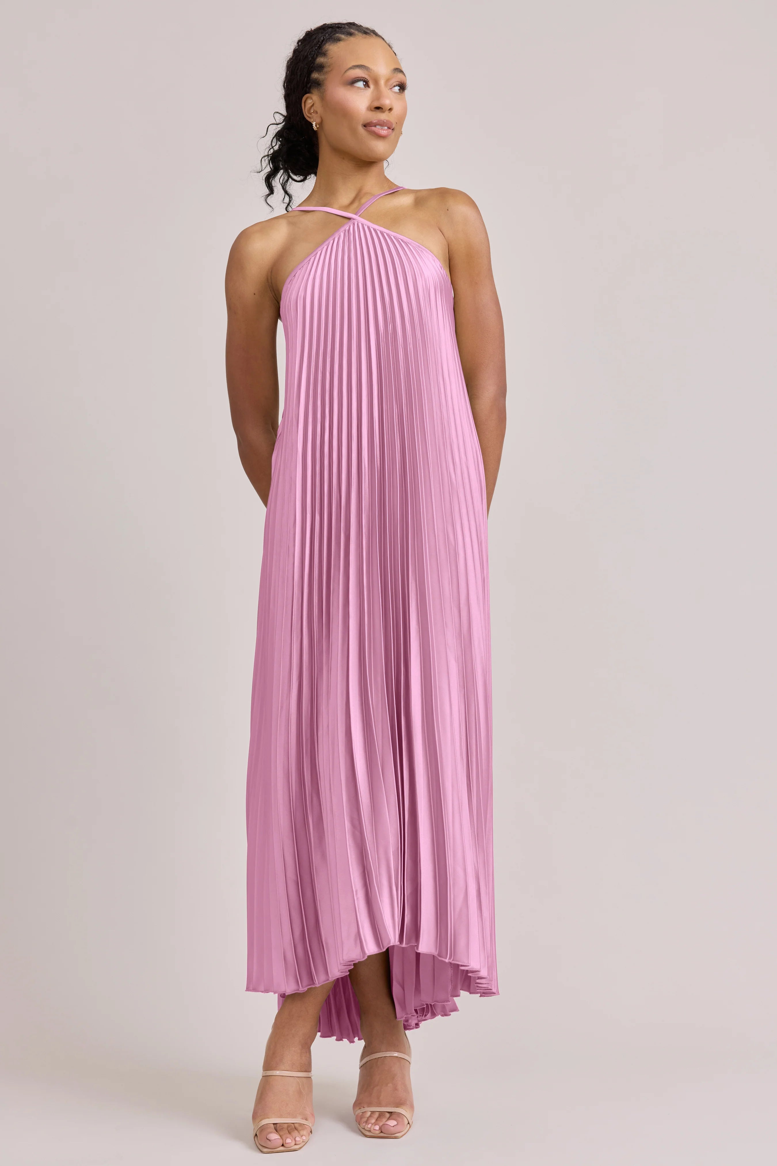 Relaxed and roomy, our Ellapink Pleated Satin Dress is the perfect option for the low maintenance bridesmaid! Her flowy silhouette and trending pleats will have you feeling comfortable and chic all night. This is also a bump-friendly pleated style.