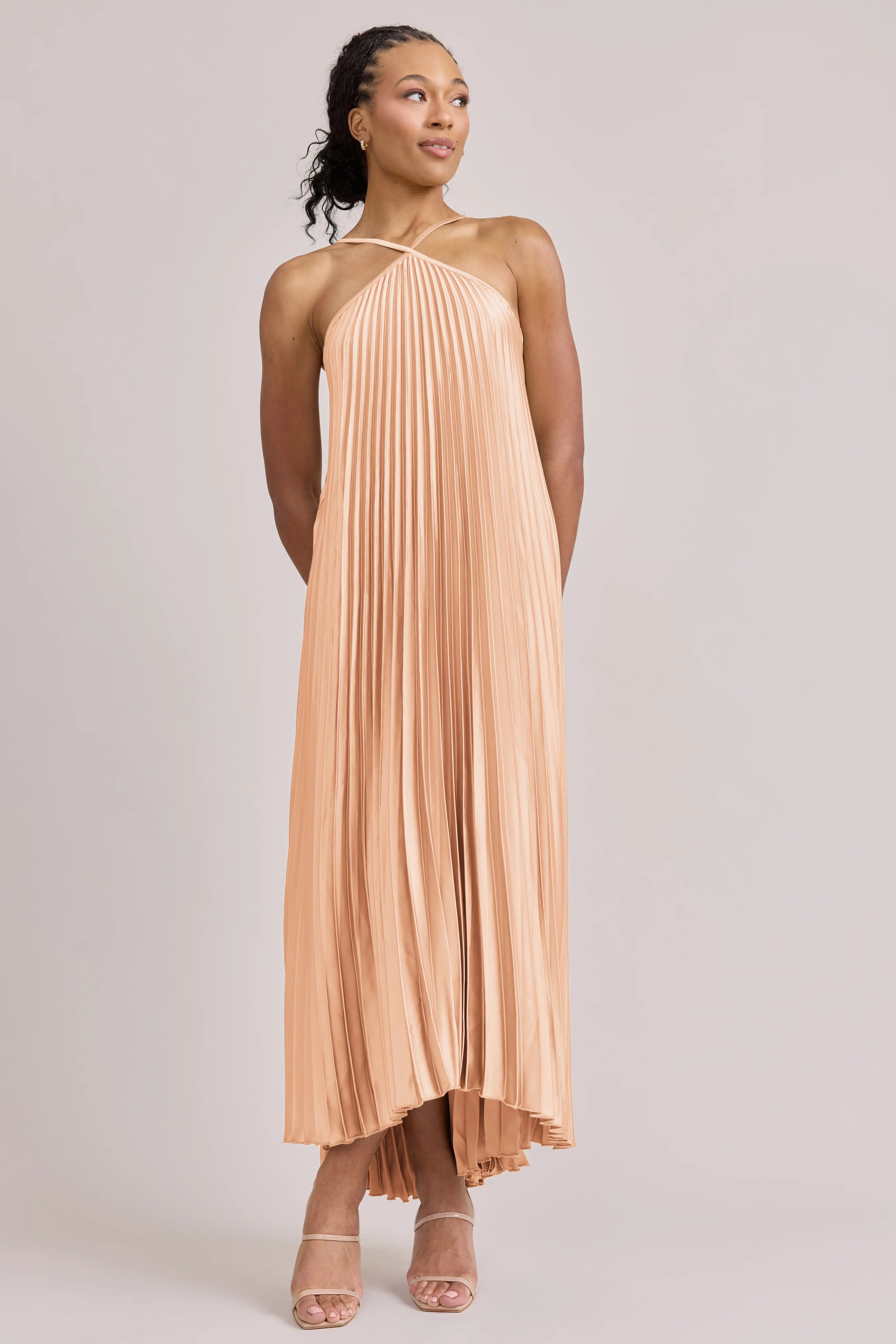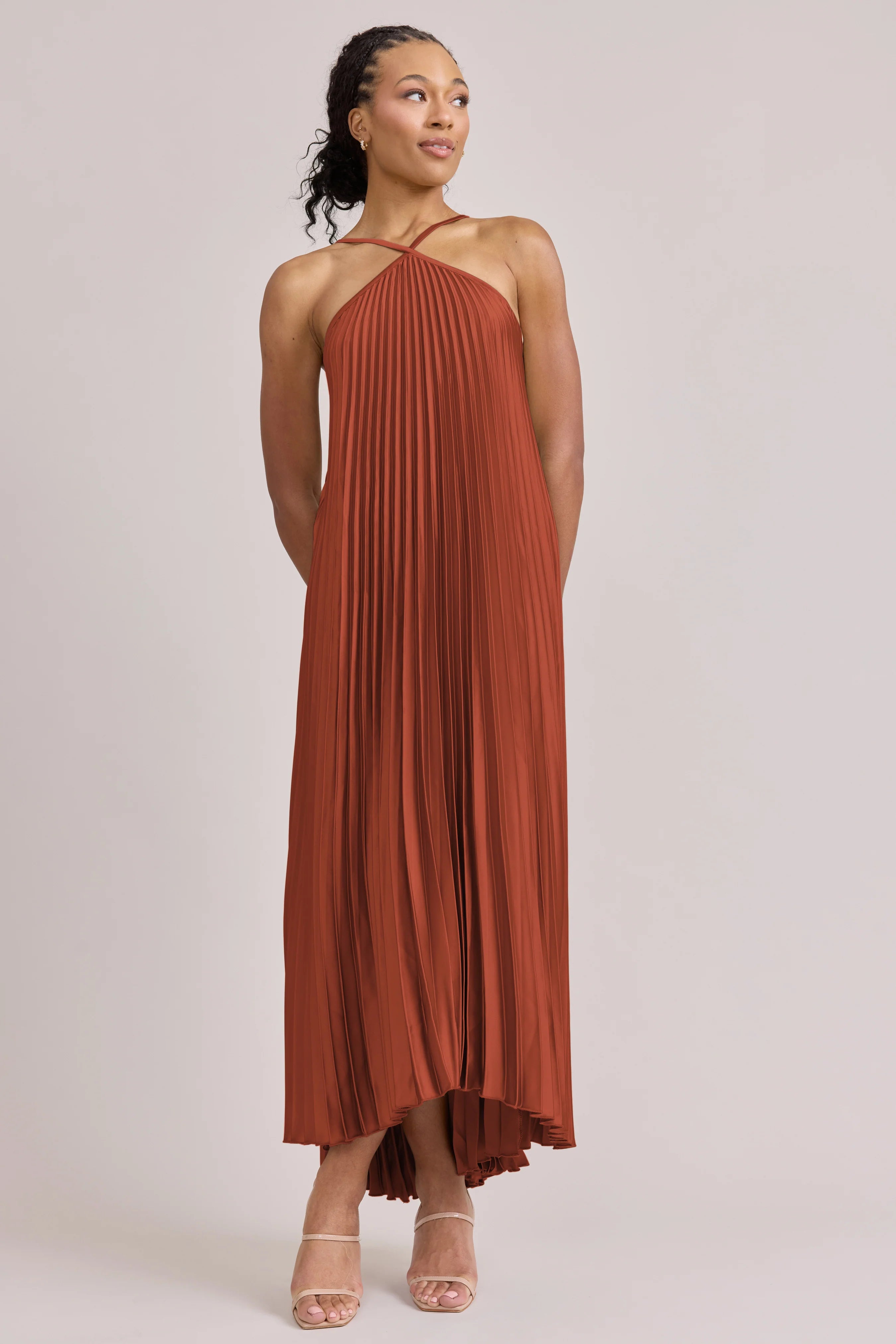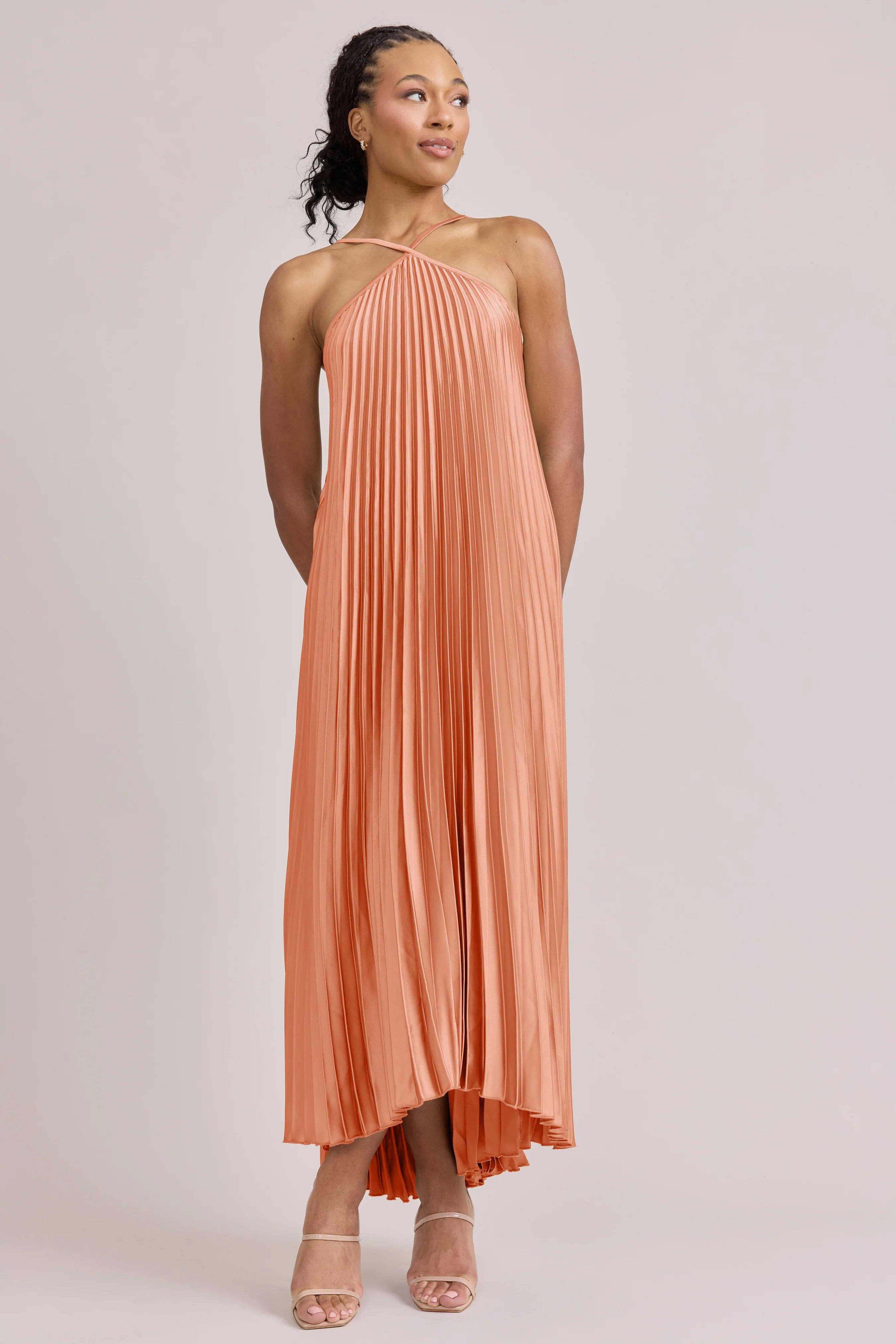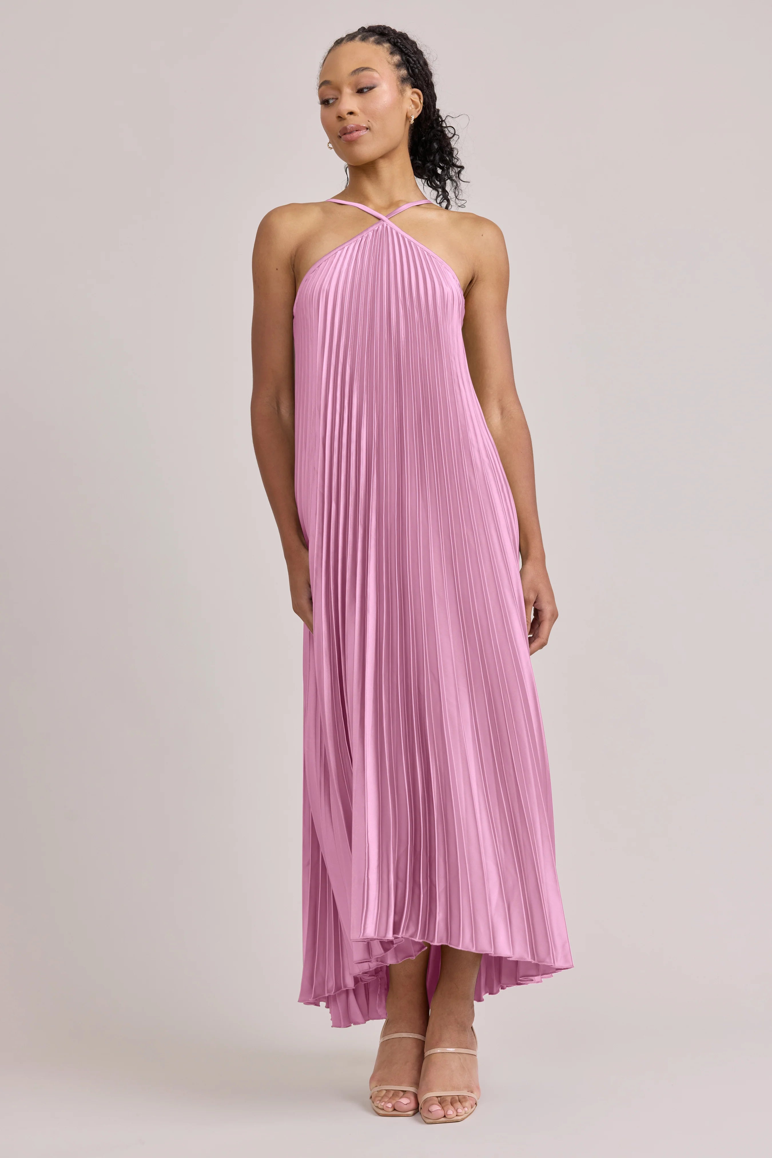 Relaxed and roomy, our Ellapink Pleated Satin Dress is the perfect option for the low maintenance bridesmaid! Her flowy silhouette and trending pleats will have you feeling comfortable and chic all night. This is also a bump-friendly pleated style.