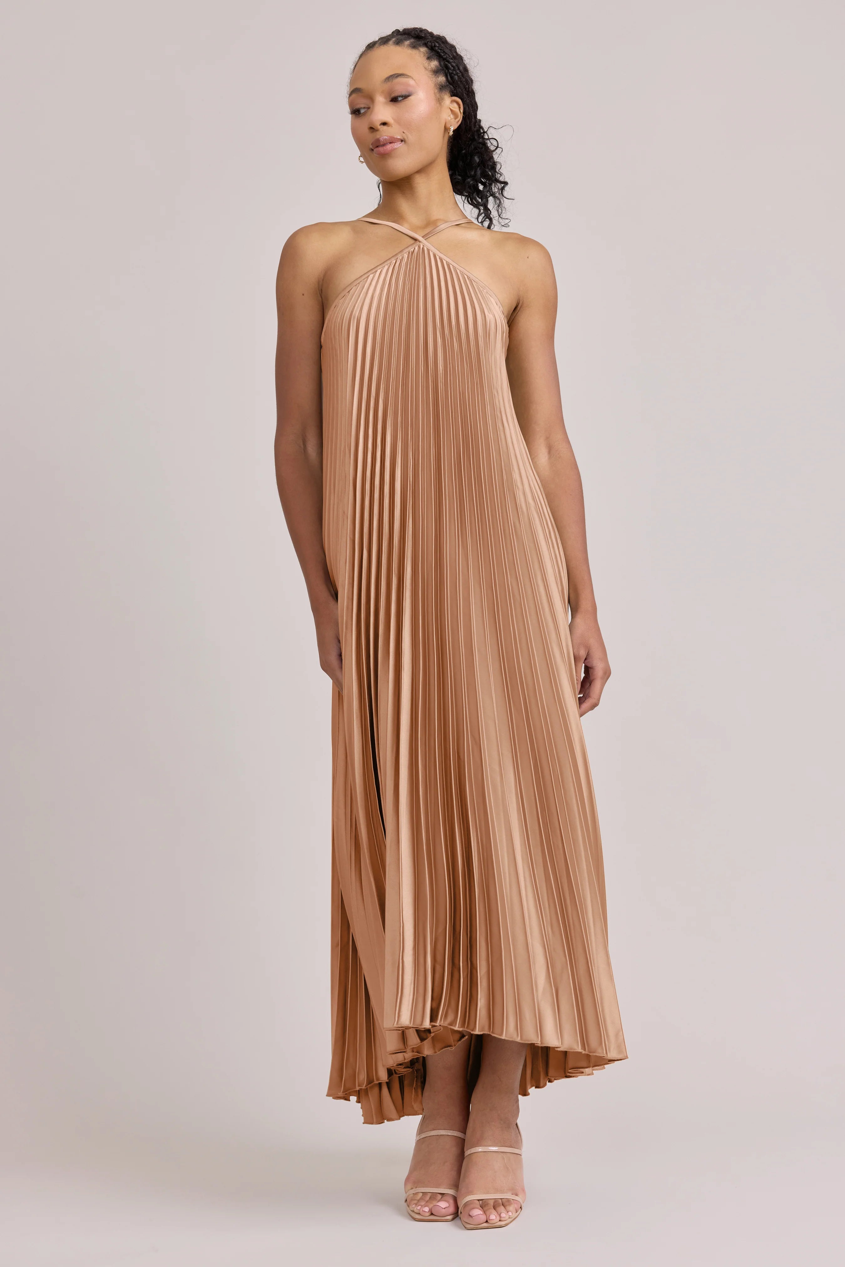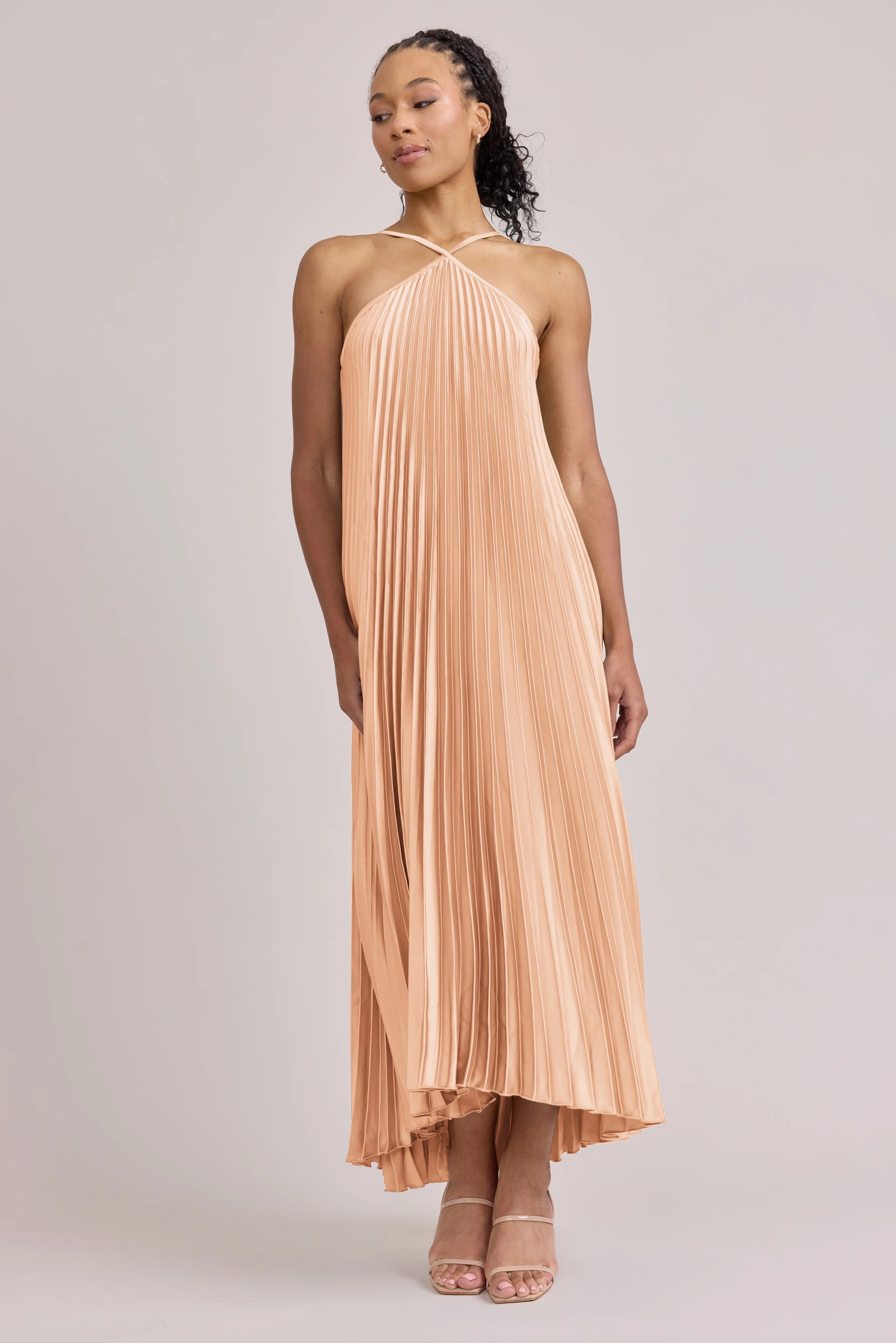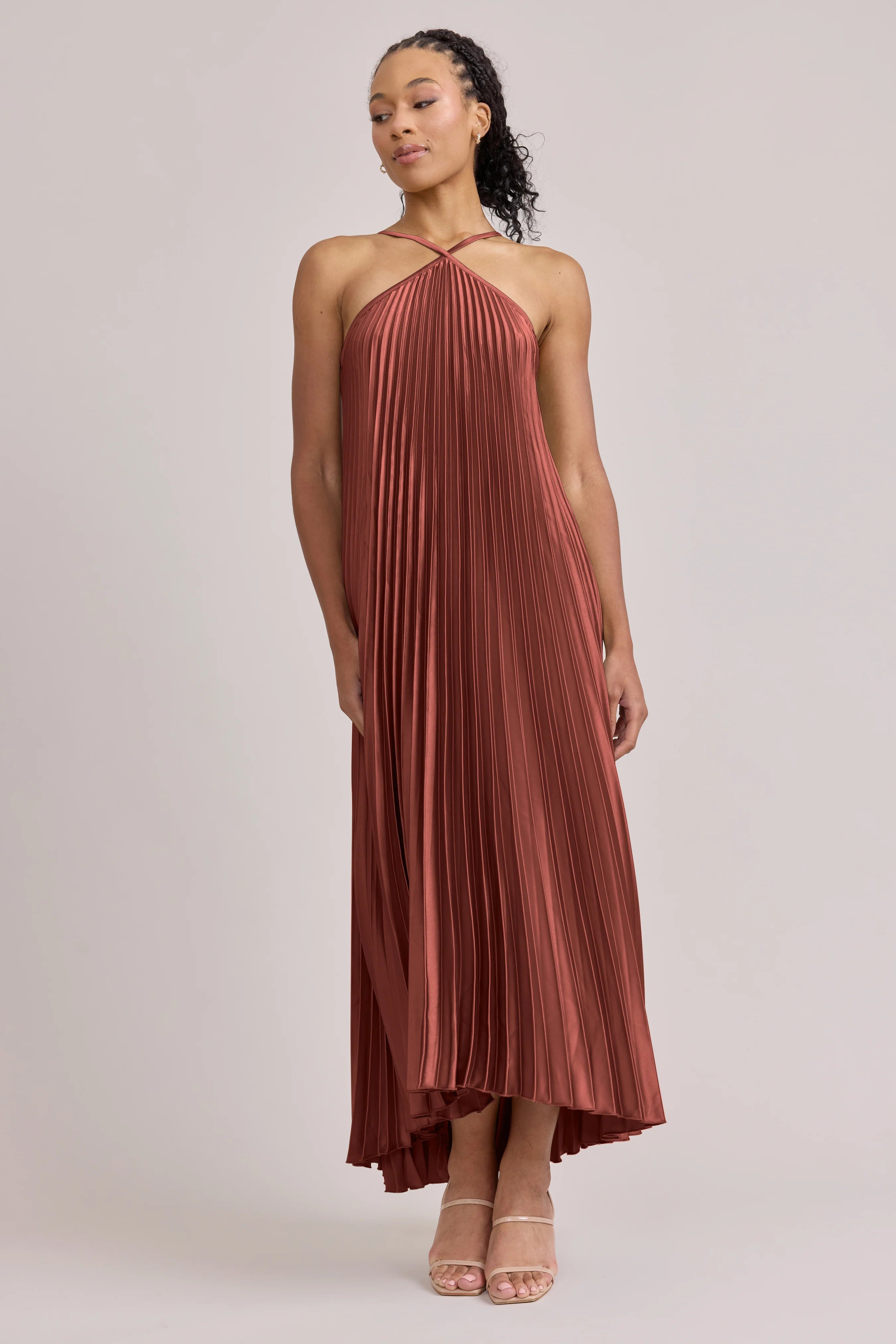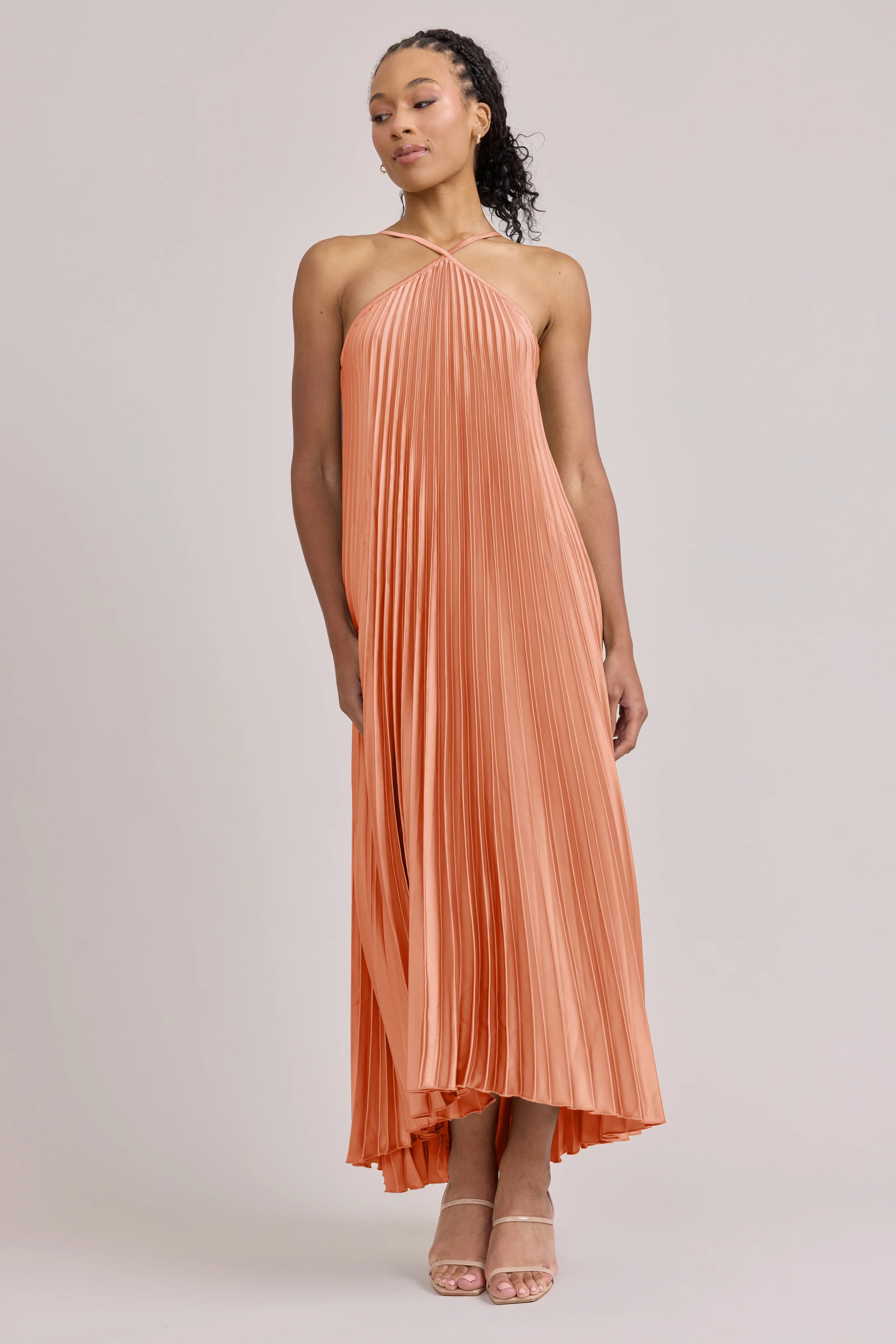 Relaxed and roomy, our Ellapink Pleated Satin Dress is the perfect option for the low maintenance bridesmaid! Her flowy silhouette and trending pleats will have you feeling comfortable and chic all night. This is also a bump-friendly pleated style.