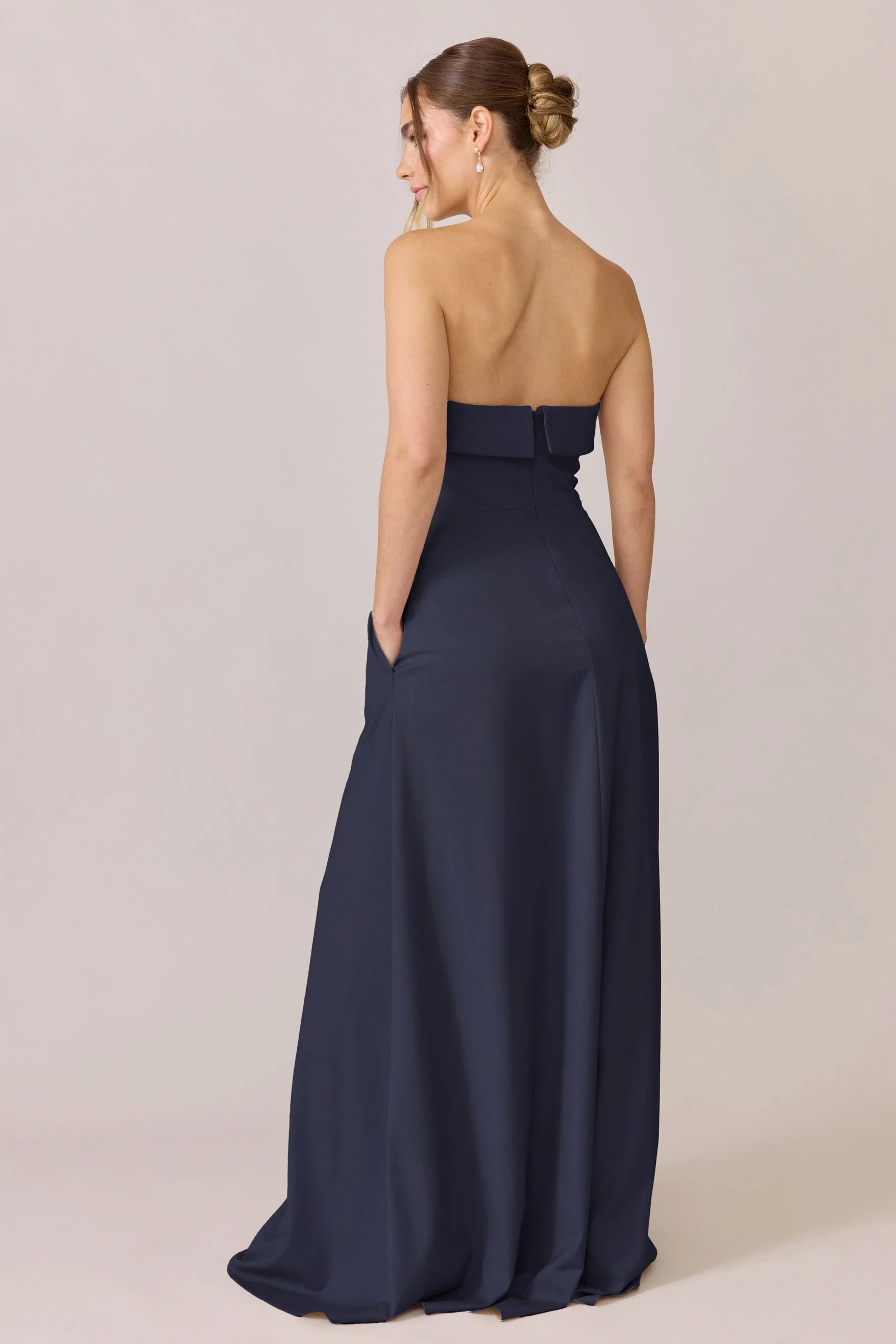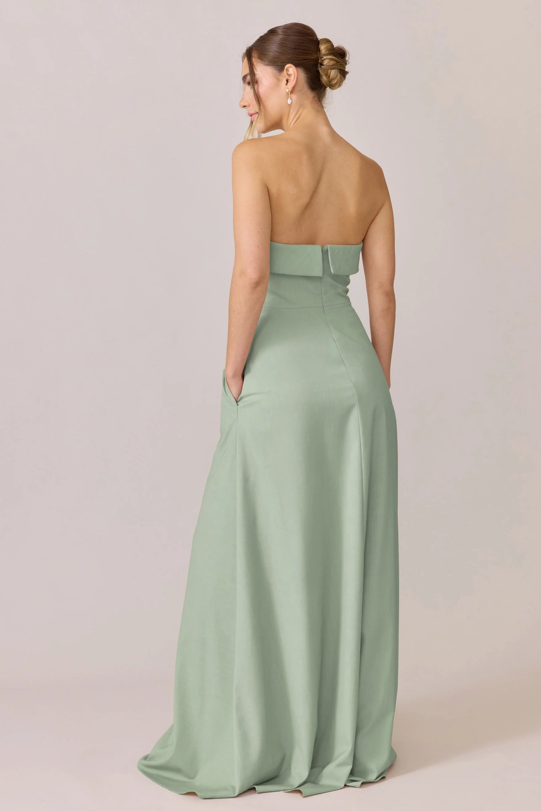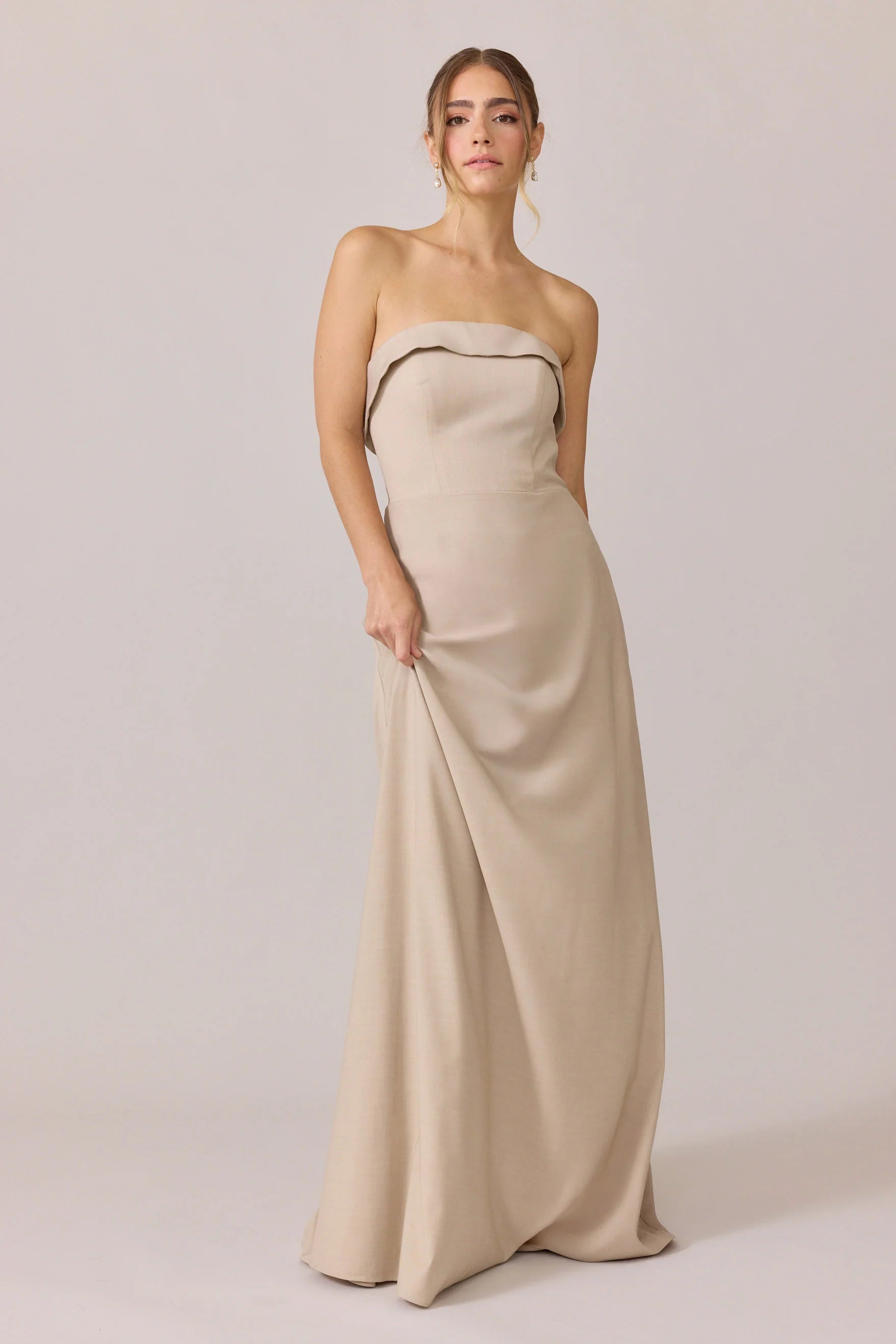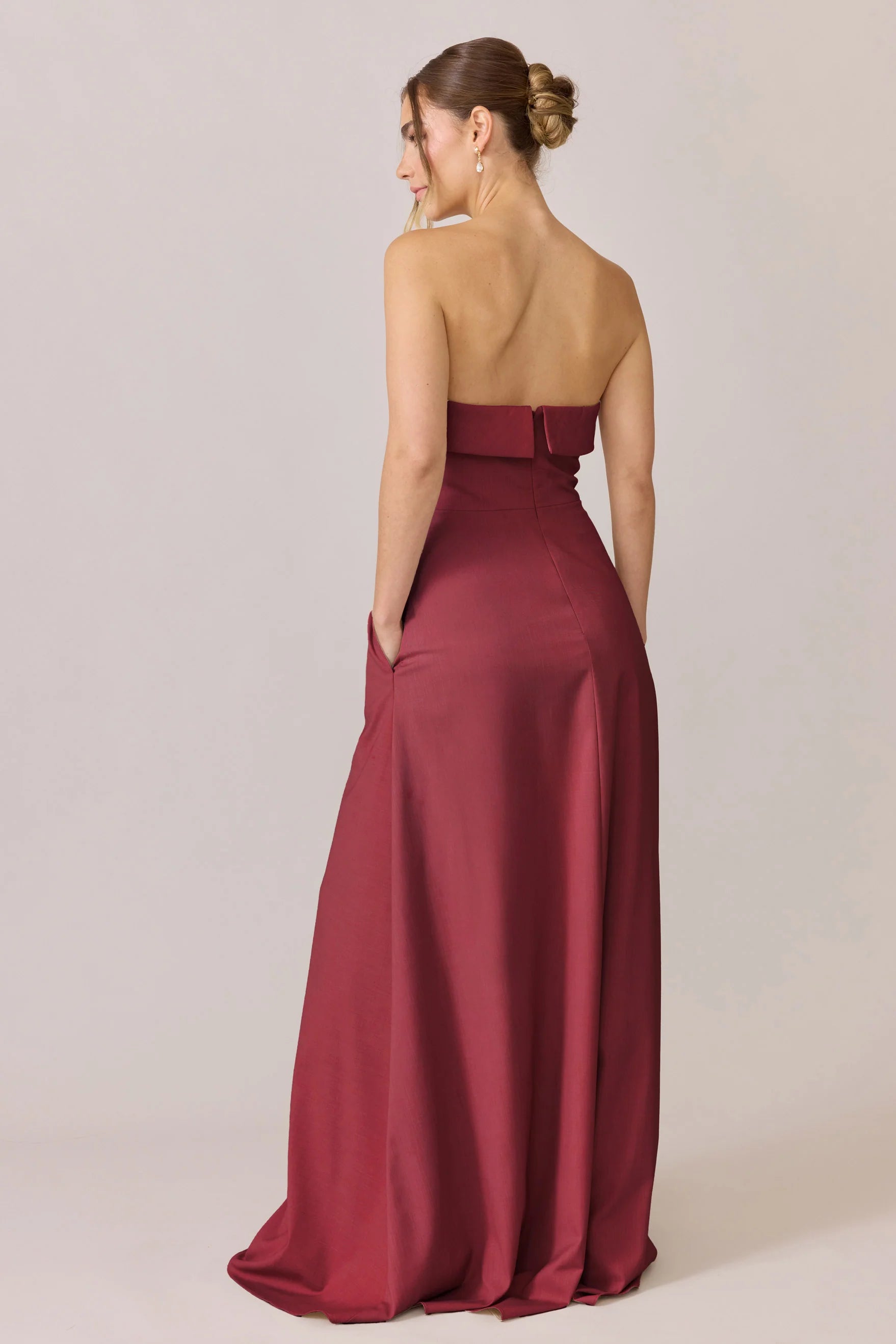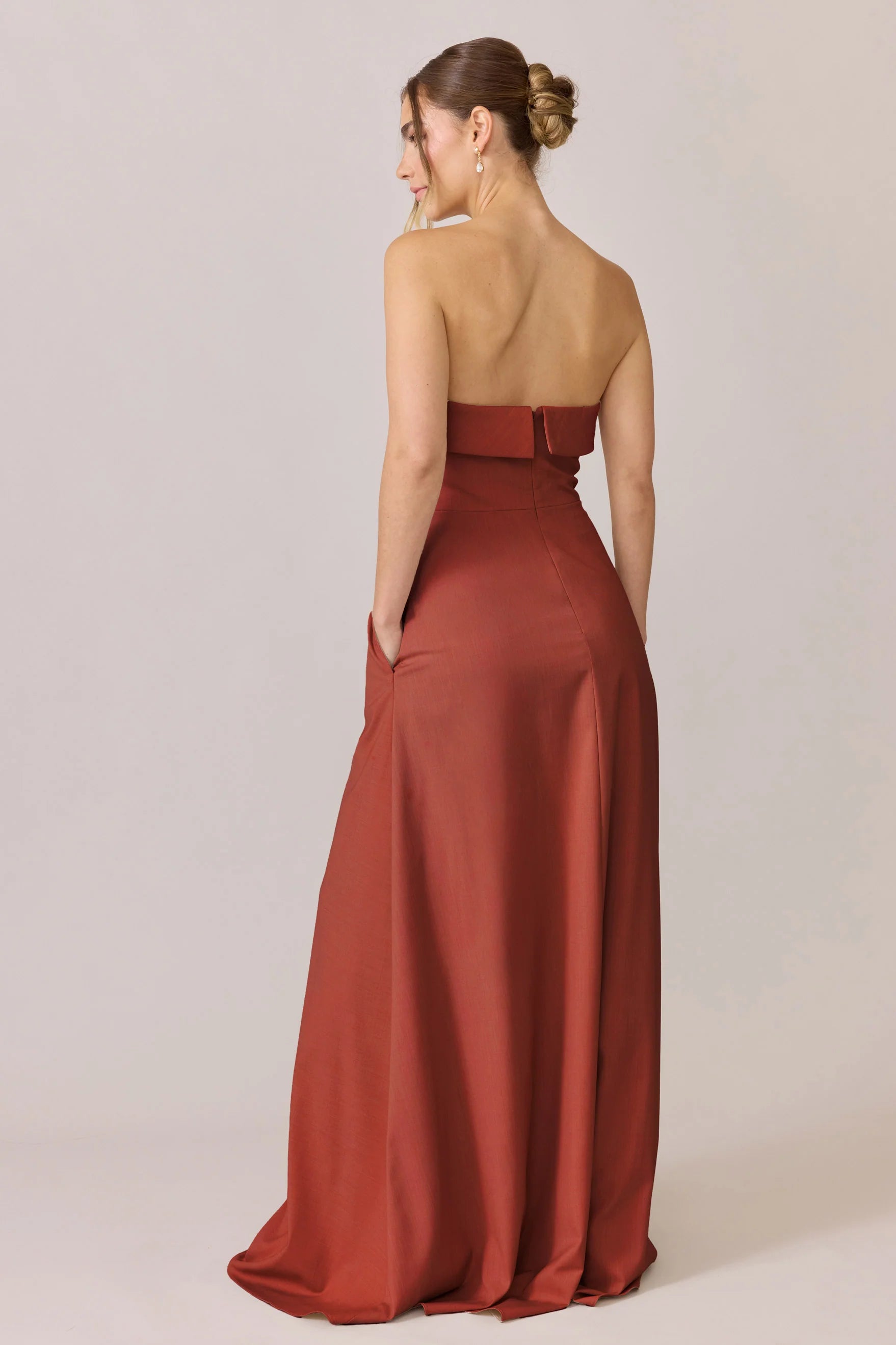 Sharp, structured, and effortlessly cool—the Ellapink Suiting Dress is where modern tailoring meets bridal party chic. Crafted from our premium suiting fabric to coordinate perfectly with our groomsman styles, Clarke features a clean A-line silhouette, a strapless foldover neckline, and—yes—pockets. Built-in cups and boning provide subtle structure, while the full-length double lining ensures a smooth, confident fit from first look to final dance.
