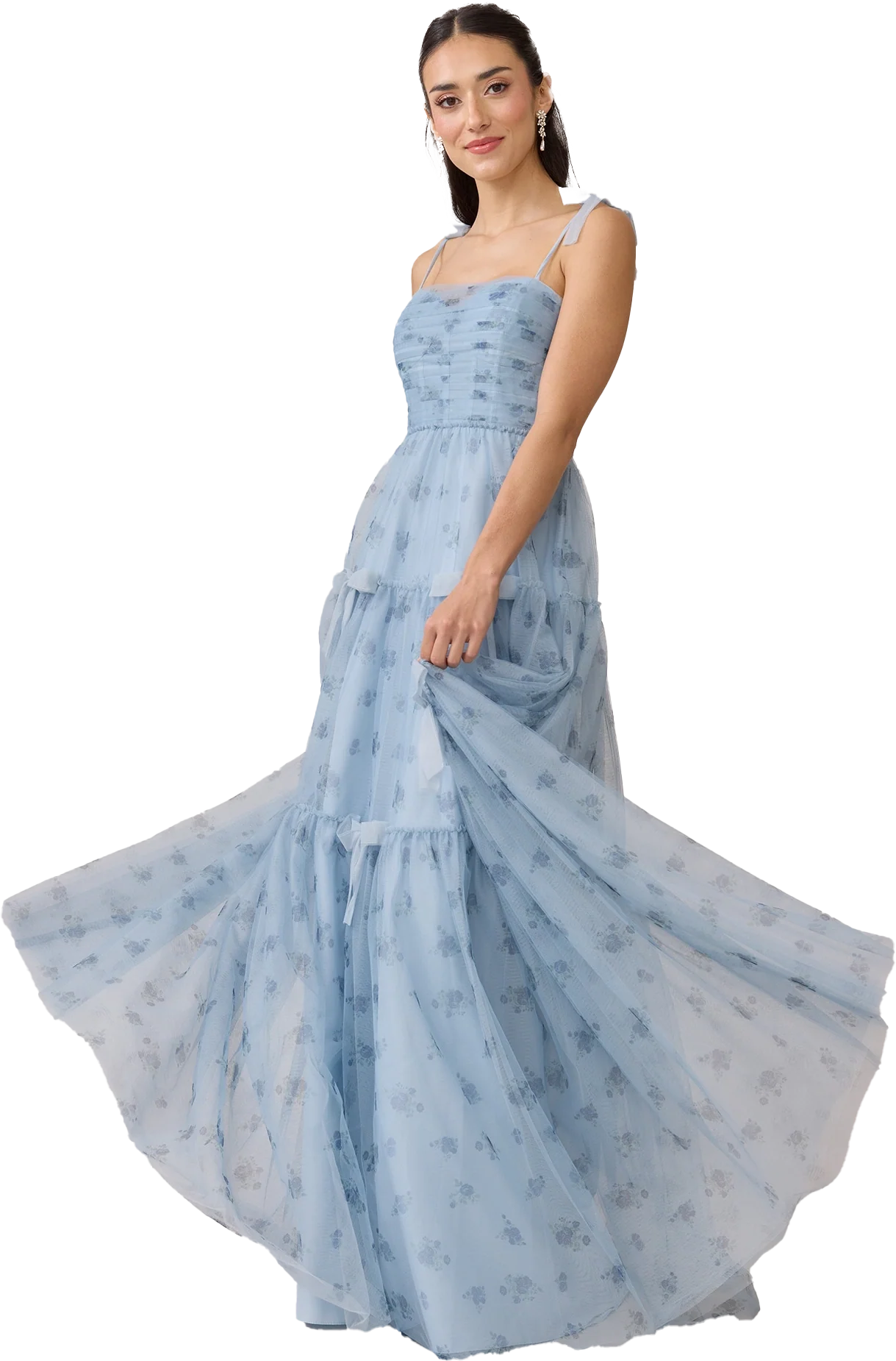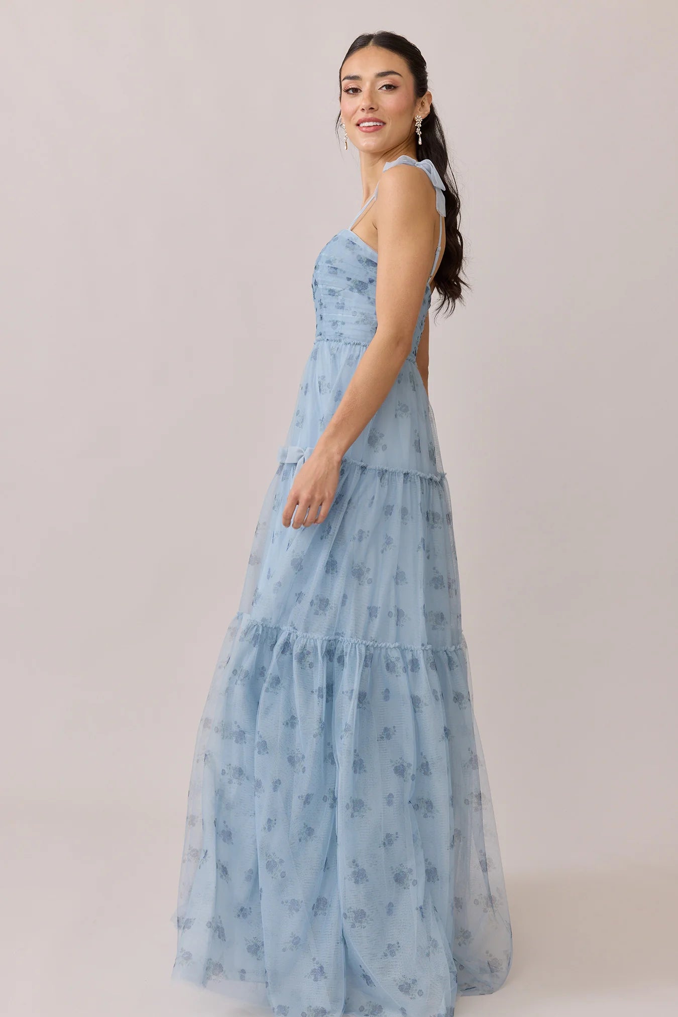 With its trending coquette details, our Ellapink dress is the sweetest addition to our Tulle collection, now available in petit rose floral print! Eloise features a sheer tulle ruched over a corset bodice and dainty tulle bows throughout the dress highlighting the 3-tiered prairie skirt. Eloise is finished off with matching dainty tulle pre-tied bows on the shoulder of the thin tulle spaghetti straps. Pair with our Eloise Flower Girl dress for a mini-me look!
