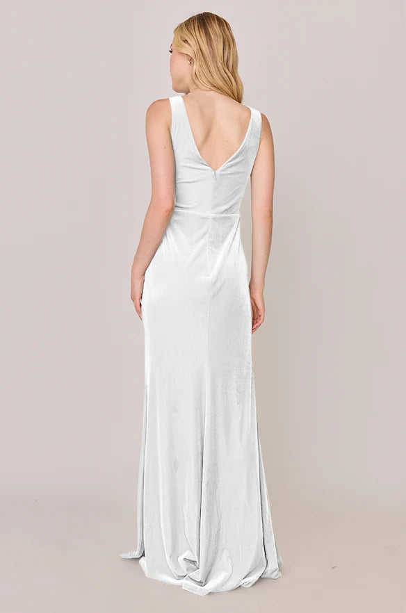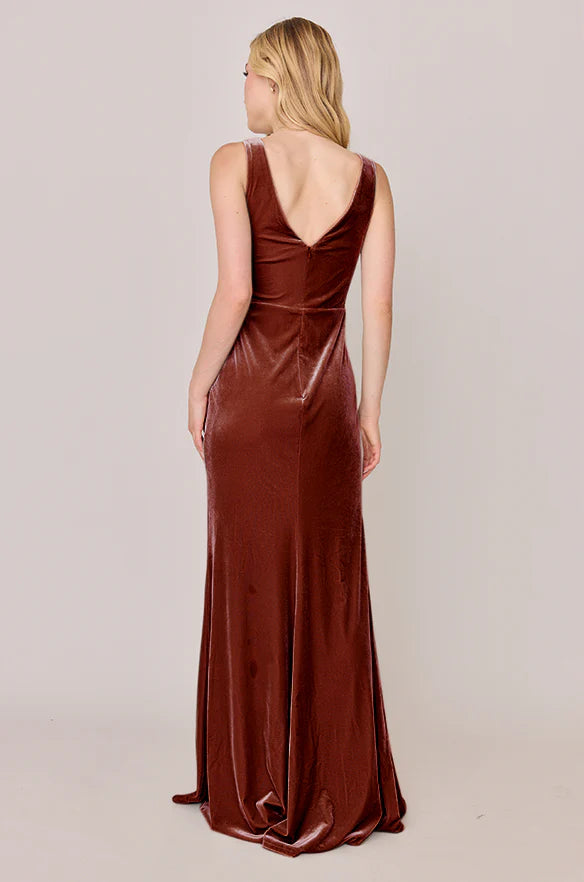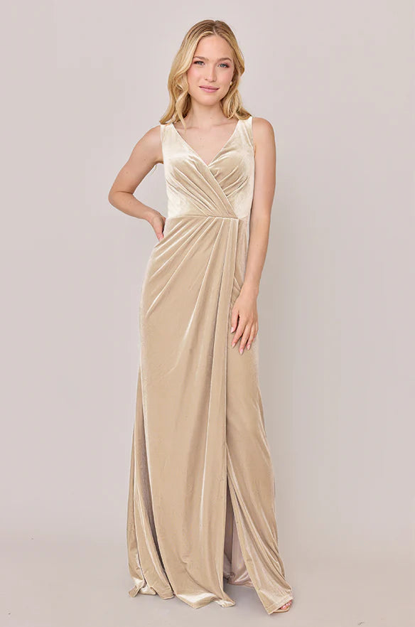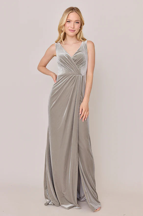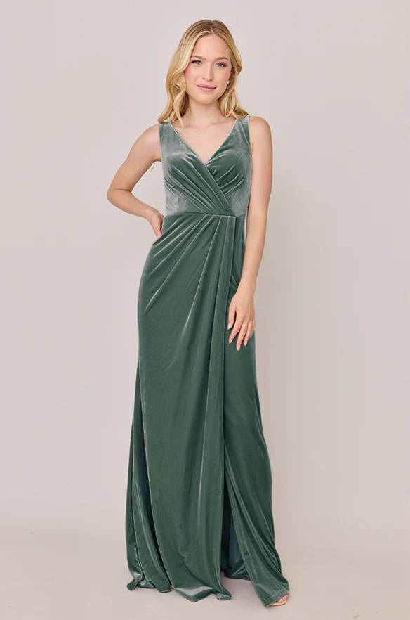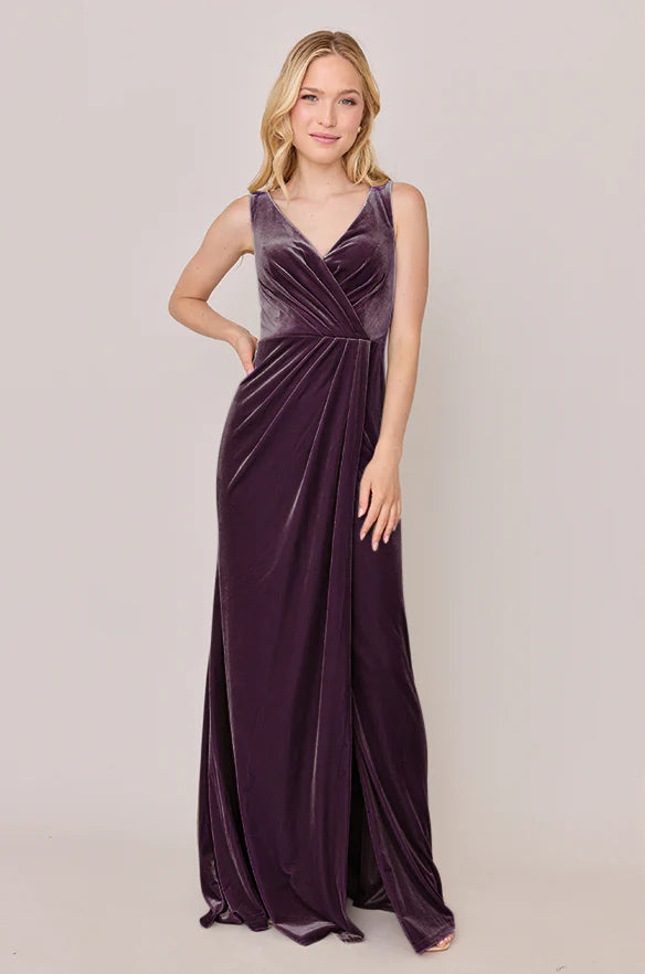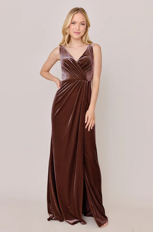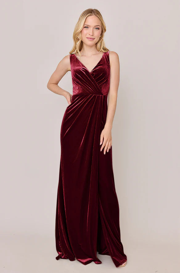 Our Blair Ellapink dress is a timeless silhouette that everyone will want in their bridal lineup!This dress features stylized pleats that meet at the left side front of the waistline to help create a refined faux version of the widely known wrap dress accompanied by a modest slit. Blair is fit to flatter all types of figures and this modest style will still have you feeling confident and sexy all night long!