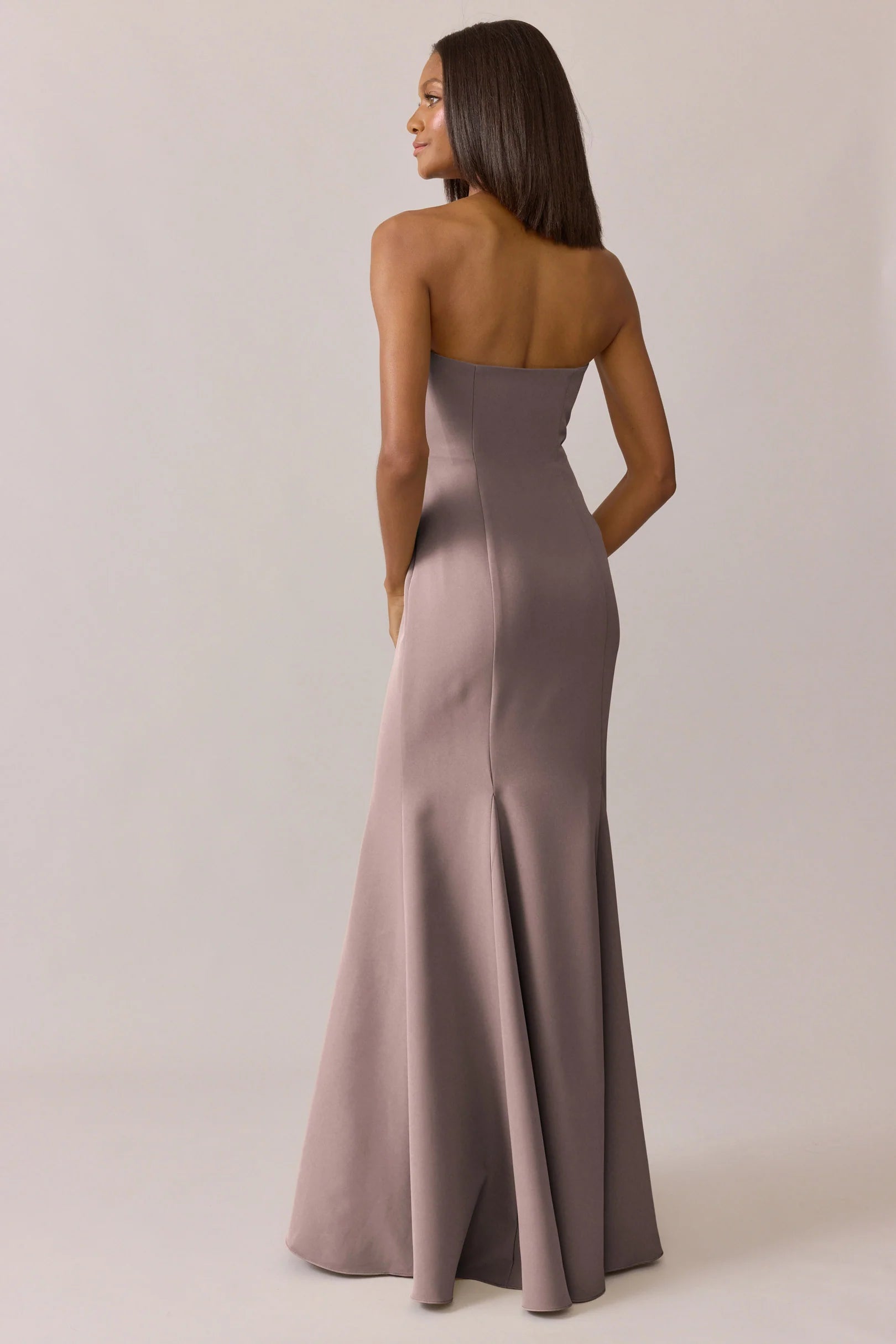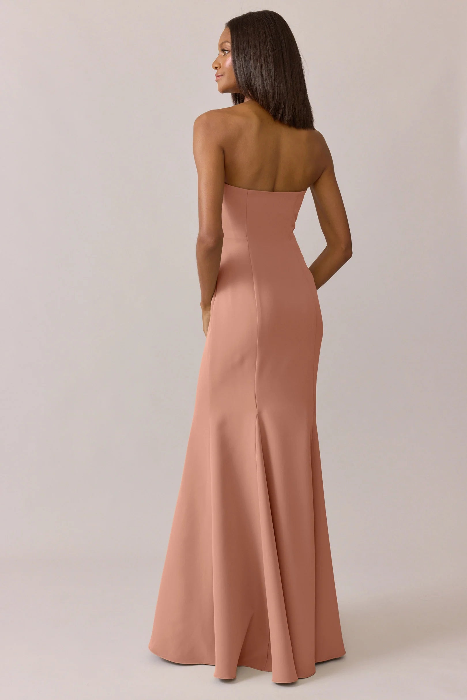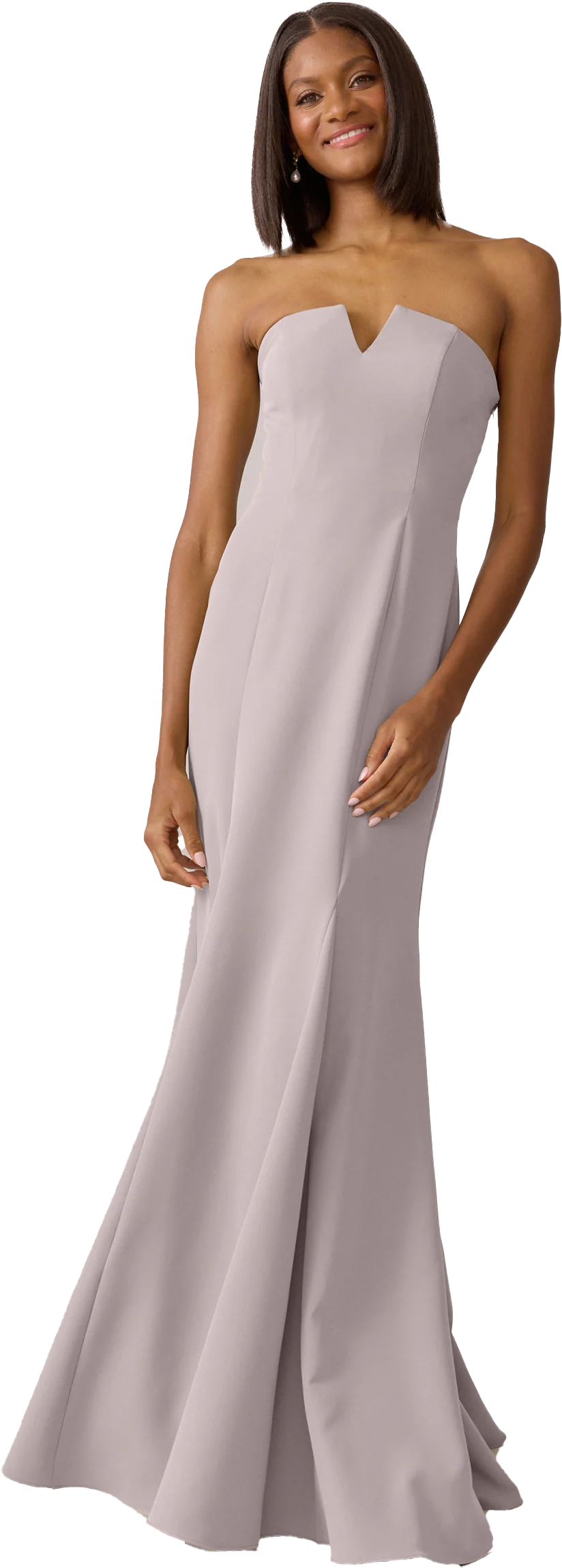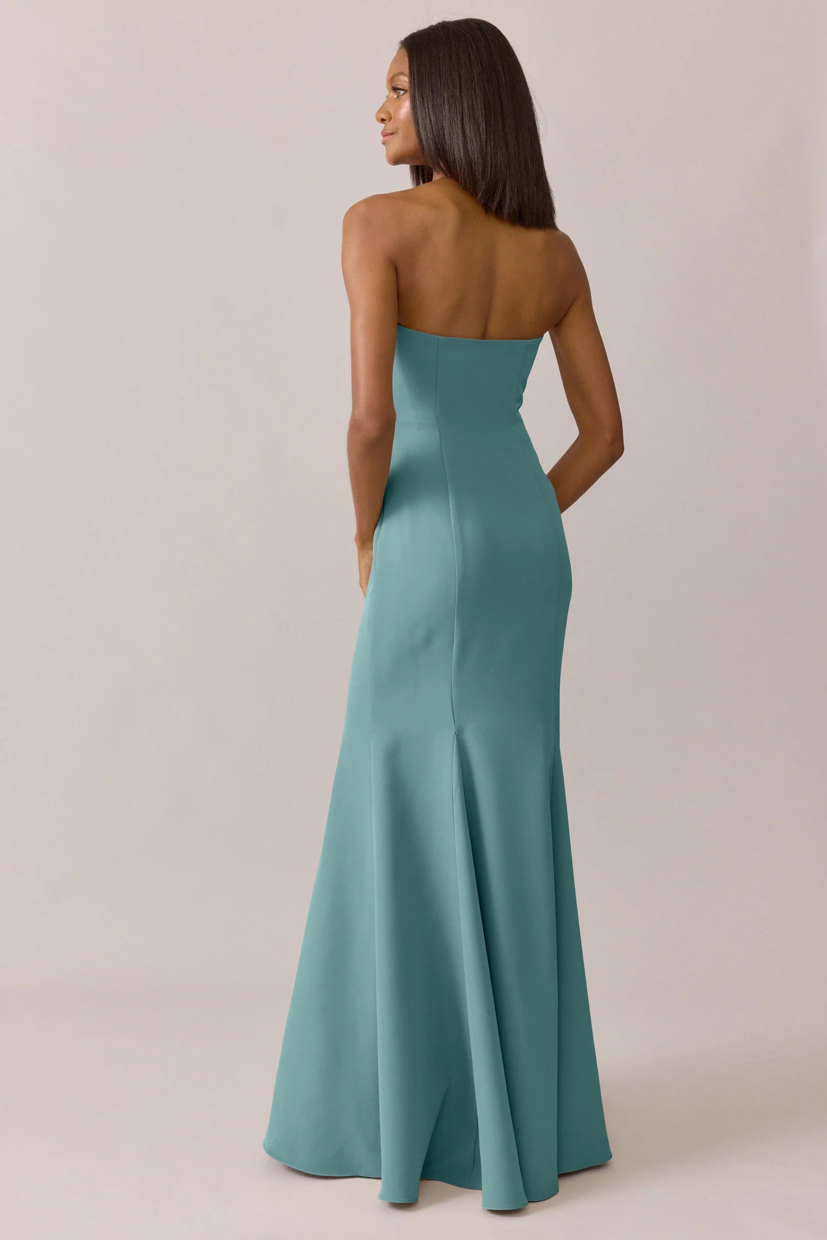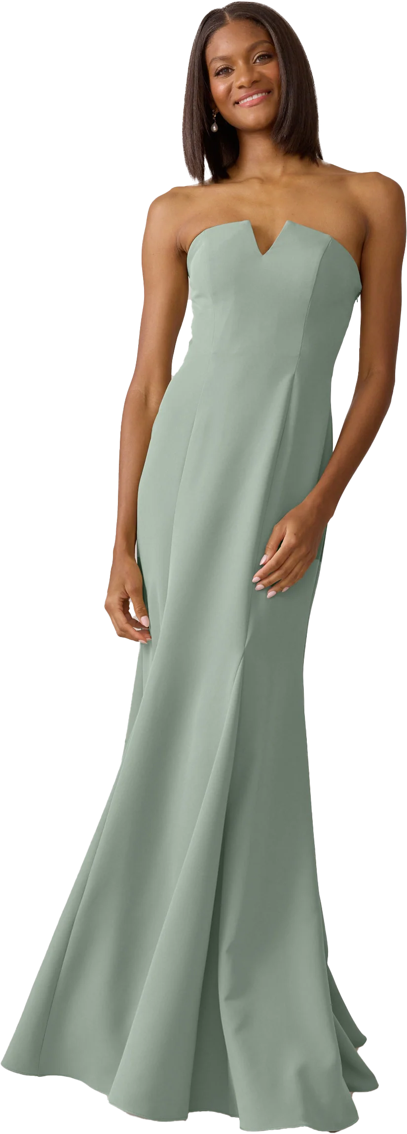 Understated, sculpted, and so refined. The Estelle Crepe Dress stuns with a sleek mermaid silhouette, strapless V-notch neckline, and a flowing godet pleated skirt that adds just the right amount of drama—without a slit. Built-in cups and boning keep things supported, while the full-length double lining ensures smooth, confident wear from ceremony to celebration.