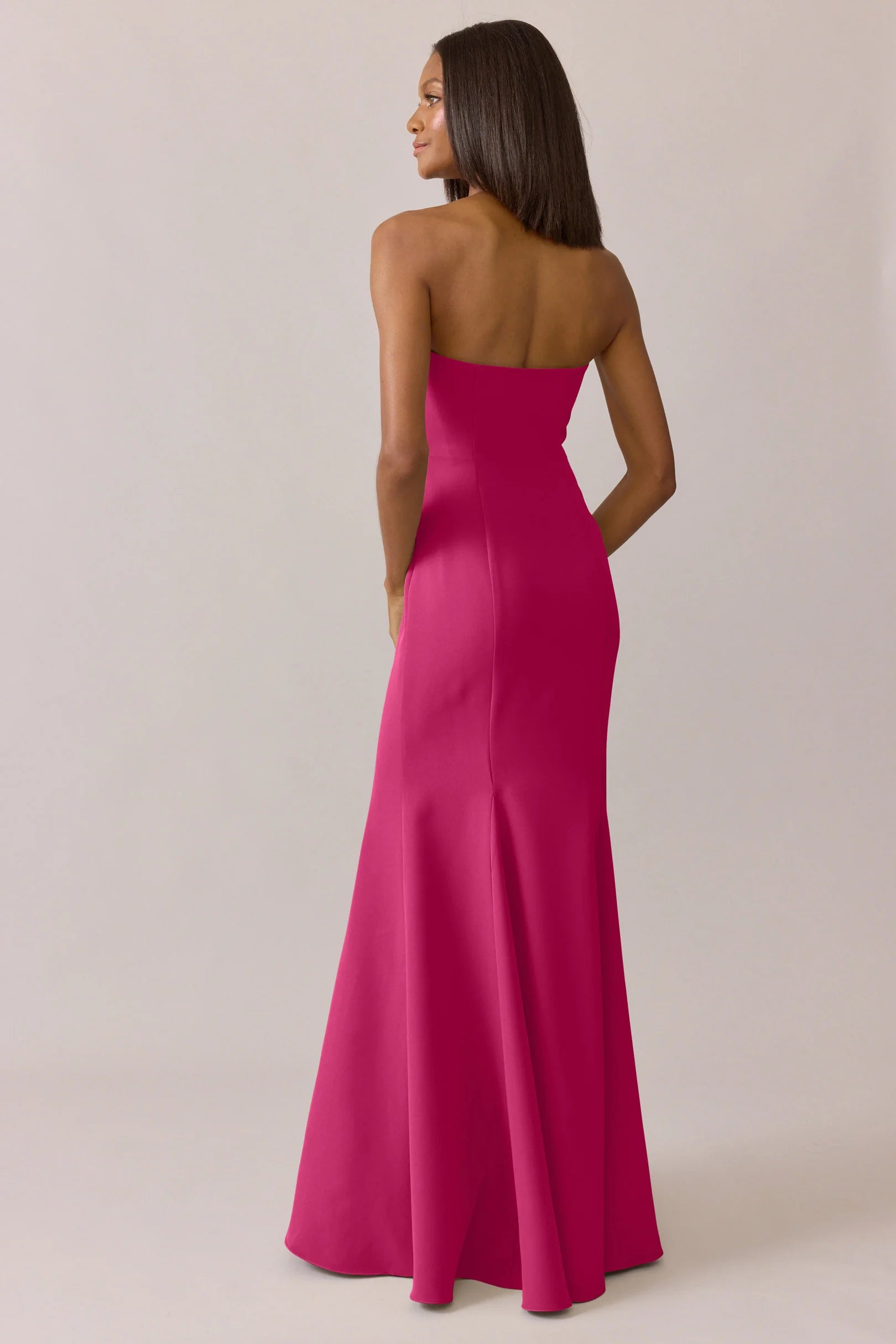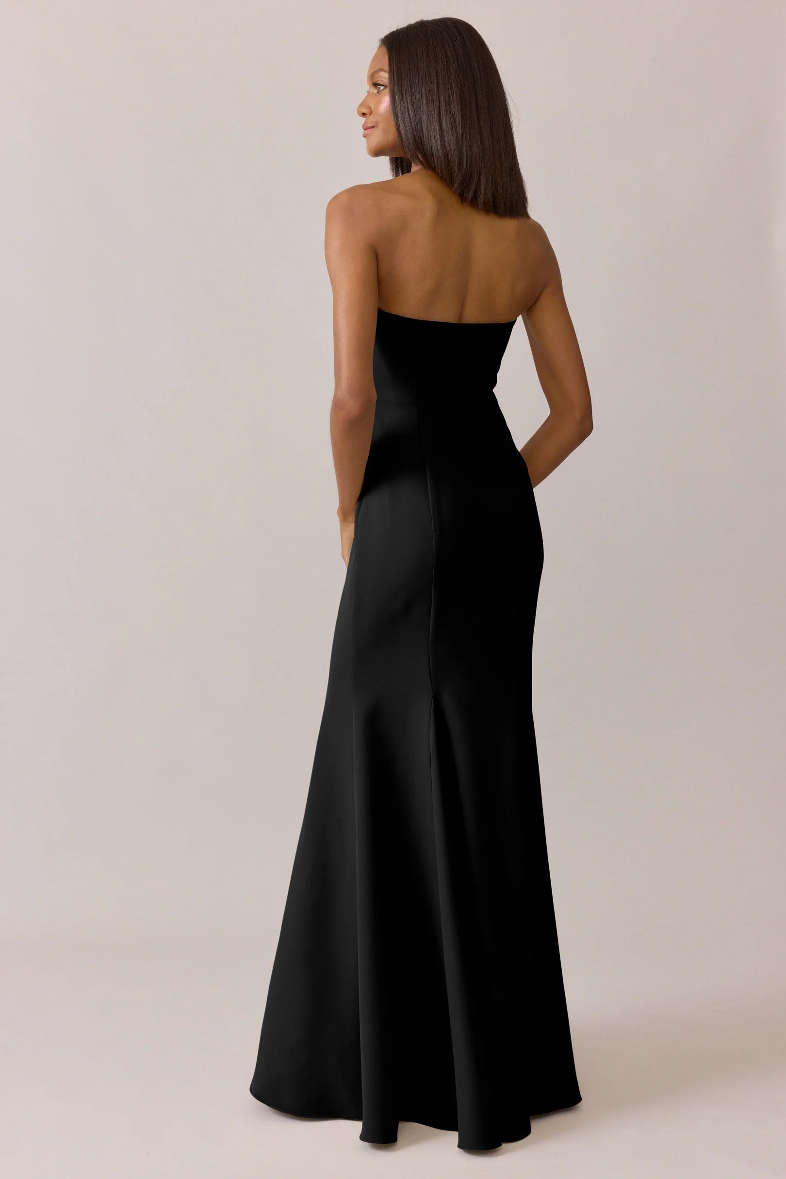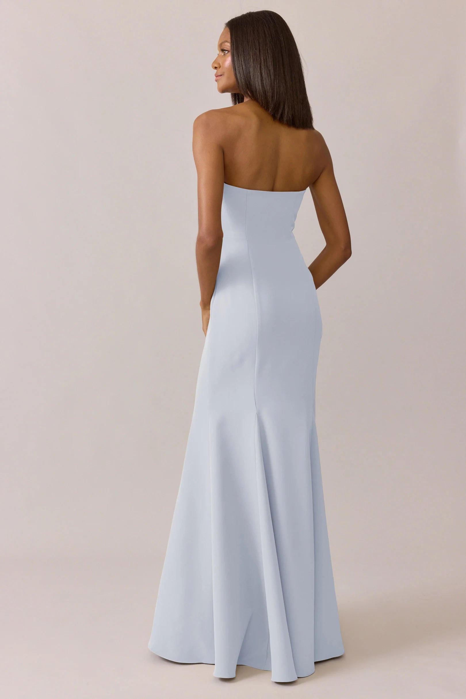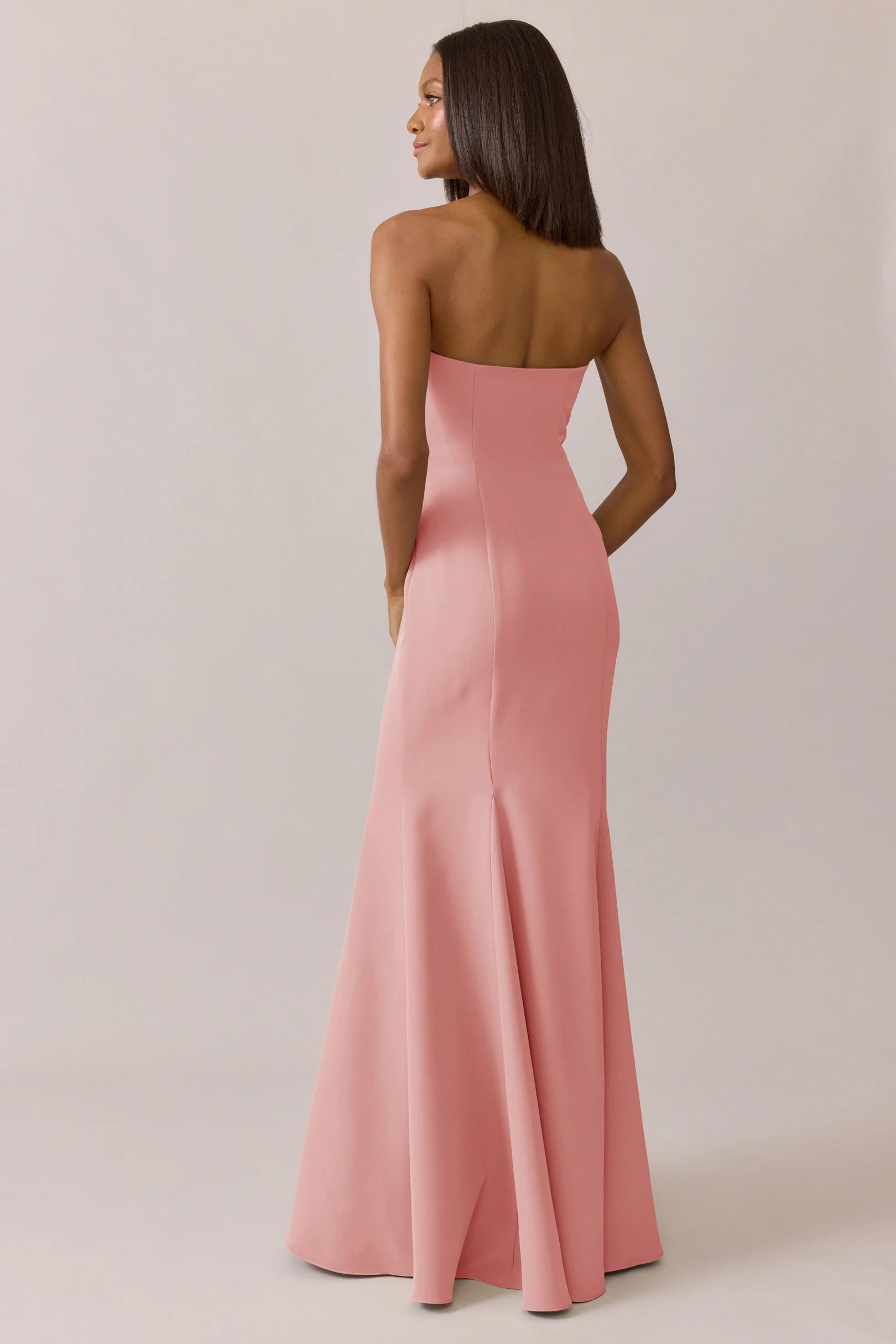 Understated, sculpted, and so refined. The Estelle Crepe Dress stuns with a sleek mermaid silhouette, strapless V-notch neckline, and a flowing godet pleated skirt that adds just the right amount of drama—without a slit. Built-in cups and boning keep things supported, while the full-length double lining ensures smooth, confident wear from ceremony to celebration.