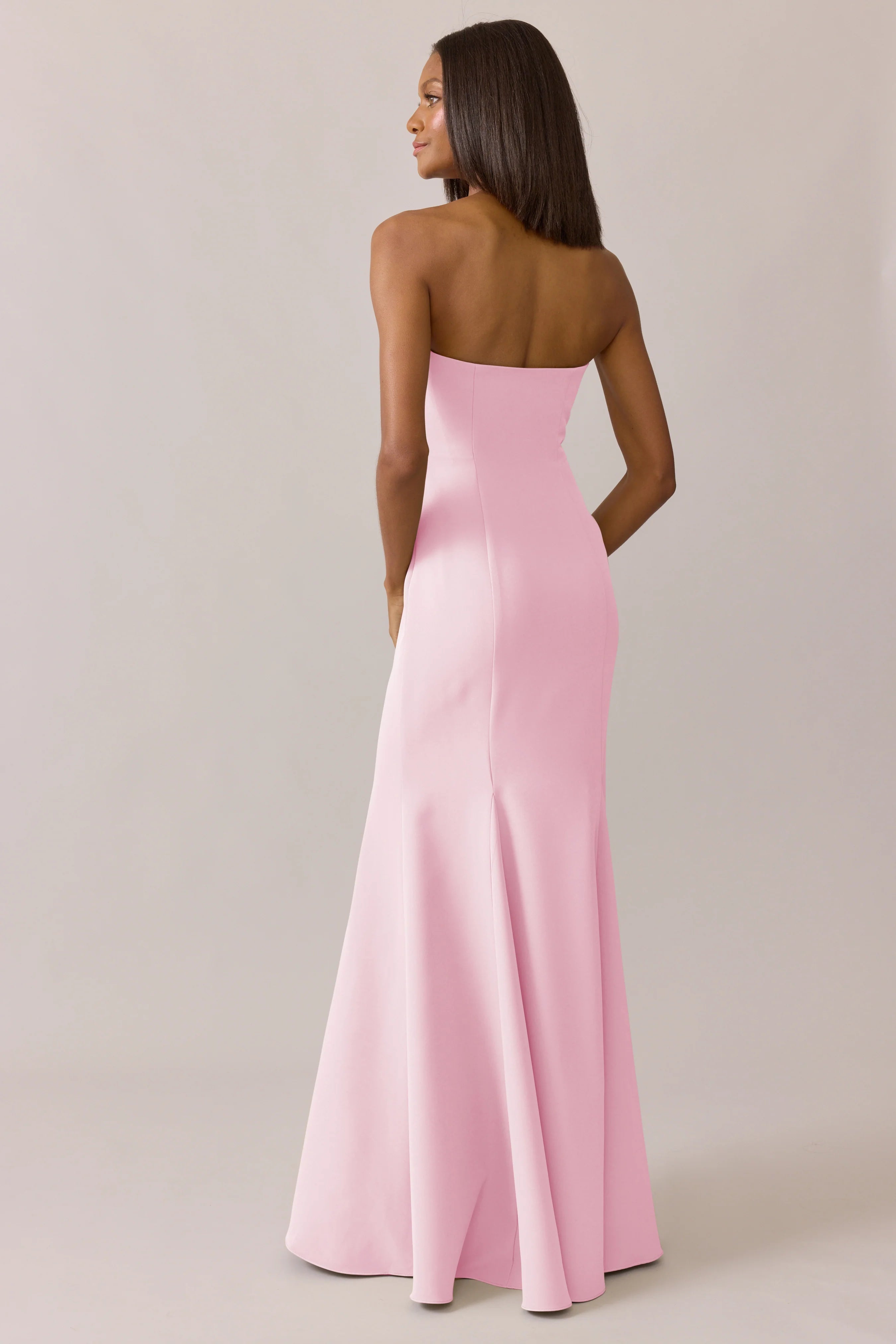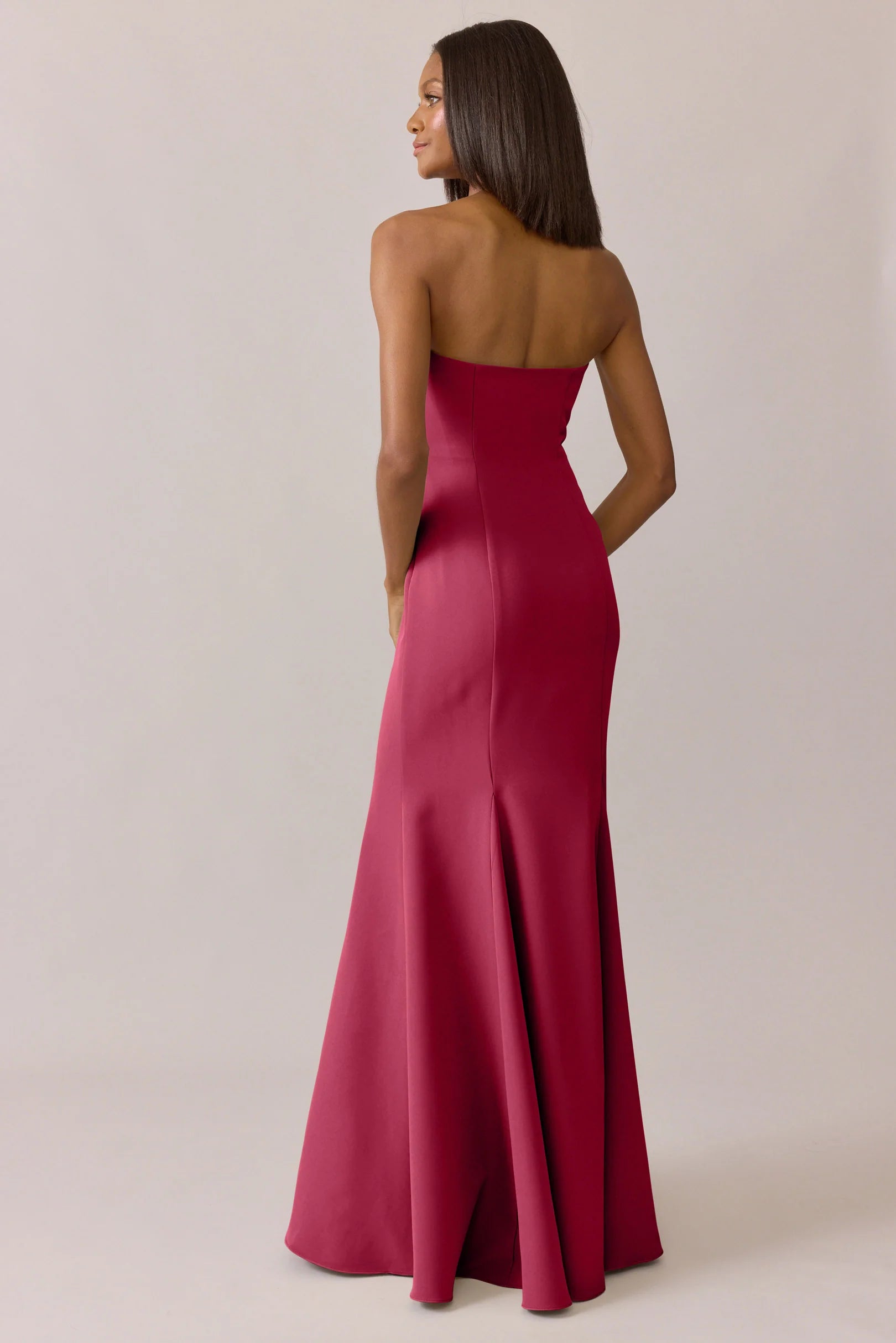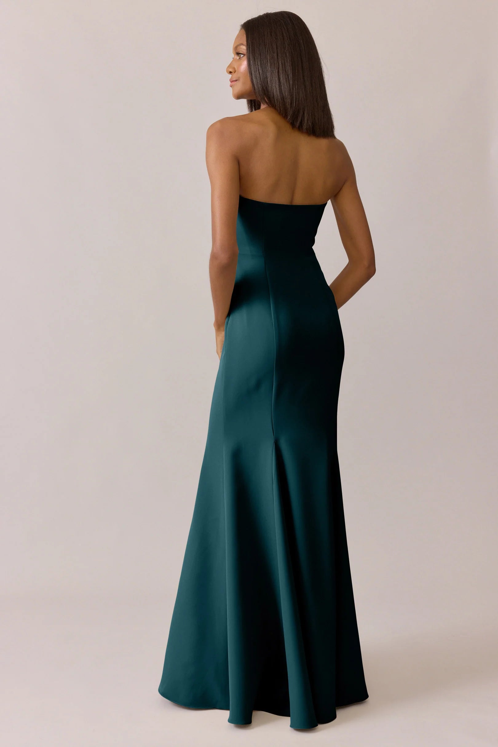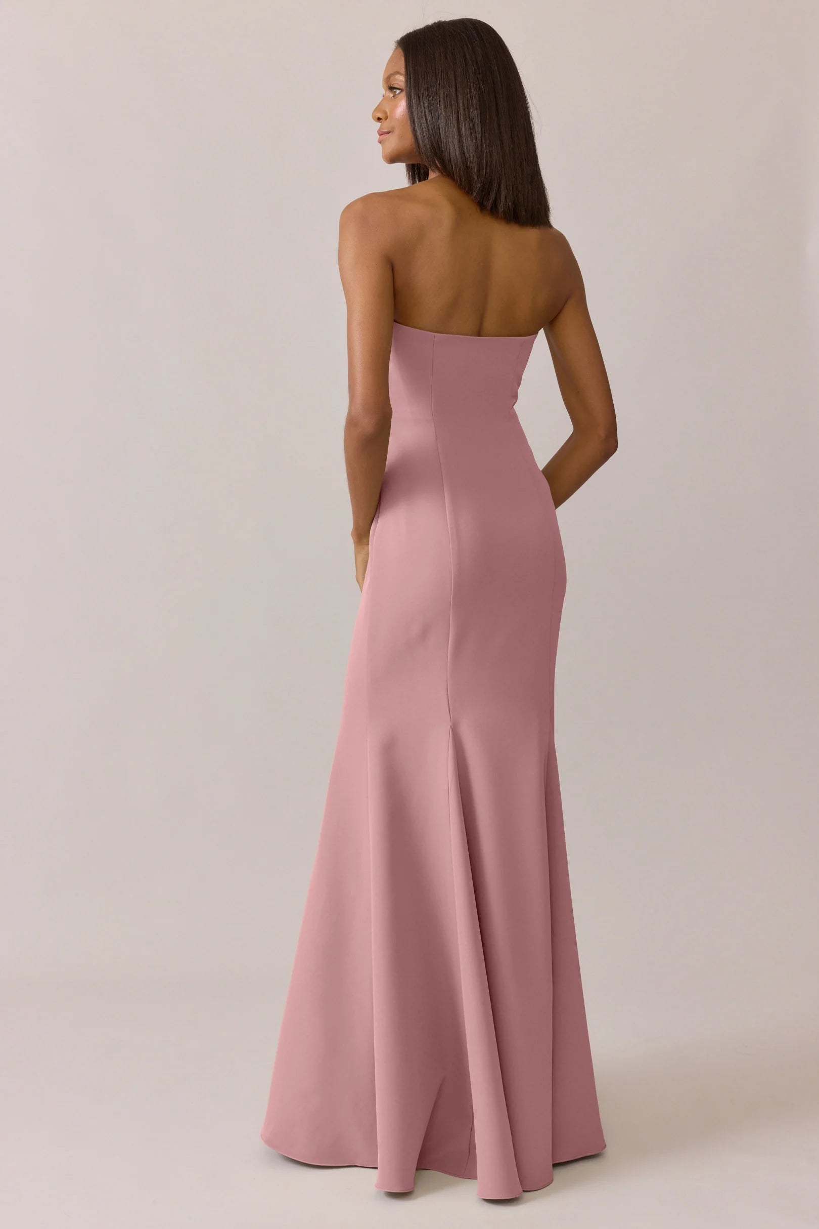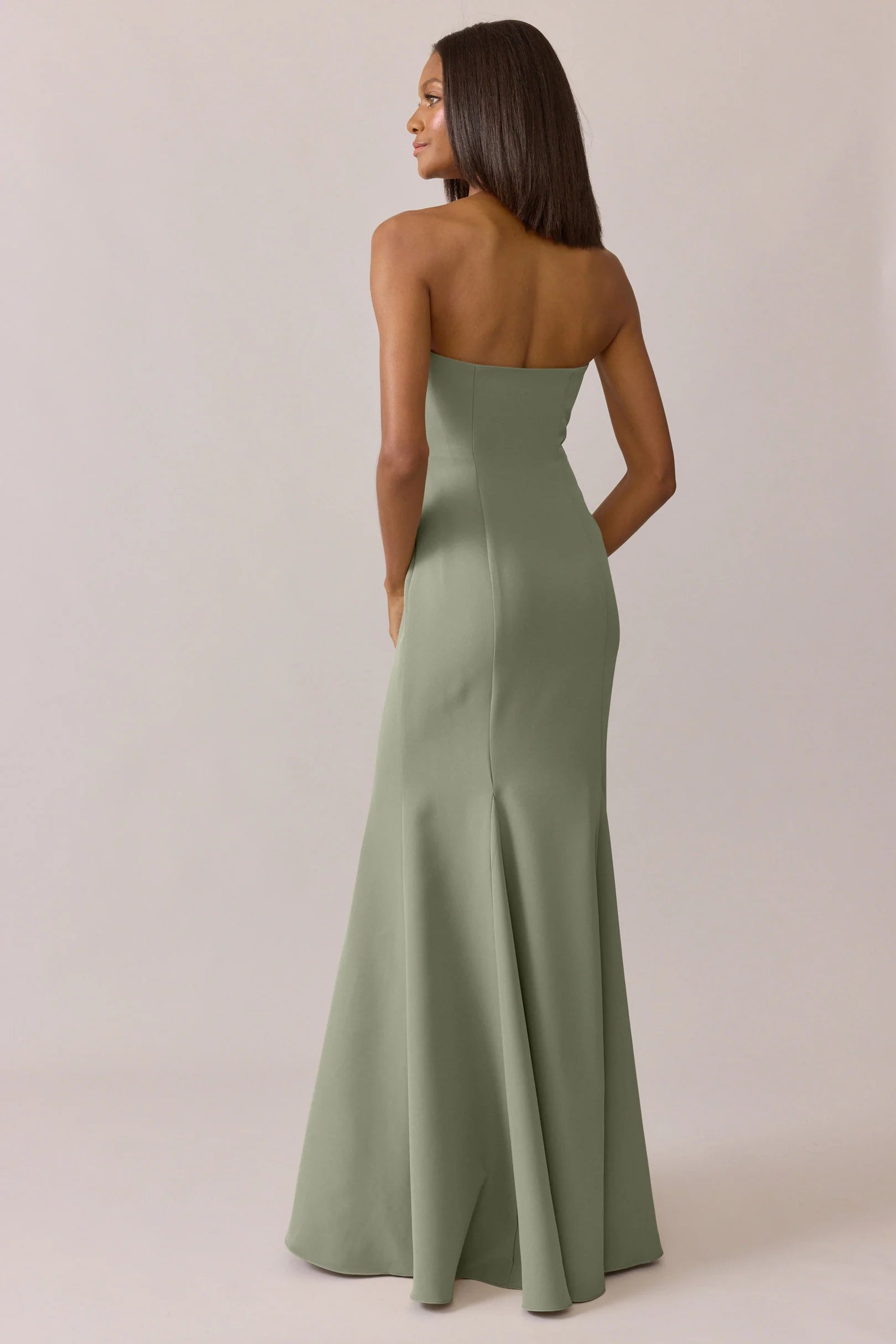 Understated, sculpted, and so refined. The Estelle Crepe Dress stuns with a sleek mermaid silhouette, strapless V-notch neckline, and a flowing godet pleated skirt that adds just the right amount of drama—without a slit. Built-in cups and boning keep things supported, while the full-length double lining ensures smooth, confident wear from ceremony to celebration.