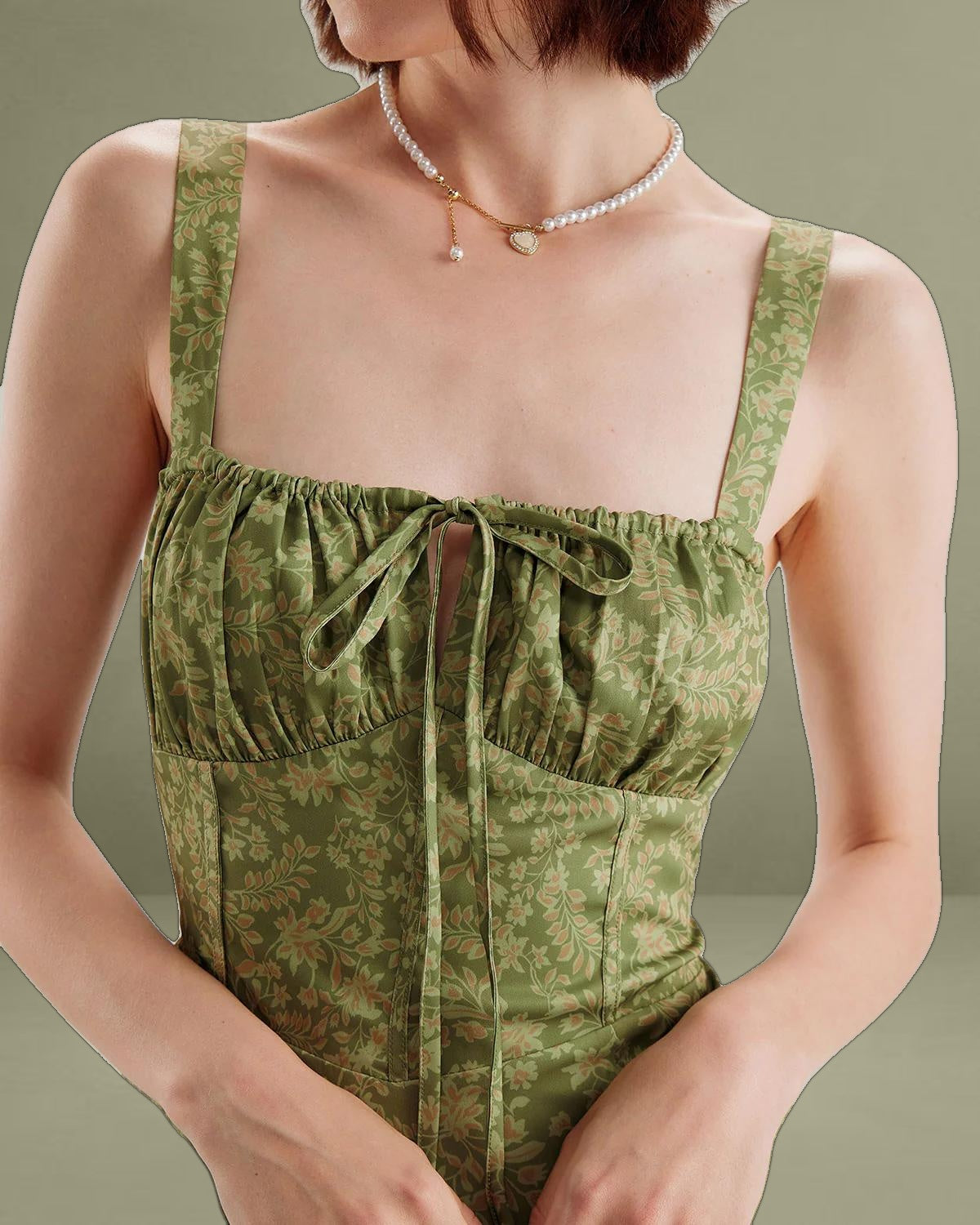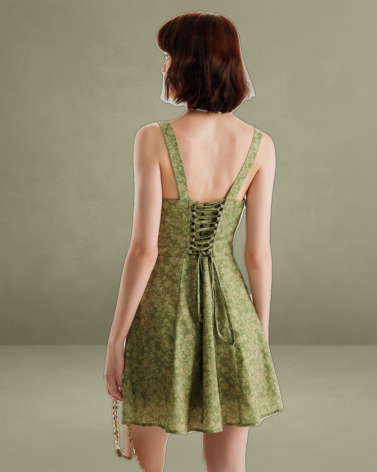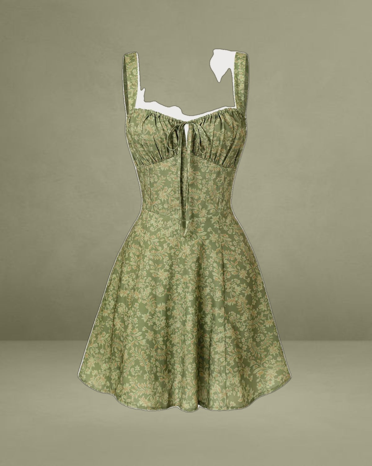 This floral mini dress is crafted from polyester, an artificial fiber known for its soft feel, lustrous appearance, and quick-drying properties. It is also durable, resistant to wrinkles, stains, and sunlight.