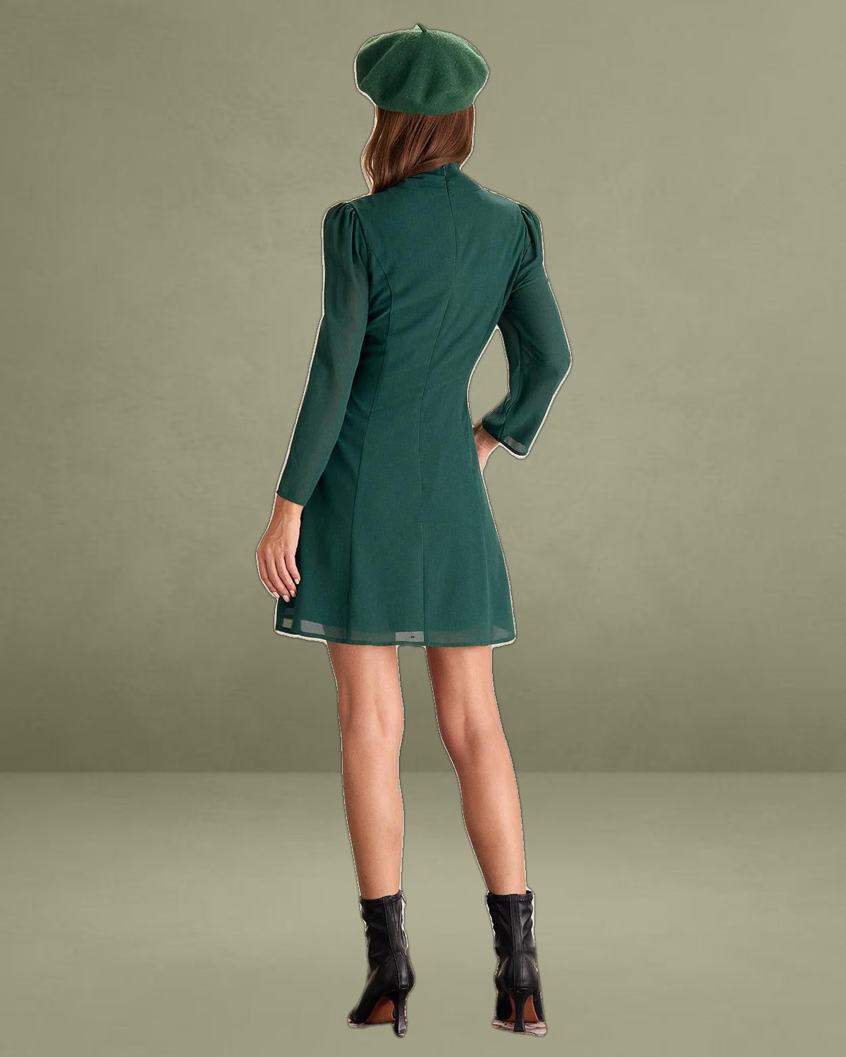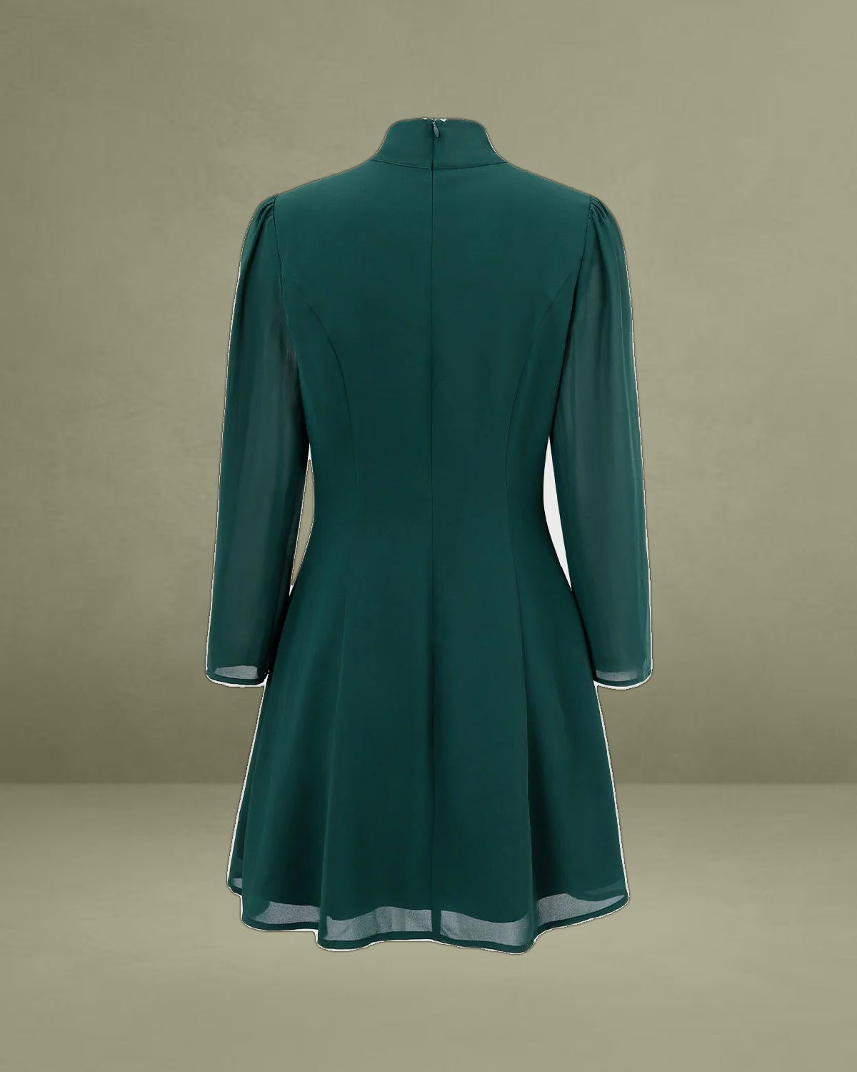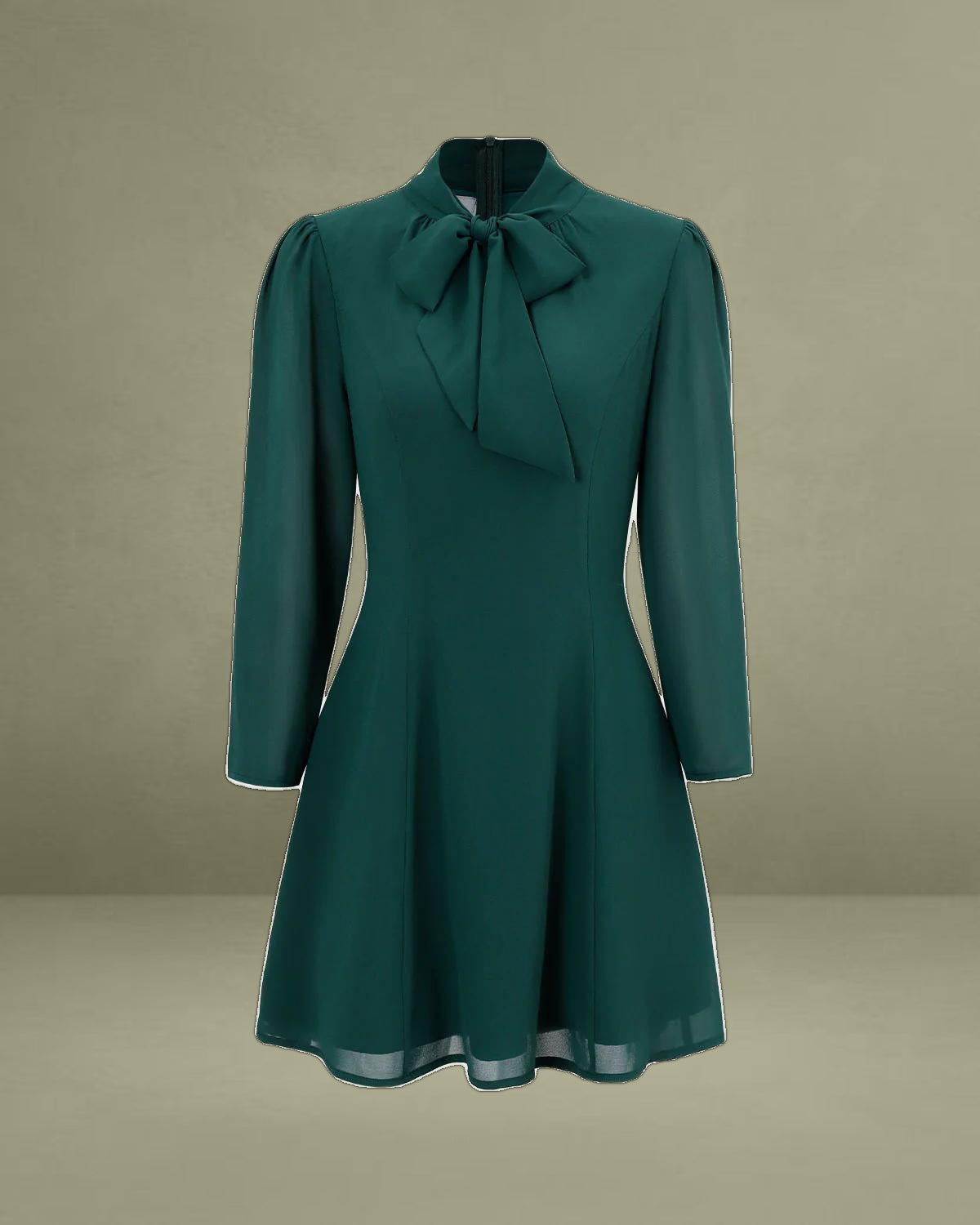 Made from lightweight, breathable fabric, the dress features a chic, see-through design that adds a touch of allure without compromising comfort. The tie-neck detail adds sophistication, allowing you to adjust the neckline to your preference.