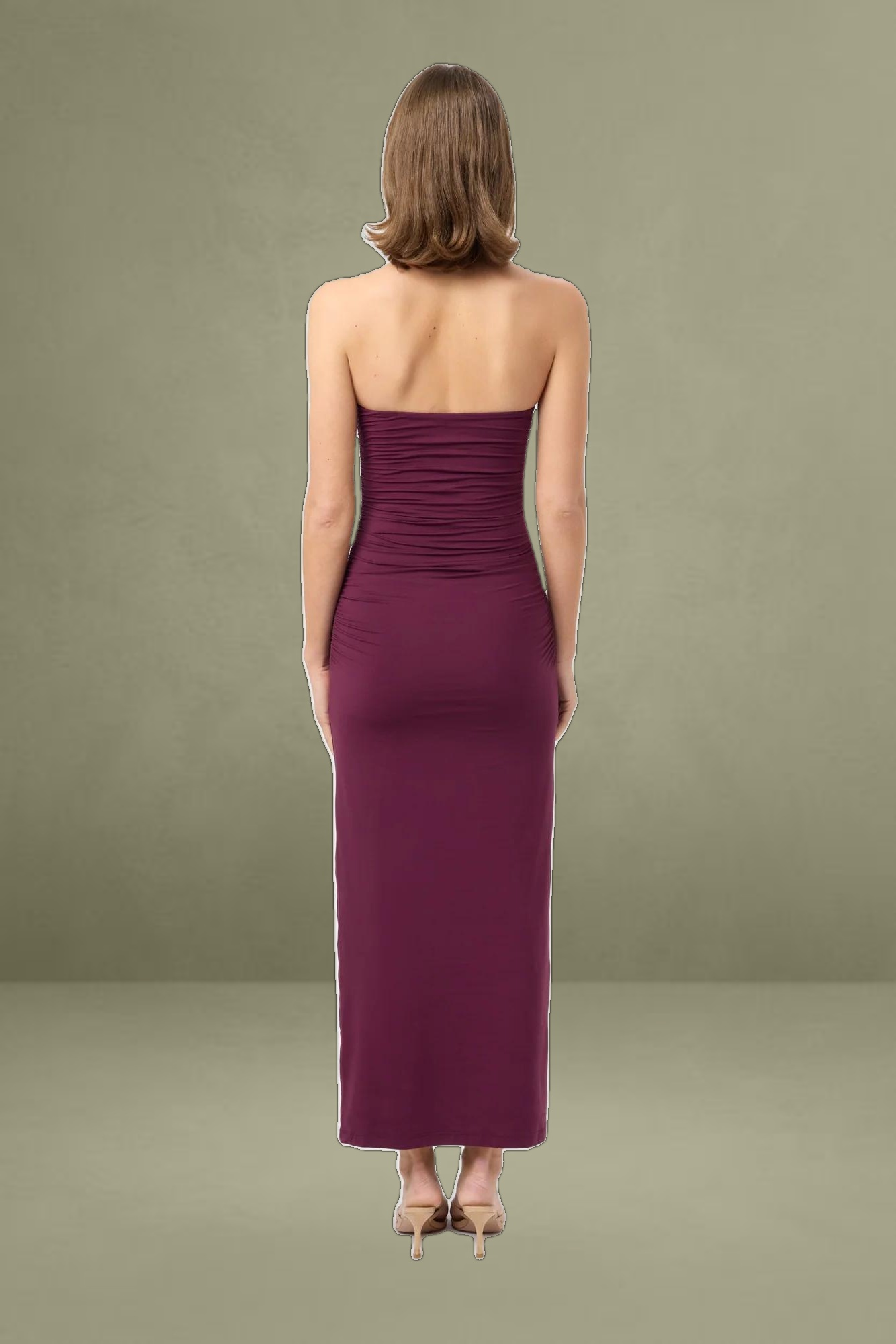 Experience luxury with this halter neck dress. Featuring a halter neckline and rouched details, it's designed to enhance and shape the figure. Made from stretchy polyamide fabric, it combines style and comfort. Its maxi length and slim fit make it suitable for various occasions.